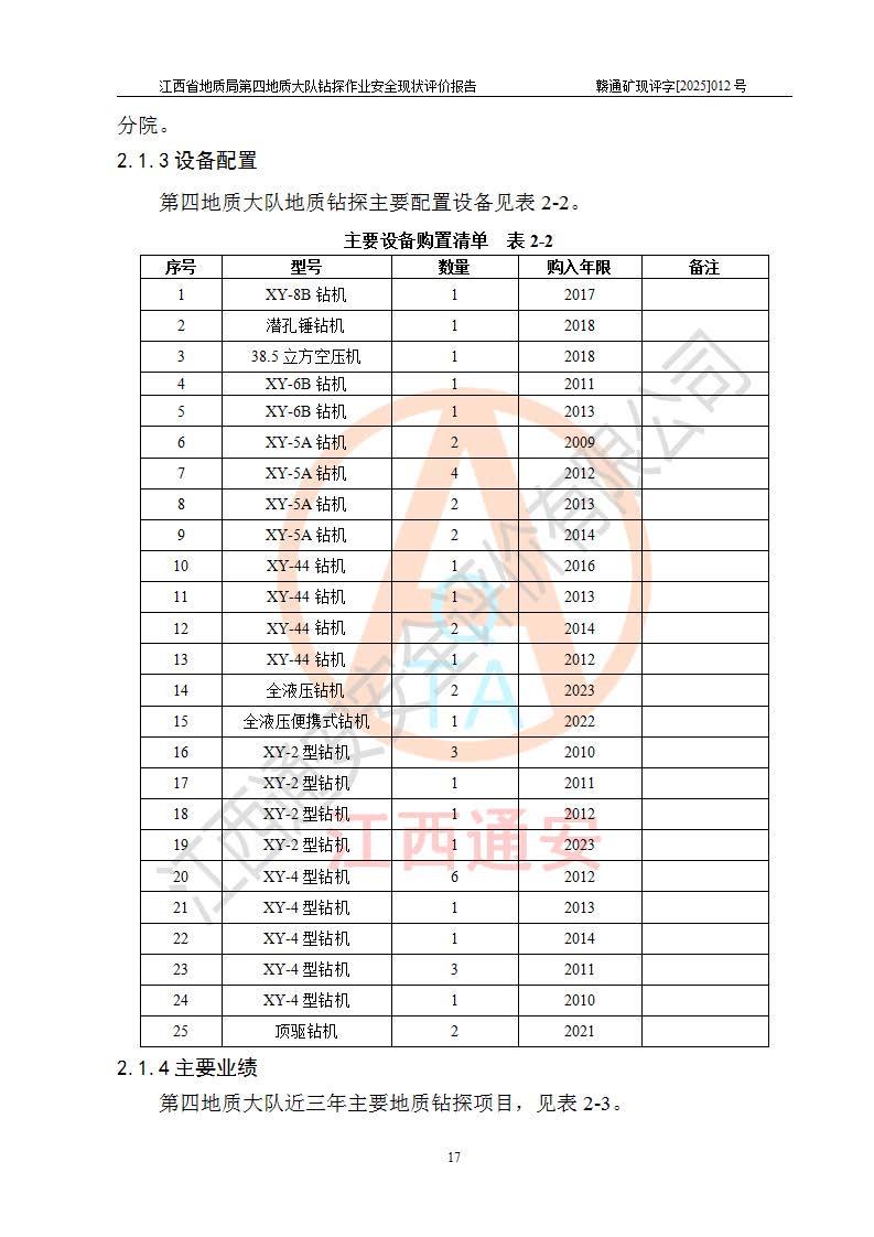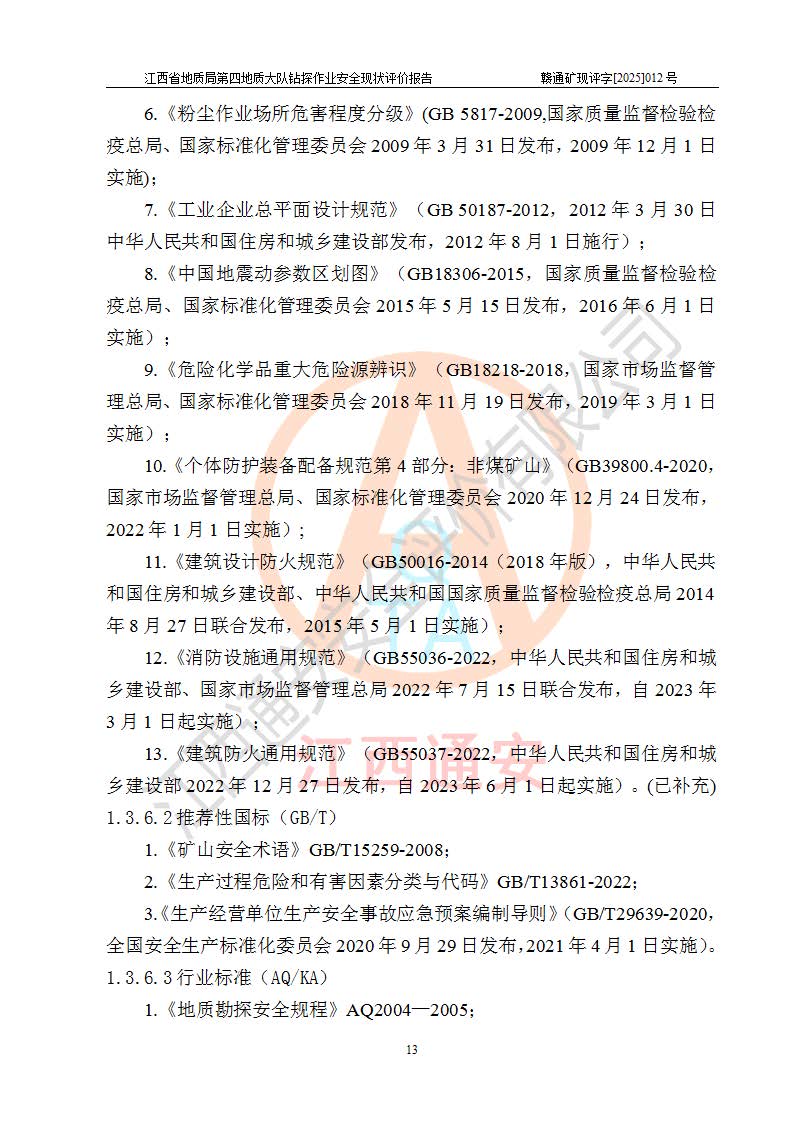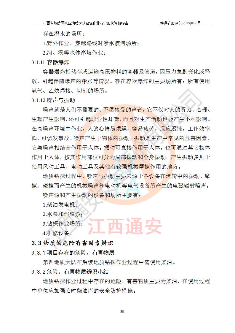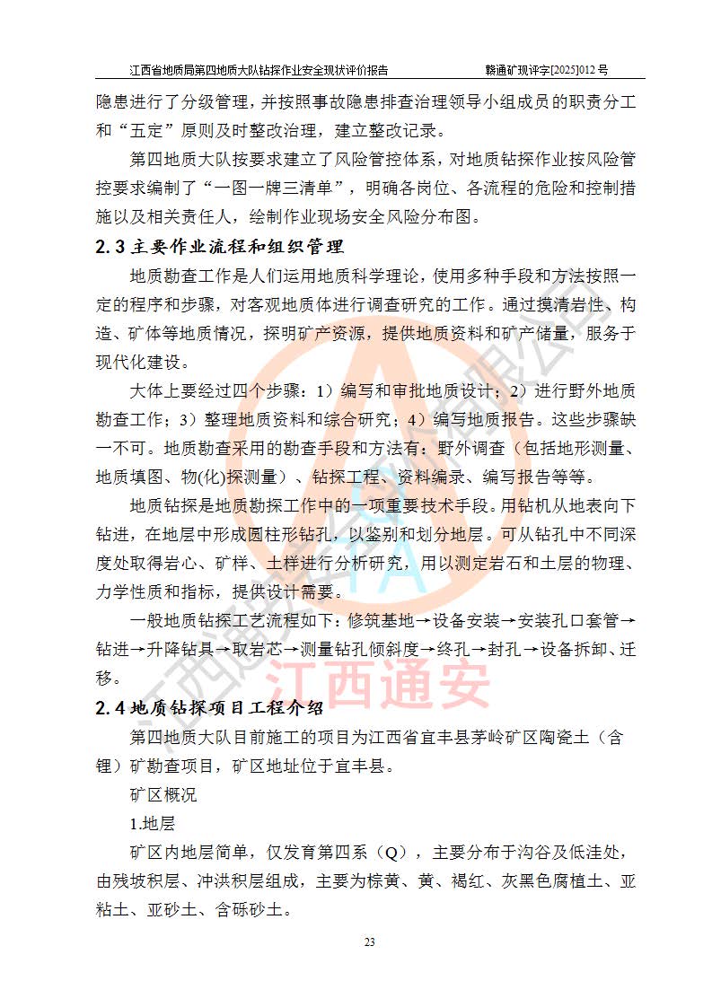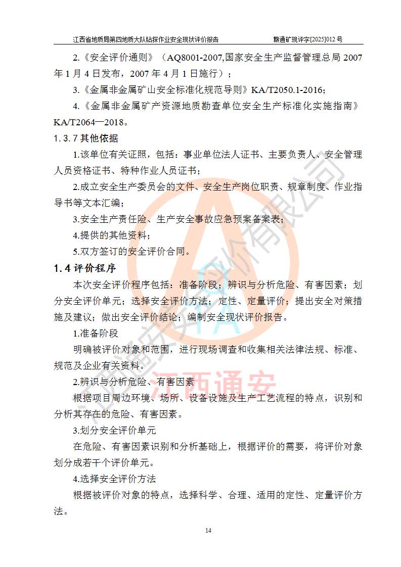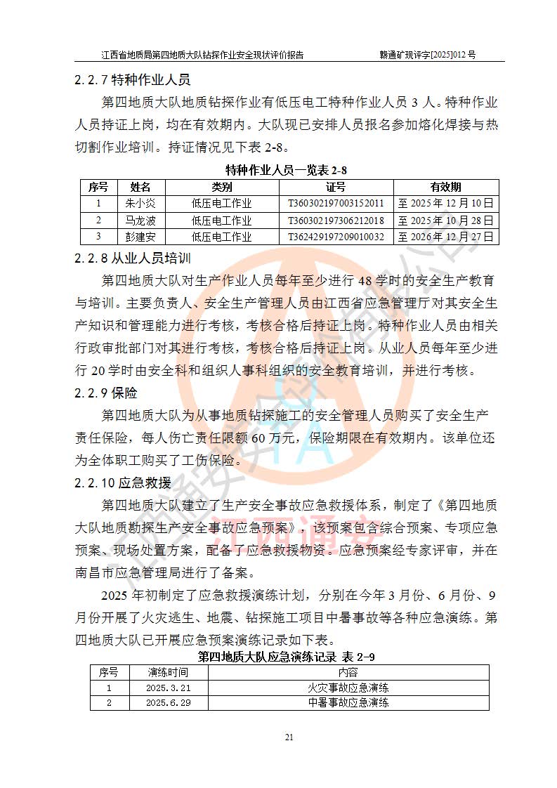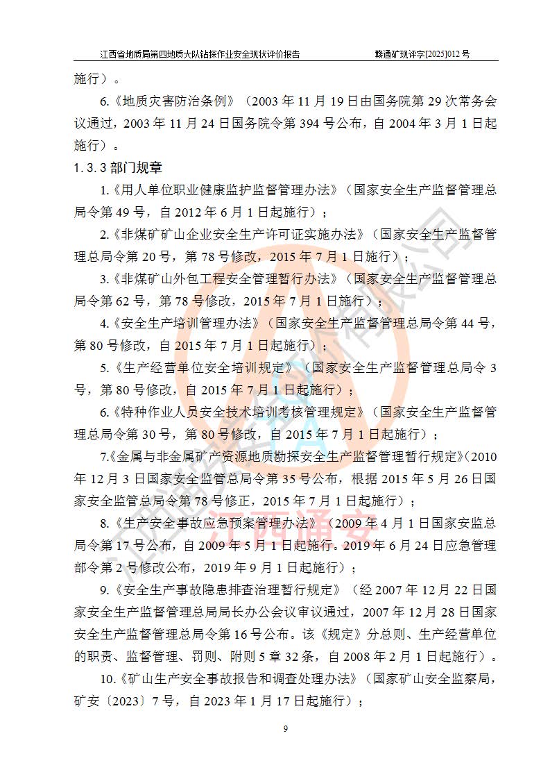 報告名稱 | 江西省地質(zhì)局第四地質(zhì)大隊地質(zhì)鉆探作業(yè)安全現(xiàn)狀評價報告 | |||||