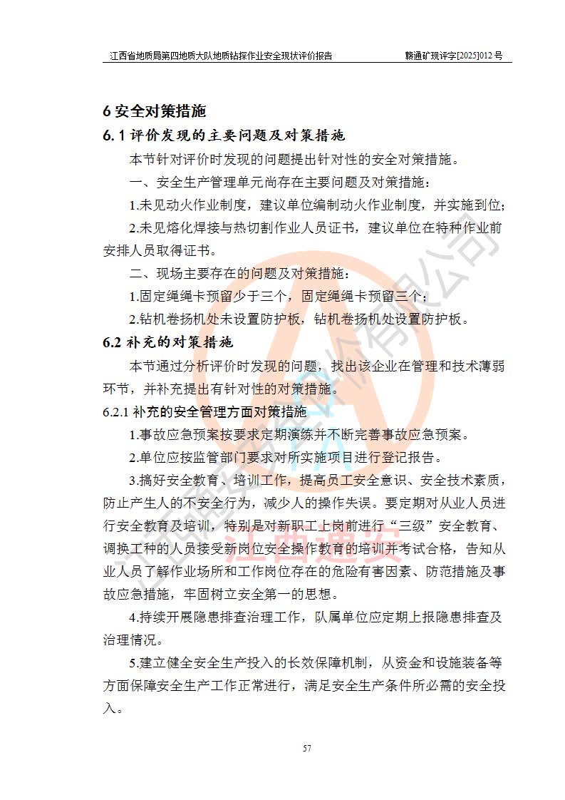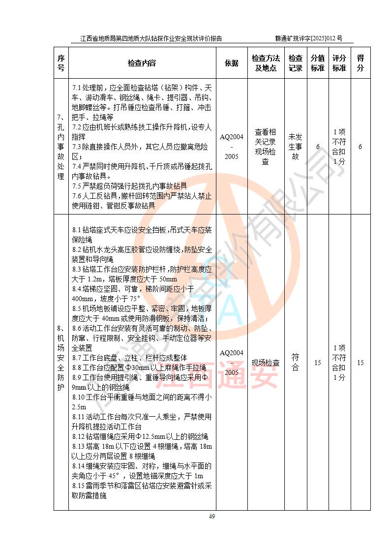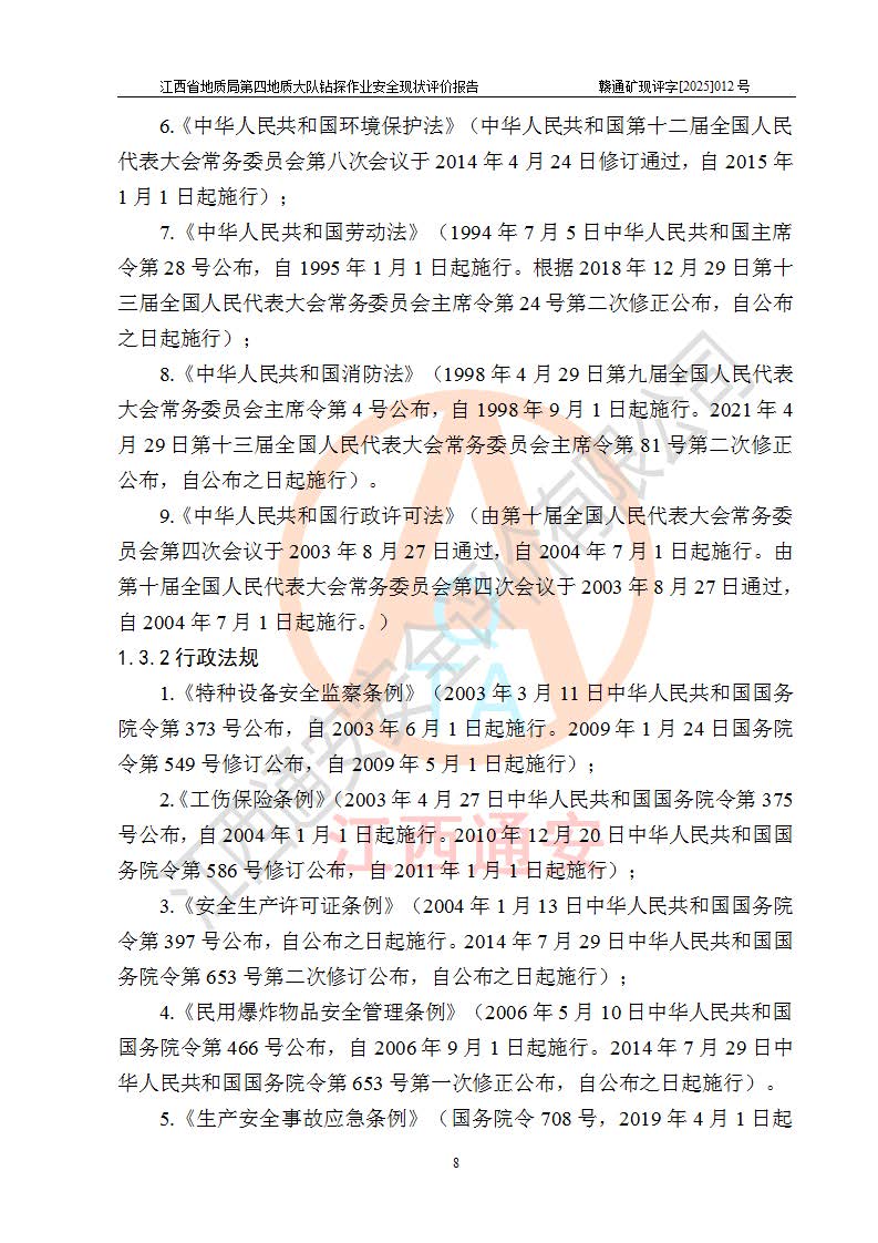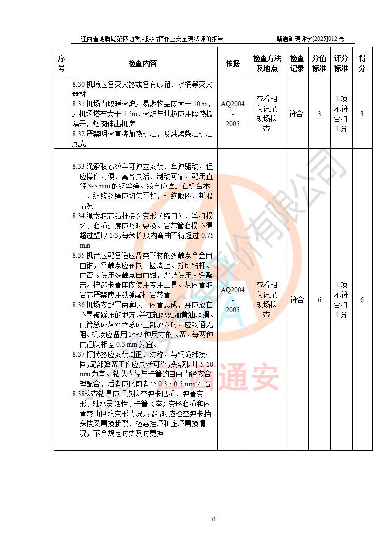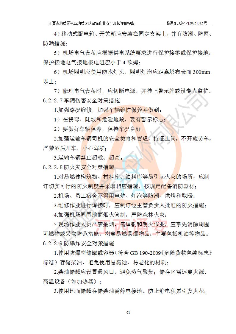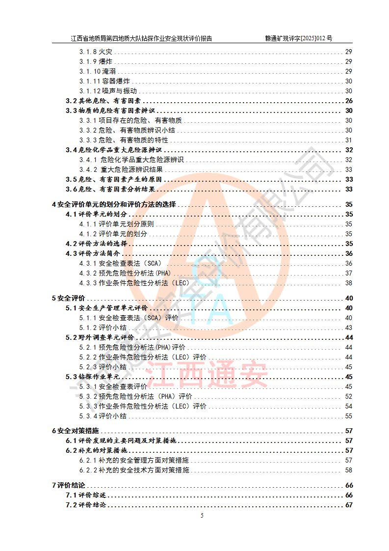 報告名稱 | 江西省地質(zhì)局第四地質(zhì)大隊地質(zhì)鉆探作業(yè)安全現(xiàn)狀評價報告 | |||||