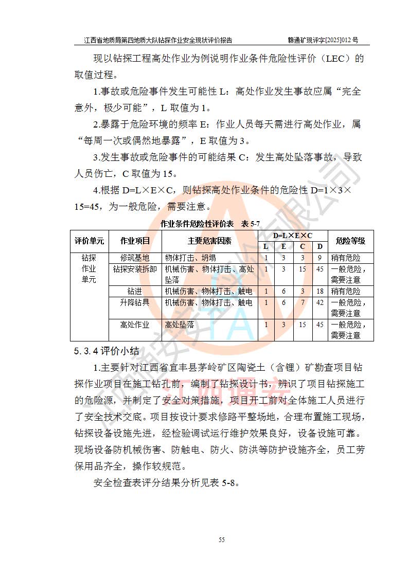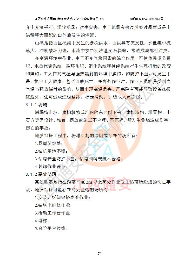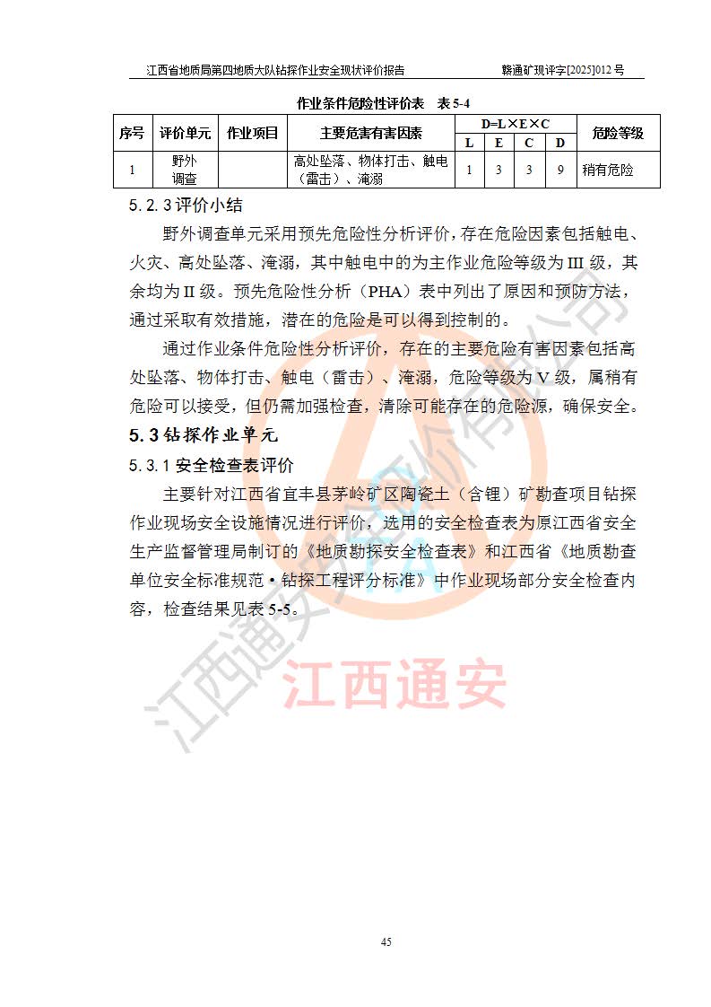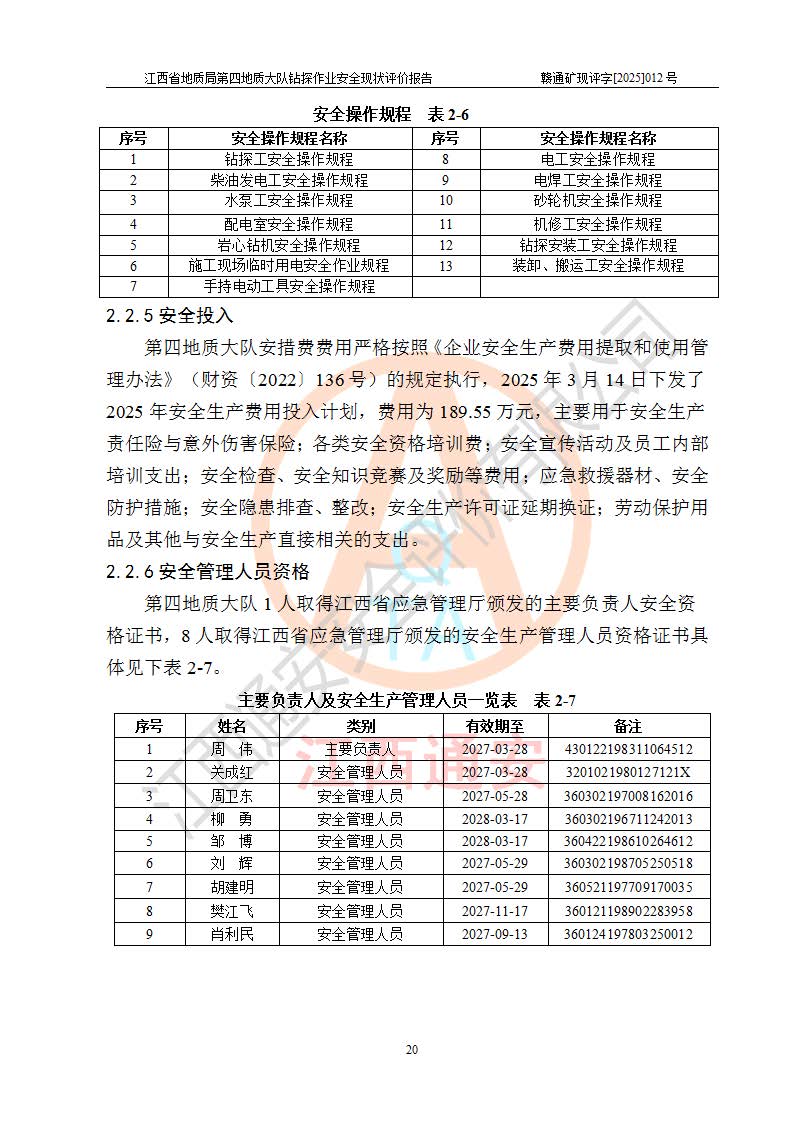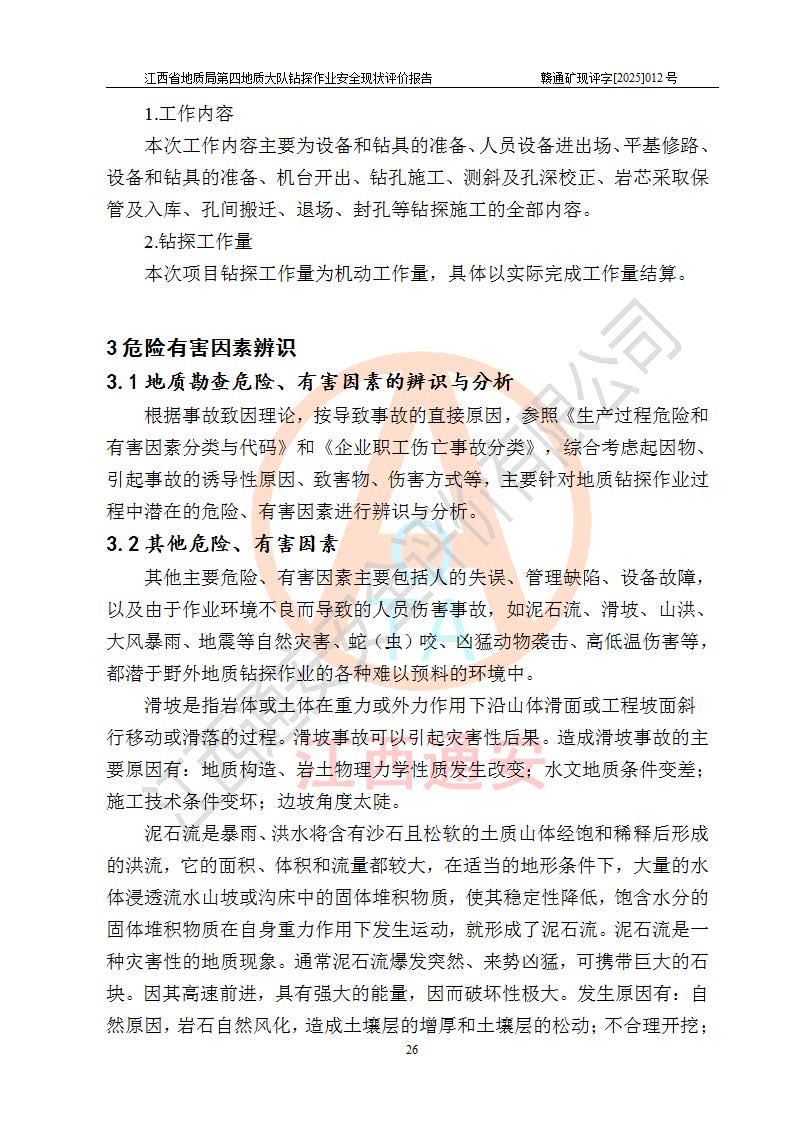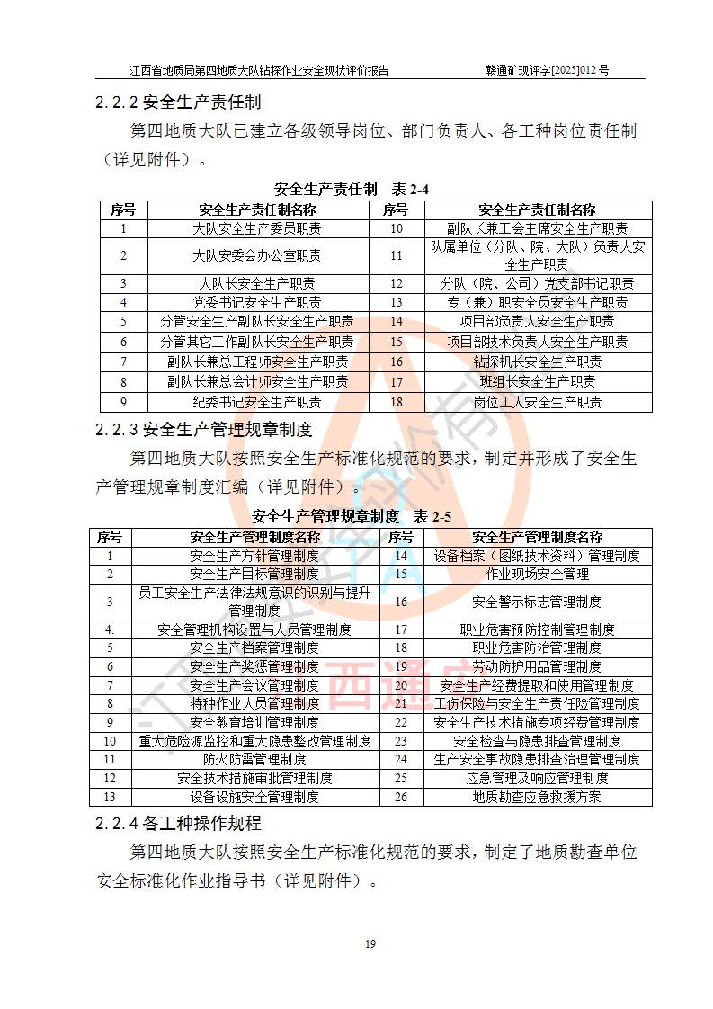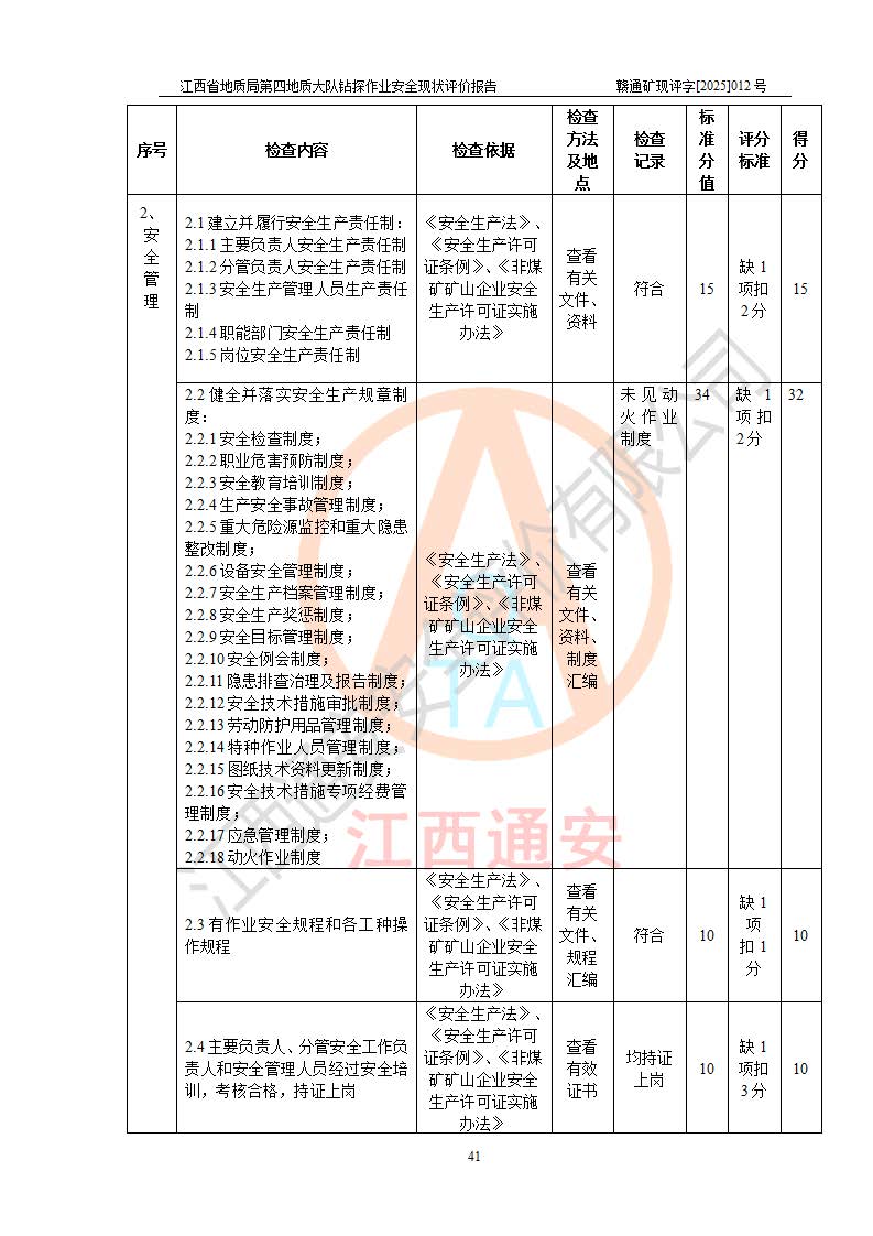 報告名稱 | 江西省地質(zhì)局第四地質(zhì)大隊地質(zhì)鉆探作業(yè)安全現(xiàn)狀評價報告 | |||||