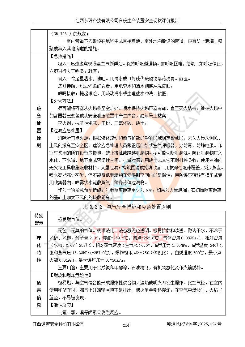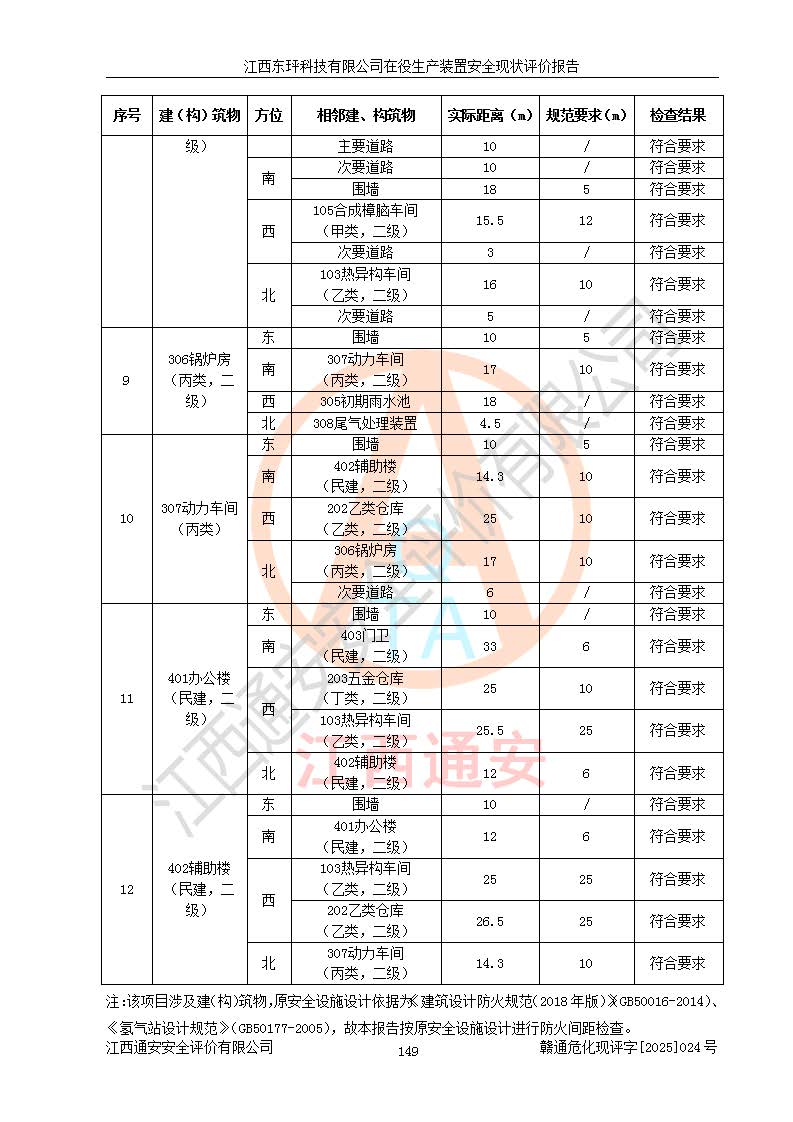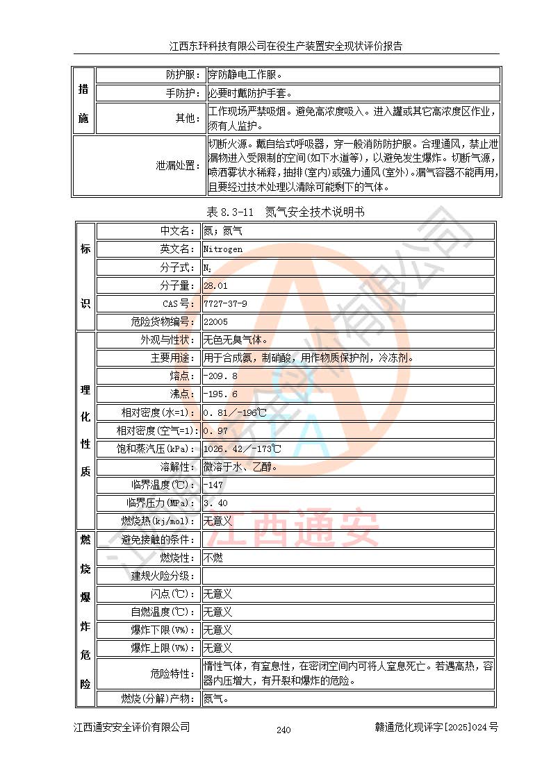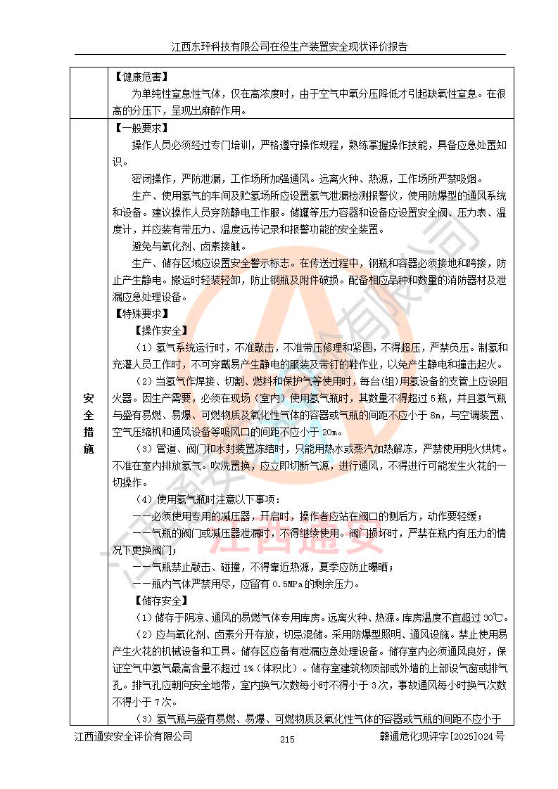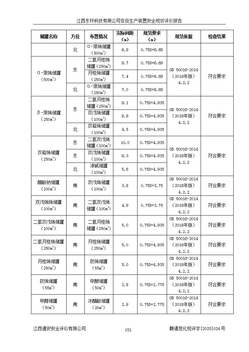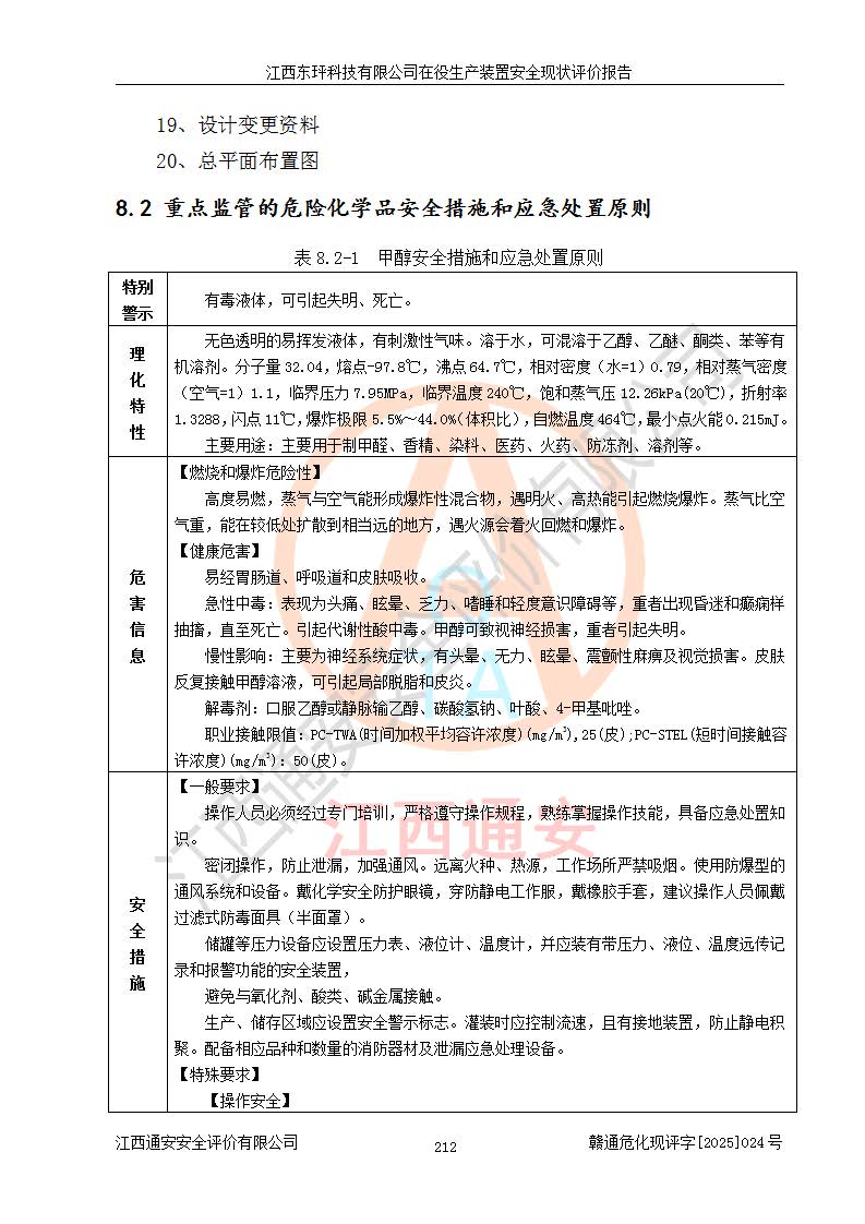江西東玶科技有限公司位于江西省吉安市吉水縣城西工業(yè)園區(qū),法定**人為徐東,成立于2018年04月08日,注冊(cè)資本叁仟貳佰叁拾萬(wàn)元整,經(jīng)營(yíng)范圍為合成樟腦、α-蒎烯、β-蒎烯、二氫月桂烯(含月桂烯)、莰烯、雙戊烯、氫氣(中間產(chǎn)品)的制造加工(憑**批準(zhǔn)證書(shū)經(jīng)營(yíng));白乙酯、雙萜烯等合成香料的制造加工等。 江西東玶科技有限公司2022年08月01日取得了《安全生產(chǎn)許可證》,許可證編號(hào):(贛)WH安許證字[2022]1160號(hào),許可范圍為合成樟腦(2000t/a)、二氫月桂烯(1000t/a)、月桂烯(3200t/a)、莰烯(1000t/a)、雙戊烯(810t/a)、雙萜烯(1070t/a)、α-蒎烯(7500t/a)、β-蒎烯(3200t/a)、白乙酯(500t/a),**期為2022年08月01日至2025年07月31日。該公司2023年5月29日取得了三級(jí)安全生產(chǎn)標(biāo)準(zhǔn)化證書(shū),證書(shū)編號(hào):贛AQBWHⅢ202300036,**期至2026年5月。該公司現(xiàn)有員工53人,其中專職安全生產(chǎn)管理人員2人。 因生產(chǎn)經(jīng)營(yíng)需要,江西東玶科技有限公司實(shí)施了年產(chǎn)12000噸松節(jié)油深加工系列產(chǎn)品項(xiàng)目(二期),并將二氫月桂烯的設(shè)計(jì)生產(chǎn)規(guī)模2000t/a變更為1500t/a,減少中間產(chǎn)品蒎烷的消耗量,剩余的蒎烷(720t/a)作為產(chǎn)品銷售。江西東玶科技有限公司委托深圳天陽(yáng)工程設(shè)計(jì)有限公司進(jìn)行了設(shè)計(jì)變更,按程序要求進(jìn)行了試生產(chǎn),委托評(píng)價(jià)公司編制了安全驗(yàn)收評(píng)價(jià)報(bào)告,并于2025年1月16日組織專家組和相關(guān)單位進(jìn)行了驗(yàn)收。驗(yàn)收完成后,江西東玶科技有限公司2025年06月04日對(duì)《安全生產(chǎn)許可證》進(jìn)行了變更,許可范圍變更為合成樟腦(2000t/a)、二氫月桂烯(1500t/a)、月桂烯(3200t/a)、莰烯(1000t/a)、雙戊烯(902.5t/a)、雙萜烯(1200.7t/a)、α-蒎烯(7500t/a)、β-蒎烯(3200t/a)、白乙酯(500t/a)、蒎烷(中間產(chǎn)品,720t/a)。 江西東玶科技有限公司在役生產(chǎn)裝置生產(chǎn)過(guò)程中涉及的主要原輔材料為松節(jié)油、乙酸、液堿、甲醇、碳酸鈉、二甲苯、偏鈦酸、甲酸、硫酸銅、雷尼鎳、離子膜、天然氣、氮?dú)?,中間產(chǎn)品為氫氣、α-蒎烯、β-蒎烯、蒎烷,產(chǎn)品為合成樟腦、二氫月桂烯、月桂烯、莰烯、雙戊烯、白乙酯、雙萜烯,副產(chǎn)品為醋酸鈉。根據(jù)《危險(xiǎn)化學(xué)品目錄》,該在役生產(chǎn)裝置涉及的松節(jié)油、乙酸、液堿、甲醇、二甲苯、甲酸、雷尼鎳、天然氣(燃料)、氮?dú)猓▔嚎s的)、柴油,中間產(chǎn)品α-蒎烯、β-蒎烯、氫氣、蒎烷和產(chǎn)品中合成樟腦、二氫月桂烯、月桂烯、莰烯、雙戊烯屬于危險(xiǎn)化學(xué)品。經(jīng)辨識(shí),甲醇、氫氣和天然氣(燃料)屬于重點(diǎn)監(jiān)管的危險(xiǎn)化學(xué)品,甲醇屬于特別管控的危險(xiǎn)化學(xué)品,不涉及監(jiān)控化學(xué)品、易制毒化學(xué)品、易制爆危險(xiǎn)化學(xué)品、劇毒化學(xué)品和高毒物品,生產(chǎn)、儲(chǔ)存單元不構(gòu)成危險(xiǎn)化學(xué)品重大危險(xiǎn)源,涉及的加氫工藝屬于重點(diǎn)監(jiān)管的危險(xiǎn)化工工藝。根據(jù)生產(chǎn)工藝特點(diǎn)及物料的理化特性可知,該在役生產(chǎn)裝置生產(chǎn)過(guò)程中存在火災(zāi)與爆炸、中毒與窒息、觸電、機(jī)械傷害、灼燙等危險(xiǎn)有害因素。 該公司自2022年08月01日取得安全生產(chǎn)許可證以來(lái),生產(chǎn)運(yùn)行正常,未發(fā)生一般及以上生產(chǎn)安全事故。 |