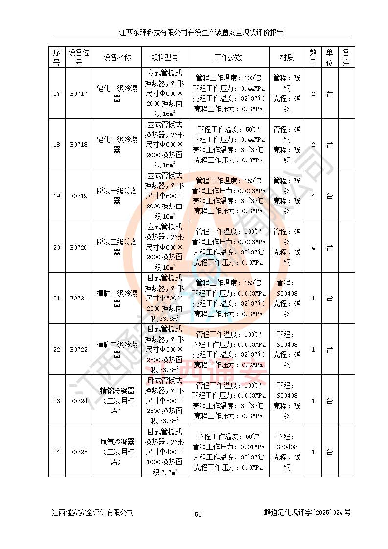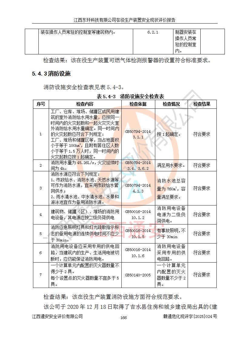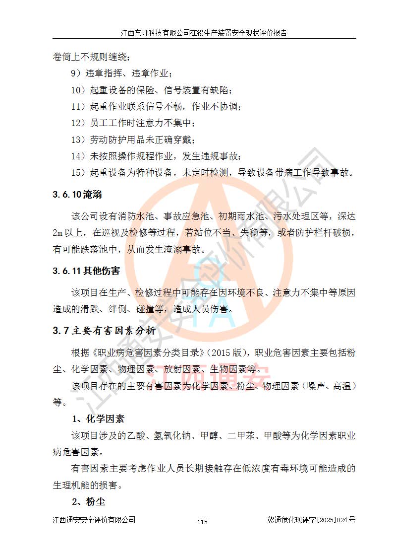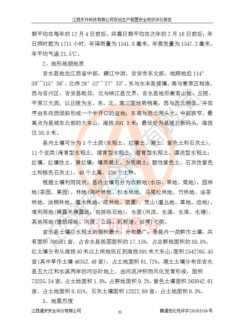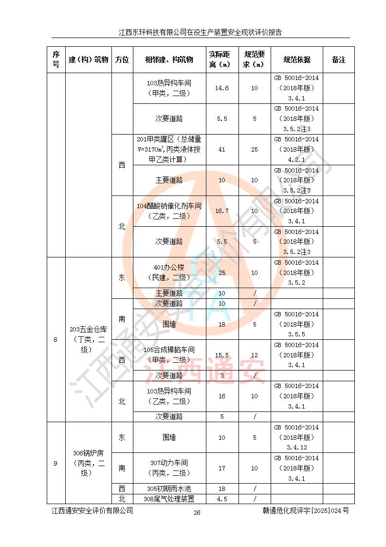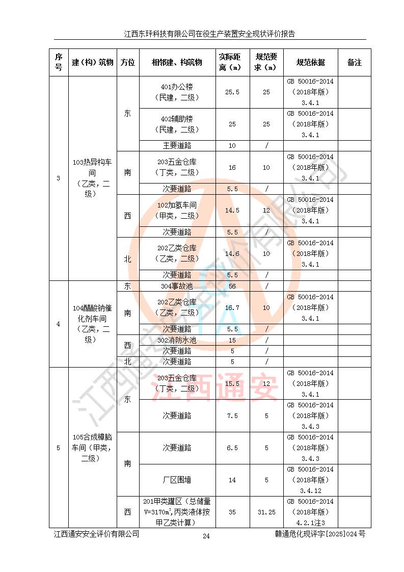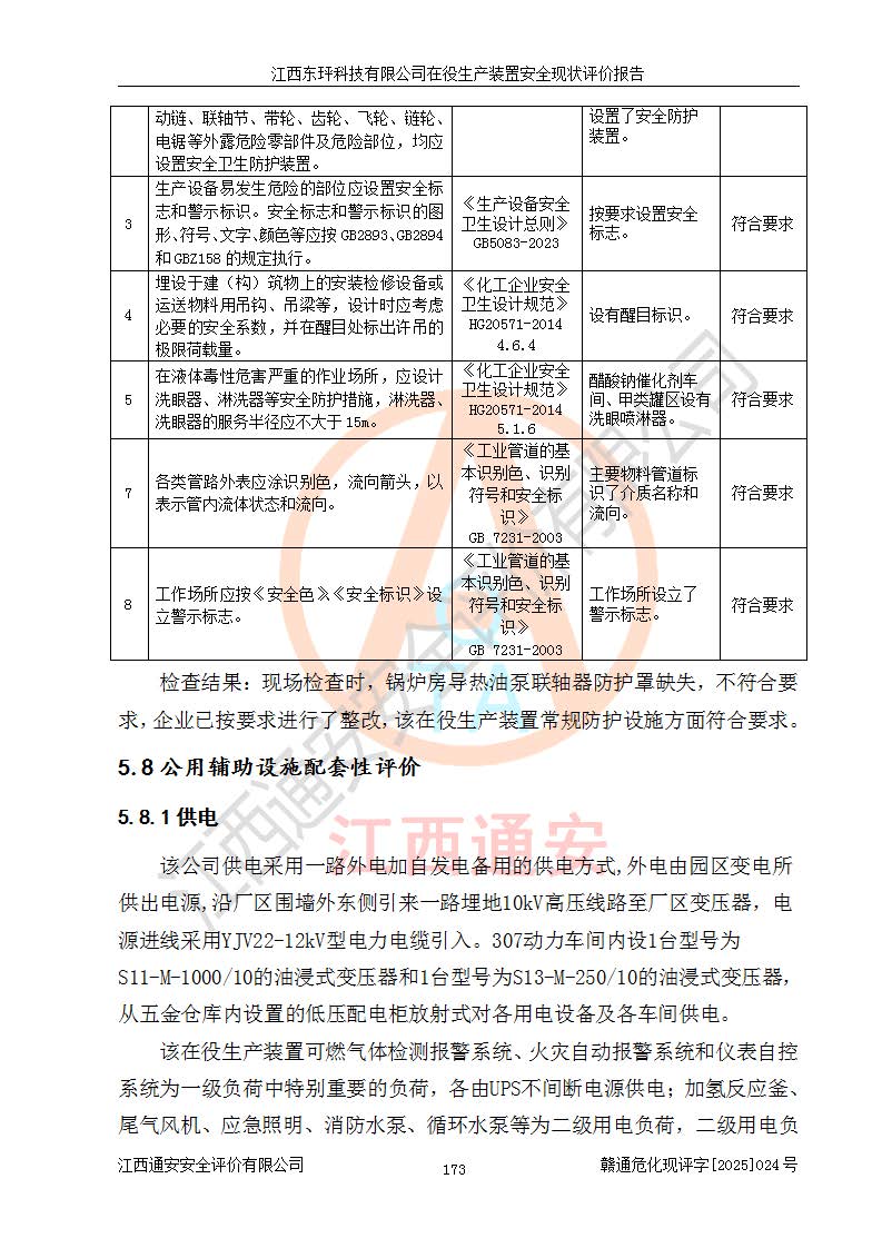 江西東玶科技有限公司位于江西省吉安市吉水縣城西工業(yè)園區(qū),法定**人為徐東,成立于2018年04月08日,注冊(cè)資本叁仟貳佰叁拾萬(wàn)元整,經(jīng)營(yíng)范圍為合成樟腦、α-蒎烯、β-蒎烯、二氫月桂烯(含月桂烯)、莰烯、雙戊烯、氫氣(中間產(chǎn)品)的制造加工(憑**批準(zhǔn)證書(shū)經(jīng)營(yíng));白乙酯、雙萜烯等合成香料的制造加工等。 江西東玶科技有限公司2022年08月01日取得了《安全生產(chǎn)許可證》,許可證編號(hào):(贛)WH安許證字[2022]1160號(hào),許可范圍為合成樟腦(2000t/a)、二氫月桂烯(1000t/a)、月桂烯(3200t/a)、莰烯(1000t/a)、雙戊烯(810t/a)、雙萜烯(1070t/a)、α-蒎烯(7500t/a)、β-蒎烯(3200t/a)、白乙酯(500t/a),**期為2022年08月01日至2025年07月31日。該公司2023年5月29日取得了三級(jí)安全生產(chǎn)標(biāo)準(zhǔn)化證書(shū),證書(shū)編號(hào):贛AQBWHⅢ202300036,**期至2026年5月。該公司現(xiàn)有員工53人,其中專職安全生產(chǎn)管理人員2人。 因生產(chǎn)經(jīng)營(yíng)需要,江西東玶科技有限公司實(shí)施了年產(chǎn)12000噸松節(jié)油深加工系列產(chǎn)品項(xiàng)目(二期),并將二氫月桂烯的設(shè)計(jì)生產(chǎn)規(guī)模2000t/a變更為1500t/a,減少中間產(chǎn)品蒎烷的消耗量,剩余的蒎烷(720t/a)作為產(chǎn)品銷售。江西東玶科技有限公司委托深圳天陽(yáng)工程設(shè)計(jì)有限公司進(jìn)行了設(shè)計(jì)變更,按程序要求進(jìn)行了試生產(chǎn),委托評(píng)價(jià)公司編制了安全驗(yàn)收評(píng)價(jià)報(bào)告,并于2025年1月16日組織專家組和相關(guān)單位進(jìn)行了驗(yàn)收。驗(yàn)收完成后,江西東玶科技有限公司2025年06月04日對(duì)《安全生產(chǎn)許可證》進(jìn)行了變更,許可范圍變更為合成樟腦(2000t/a)、二氫月桂烯(1500t/a)、月桂烯(3200t/a)、莰烯(1000t/a)、雙戊烯(902.5t/a)、雙萜烯(1200.7t/a)、α-蒎烯(7500t/a)、β-蒎烯(3200t/a)、白乙酯(500t/a)、蒎烷(中間產(chǎn)品,720t/a)。 江西東玶科技有限公司在役生產(chǎn)裝置生產(chǎn)過(guò)程中涉及的主要原輔材料為松節(jié)油、乙酸、液堿、甲醇、碳酸鈉、二甲苯、偏鈦酸、甲酸、硫酸銅、雷尼鎳、離子膜、天然氣、氮?dú)?,中間產(chǎn)品為氫氣、α-蒎烯、β-蒎烯、蒎烷,產(chǎn)品為合成樟腦、二氫月桂烯、月桂烯、莰烯、雙戊烯、白乙酯、雙萜烯,副產(chǎn)品為醋酸鈉。根據(jù)《危險(xiǎn)化學(xué)品目錄》,該在役生產(chǎn)裝置涉及的松節(jié)油、乙酸、液堿、甲醇、二甲苯、甲酸、雷尼鎳、天然氣(燃料)、氮?dú)猓▔嚎s的)、柴油,中間產(chǎn)品α-蒎烯、β-蒎烯、氫氣、蒎烷和產(chǎn)品中合成樟腦、二氫月桂烯、月桂烯、莰烯、雙戊烯屬于危險(xiǎn)化學(xué)品。經(jīng)辨識(shí),甲醇、氫氣和天然氣(燃料)屬于重點(diǎn)監(jiān)管的危險(xiǎn)化學(xué)品,甲醇屬于特別管控的危險(xiǎn)化學(xué)品,不涉及監(jiān)控化學(xué)品、易制毒化學(xué)品、易制爆危險(xiǎn)化學(xué)品、劇毒化學(xué)品和高毒物品,生產(chǎn)、儲(chǔ)存單元不構(gòu)成危險(xiǎn)化學(xué)品重大危險(xiǎn)源,涉及的加氫工藝屬于重點(diǎn)監(jiān)管的危險(xiǎn)化工工藝。根據(jù)生產(chǎn)工藝特點(diǎn)及物料的理化特性可知,該在役生產(chǎn)裝置生產(chǎn)過(guò)程中存在火災(zāi)與爆炸、中毒與窒息、觸電、機(jī)械傷害、灼燙等危險(xiǎn)有害因素。 該公司自2022年08月01日取得安全生產(chǎn)許可證以來(lái),生產(chǎn)運(yùn)行正常,未發(fā)生一般及以上生產(chǎn)安全事故。 |
