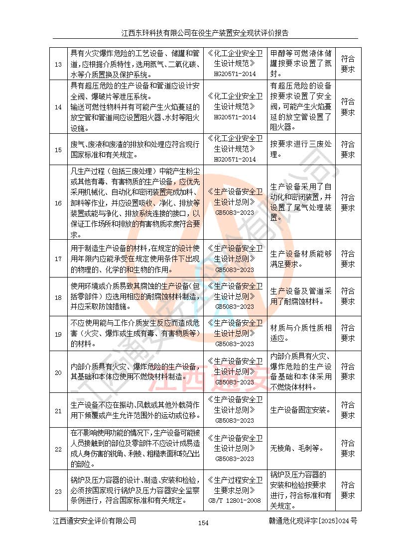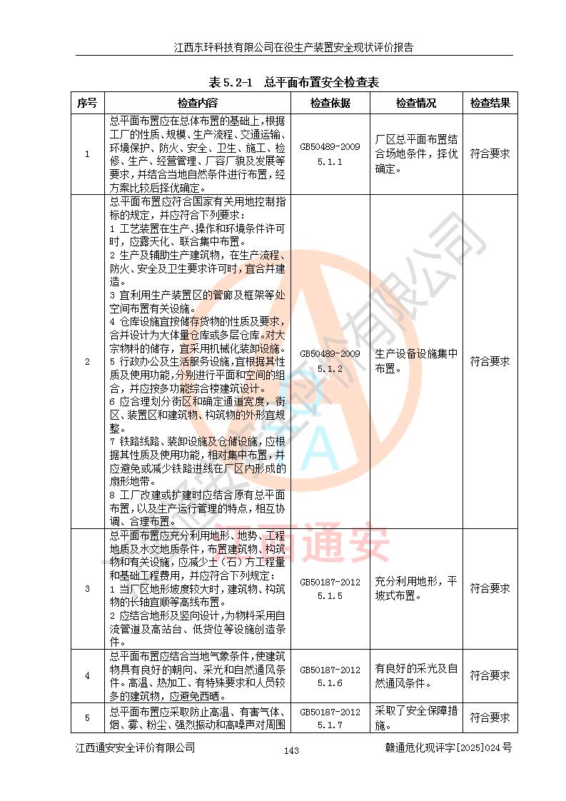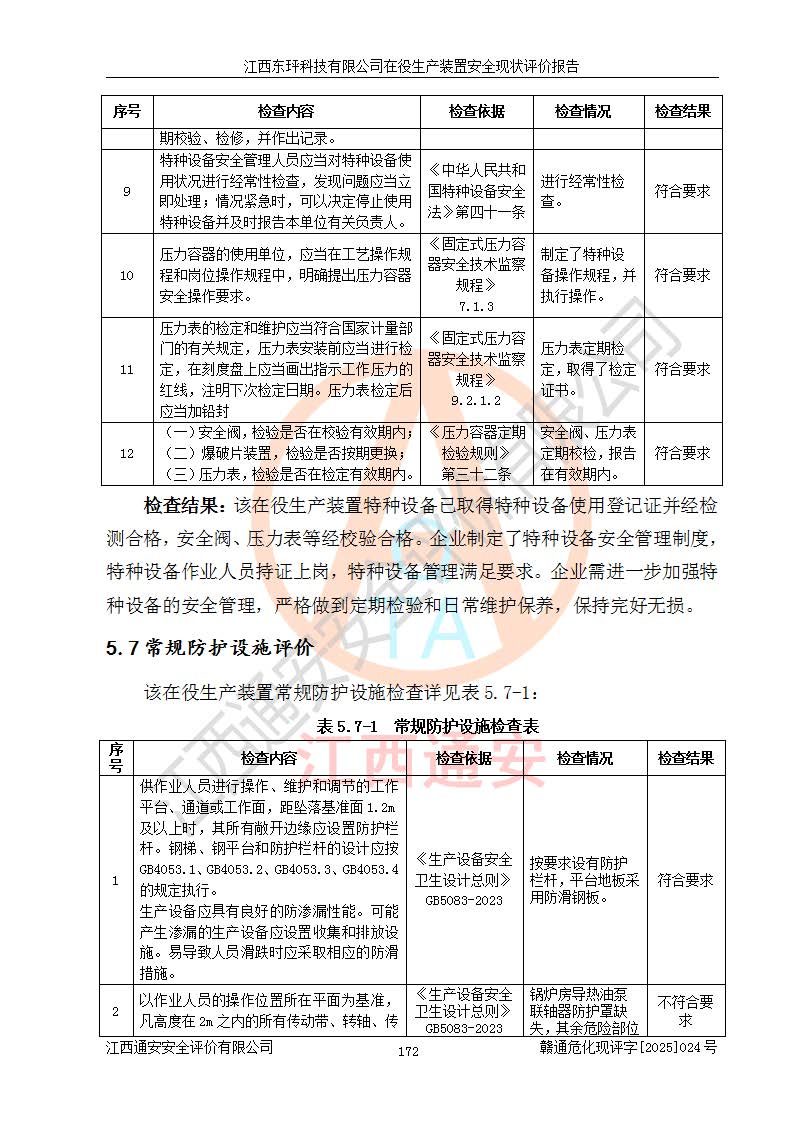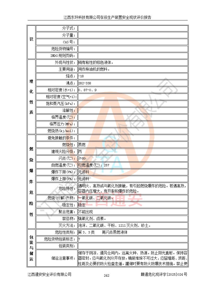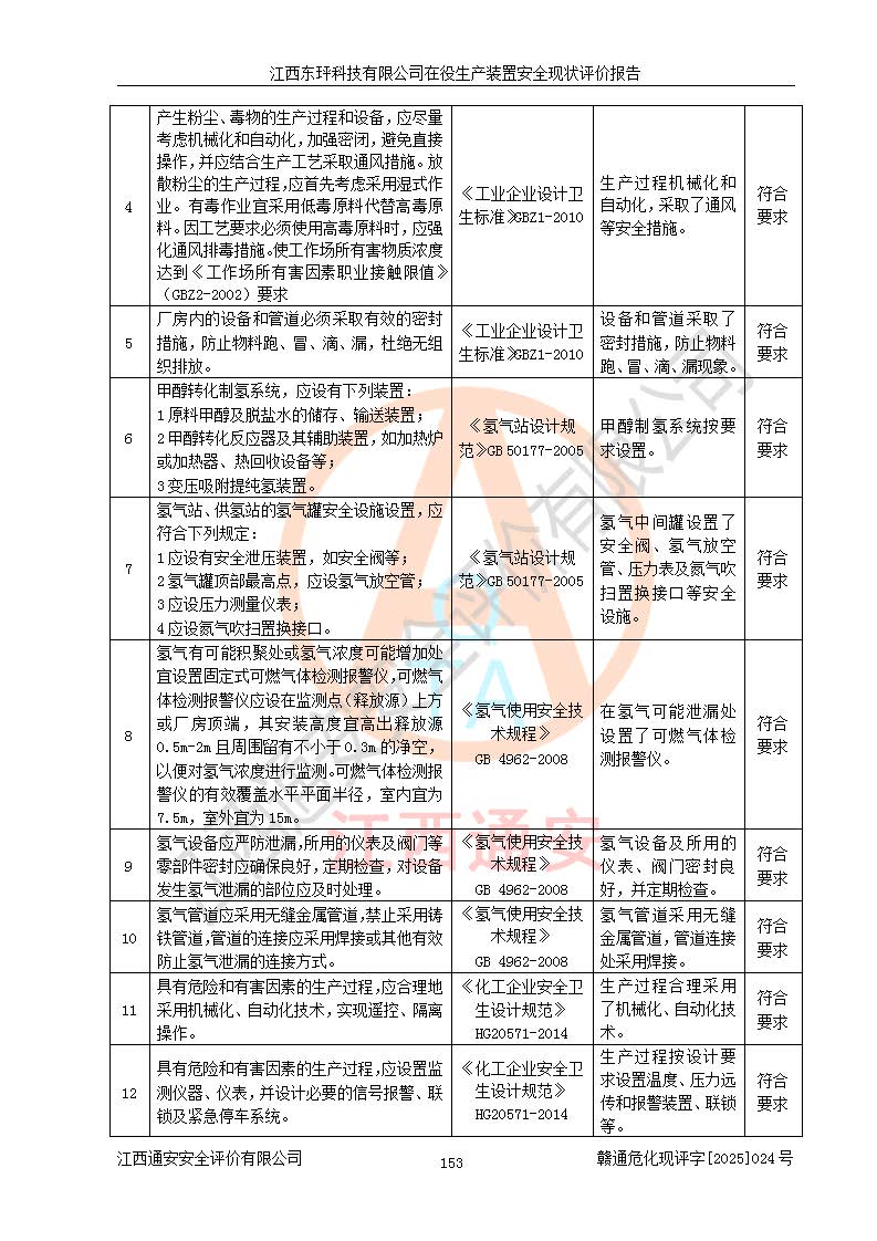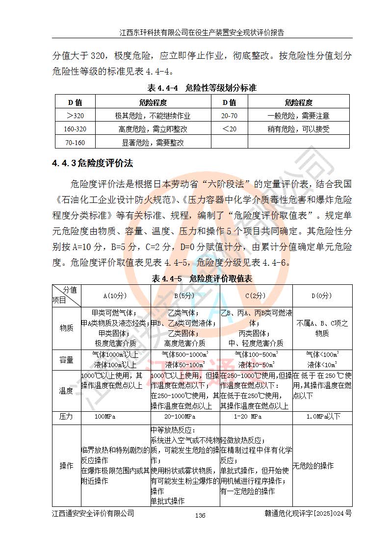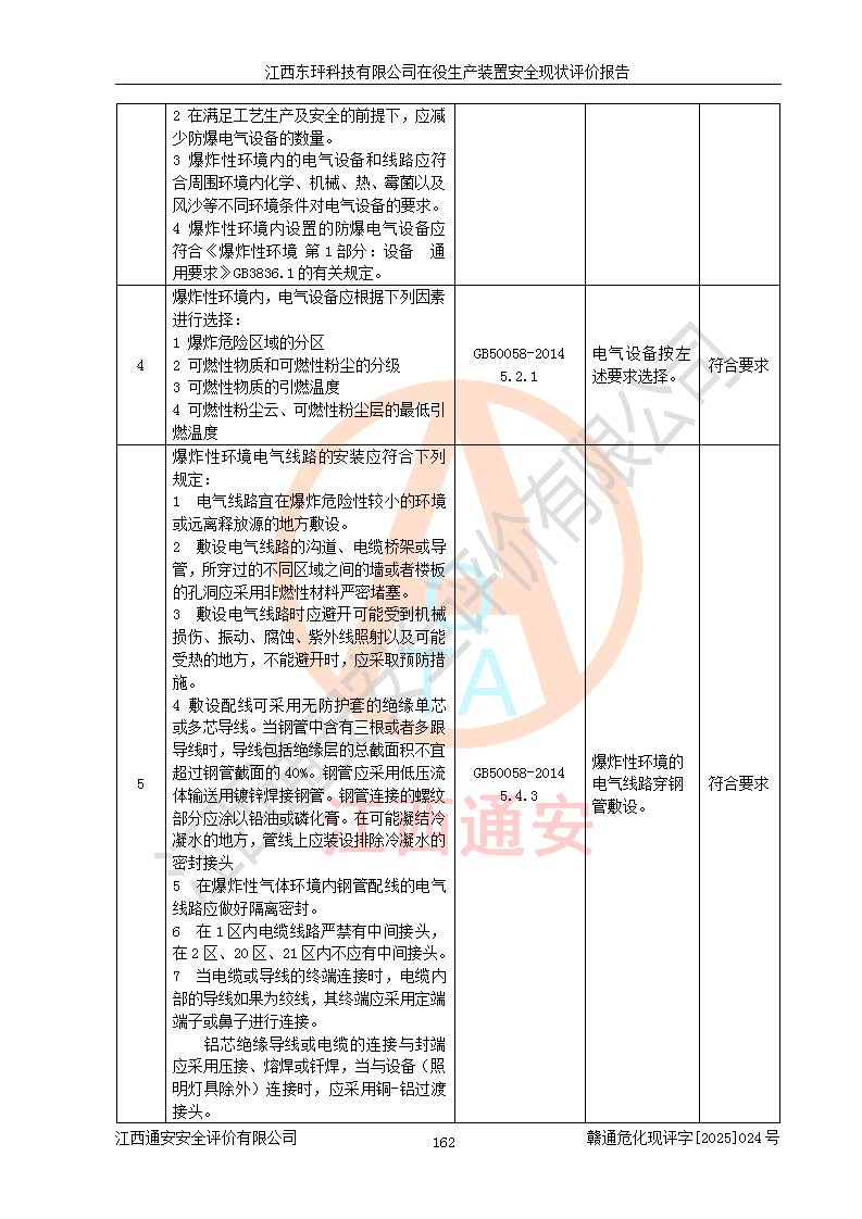 江西東玶科技有限公司位于江西省吉安市吉水縣城西工業(yè)園區(qū),法定**人為徐東,成立于2018年04月08日,注冊(cè)資本叁仟貳佰叁拾萬(wàn)元整,經(jīng)營(yíng)范圍為合成樟腦、α-蒎烯、β-蒎烯、二氫月桂烯(含月桂烯)、莰烯、雙戊烯、氫氣(中間產(chǎn)品)的制造加工(憑**批準(zhǔn)證書(shū)經(jīng)營(yíng));白乙酯、雙萜烯等合成香料的制造加工等。 江西東玶科技有限公司2022年08月01日取得了《安全生產(chǎn)許可證》,許可證編號(hào):(贛)WH安許證字[2022]1160號(hào),許可范圍為合成樟腦(2000t/a)、二氫月桂烯(1000t/a)、月桂烯(3200t/a)、莰烯(1000t/a)、雙戊烯(810t/a)、雙萜烯(1070t/a)、α-蒎烯(7500t/a)、β-蒎烯(3200t/a)、白乙酯(500t/a),**期為2022年08月01日至2025年07月31日。該公司2023年5月29日取得了三級(jí)安全生產(chǎn)標(biāo)準(zhǔn)化證書(shū),證書(shū)編號(hào):贛AQBWHⅢ202300036,**期至2026年5月。該公司現(xiàn)有員工53人,其中專職安全生產(chǎn)管理人員2人。 因生產(chǎn)經(jīng)營(yíng)需要,江西東玶科技有限公司實(shí)施了年產(chǎn)12000噸松節(jié)油深加工系列產(chǎn)品項(xiàng)目(二期),并將二氫月桂烯的設(shè)計(jì)生產(chǎn)規(guī)模2000t/a變更為1500t/a,減少中間產(chǎn)品蒎烷的消耗量,剩余的蒎烷(720t/a)作為產(chǎn)品銷售。江西東玶科技有限公司委托深圳天陽(yáng)工程設(shè)計(jì)有限公司進(jìn)行了設(shè)計(jì)變更,按程序要求進(jìn)行了試生產(chǎn),委托評(píng)價(jià)公司編制了安全驗(yàn)收評(píng)價(jià)報(bào)告,并于2025年1月16日組織專家組和相關(guān)單位進(jìn)行了驗(yàn)收。驗(yàn)收完成后,江西東玶科技有限公司2025年06月04日對(duì)《安全生產(chǎn)許可證》進(jìn)行了變更,許可范圍變更為合成樟腦(2000t/a)、二氫月桂烯(1500t/a)、月桂烯(3200t/a)、莰烯(1000t/a)、雙戊烯(902.5t/a)、雙萜烯(1200.7t/a)、α-蒎烯(7500t/a)、β-蒎烯(3200t/a)、白乙酯(500t/a)、蒎烷(中間產(chǎn)品,720t/a)。 江西東玶科技有限公司在役生產(chǎn)裝置生產(chǎn)過(guò)程中涉及的主要原輔材料為松節(jié)油、乙酸、液堿、甲醇、碳酸鈉、二甲苯、偏鈦酸、甲酸、硫酸銅、雷尼鎳、離子膜、天然氣、氮?dú)?,中間產(chǎn)品為氫氣、α-蒎烯、β-蒎烯、蒎烷,產(chǎn)品為合成樟腦、二氫月桂烯、月桂烯、莰烯、雙戊烯、白乙酯、雙萜烯,副產(chǎn)品為醋酸鈉。根據(jù)《危險(xiǎn)化學(xué)品目錄》,該在役生產(chǎn)裝置涉及的松節(jié)油、乙酸、液堿、甲醇、二甲苯、甲酸、雷尼鎳、天然氣(燃料)、氮?dú)猓▔嚎s的)、柴油,中間產(chǎn)品α-蒎烯、β-蒎烯、氫氣、蒎烷和產(chǎn)品中合成樟腦、二氫月桂烯、月桂烯、莰烯、雙戊烯屬于危險(xiǎn)化學(xué)品。經(jīng)辨識(shí),甲醇、氫氣和天然氣(燃料)屬于重點(diǎn)監(jiān)管的危險(xiǎn)化學(xué)品,甲醇屬于特別管控的危險(xiǎn)化學(xué)品,不涉及監(jiān)控化學(xué)品、易制毒化學(xué)品、易制爆危險(xiǎn)化學(xué)品、劇毒化學(xué)品和高毒物品,生產(chǎn)、儲(chǔ)存單元不構(gòu)成危險(xiǎn)化學(xué)品重大危險(xiǎn)源,涉及的加氫工藝屬于重點(diǎn)監(jiān)管的危險(xiǎn)化工工藝。根據(jù)生產(chǎn)工藝特點(diǎn)及物料的理化特性可知,該在役生產(chǎn)裝置生產(chǎn)過(guò)程中存在火災(zāi)與爆炸、中毒與窒息、觸電、機(jī)械傷害、灼燙等危險(xiǎn)有害因素。 該公司自2022年08月01日取得安全生產(chǎn)許可證以來(lái),生產(chǎn)運(yùn)行正常,未發(fā)生一般及以上生產(chǎn)安全事故。 |