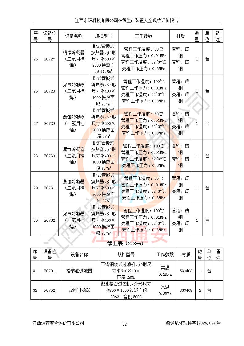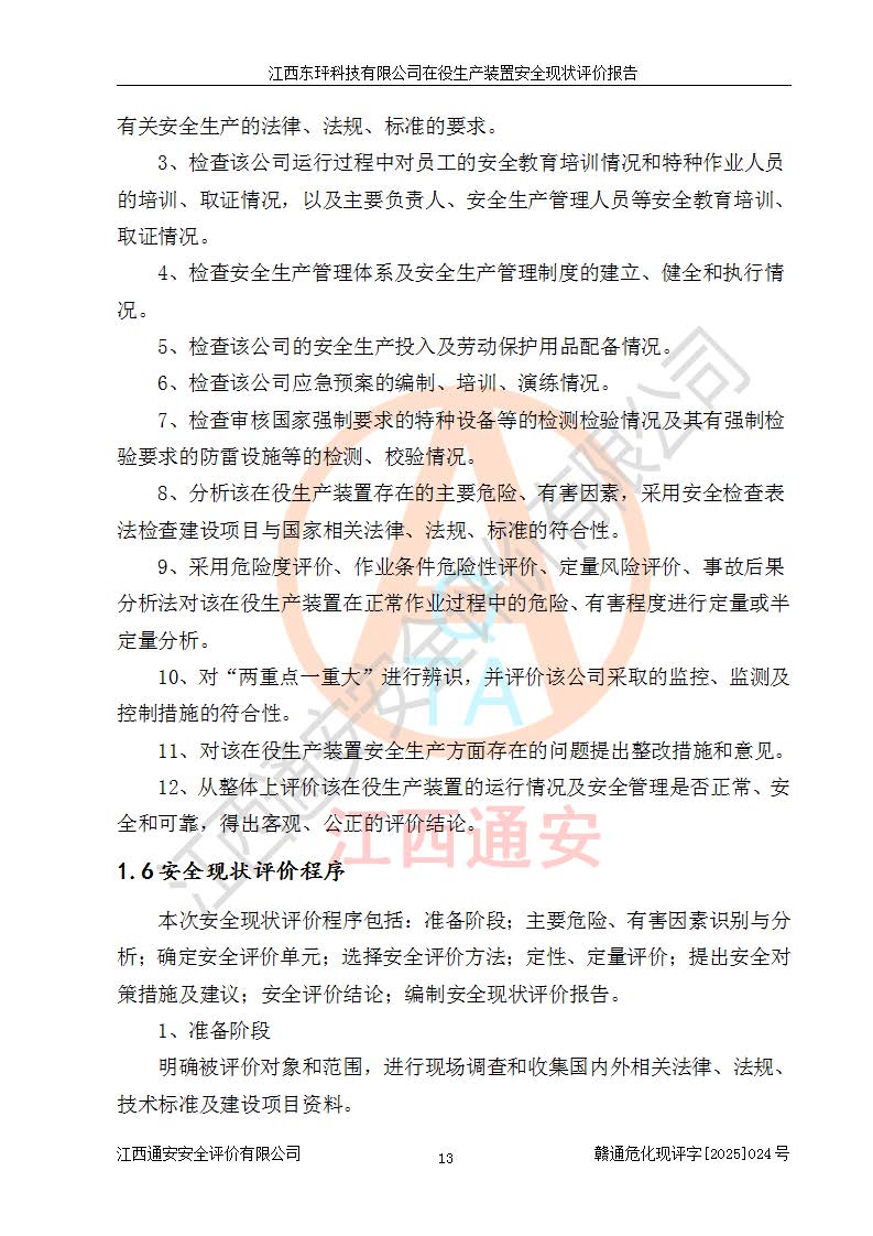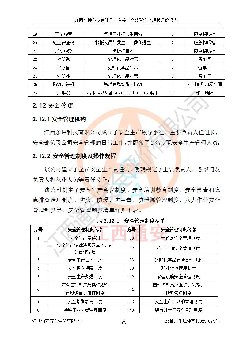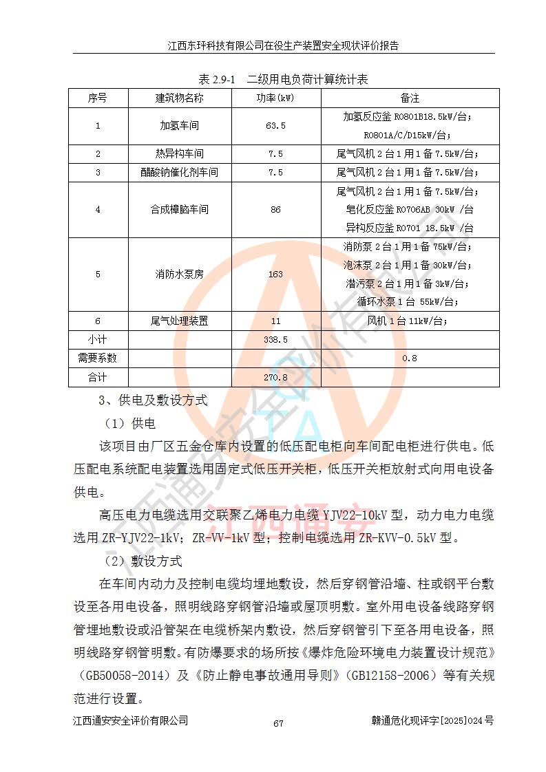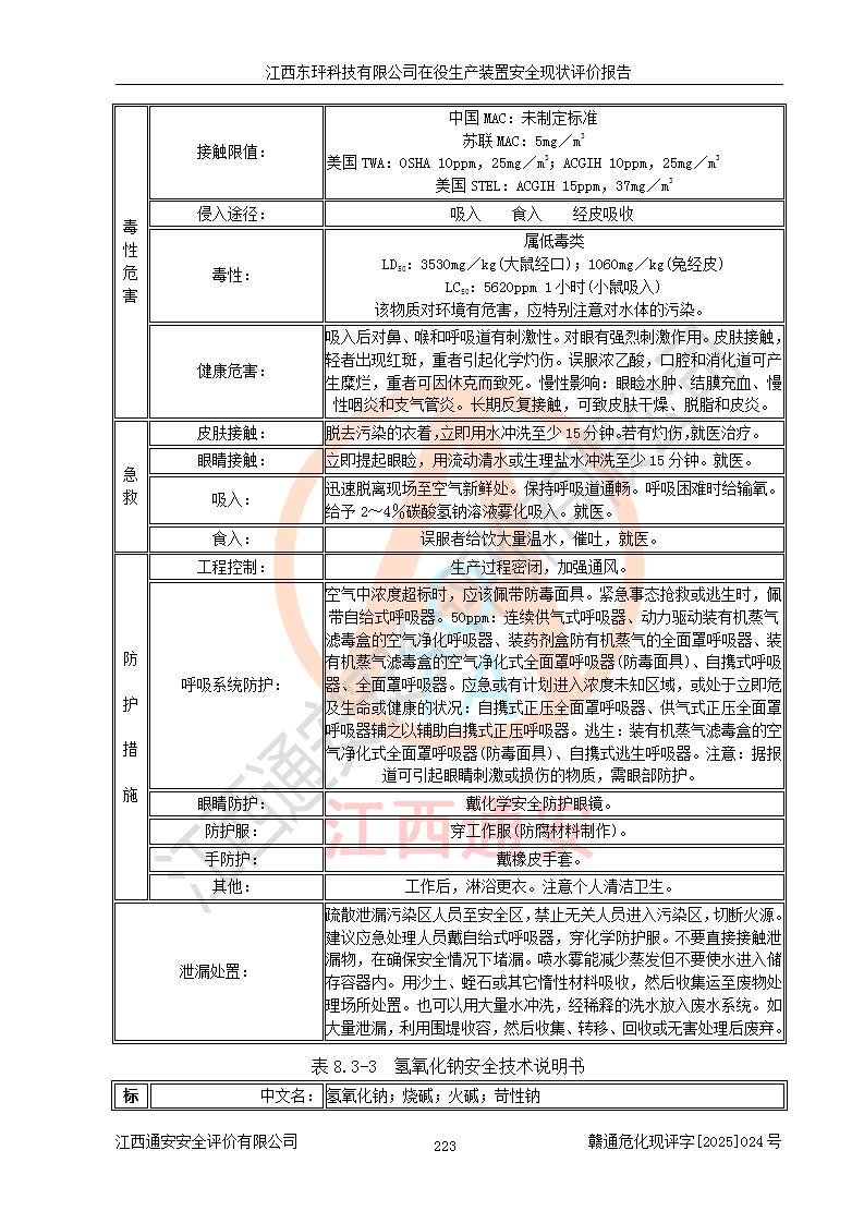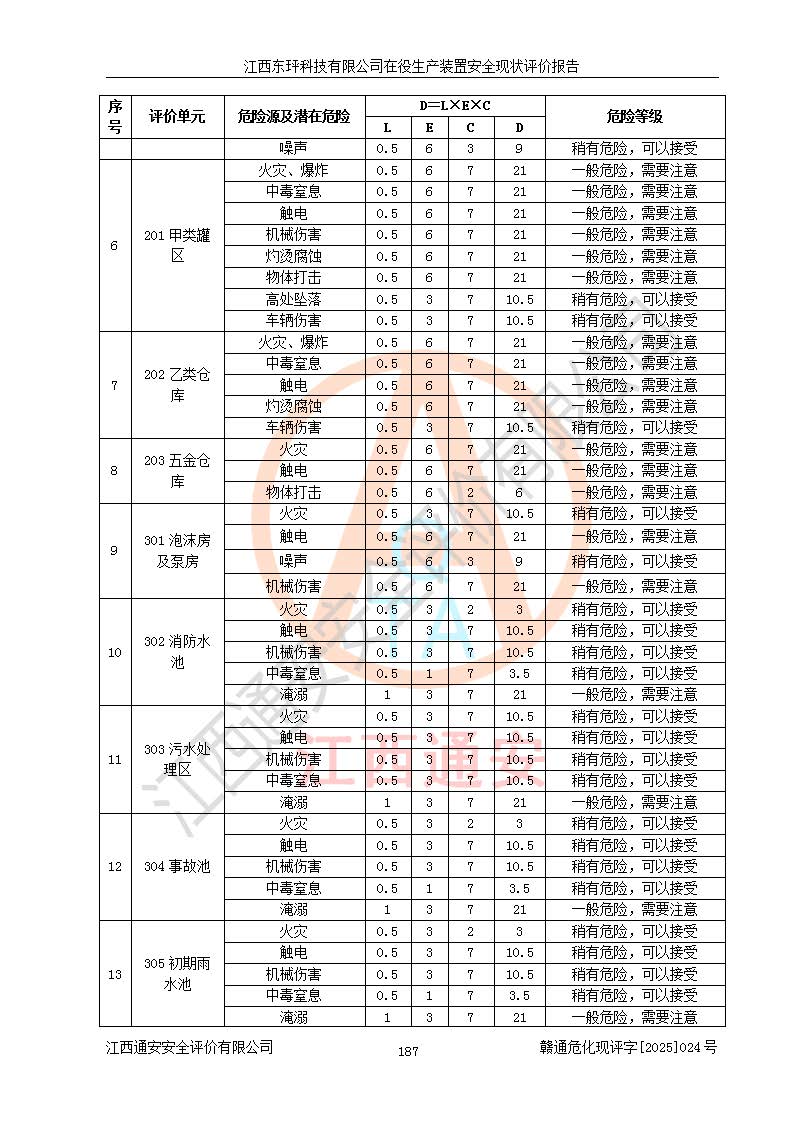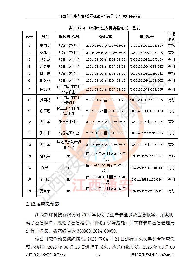 江西東玶科技有限公司位于江西省吉安市吉水縣城西工業(yè)園區(qū),法定**人為徐東,成立于2018年04月08日,注冊(cè)資本叁仟貳佰叁拾萬(wàn)元整,經(jīng)營(yíng)范圍為合成樟腦、α-蒎烯、β-蒎烯、二氫月桂烯(含月桂烯)、莰烯、雙戊烯、氫氣(中間產(chǎn)品)的制造加工(憑**批準(zhǔn)證書(shū)經(jīng)營(yíng));白乙酯、雙萜烯等合成香料的制造加工等。 江西東玶科技有限公司2022年08月01日取得了《安全生產(chǎn)許可證》,許可證編號(hào):(贛)WH安許證字[2022]1160號(hào),許可范圍為合成樟腦(2000t/a)、二氫月桂烯(1000t/a)、月桂烯(3200t/a)、莰烯(1000t/a)、雙戊烯(810t/a)、雙萜烯(1070t/a)、α-蒎烯(7500t/a)、β-蒎烯(3200t/a)、白乙酯(500t/a),**期為2022年08月01日至2025年07月31日。該公司2023年5月29日取得了三級(jí)安全生產(chǎn)標(biāo)準(zhǔn)化證書(shū),證書(shū)編號(hào):贛AQBWHⅢ202300036,**期至2026年5月。該公司現(xiàn)有員工53人,其中專職安全生產(chǎn)管理人員2人。 因生產(chǎn)經(jīng)營(yíng)需要,江西東玶科技有限公司實(shí)施了年產(chǎn)12000噸松節(jié)油深加工系列產(chǎn)品項(xiàng)目(二期),并將二氫月桂烯的設(shè)計(jì)生產(chǎn)規(guī)模2000t/a變更為1500t/a,減少中間產(chǎn)品蒎烷的消耗量,剩余的蒎烷(720t/a)作為產(chǎn)品銷售。江西東玶科技有限公司委托深圳天陽(yáng)工程設(shè)計(jì)有限公司進(jìn)行了設(shè)計(jì)變更,按程序要求進(jìn)行了試生產(chǎn),委托評(píng)價(jià)公司編制了安全驗(yàn)收評(píng)價(jià)報(bào)告,并于2025年1月16日組織專家組和相關(guān)單位進(jìn)行了驗(yàn)收。驗(yàn)收完成后,江西東玶科技有限公司2025年06月04日對(duì)《安全生產(chǎn)許可證》進(jìn)行了變更,許可范圍變更為合成樟腦(2000t/a)、二氫月桂烯(1500t/a)、月桂烯(3200t/a)、莰烯(1000t/a)、雙戊烯(902.5t/a)、雙萜烯(1200.7t/a)、α-蒎烯(7500t/a)、β-蒎烯(3200t/a)、白乙酯(500t/a)、蒎烷(中間產(chǎn)品,720t/a)。 江西東玶科技有限公司在役生產(chǎn)裝置生產(chǎn)過(guò)程中涉及的主要原輔材料為松節(jié)油、乙酸、液堿、甲醇、碳酸鈉、二甲苯、偏鈦酸、甲酸、硫酸銅、雷尼鎳、離子膜、天然氣、氮?dú)?,中間產(chǎn)品為氫氣、α-蒎烯、β-蒎烯、蒎烷,產(chǎn)品為合成樟腦、二氫月桂烯、月桂烯、莰烯、雙戊烯、白乙酯、雙萜烯,副產(chǎn)品為醋酸鈉。根據(jù)《危險(xiǎn)化學(xué)品目錄》,該在役生產(chǎn)裝置涉及的松節(jié)油、乙酸、液堿、甲醇、二甲苯、甲酸、雷尼鎳、天然氣(燃料)、氮?dú)猓▔嚎s的)、柴油,中間產(chǎn)品α-蒎烯、β-蒎烯、氫氣、蒎烷和產(chǎn)品中合成樟腦、二氫月桂烯、月桂烯、莰烯、雙戊烯屬于危險(xiǎn)化學(xué)品。經(jīng)辨識(shí),甲醇、氫氣和天然氣(燃料)屬于重點(diǎn)監(jiān)管的危險(xiǎn)化學(xué)品,甲醇屬于特別管控的危險(xiǎn)化學(xué)品,不涉及監(jiān)控化學(xué)品、易制毒化學(xué)品、易制爆危險(xiǎn)化學(xué)品、劇毒化學(xué)品和高毒物品,生產(chǎn)、儲(chǔ)存單元不構(gòu)成危險(xiǎn)化學(xué)品重大危險(xiǎn)源,涉及的加氫工藝屬于重點(diǎn)監(jiān)管的危險(xiǎn)化工工藝。根據(jù)生產(chǎn)工藝特點(diǎn)及物料的理化特性可知,該在役生產(chǎn)裝置生產(chǎn)過(guò)程中存在火災(zāi)與爆炸、中毒與窒息、觸電、機(jī)械傷害、灼燙等危險(xiǎn)有害因素。 該公司自2022年08月01日取得安全生產(chǎn)許可證以來(lái),生產(chǎn)運(yùn)行正常,未發(fā)生一般及以上生產(chǎn)安全事故。 |