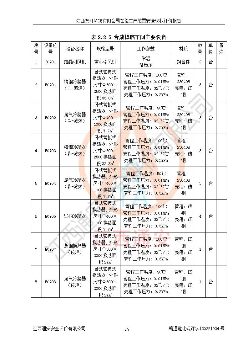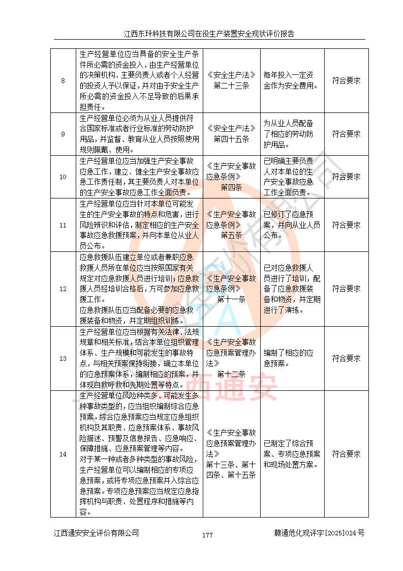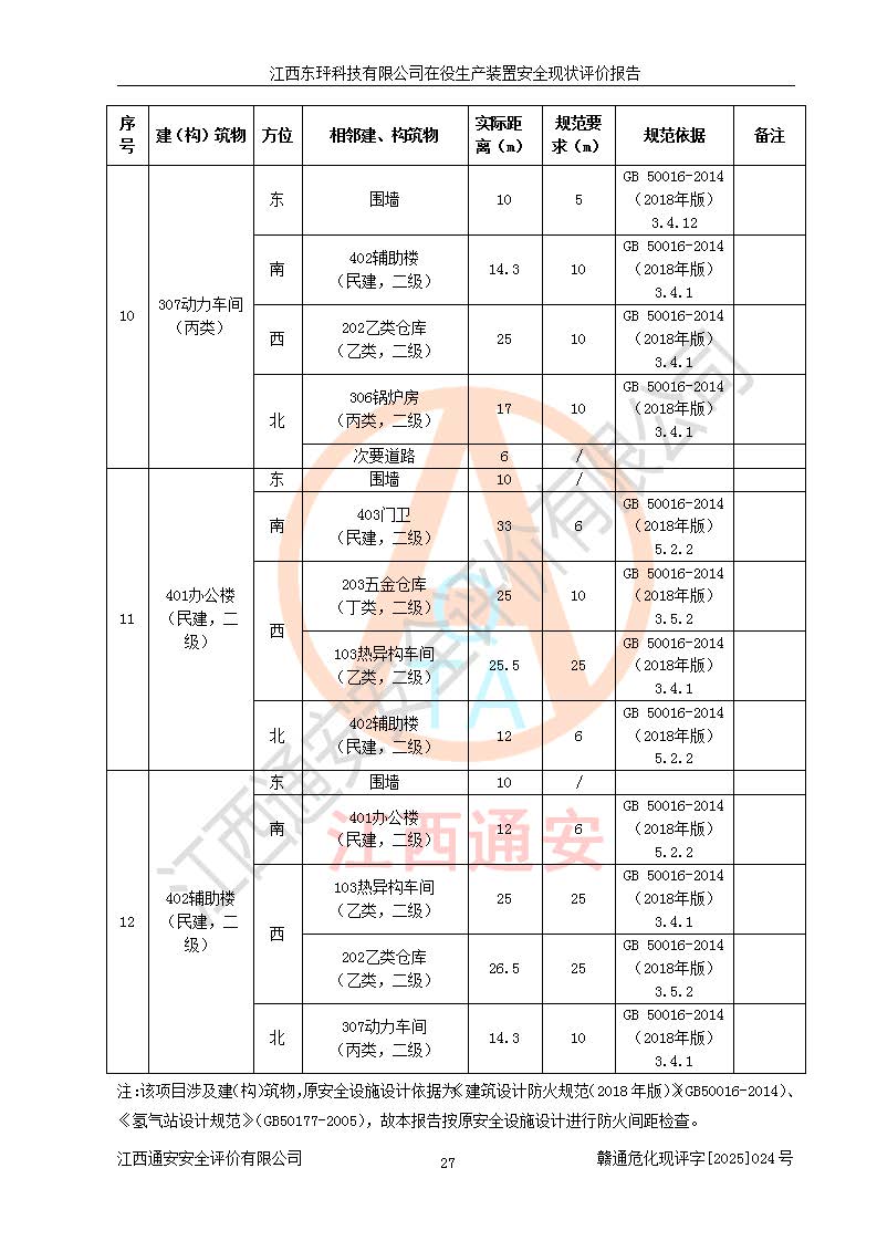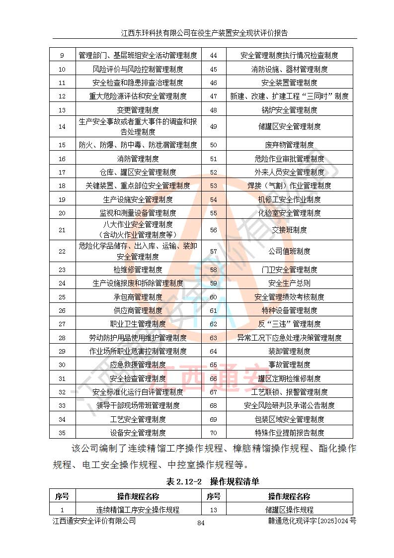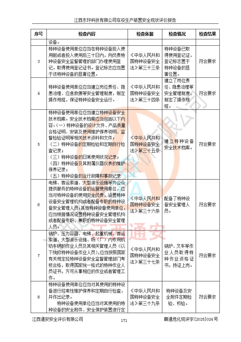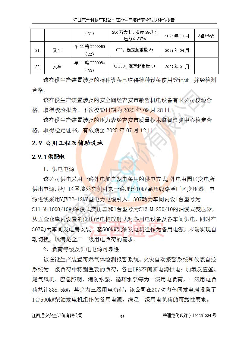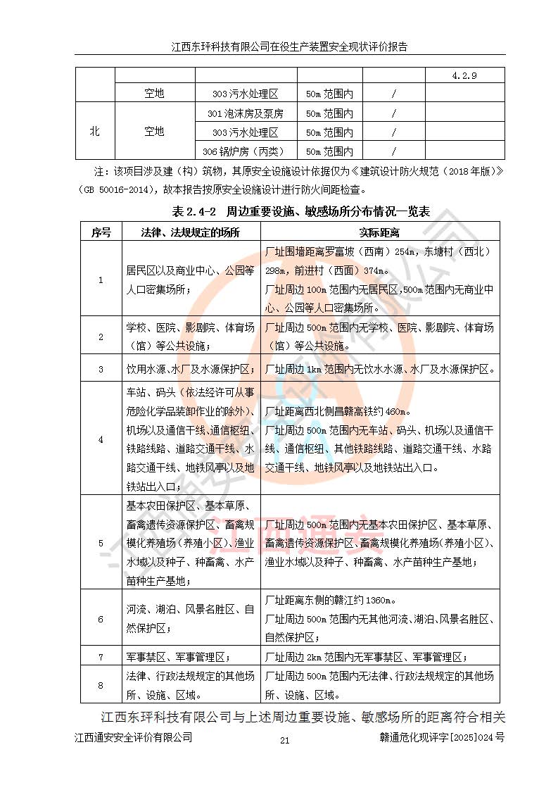 江西東玶科技有限公司位于江西省吉安市吉水縣城西工業(yè)園區(qū),法定**人為徐東,成立于2018年04月08日,注冊(cè)資本叁仟貳佰叁拾萬(wàn)元整,經(jīng)營(yíng)范圍為合成樟腦、α-蒎烯、β-蒎烯、二氫月桂烯(含月桂烯)、莰烯、雙戊烯、氫氣(中間產(chǎn)品)的制造加工(憑**批準(zhǔn)證書(shū)經(jīng)營(yíng));白乙酯、雙萜烯等合成香料的制造加工等。 江西東玶科技有限公司2022年08月01日取得了《安全生產(chǎn)許可證》,許可證編號(hào):(贛)WH安許證字[2022]1160號(hào),許可范圍為合成樟腦(2000t/a)、二氫月桂烯(1000t/a)、月桂烯(3200t/a)、莰烯(1000t/a)、雙戊烯(810t/a)、雙萜烯(1070t/a)、α-蒎烯(7500t/a)、β-蒎烯(3200t/a)、白乙酯(500t/a),**期為2022年08月01日至2025年07月31日。該公司2023年5月29日取得了三級(jí)安全生產(chǎn)標(biāo)準(zhǔn)化證書(shū),證書(shū)編號(hào):贛AQBWHⅢ202300036,**期至2026年5月。該公司現(xiàn)有員工53人,其中專職安全生產(chǎn)管理人員2人。 因生產(chǎn)經(jīng)營(yíng)需要,江西東玶科技有限公司實(shí)施了年產(chǎn)12000噸松節(jié)油深加工系列產(chǎn)品項(xiàng)目(二期),并將二氫月桂烯的設(shè)計(jì)生產(chǎn)規(guī)模2000t/a變更為1500t/a,減少中間產(chǎn)品蒎烷的消耗量,剩余的蒎烷(720t/a)作為產(chǎn)品銷售。江西東玶科技有限公司委托深圳天陽(yáng)工程設(shè)計(jì)有限公司進(jìn)行了設(shè)計(jì)變更,按程序要求進(jìn)行了試生產(chǎn),委托評(píng)價(jià)公司編制了安全驗(yàn)收評(píng)價(jià)報(bào)告,并于2025年1月16日組織專家組和相關(guān)單位進(jìn)行了驗(yàn)收。驗(yàn)收完成后,江西東玶科技有限公司2025年06月04日對(duì)《安全生產(chǎn)許可證》進(jìn)行了變更,許可范圍變更為合成樟腦(2000t/a)、二氫月桂烯(1500t/a)、月桂烯(3200t/a)、莰烯(1000t/a)、雙戊烯(902.5t/a)、雙萜烯(1200.7t/a)、α-蒎烯(7500t/a)、β-蒎烯(3200t/a)、白乙酯(500t/a)、蒎烷(中間產(chǎn)品,720t/a)。 江西東玶科技有限公司在役生產(chǎn)裝置生產(chǎn)過(guò)程中涉及的主要原輔材料為松節(jié)油、乙酸、液堿、甲醇、碳酸鈉、二甲苯、偏鈦酸、甲酸、硫酸銅、雷尼鎳、離子膜、天然氣、氮?dú)?,中間產(chǎn)品為氫氣、α-蒎烯、β-蒎烯、蒎烷,產(chǎn)品為合成樟腦、二氫月桂烯、月桂烯、莰烯、雙戊烯、白乙酯、雙萜烯,副產(chǎn)品為醋酸鈉。根據(jù)《危險(xiǎn)化學(xué)品目錄》,該在役生產(chǎn)裝置涉及的松節(jié)油、乙酸、液堿、甲醇、二甲苯、甲酸、雷尼鎳、天然氣(燃料)、氮?dú)猓▔嚎s的)、柴油,中間產(chǎn)品α-蒎烯、β-蒎烯、氫氣、蒎烷和產(chǎn)品中合成樟腦、二氫月桂烯、月桂烯、莰烯、雙戊烯屬于危險(xiǎn)化學(xué)品。經(jīng)辨識(shí),甲醇、氫氣和天然氣(燃料)屬于重點(diǎn)監(jiān)管的危險(xiǎn)化學(xué)品,甲醇屬于特別管控的危險(xiǎn)化學(xué)品,不涉及監(jiān)控化學(xué)品、易制毒化學(xué)品、易制爆危險(xiǎn)化學(xué)品、劇毒化學(xué)品和高毒物品,生產(chǎn)、儲(chǔ)存單元不構(gòu)成危險(xiǎn)化學(xué)品重大危險(xiǎn)源,涉及的加氫工藝屬于重點(diǎn)監(jiān)管的危險(xiǎn)化工工藝。根據(jù)生產(chǎn)工藝特點(diǎn)及物料的理化特性可知,該在役生產(chǎn)裝置生產(chǎn)過(guò)程中存在火災(zāi)與爆炸、中毒與窒息、觸電、機(jī)械傷害、灼燙等危險(xiǎn)有害因素。 該公司自2022年08月01日取得安全生產(chǎn)許可證以來(lái),生產(chǎn)運(yùn)行正常,未發(fā)生一般及以上生產(chǎn)安全事故。 |