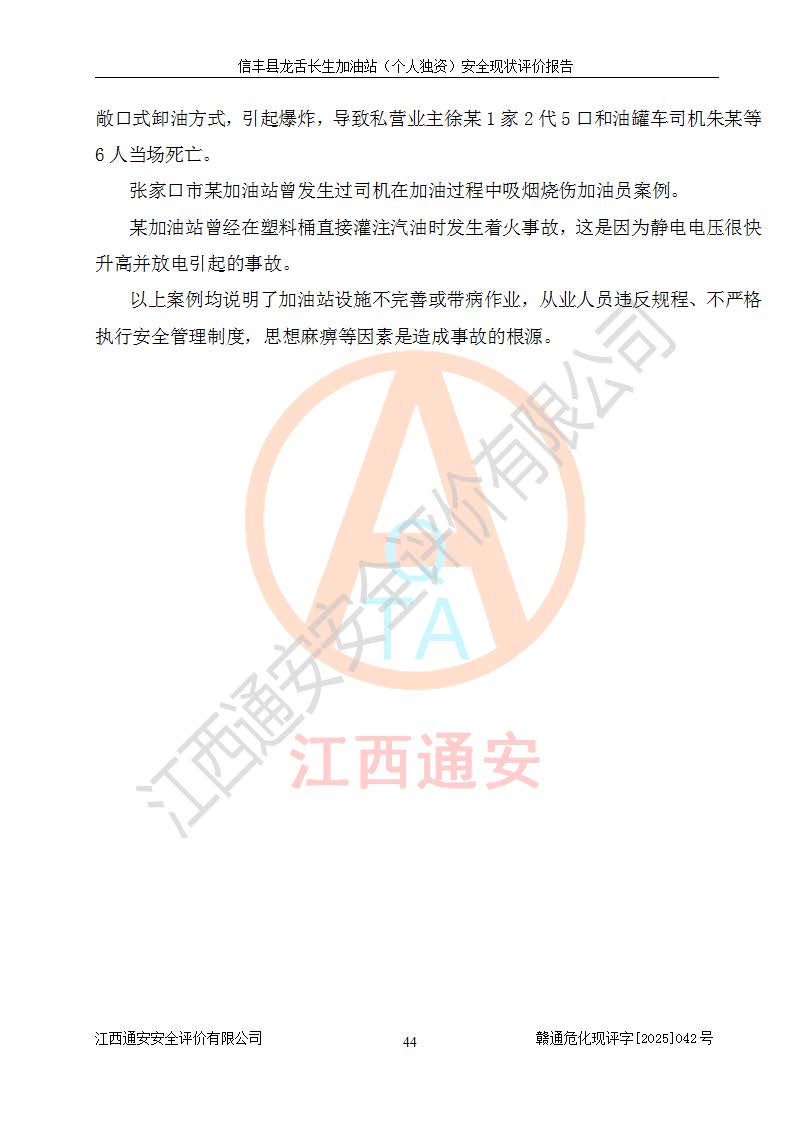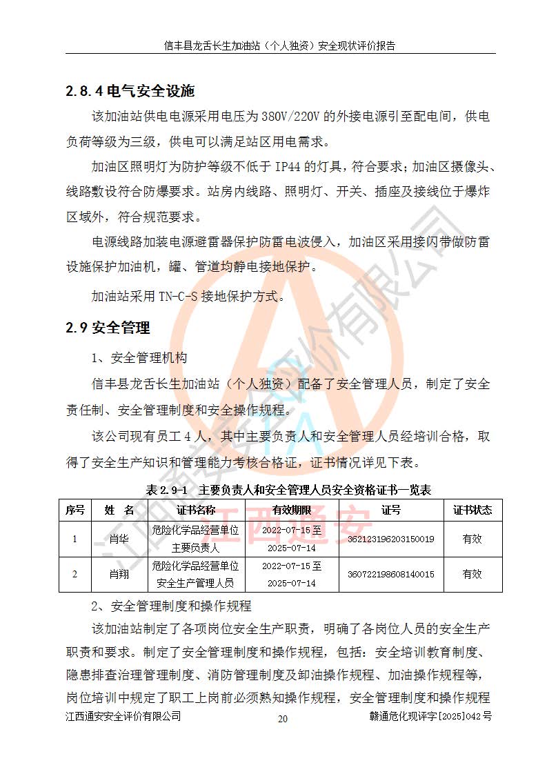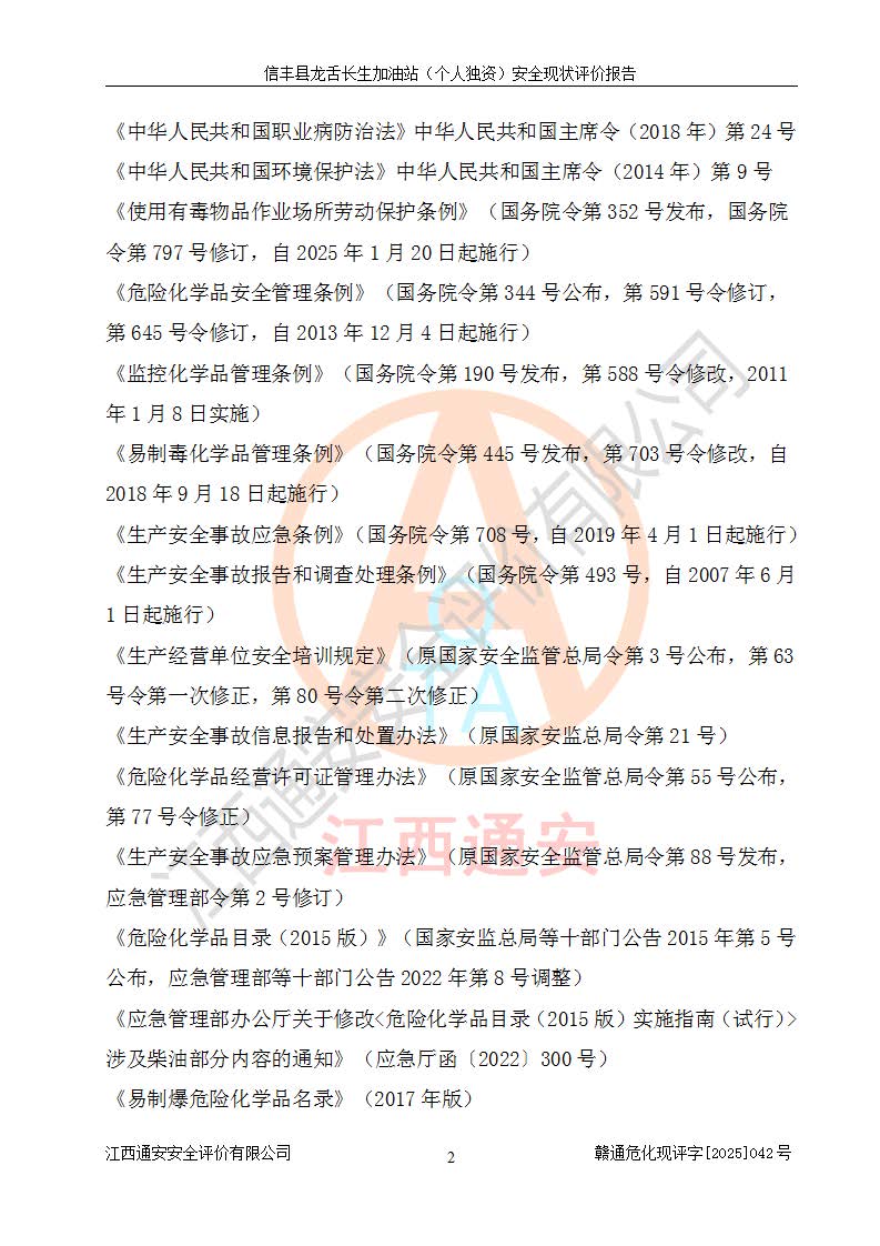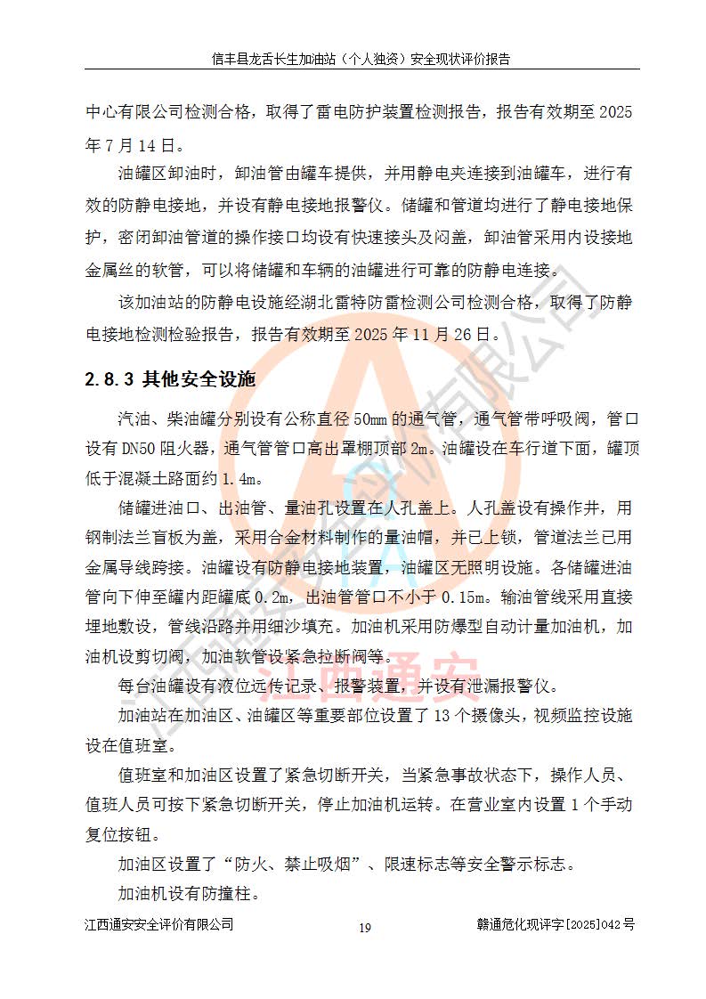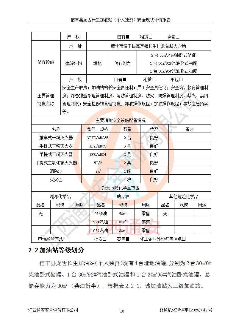 評價報告名稱 | 信豐縣龍舌長生加油站(個人獨資)安全現(xiàn)狀評價報告 | |||