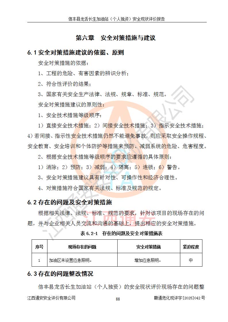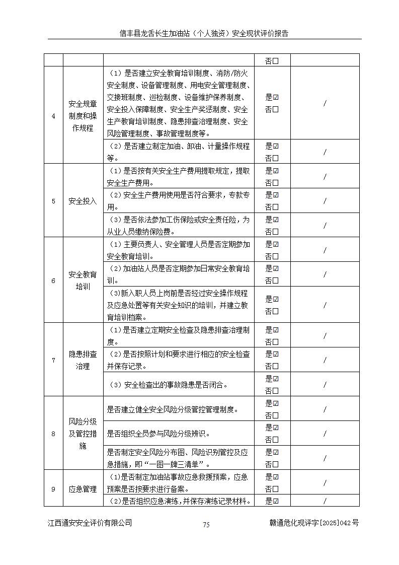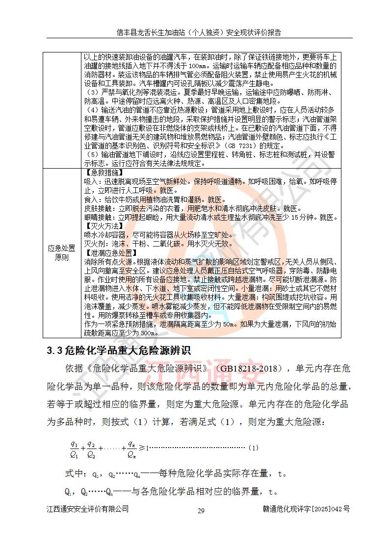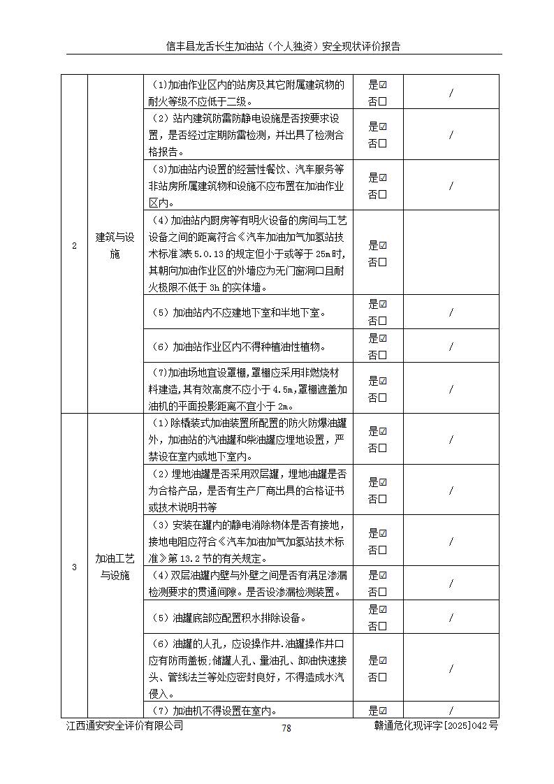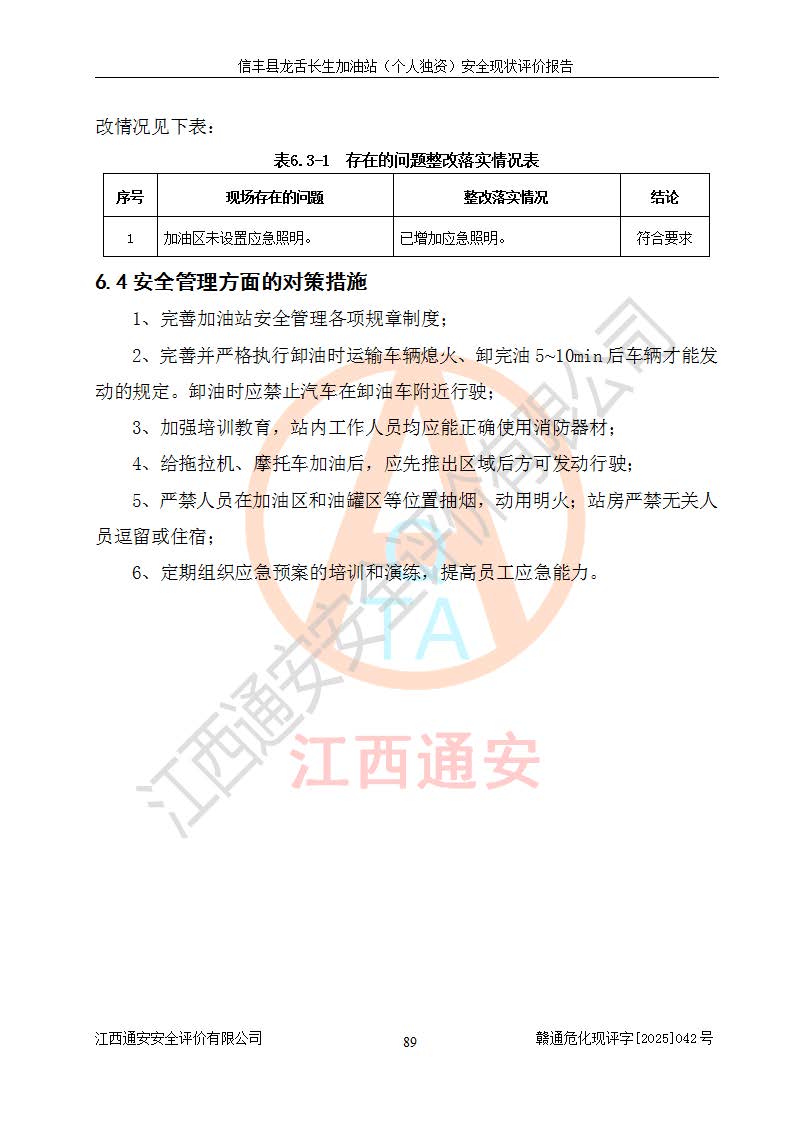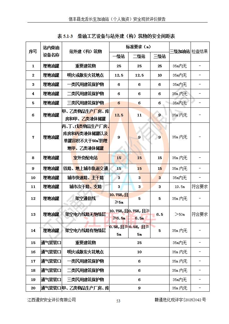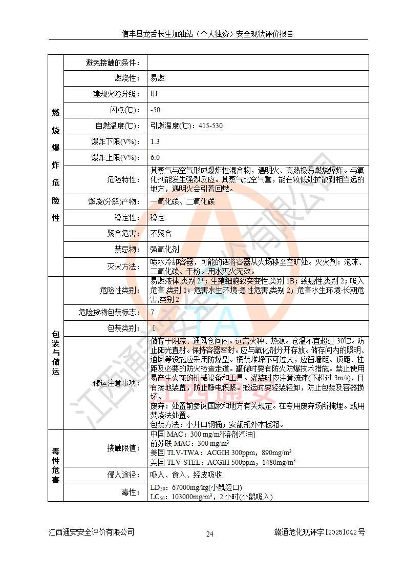 評價結論 | 信豐縣龍舌長生加油站(個人獨資)安全現(xiàn)狀符合危險化學品經營安全條件。 | |||