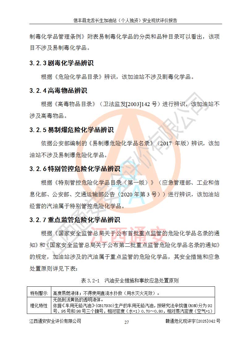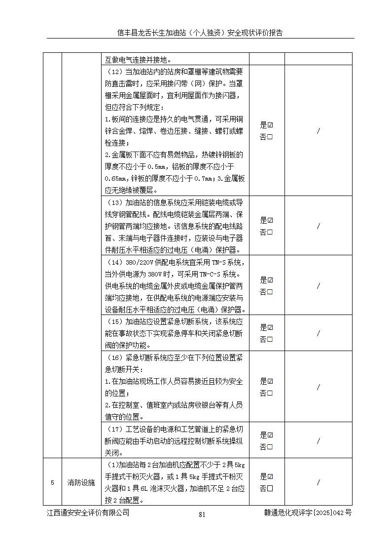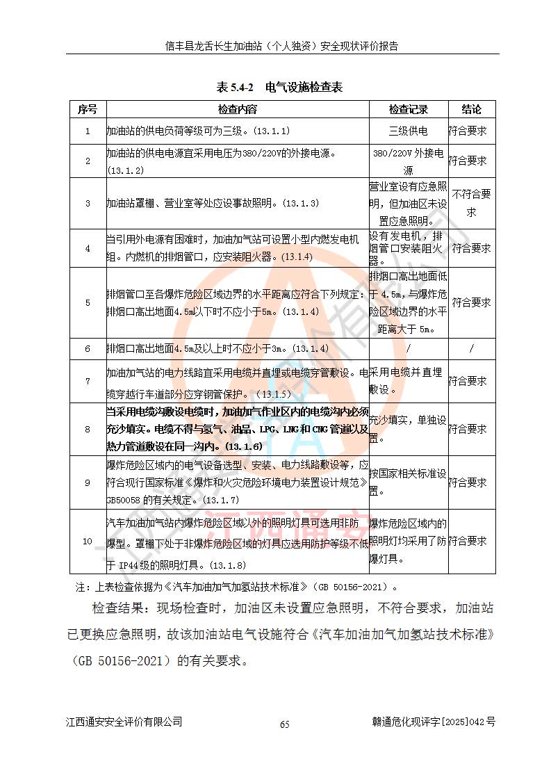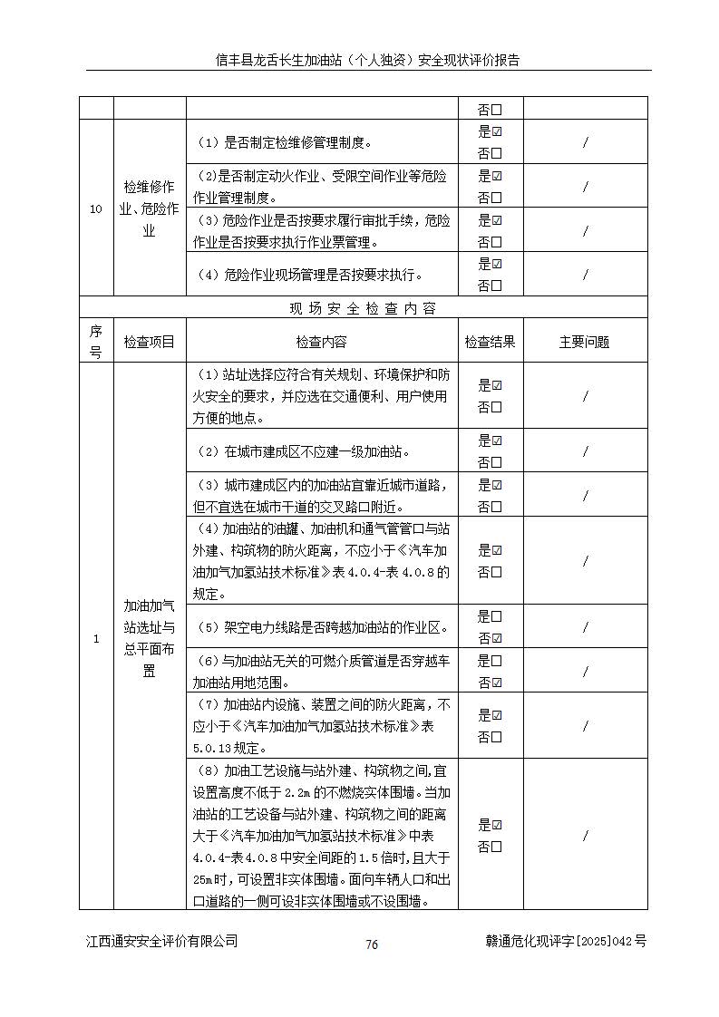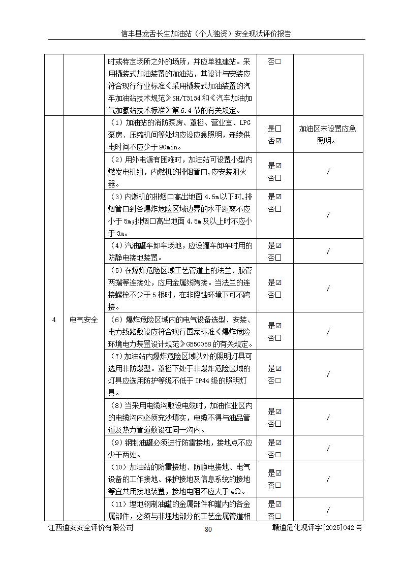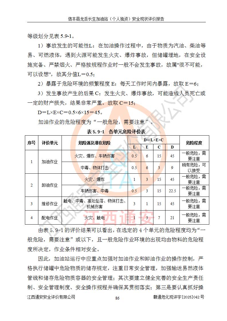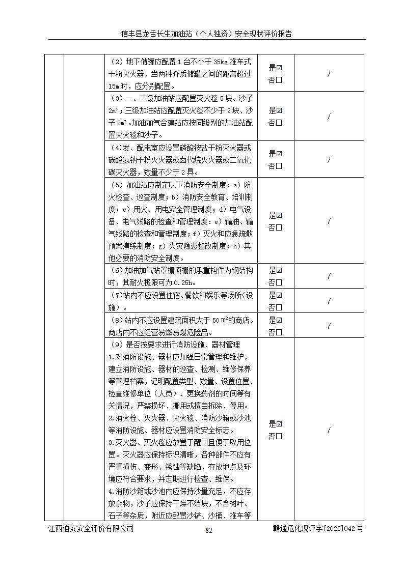 評價結論 | 信豐縣龍舌長生加油站(個人獨資)安全現(xiàn)狀符合危險化學品經營安全條件。 | |||