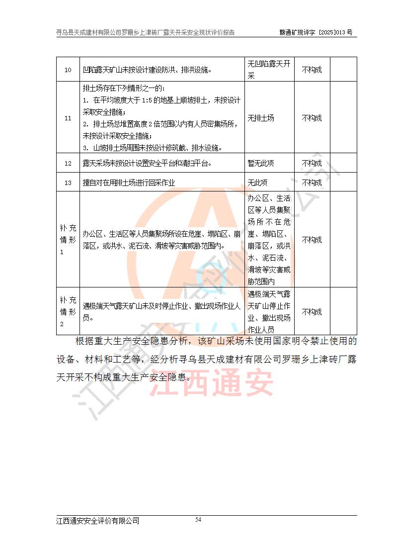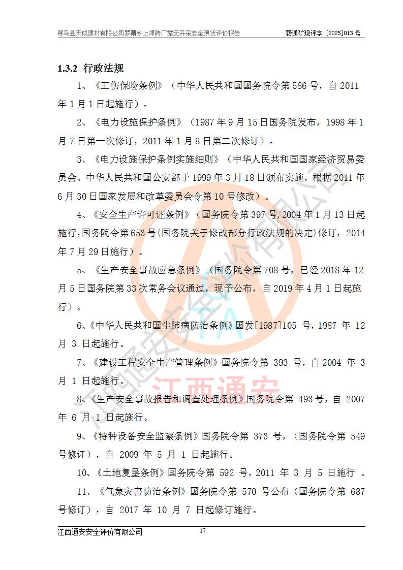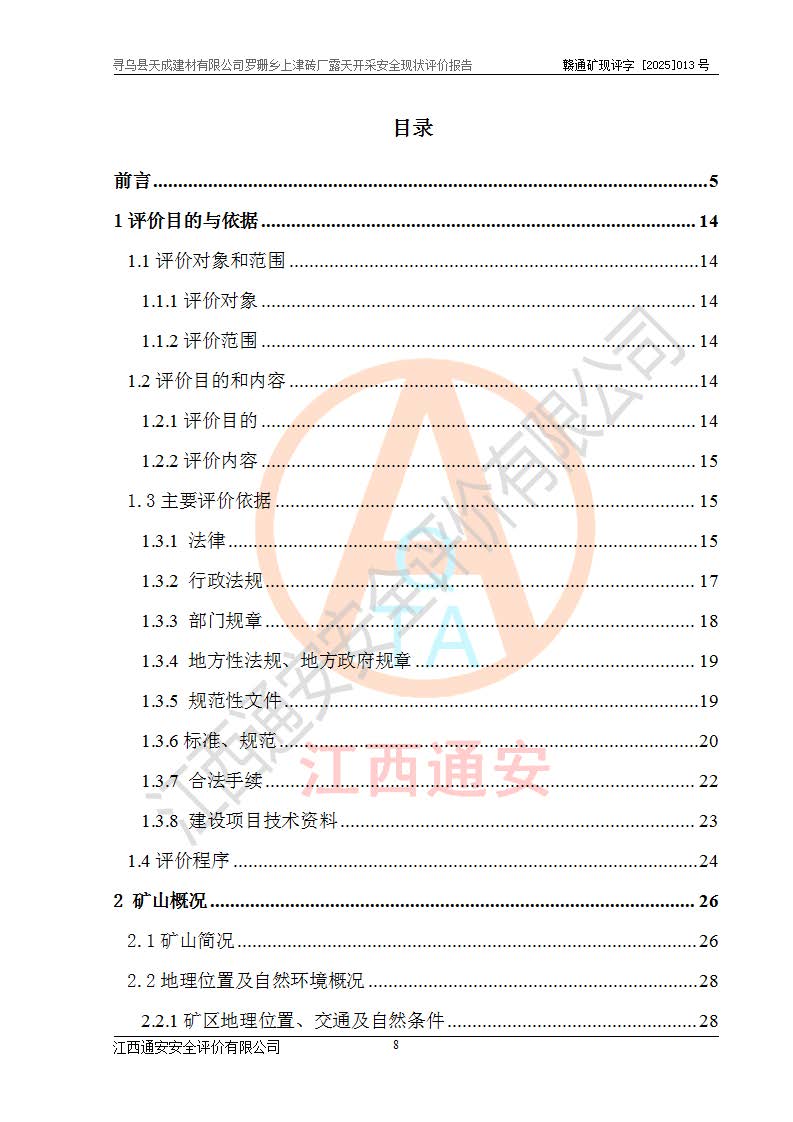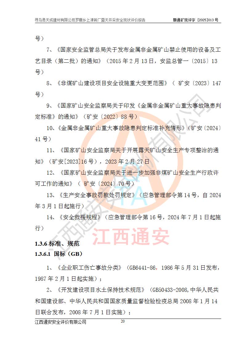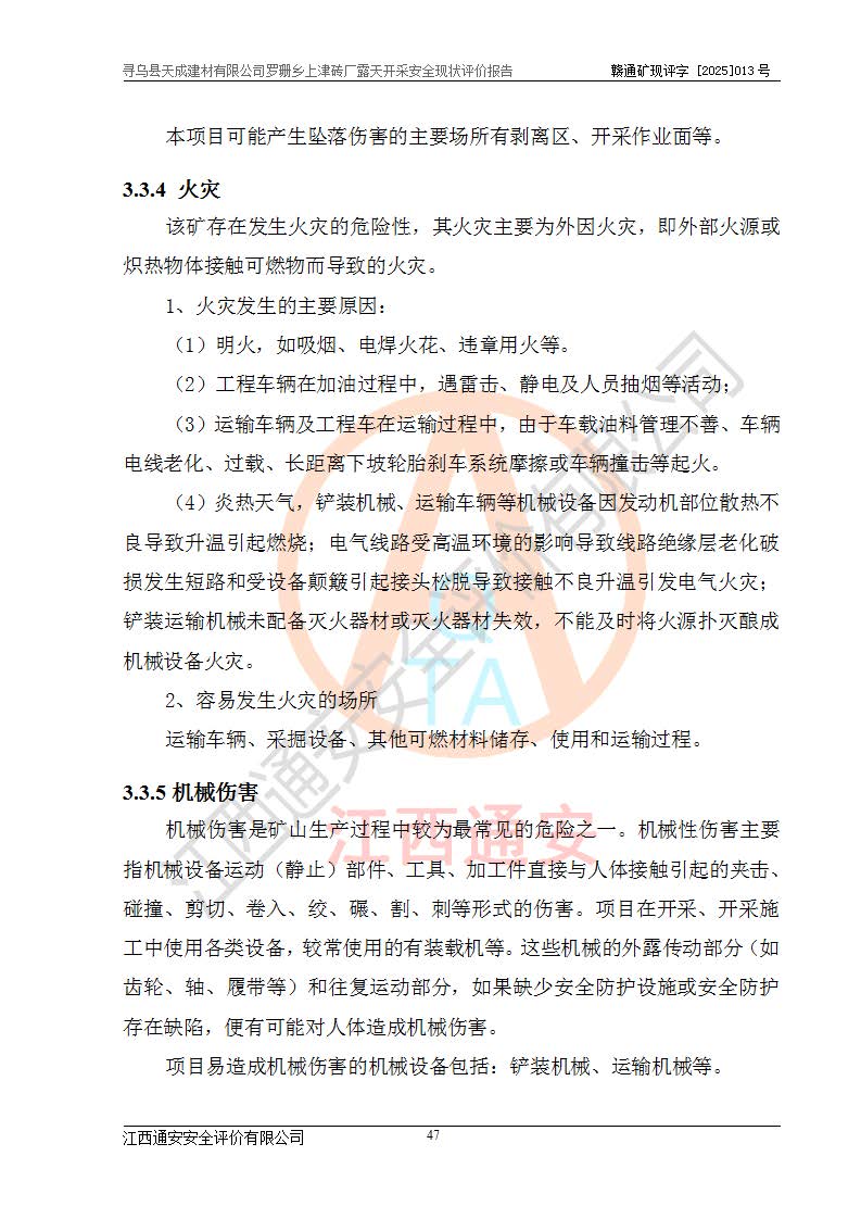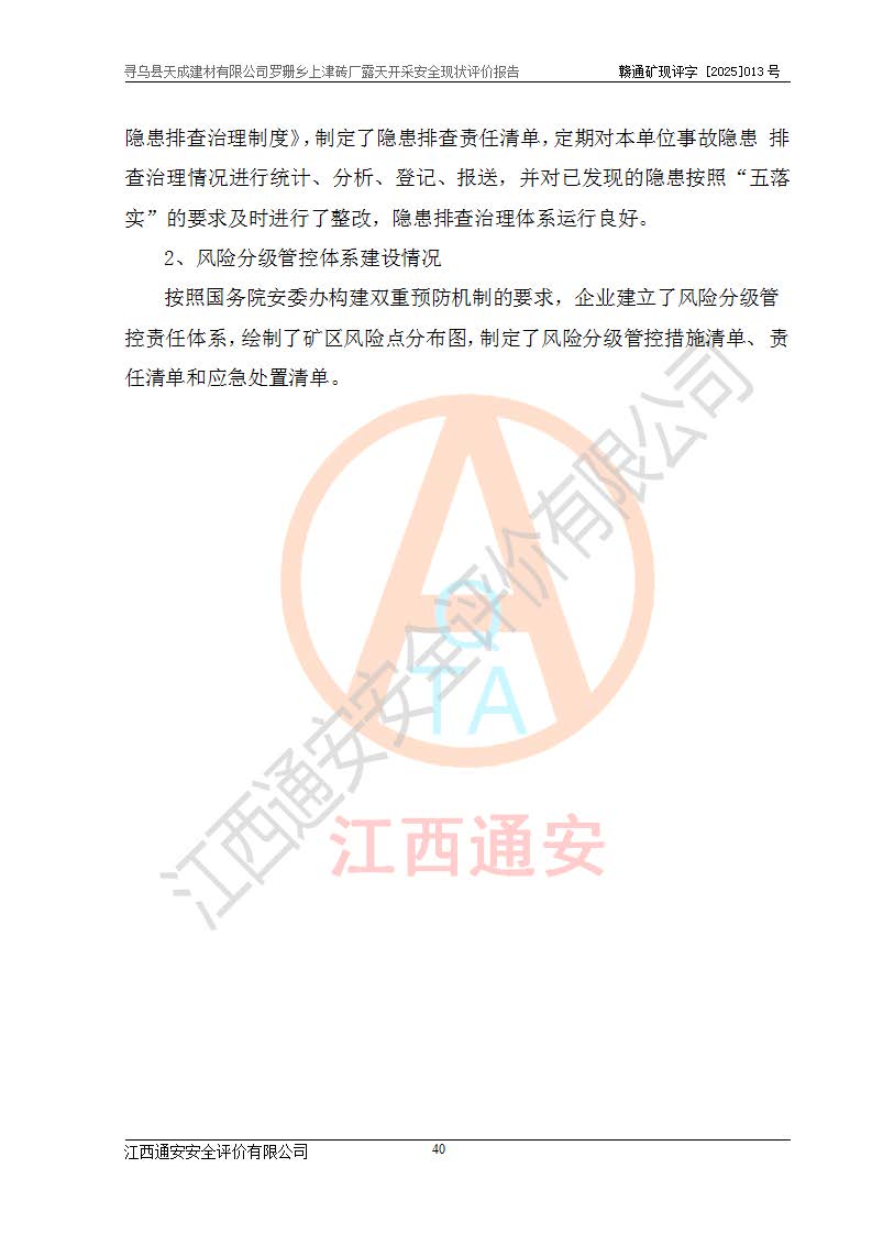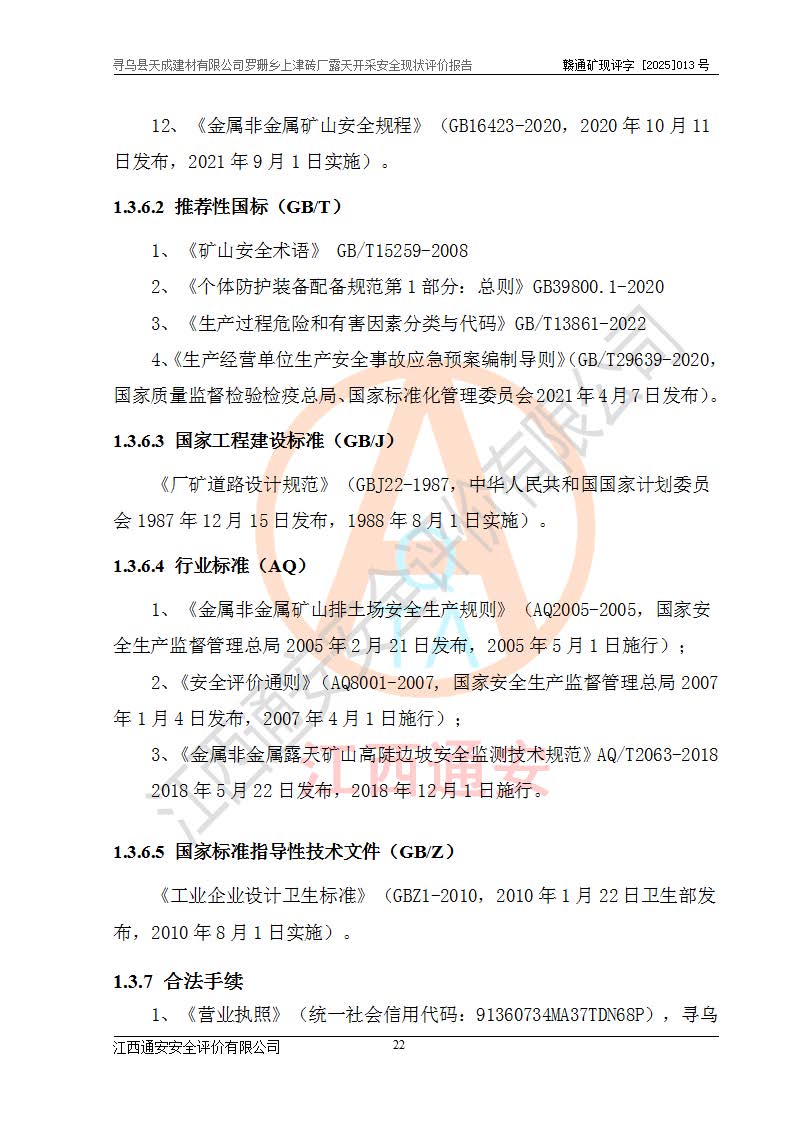尋烏縣天成建材有限公司羅珊鄉(xiāng)上津磚廠是尋烏縣天成建材有限公司下屬露天開采頁巖礦山,礦區(qū)位于尋烏縣縣城31°方位,直線距離約28**,屬尋烏縣羅珊鄉(xiāng)上津村行政管轄。礦區(qū)中心地理坐標(biāo)范圍為東經(jīng):115°46′52″~115°47′09″,北緯: 25°09′30″~25°09′41″。 尋烏縣天成建材有限公司注冊地在尋烏縣長寧鎮(zhèn)城北長安大道,法定**人林盛煌,統(tǒng)一社會(huì)信用代碼:91360734MA37TDN68P。 2019年12月07日,江西博元礦業(yè)技術(shù)服務(wù)有限公司編制了《尋烏縣羅珊鄉(xiāng)上津磚廠磚瓦用頁巖礦資源儲量核實(shí)報(bào)告》。2020年1月江西省地礦資源勘查開發(fā)有限公司編制了《尋烏縣天成建材有限公司羅珊鄉(xiāng)上津磚廠礦山礦產(chǎn)資源開發(fā)利用、地質(zhì)環(huán)境恢復(fù)治理與土地復(fù)墾方案》。 2021年1月礦山委托遼寧時(shí)越市政工程設(shè)計(jì)有限公司編制了《尋烏縣天成建材有限公司羅珊鄉(xiāng)上津磚廠露天開采項(xiàng)目初步設(shè)計(jì)》及《尋烏縣天成建材有限公司羅珊鄉(xiāng)上津磚廠露天開采項(xiàng)目安全設(shè)施設(shè)計(jì)》,該礦《安全設(shè)施設(shè)計(jì)》由尋烏縣應(yīng)急管理局組織評審并通過,準(zhǔn)予礦山進(jìn)行建設(shè)。礦山在準(zhǔn)備按照《安全設(shè)施設(shè)計(jì)》基建時(shí),因?yàn)樾枰饔玫V區(qū)內(nèi)+290m標(biāo)高以上的林地,尋烏縣天成建材有限公司即向縣主管部門提交了林地征用申請報(bào)告,但由于辦理林地征用的程序復(fù)雜,延續(xù)的時(shí)間較長,未能及時(shí)獲得林地征用批復(fù)。為延續(xù)生產(chǎn),及時(shí)組織基建工程施工,尋烏縣天成建材有限公司經(jīng)認(rèn)真研究后,決定變更《尋烏縣天成建材有限公司羅珊鄉(xiāng)上津磚廠露天開采項(xiàng)目安全設(shè)施設(shè)計(jì)》中的基建工程施工位置,委托原設(shè)計(jì)單位編制了《尋烏縣天成建材有限公司羅珊鄉(xiāng)上津磚廠露天開采項(xiàng)目基建工程位置變更方案》。變更的內(nèi)容有:+315m剝離平臺、+308m首采平臺及運(yùn)輸公路。變更后將剝離、首采平臺設(shè)置在+283m平臺。運(yùn)輸公路由采區(qū)西側(cè)265m至315m變更為采區(qū)東側(cè)273m至283m。 2021年6月,尋烏縣天成建材有限公司羅珊鄉(xiāng)上津磚廠露天開采項(xiàng)目通過露天開采安全設(shè)施驗(yàn)收。2021年7月14日,礦山取得了贛州市行政審批局頒發(fā)的安全生產(chǎn)許可證,編號:(贛)FM安許證字[2021]B0029號,贛市行審證(3)字[2021]第251號。單位名稱:尋烏縣天成建材有限公司羅珊鄉(xiāng)上津磚廠露天開采,主要負(fù)責(zé)人:曾進(jìn)斌,單位地址:羅珊鄉(xiāng)上津村,經(jīng)濟(jì)類型:有限責(zé)任公司,許可范圍:磚瓦用頁巖露天開采。**期:2021年7月14日至2024年7月13日。2024年6月由于采礦許可證和安全生產(chǎn)許可證先后到期,礦山停產(chǎn)至今。 2025年6月26日取得尋烏縣自然資源局換發(fā)的采礦許可證號,證號:C3607342014037130133465,礦區(qū)面積為0.105km2,生產(chǎn)規(guī)模22.00萬噸/年,開采深度:由+315m~+265m標(biāo)高,礦區(qū)由5個(gè)拐點(diǎn)圈定。**期至2033年10月28日。 尋烏縣天成建材有限公司羅珊鄉(xiāng)上津磚廠采用山坡露天開采方式,水平臺階自上而下分臺階開采,挖掘機(jī)直接挖掘取土、自卸汽車運(yùn)礦。 根據(jù)《安全生產(chǎn)法》、《礦山安全法》、《安全生產(chǎn)許可證條例》、《非煤礦礦山企業(yè)安全生產(chǎn)許可證實(shí)施辦法》和原江西省安全生產(chǎn)監(jiān)督管理局《關(guān)于做好非煤礦礦山企業(yè)安全生產(chǎn)許可證延期換證工作的通知》的要求,尋烏縣天成建材有限公司委托江西通安安全評價(jià)有限公司對羅珊鄉(xiāng)上津磚廠露天開采進(jìn)行安全現(xiàn)狀評價(jià)。 |