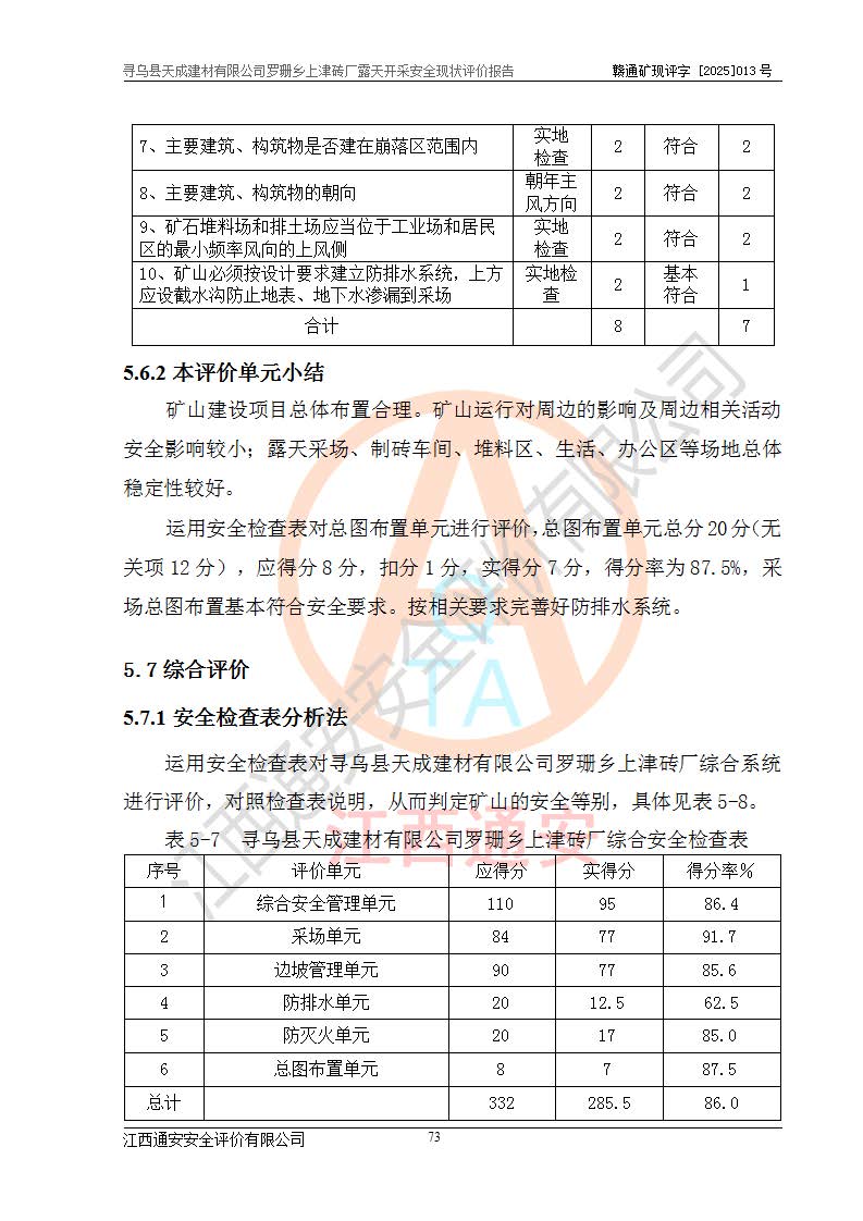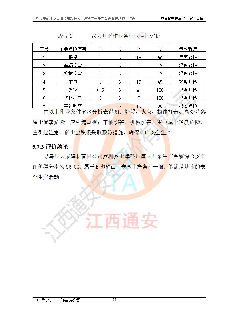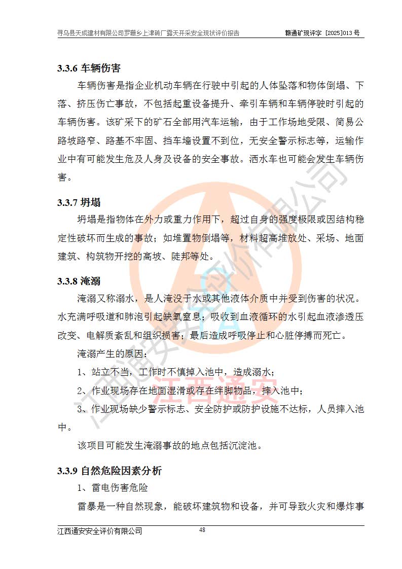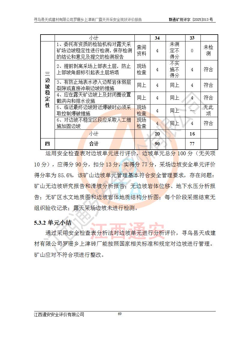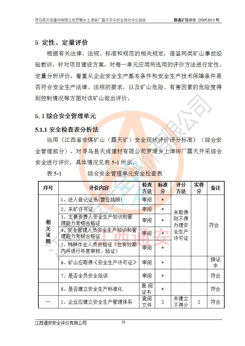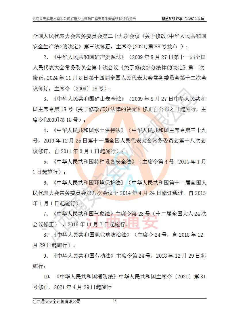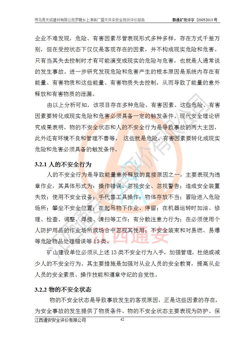 尋烏縣天成建材有限公司羅珊鄉(xiāng)上津磚廠是尋烏縣天成建材有限公司下屬露天開采頁巖礦山,礦區(qū)位于尋烏縣縣城31°方位,直線距離約28**,屬尋烏縣羅珊鄉(xiāng)上津村行政管轄。礦區(qū)中心地理坐標(biāo)范圍為東經(jīng):115°46′52″~115°47′09″,北緯: 25°09′30″~25°09′41″。 尋烏縣天成建材有限公司注冊地在尋烏縣長寧鎮(zhèn)城北長安大道,法定**人林盛煌,統(tǒng)一社會(huì)信用代碼:91360734MA37TDN68P。 2019年12月07日,江西博元礦業(yè)技術(shù)服務(wù)有限公司編制了《尋烏縣羅珊鄉(xiāng)上津磚廠磚瓦用頁巖礦資源儲量核實(shí)報(bào)告》。2020年1月江西省地礦資源勘查開發(fā)有限公司編制了《尋烏縣天成建材有限公司羅珊鄉(xiāng)上津磚廠礦山礦產(chǎn)資源開發(fā)利用、地質(zhì)環(huán)境恢復(fù)治理與土地復(fù)墾方案》。 2021年1月礦山委托遼寧時(shí)越市政工程設(shè)計(jì)有限公司編制了《尋烏縣天成建材有限公司羅珊鄉(xiāng)上津磚廠露天開采項(xiàng)目初步設(shè)計(jì)》及《尋烏縣天成建材有限公司羅珊鄉(xiāng)上津磚廠露天開采項(xiàng)目安全設(shè)施設(shè)計(jì)》,該礦《安全設(shè)施設(shè)計(jì)》由尋烏縣應(yīng)急管理局組織評審并通過,準(zhǔn)予礦山進(jìn)行建設(shè)。礦山在準(zhǔn)備按照《安全設(shè)施設(shè)計(jì)》基建時(shí),因?yàn)樾枰饔玫V區(qū)內(nèi)+290m標(biāo)高以上的林地,尋烏縣天成建材有限公司即向縣主管部門提交了林地征用申請報(bào)告,但由于辦理林地征用的程序復(fù)雜,延續(xù)的時(shí)間較長,未能及時(shí)獲得林地征用批復(fù)。為延續(xù)生產(chǎn),及時(shí)組織基建工程施工,尋烏縣天成建材有限公司經(jīng)認(rèn)真研究后,決定變更《尋烏縣天成建材有限公司羅珊鄉(xiāng)上津磚廠露天開采項(xiàng)目安全設(shè)施設(shè)計(jì)》中的基建工程施工位置,委托原設(shè)計(jì)單位編制了《尋烏縣天成建材有限公司羅珊鄉(xiāng)上津磚廠露天開采項(xiàng)目基建工程位置變更方案》。變更的內(nèi)容有:+315m剝離平臺、+308m首采平臺及運(yùn)輸公路。變更后將剝離、首采平臺設(shè)置在+283m平臺。運(yùn)輸公路由采區(qū)西側(cè)265m至315m變更為采區(qū)東側(cè)273m至283m。 2021年6月,尋烏縣天成建材有限公司羅珊鄉(xiāng)上津磚廠露天開采項(xiàng)目通過露天開采安全設(shè)施驗(yàn)收。2021年7月14日,礦山取得了贛州市行政審批局頒發(fā)的安全生產(chǎn)許可證,編號:(贛)FM安許證字[2021]B0029號,贛市行審證(3)字[2021]第251號。單位名稱:尋烏縣天成建材有限公司羅珊鄉(xiāng)上津磚廠露天開采,主要負(fù)責(zé)人:曾進(jìn)斌,單位地址:羅珊鄉(xiāng)上津村,經(jīng)濟(jì)類型:有限責(zé)任公司,許可范圍:磚瓦用頁巖露天開采。**期:2021年7月14日至2024年7月13日。2024年6月由于采礦許可證和安全生產(chǎn)許可證先后到期,礦山停產(chǎn)至今。 2025年6月26日取得尋烏縣自然資源局換發(fā)的采礦許可證號,證號:C3607342014037130133465,礦區(qū)面積為0.105km2,生產(chǎn)規(guī)模22.00萬噸/年,開采深度:由+315m~+265m標(biāo)高,礦區(qū)由5個(gè)拐點(diǎn)圈定。**期至2033年10月28日。 尋烏縣天成建材有限公司羅珊鄉(xiāng)上津磚廠采用山坡露天開采方式,水平臺階自上而下分臺階開采,挖掘機(jī)直接挖掘取土、自卸汽車運(yùn)礦。 根據(jù)《安全生產(chǎn)法》、《礦山安全法》、《安全生產(chǎn)許可證條例》、《非煤礦礦山企業(yè)安全生產(chǎn)許可證實(shí)施辦法》和原江西省安全生產(chǎn)監(jiān)督管理局《關(guān)于做好非煤礦礦山企業(yè)安全生產(chǎn)許可證延期換證工作的通知》的要求,尋烏縣天成建材有限公司委托江西通安安全評價(jià)有限公司對羅珊鄉(xiāng)上津磚廠露天開采進(jìn)行安全現(xiàn)狀評價(jià)。 |
