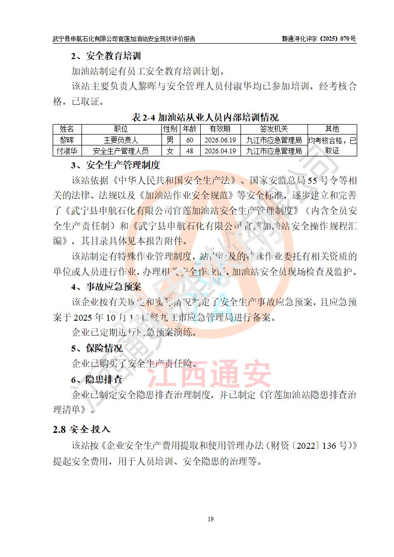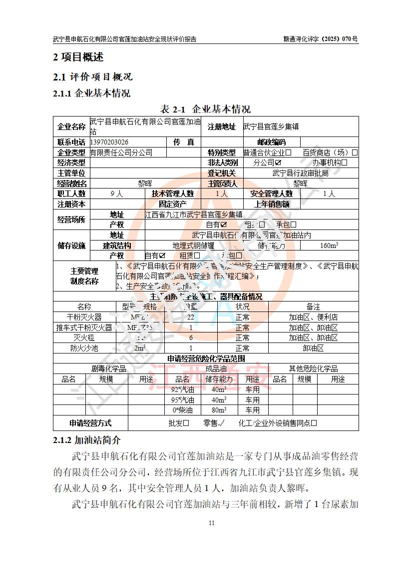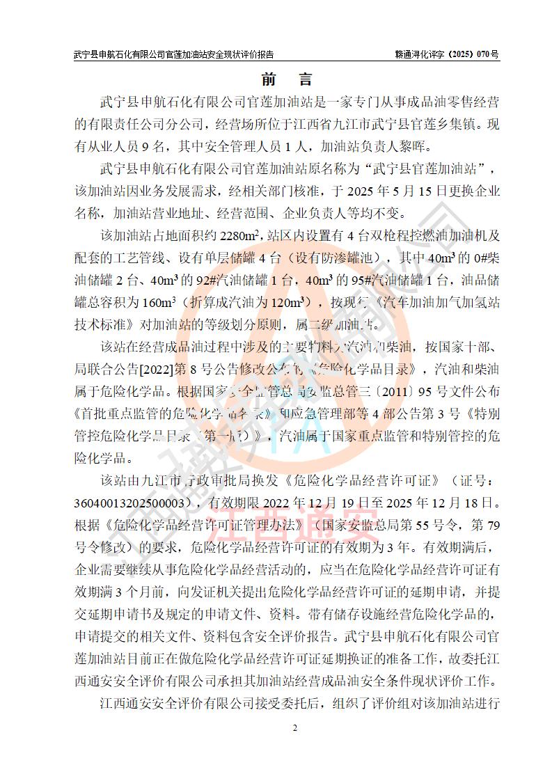 評(píng)價(jià)報(bào)告名稱 | 武寧縣申航石化有限公司官蓮加油站安全現(xiàn)狀評(píng)價(jià)報(bào)告 | |||