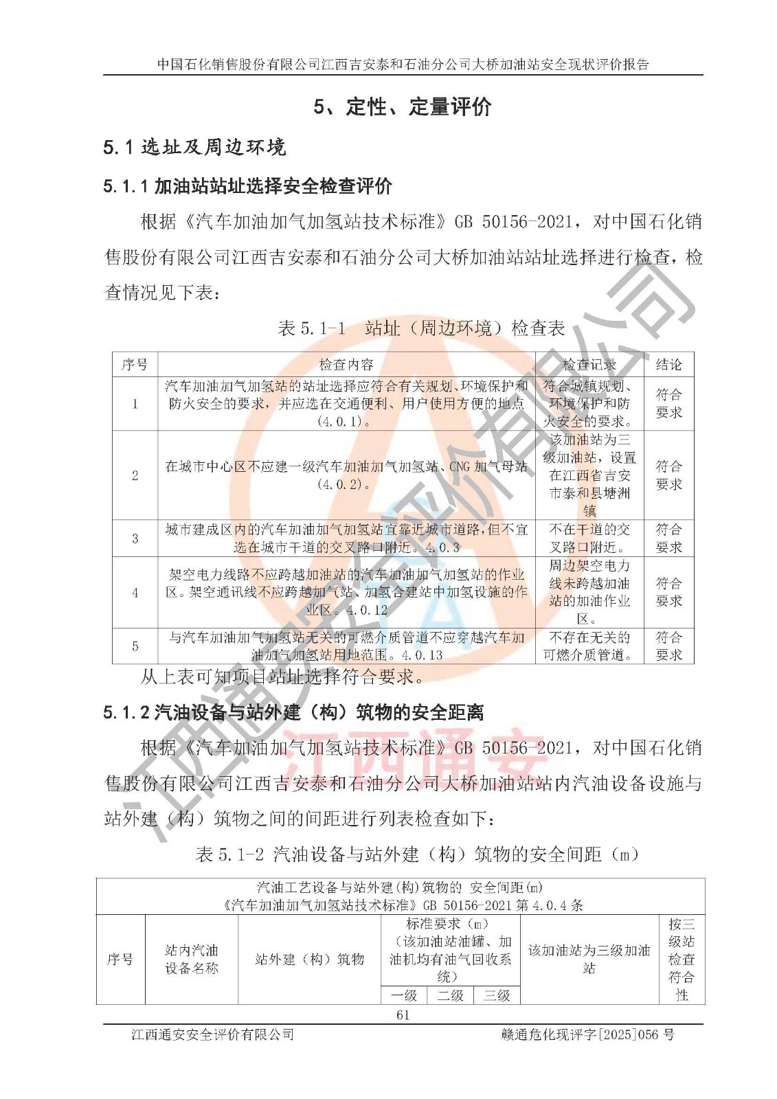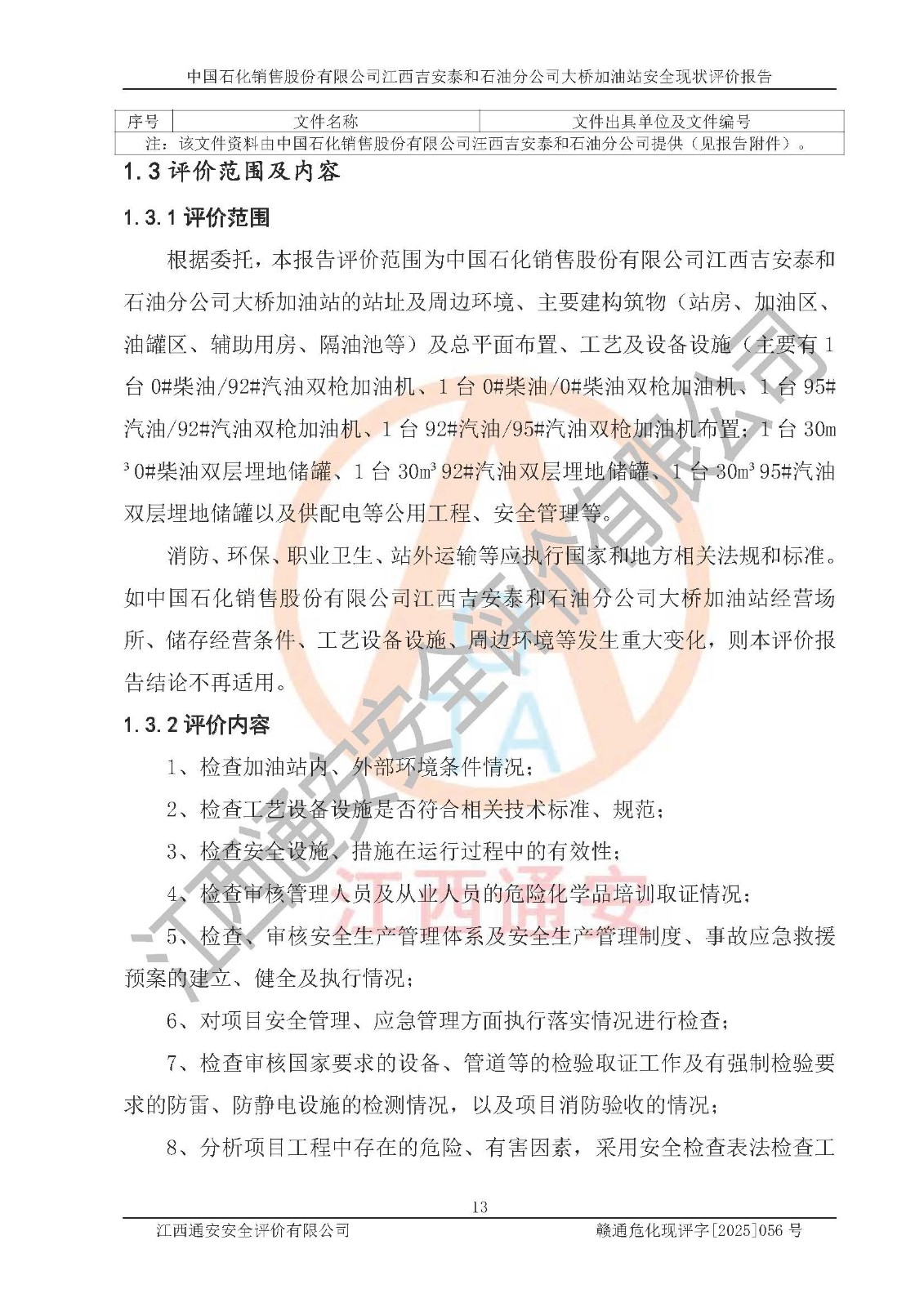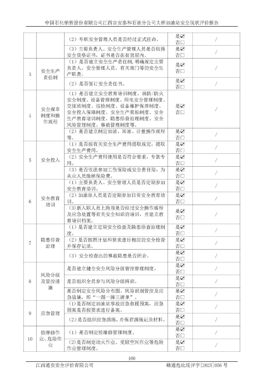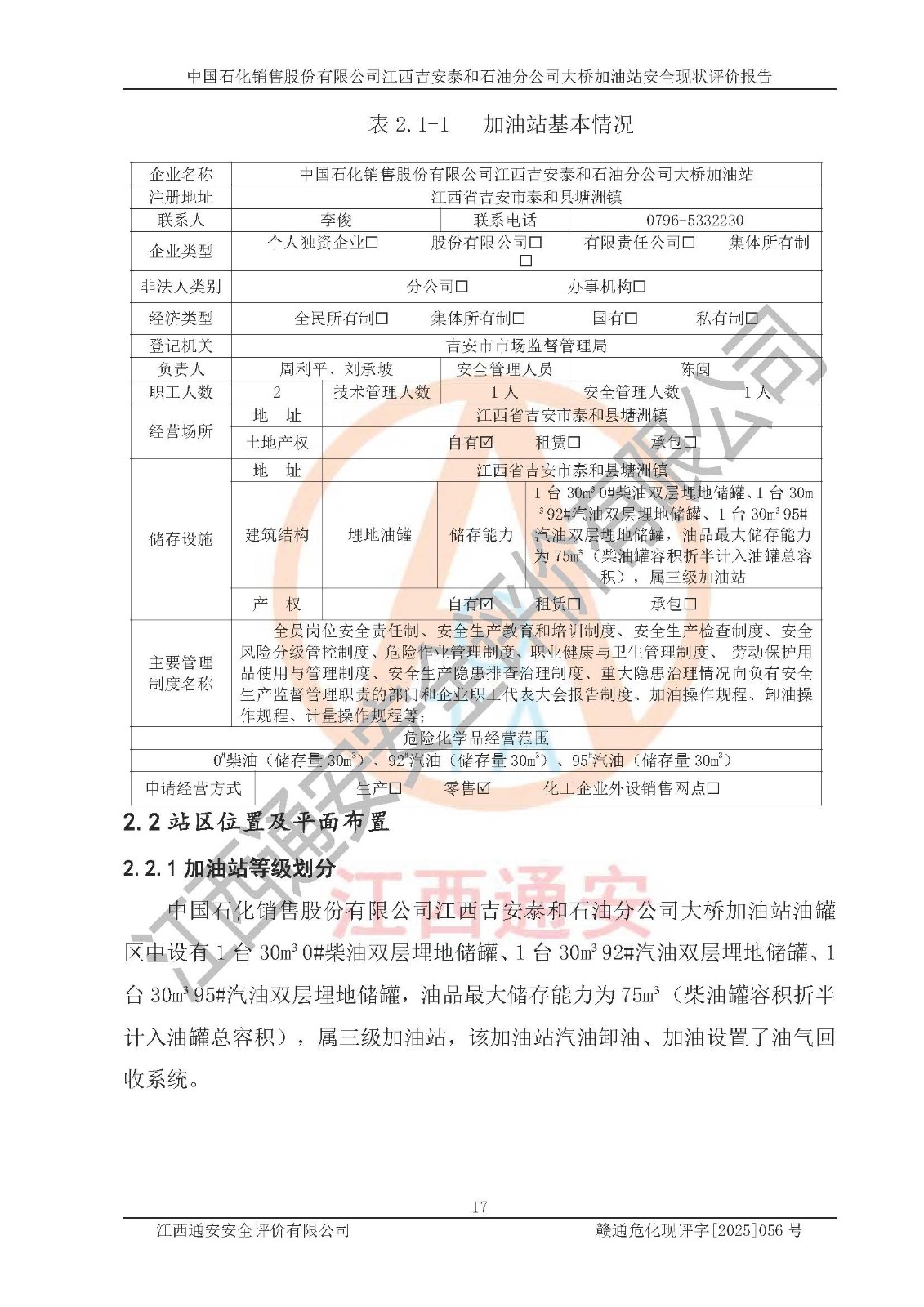 項(xiàng)目名稱 | 中國(guó)石化銷售股份有限公司江西吉安泰和石油分公司大橋加油站 安全現(xiàn)狀評(píng)價(jià)報(bào)告 | ||||