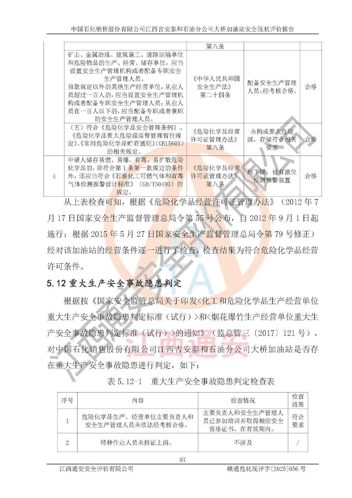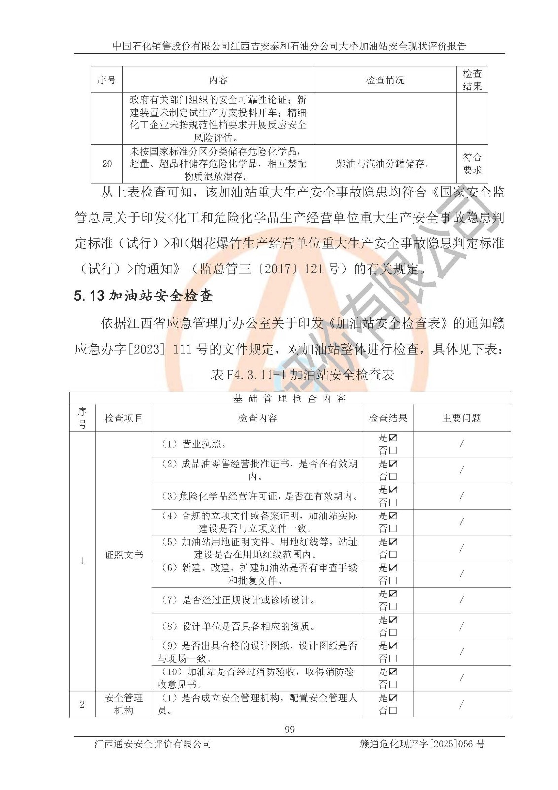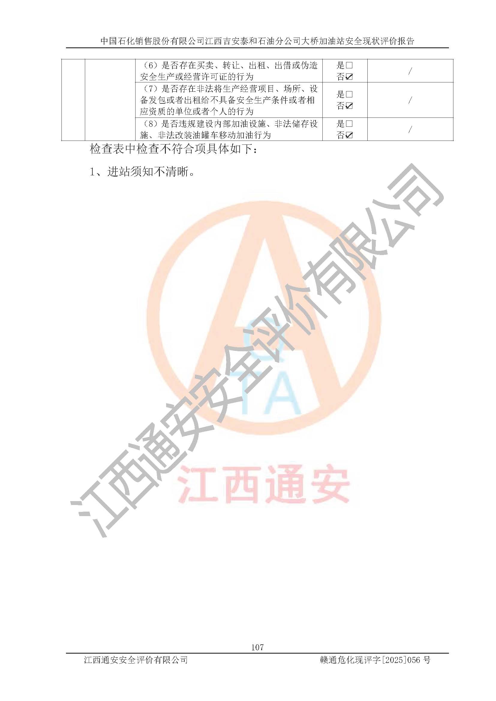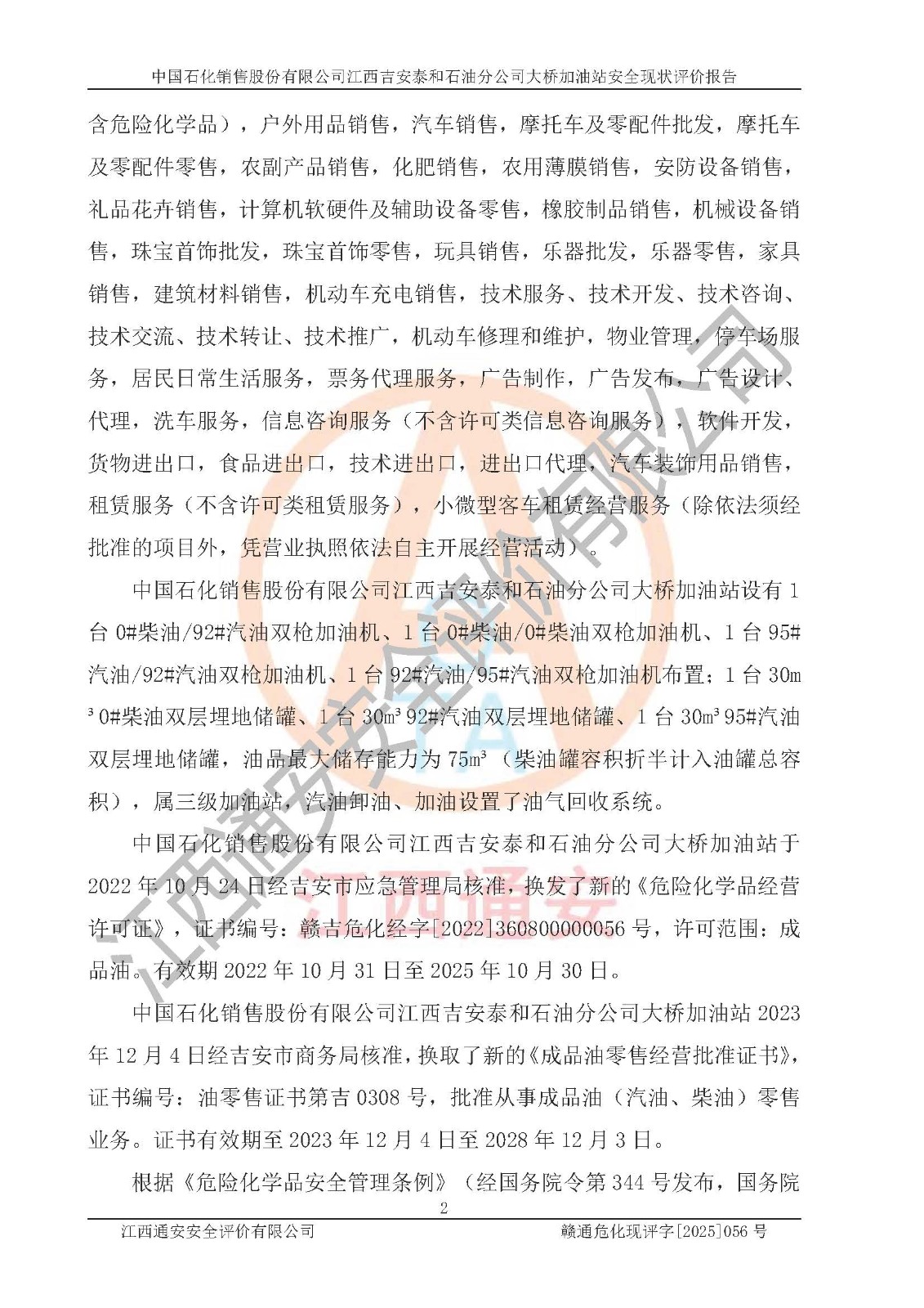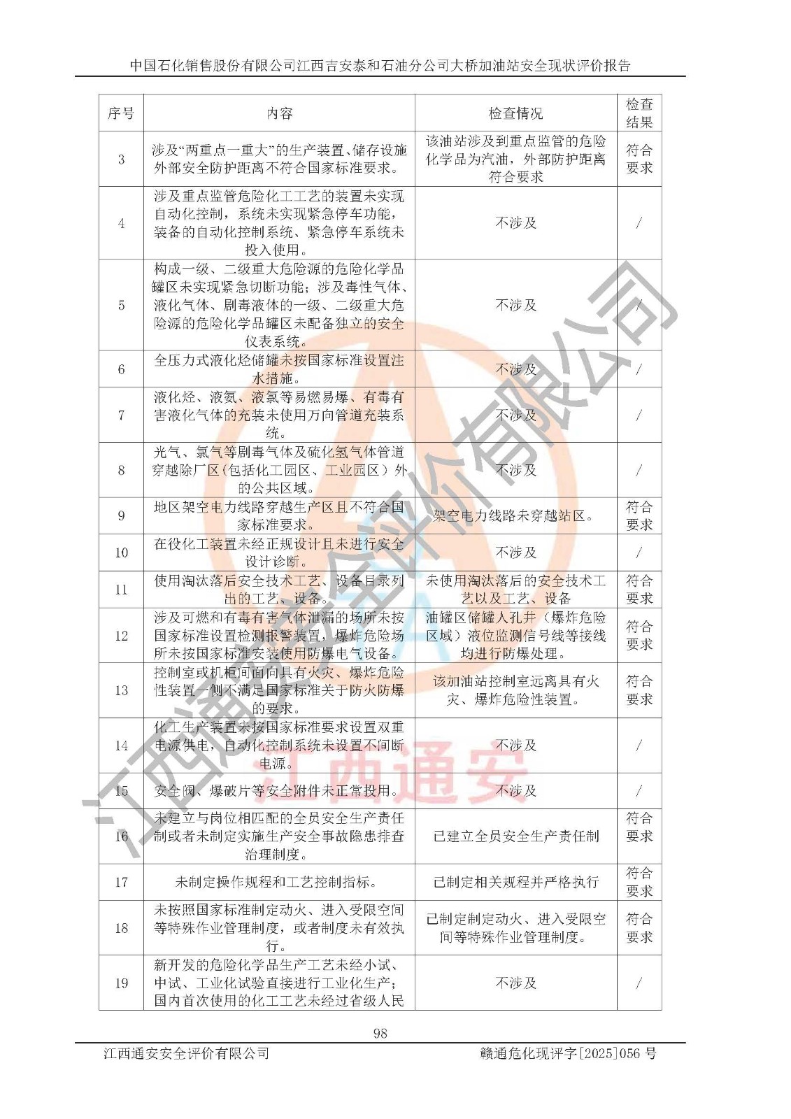 項(xiàng)目名稱 | 中國(guó)石化銷售股份有限公司江西吉安泰和石油分公司大橋加油站 安全現(xiàn)狀評(píng)價(jià)報(bào)告 | ||||