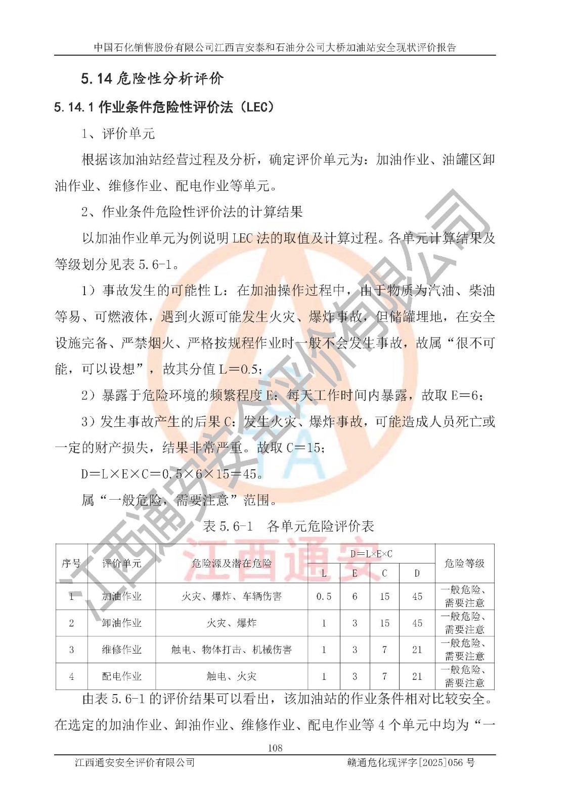 其它 | 在對(duì)該項(xiàng)目危險(xiǎn)、有害因素辨識(shí)分析的基礎(chǔ)上,運(yùn)用安全檢查表、預(yù)作業(yè)條件危險(xiǎn)性分析法、危險(xiǎn)度評(píng)價(jià)、重大事故后果分析結(jié)果等評(píng)價(jià)方法對(duì)該項(xiàng)目進(jìn)行了分析評(píng)價(jià),評(píng)價(jià)結(jié)果如下: 1、該項(xiàng)目位于江西省吉安市泰和縣塘洲鎮(zhèn),符合當(dāng)?shù)匾?guī)劃,與周邊環(huán)境的距離符合有關(guān)標(biāo)準(zhǔn)、規(guī)范的要求。 2、總圖布置分區(qū)明確,布局合理,各建構(gòu)筑物的防火間距滿足規(guī)范要求。 3、該項(xiàng)目無(wú)**明令淘汰的工藝,設(shè)備、設(shè)施與工藝條件、內(nèi)部介質(zhì)相適應(yīng),特種設(shè)備及設(shè)施較齊全,按規(guī)定設(shè)置防雷、防靜電接地,爆炸危險(xiǎn)環(huán)境加油機(jī)按要求采用防爆型,符合相關(guān)標(biāo)準(zhǔn)規(guī)范要求。 5、企業(yè)設(shè)置了安全生產(chǎn)管理機(jī)構(gòu),配備了專職安全生產(chǎn)管理人員,建立了安全生產(chǎn)責(zé)任制和安全生產(chǎn)管理制度,編制了崗位操作規(guī)程,編制了生產(chǎn)安全事故應(yīng)急預(yù)案,人員經(jīng)過(guò)相應(yīng)的培訓(xùn),企業(yè)的安全生產(chǎn)管理正常。 6、作業(yè)條件危險(xiǎn)性評(píng)價(jià)結(jié)果:在選定的評(píng)價(jià)單元中,作業(yè)危險(xiǎn)程度均為“一般危險(xiǎn),需要注意”,作業(yè)條件相對(duì)安全。 7、危險(xiǎn)度評(píng)價(jià)結(jié)果:汽油儲(chǔ)罐的危險(xiǎn)程度為中度危險(xiǎn)。油罐采用雙層罐埋地設(shè)置,按要求設(shè)置了通氣管,并裝設(shè)了阻火器;設(shè)置了液位監(jiān)測(cè)報(bào)警系統(tǒng)和緊急切斷系統(tǒng),設(shè)置加油雙層管道及雙層管道滲漏檢測(cè)系統(tǒng),其安全風(fēng)險(xiǎn)可控。 評(píng)價(jià)結(jié)論: 中國(guó)石化銷售股份有限公司江西吉安泰和石油分公司大橋加油站工藝設(shè)備和安全設(shè)施運(yùn)行正常,安全管理機(jī)制運(yùn)行正常,安全設(shè)施、措施達(dá)到設(shè)計(jì)要求和預(yù)期結(jié)果,可以滿足建設(shè)項(xiàng)目安全生產(chǎn)的要求,安全生產(chǎn)管理**,項(xiàng)目具備危險(xiǎn)化學(xué)品經(jīng)營(yíng)單位安全經(jīng)營(yíng)條件的要求。 | ||||