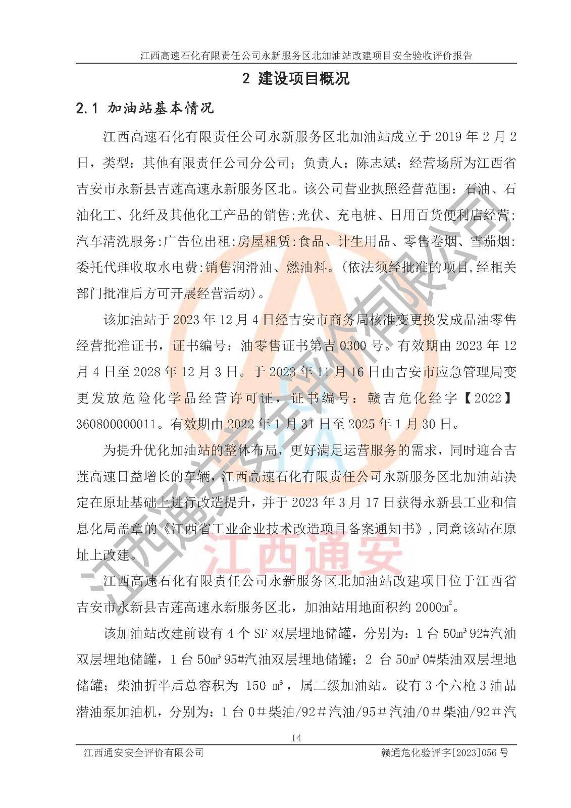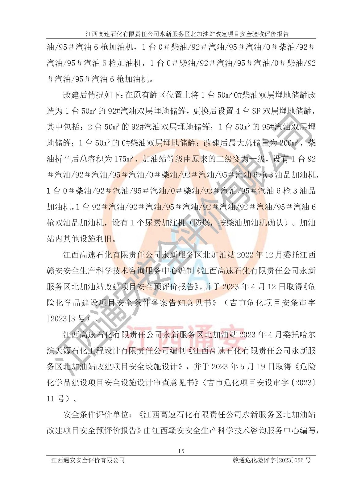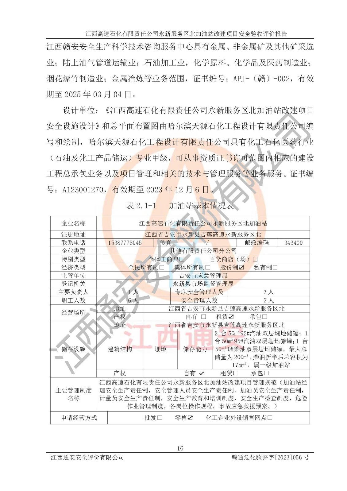 項目名稱 | 江西高速石化有限責(zé)任公司永新服務(wù)區(qū)北加油站改建項目安全驗收評價報告 | ||||