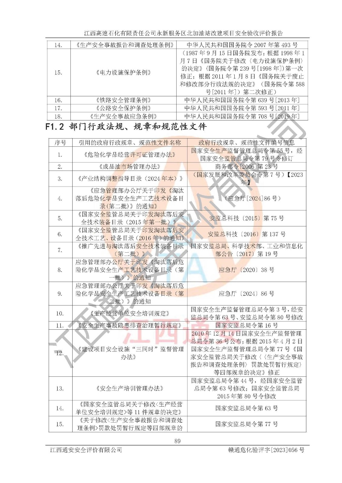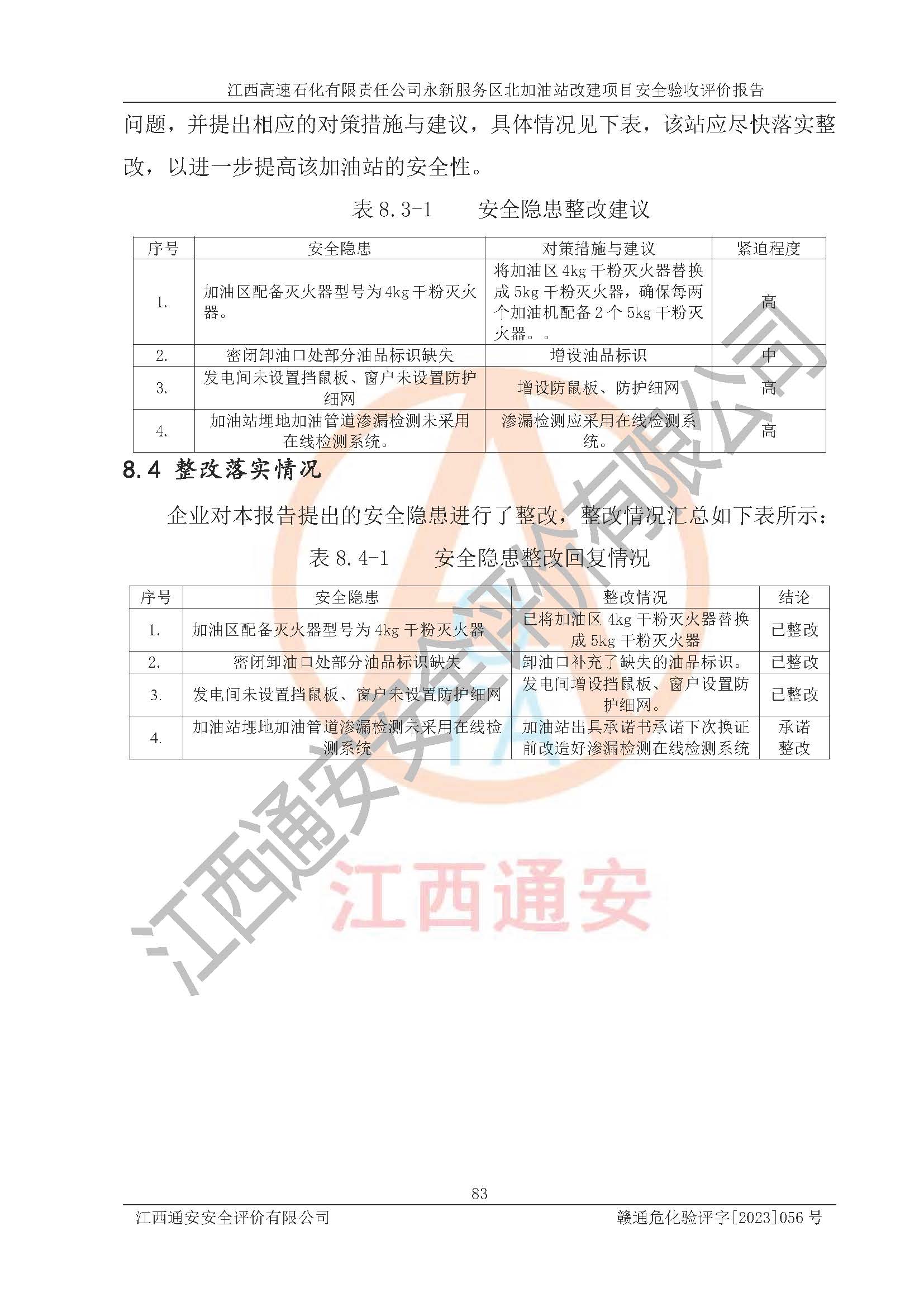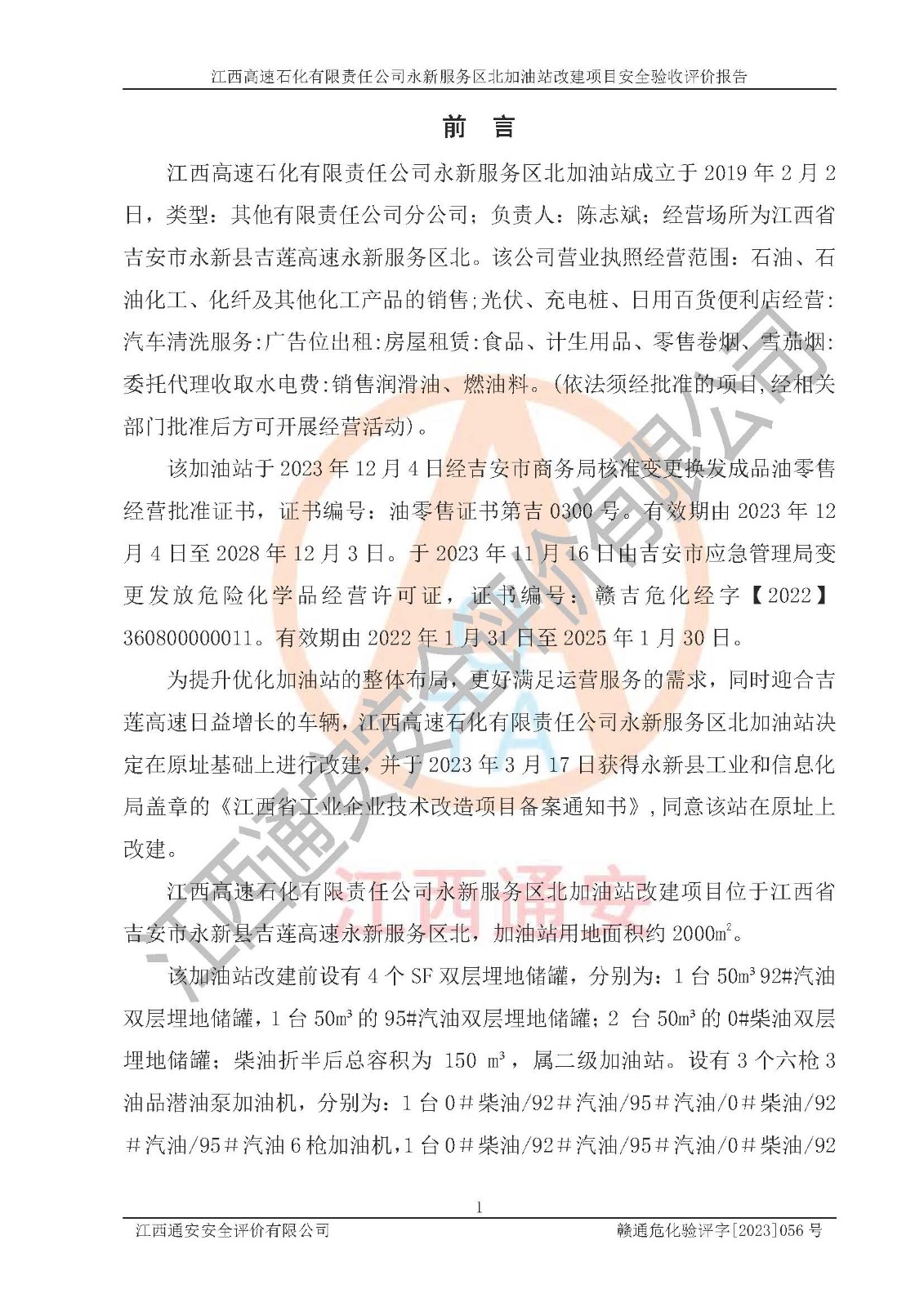 項目名稱 | 江西高速石化有限責(zé)任公司永新服務(wù)區(qū)北加油站改建項目安全驗收評價報告 | ||||