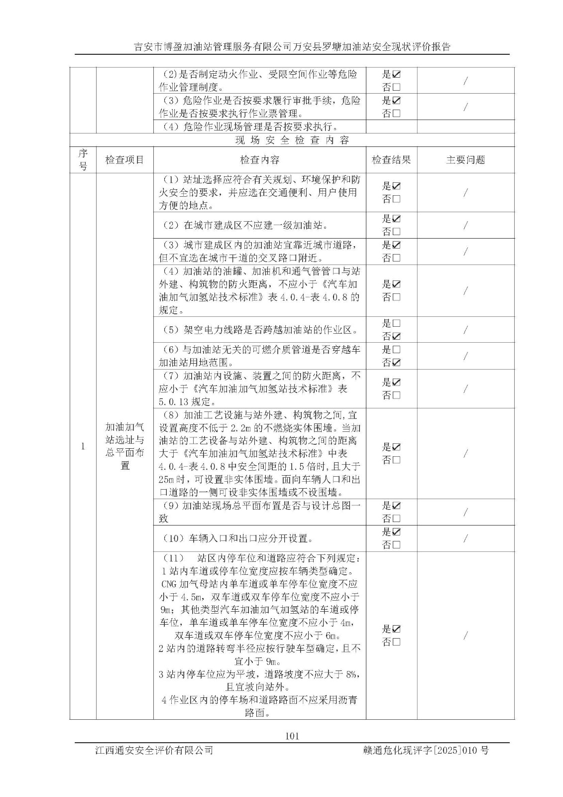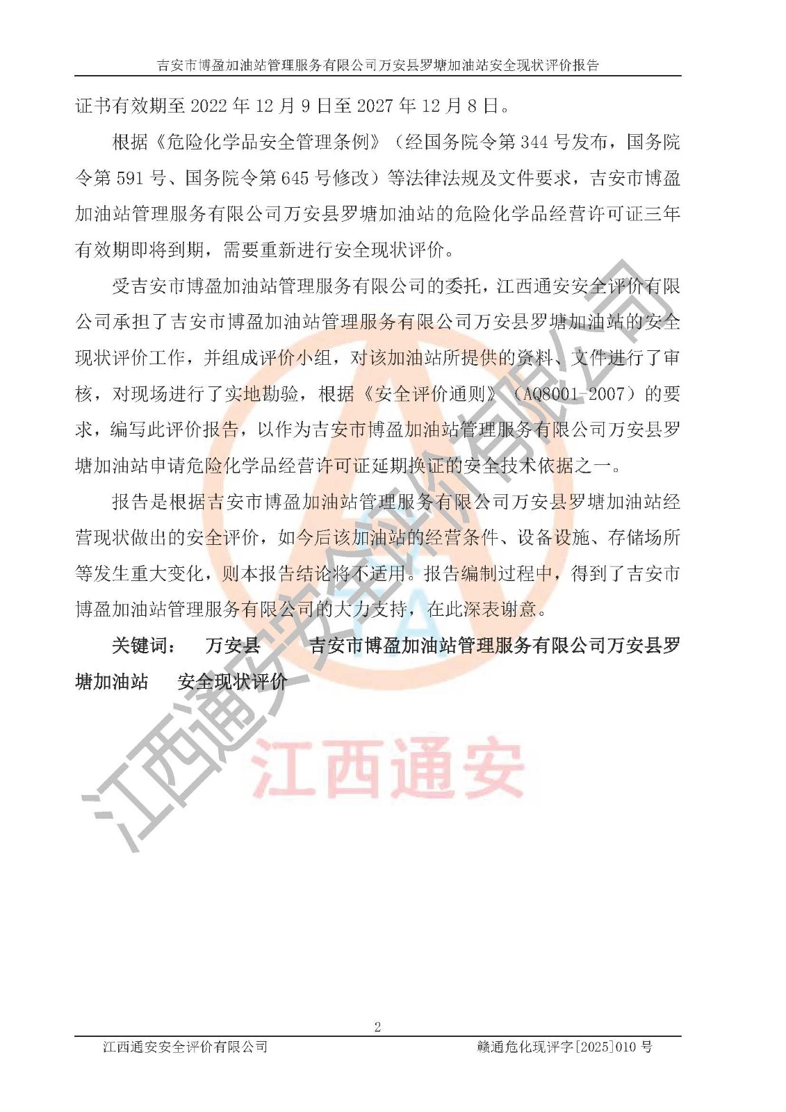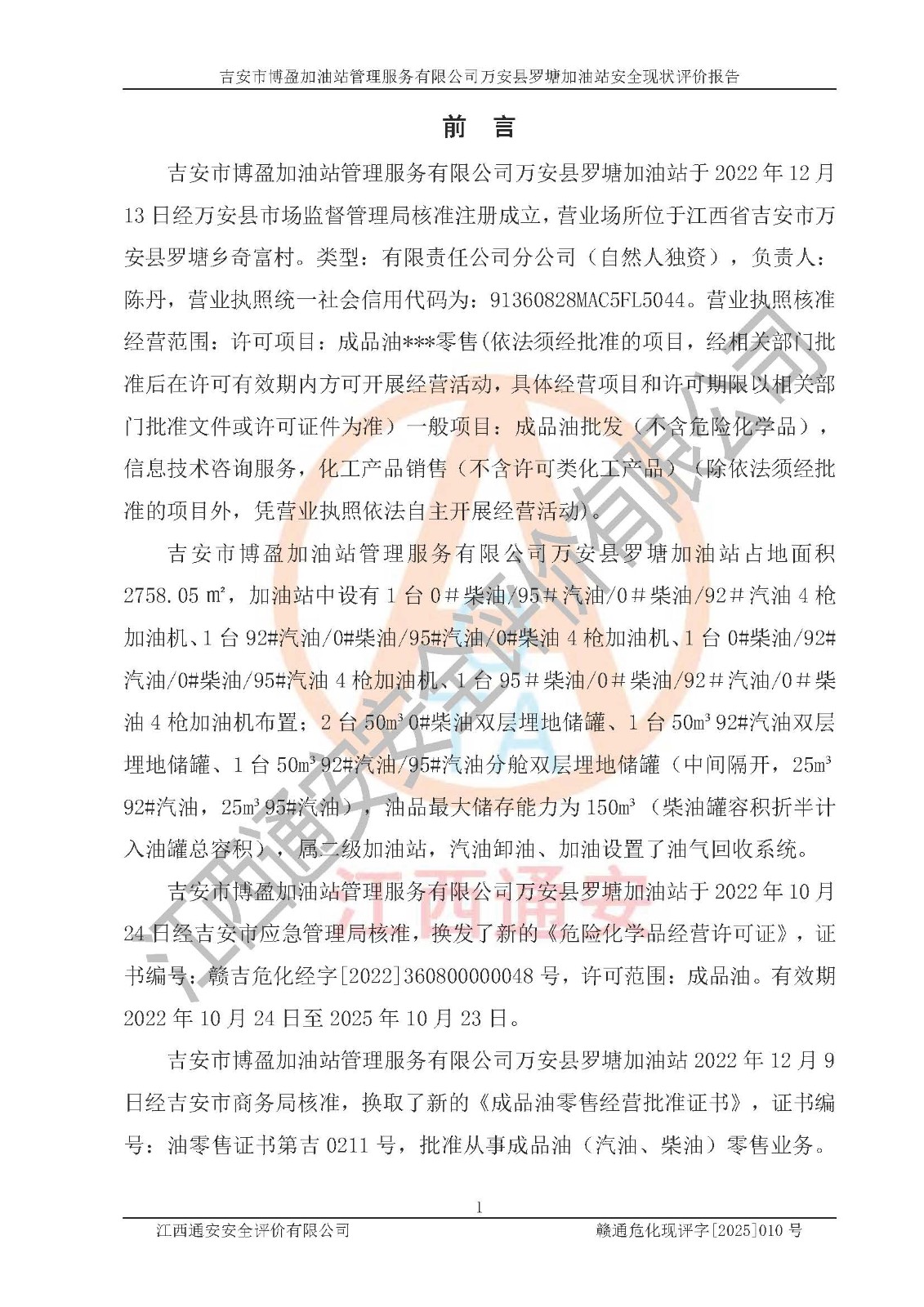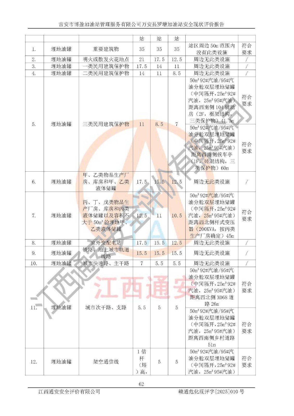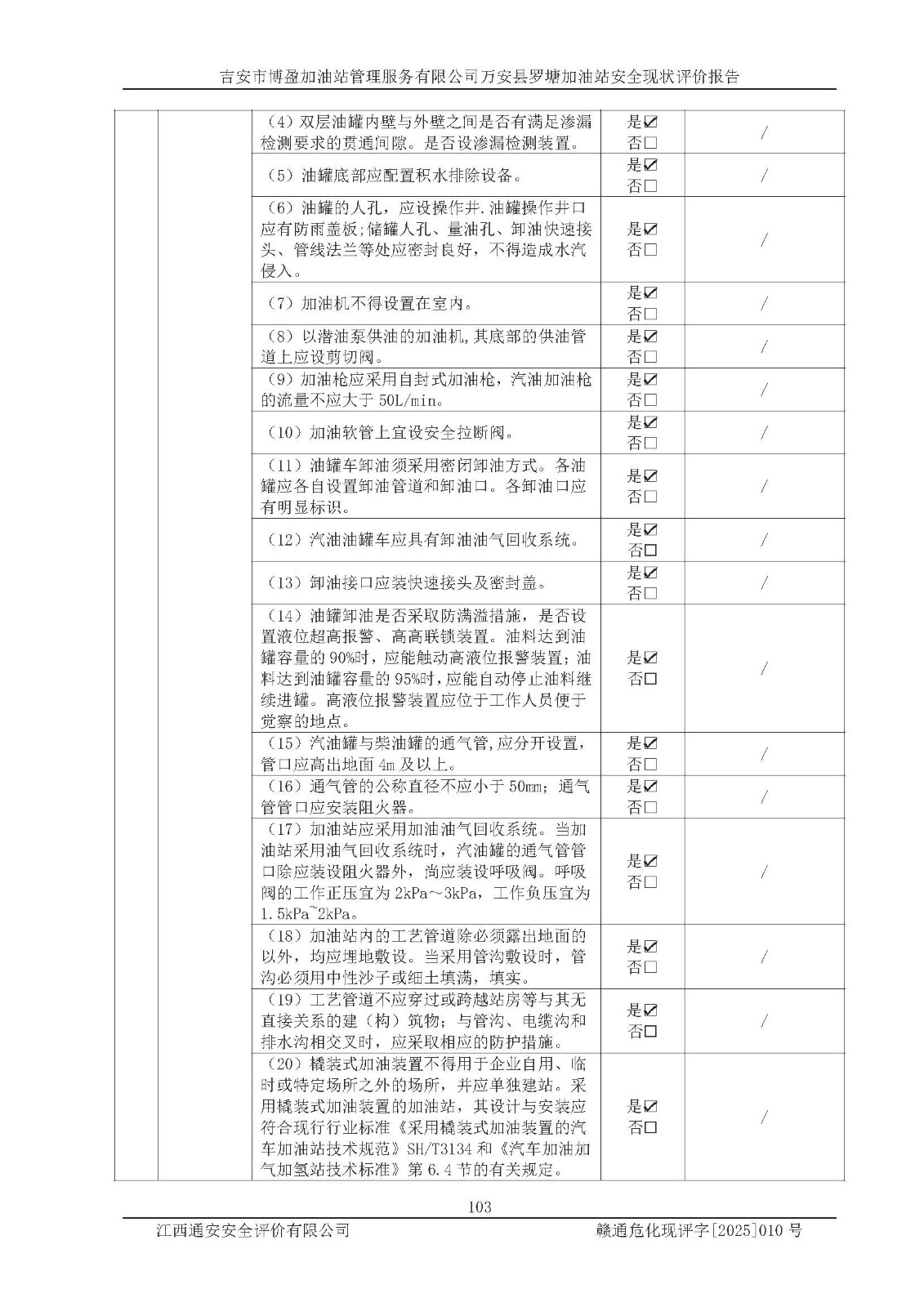 項(xiàng)目名稱 | 吉安市博盈加油站管理服務(wù)有限公司萬安縣羅塘加油站安全現(xiàn)狀評(píng)價(jià)報(bào)告 | ||||