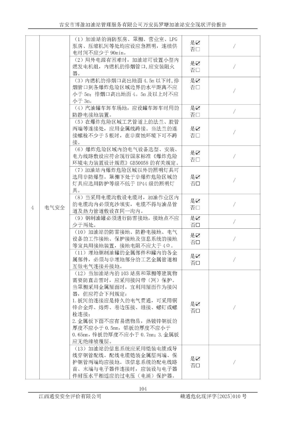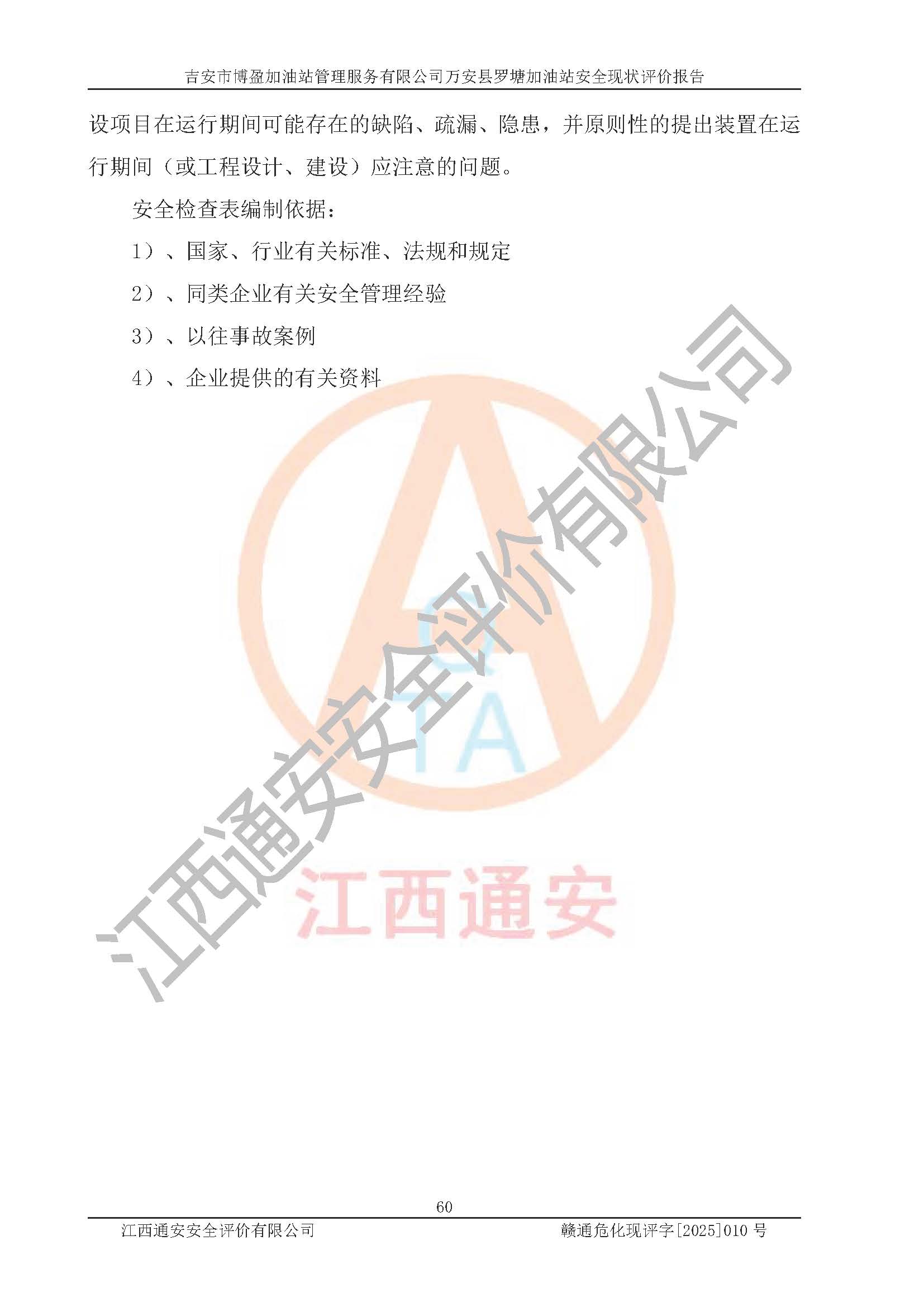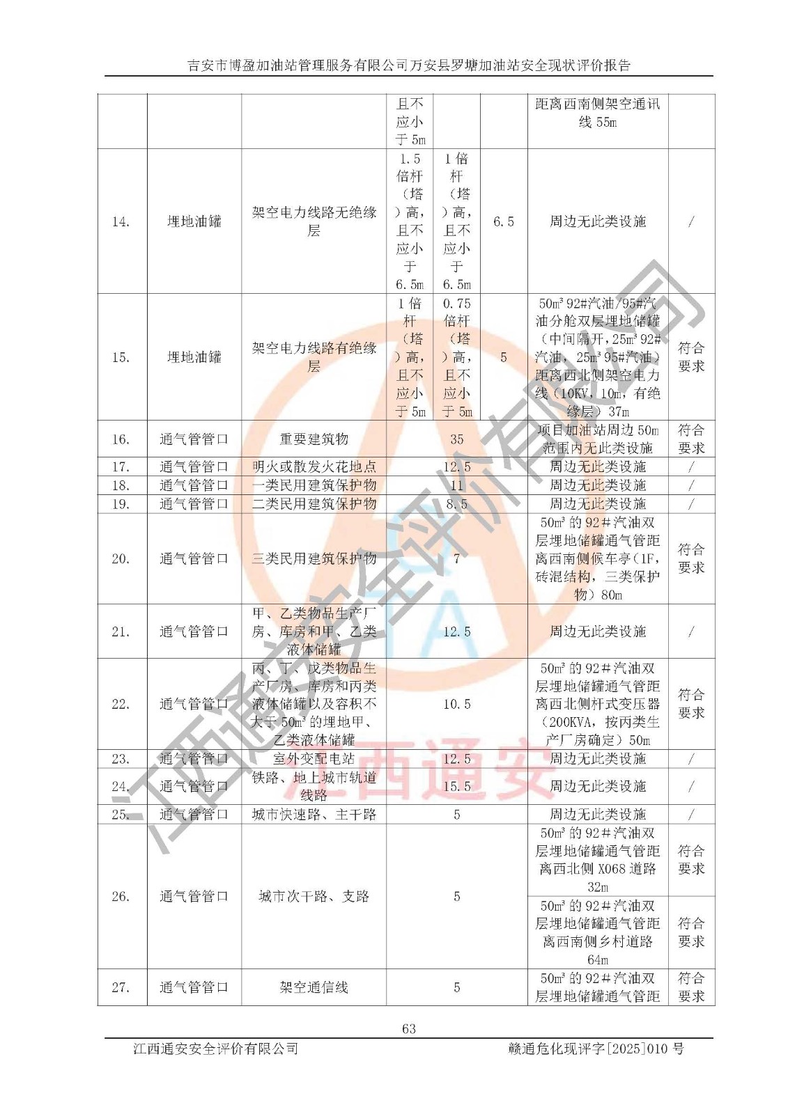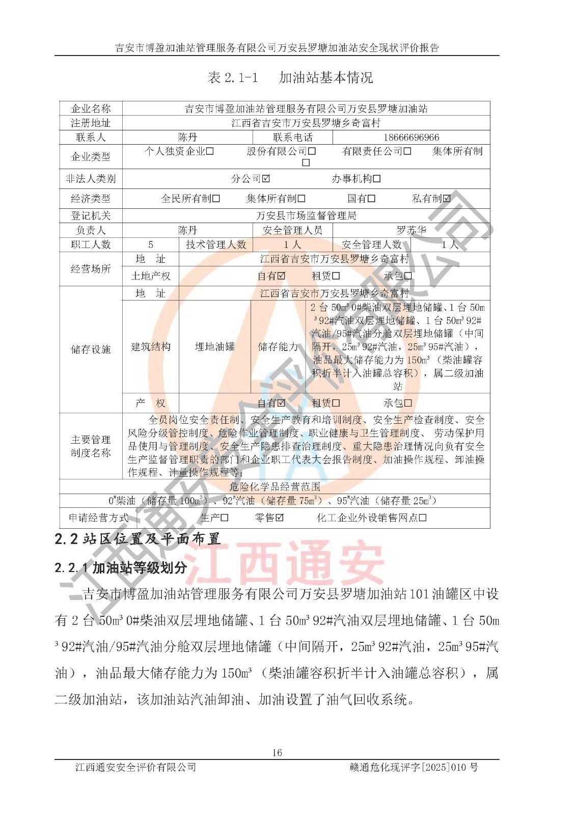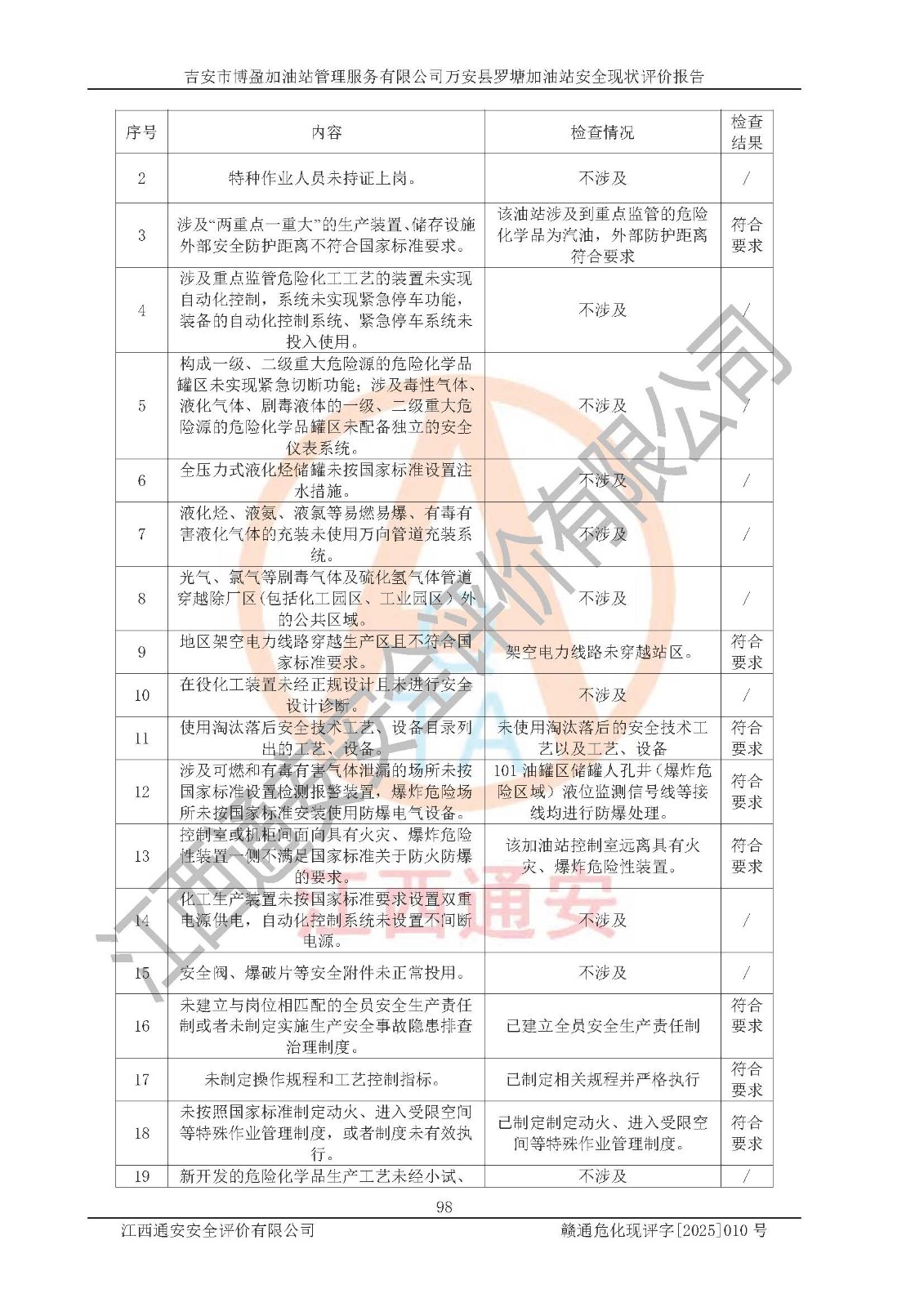 項(xiàng)目名稱 | 吉安市博盈加油站管理服務(wù)有限公司萬安縣羅塘加油站安全現(xiàn)狀評(píng)價(jià)報(bào)告 | ||||