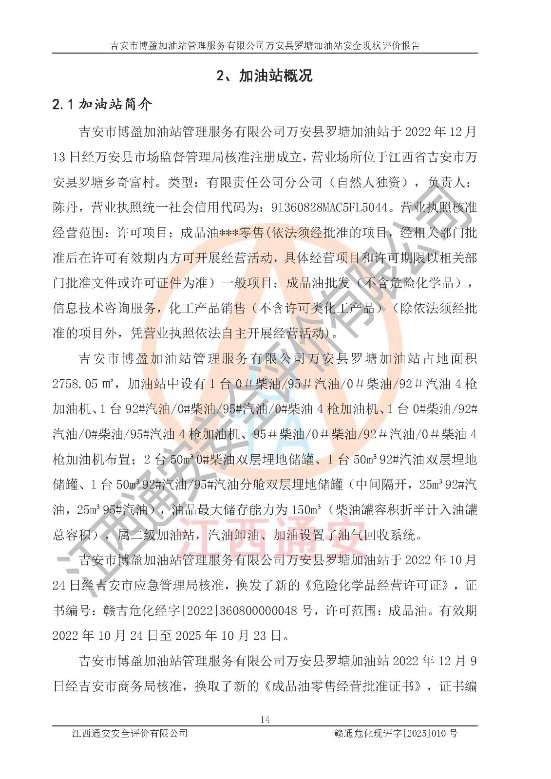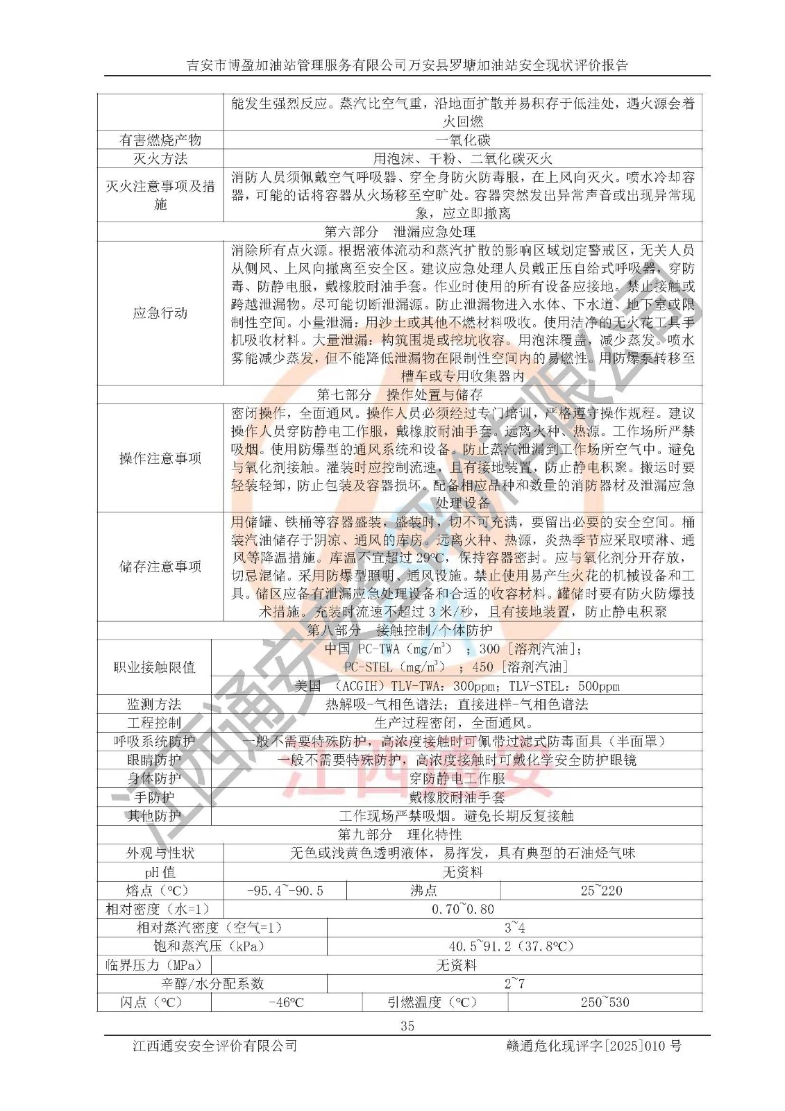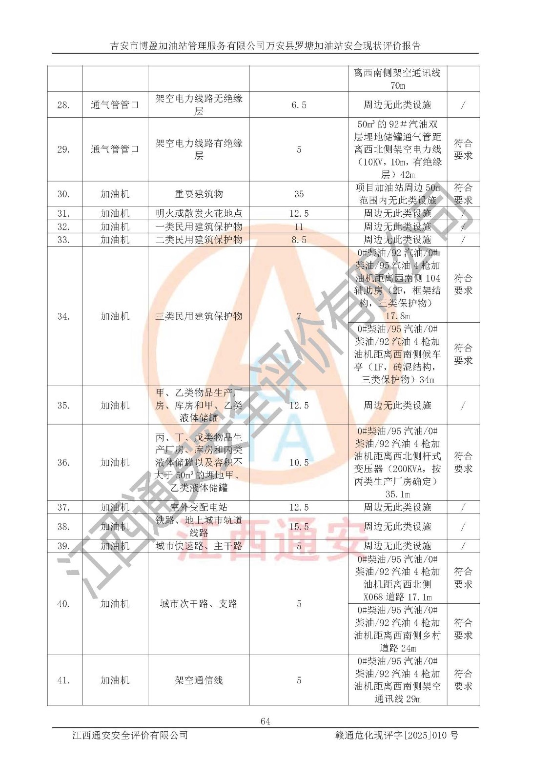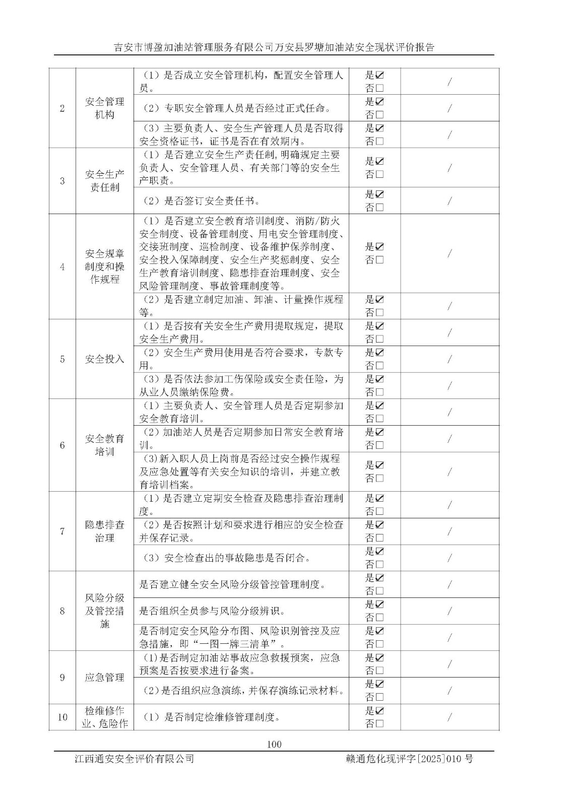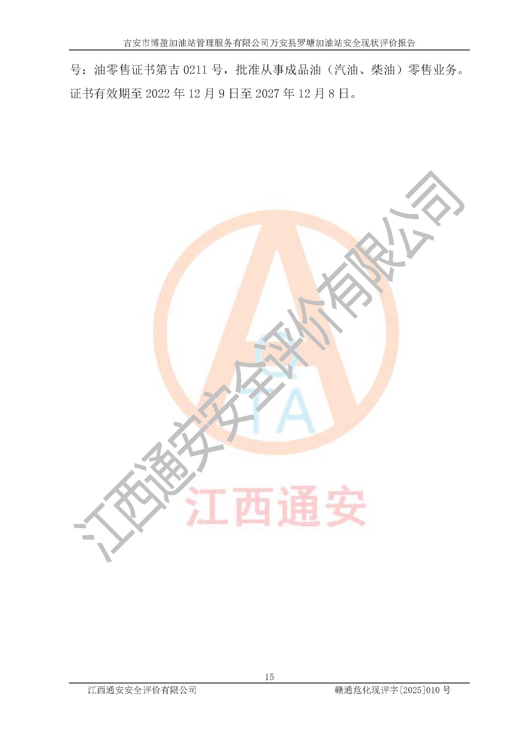 項(xiàng)目名稱 | 吉安市博盈加油站管理服務(wù)有限公司萬安縣羅塘加油站安全現(xiàn)狀評(píng)價(jià)報(bào)告 | ||||