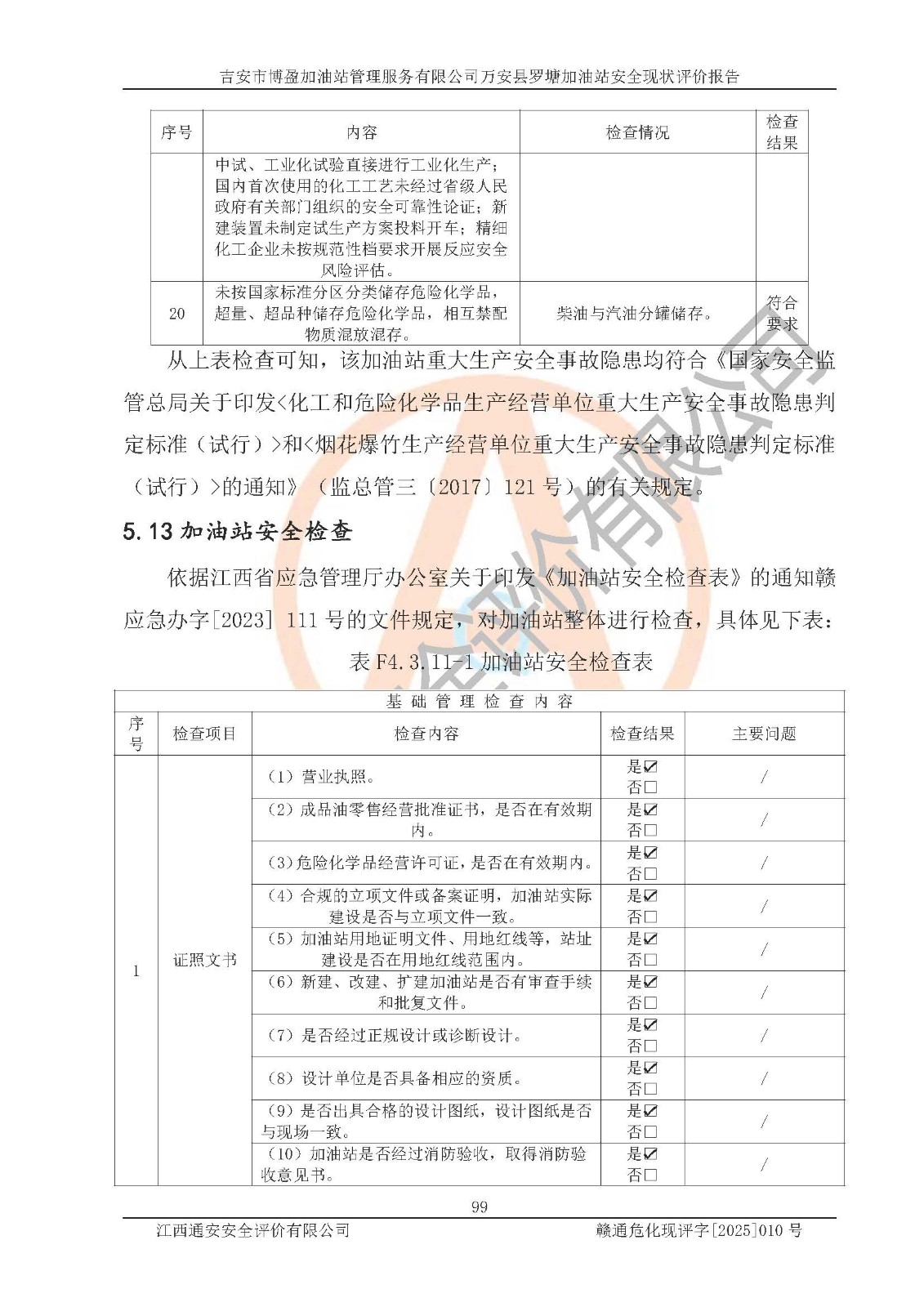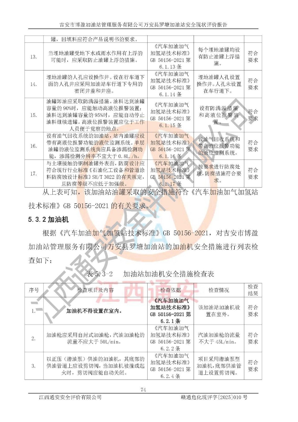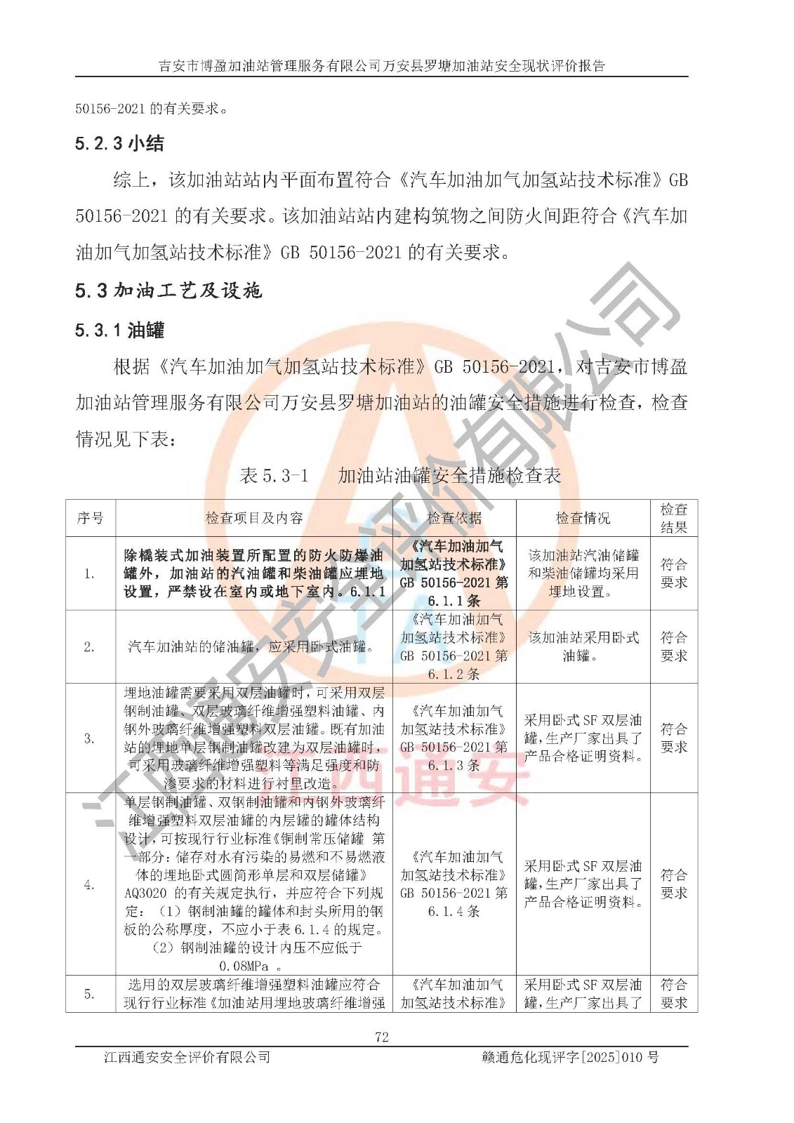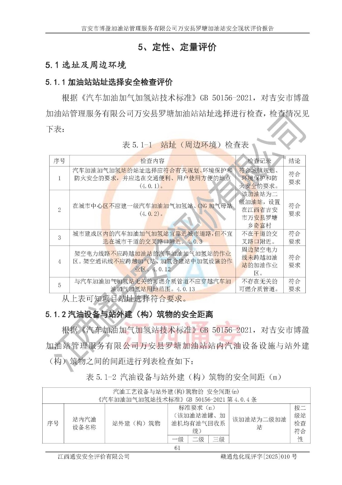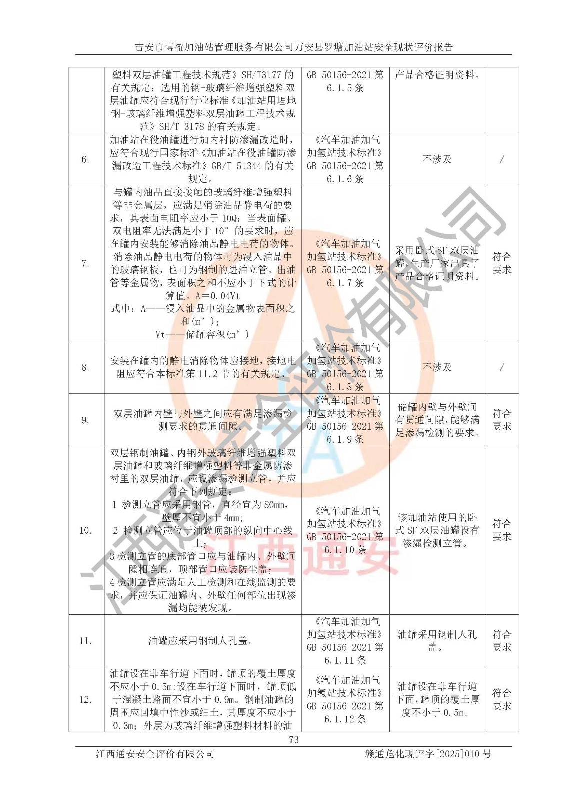 項(xiàng)目名稱 | 吉安市博盈加油站管理服務(wù)有限公司萬安縣羅塘加油站安全現(xiàn)狀評(píng)價(jià)報(bào)告 | ||||