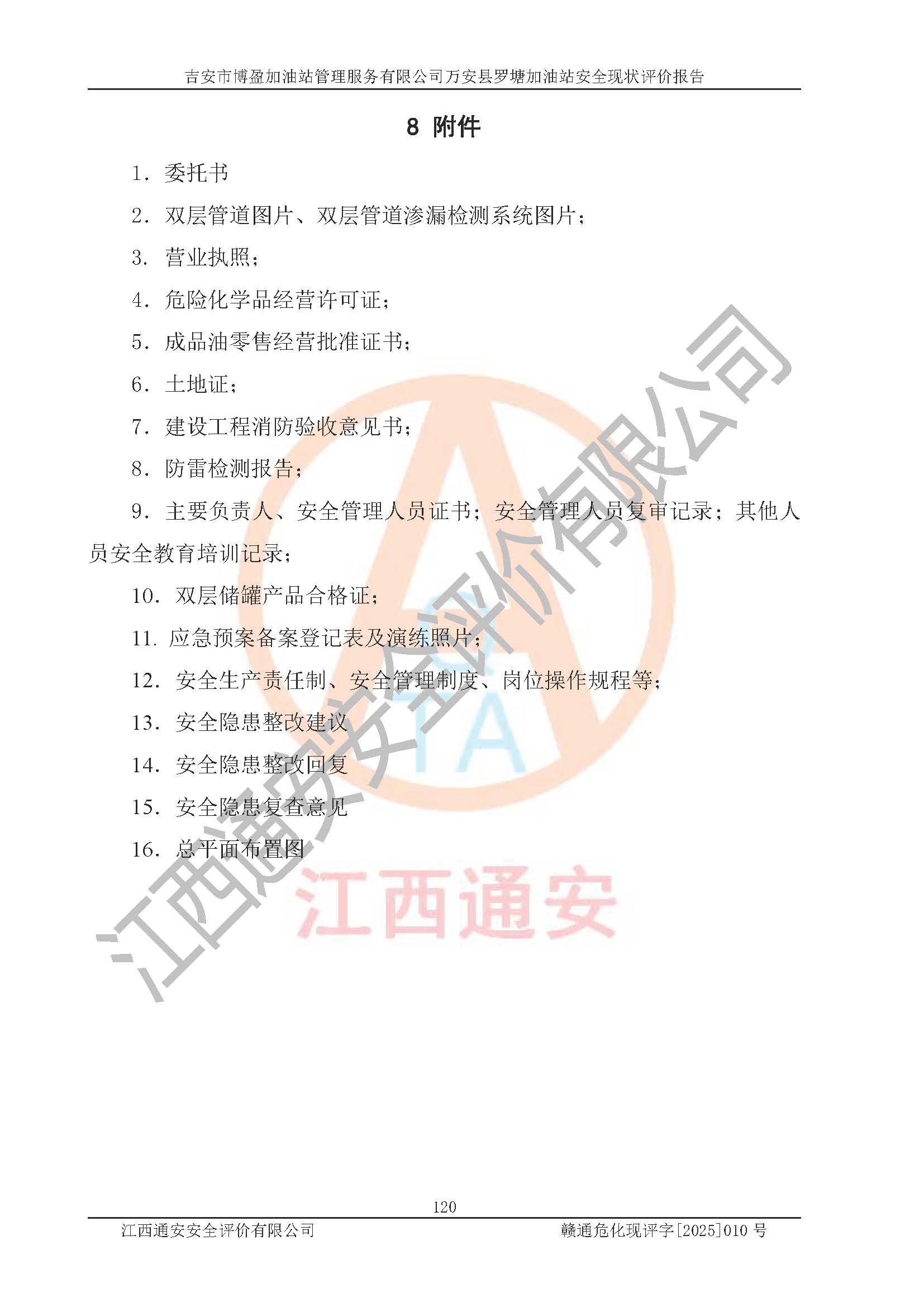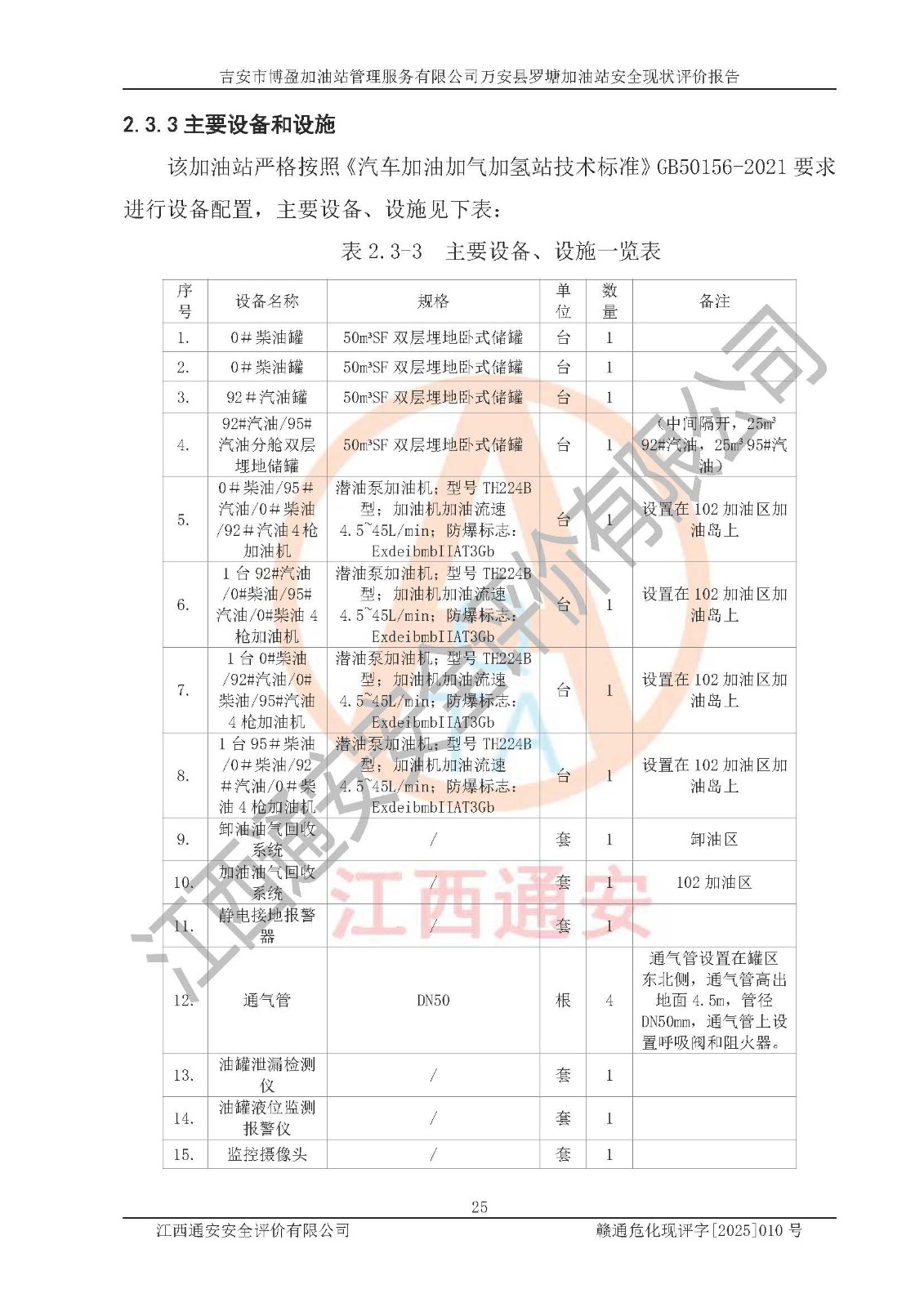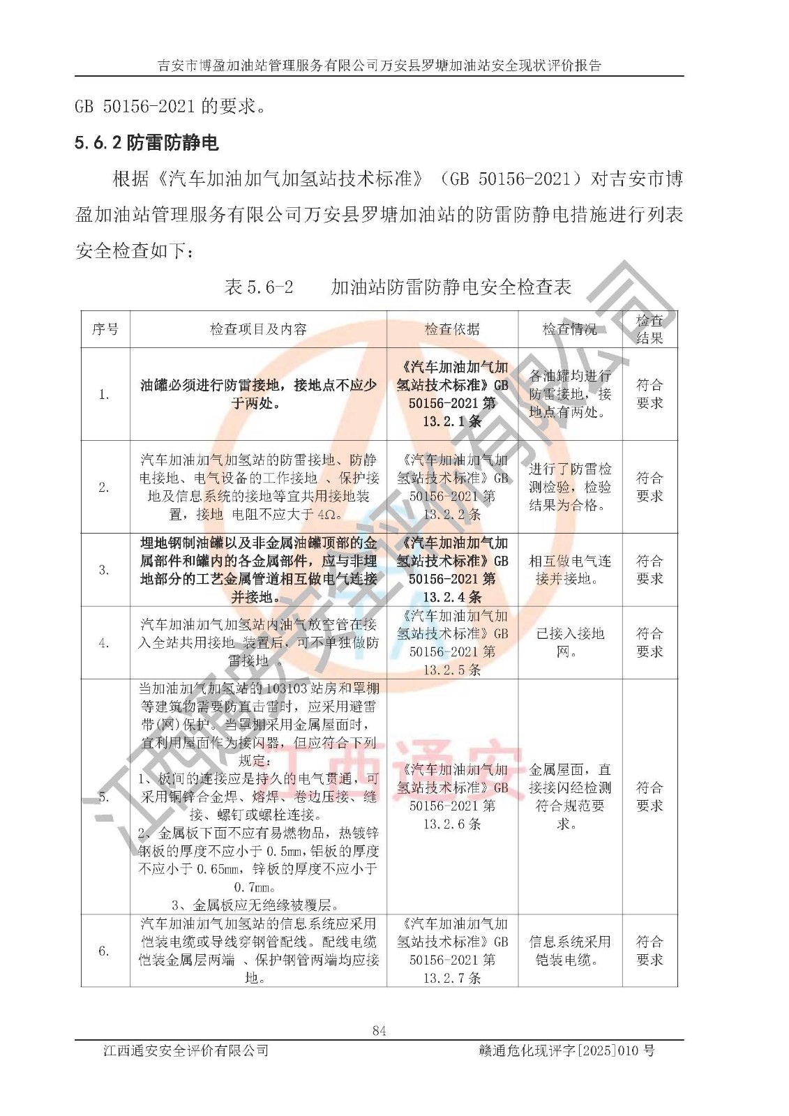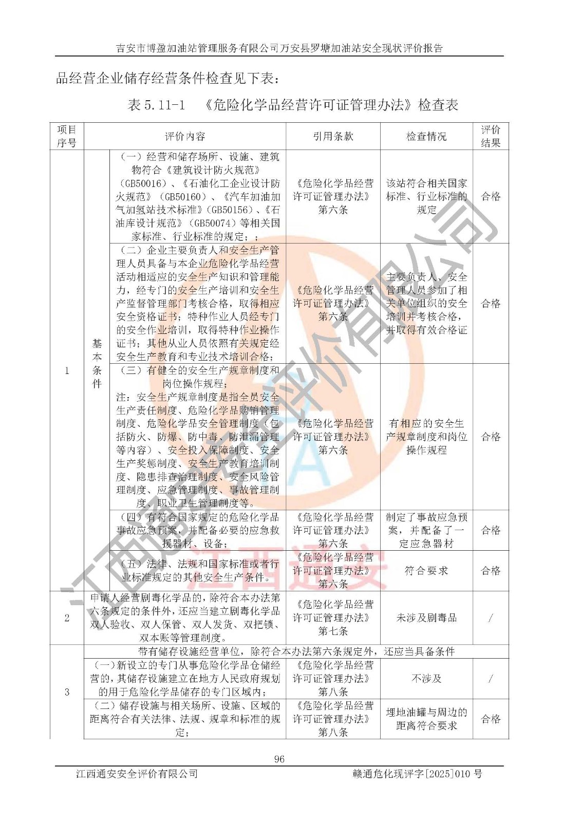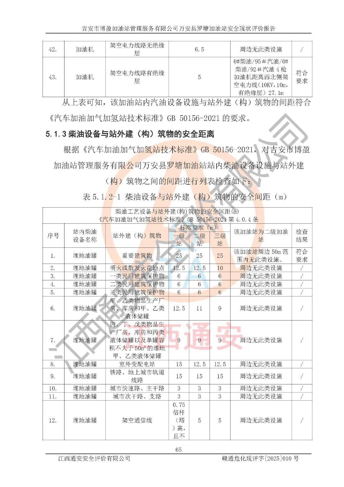 項(xiàng)目名稱 | 吉安市博盈加油站管理服務(wù)有限公司萬安縣羅塘加油站安全現(xiàn)狀評(píng)價(jià)報(bào)告 | ||||