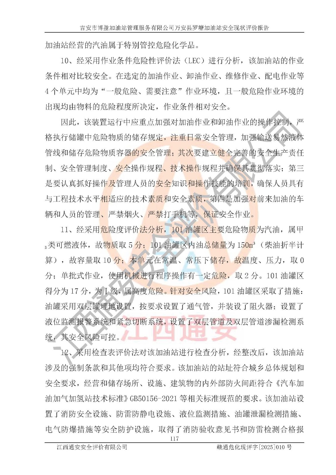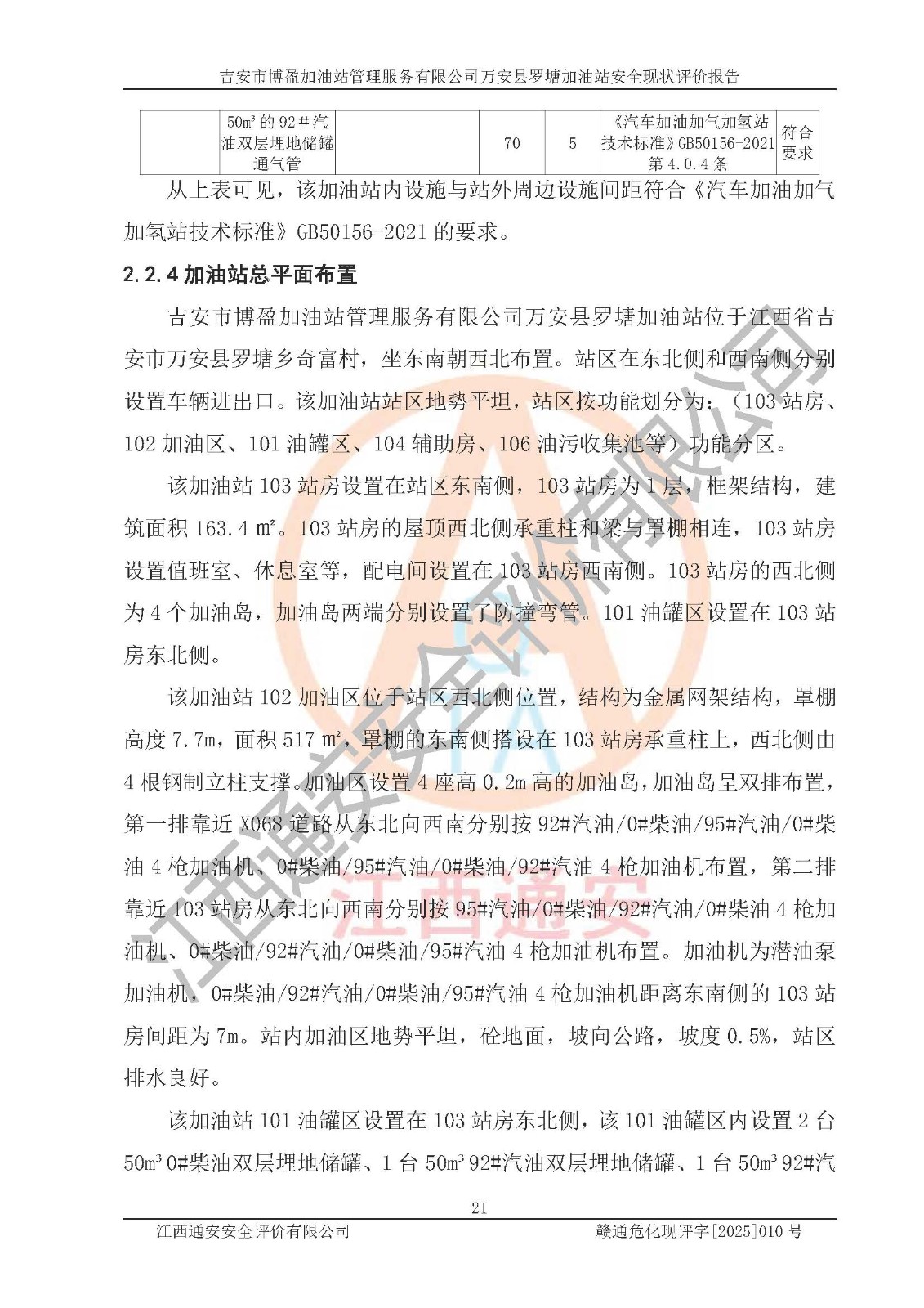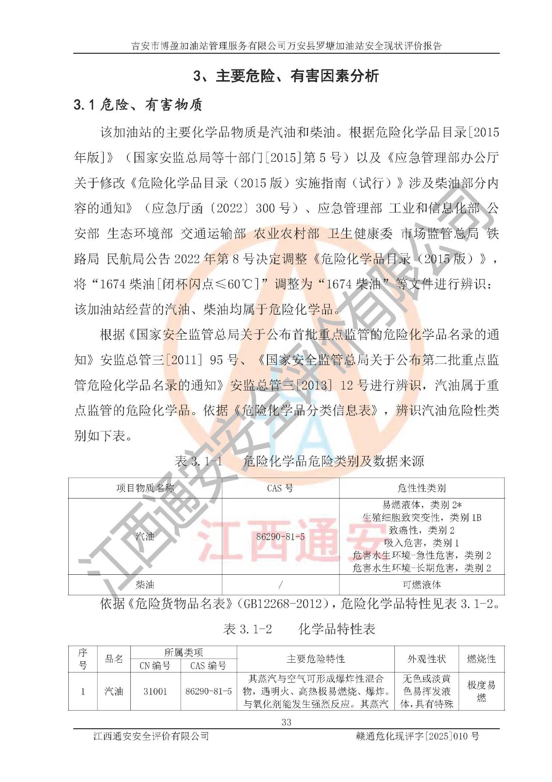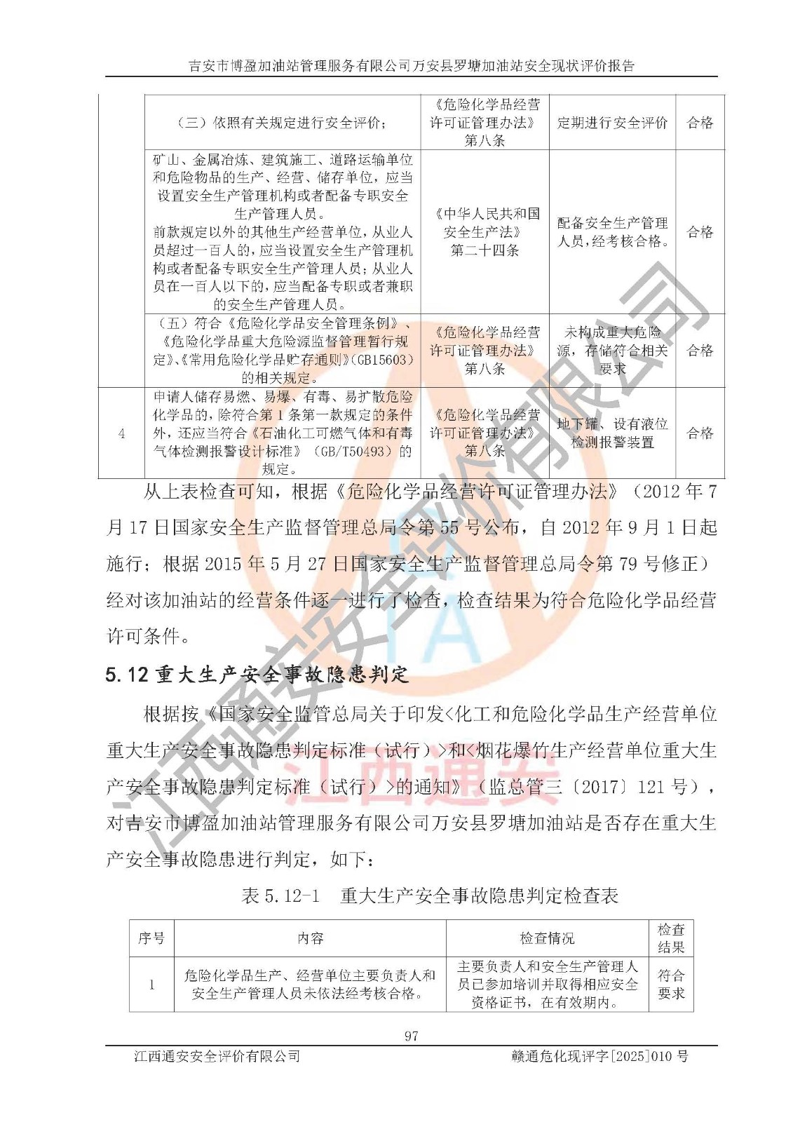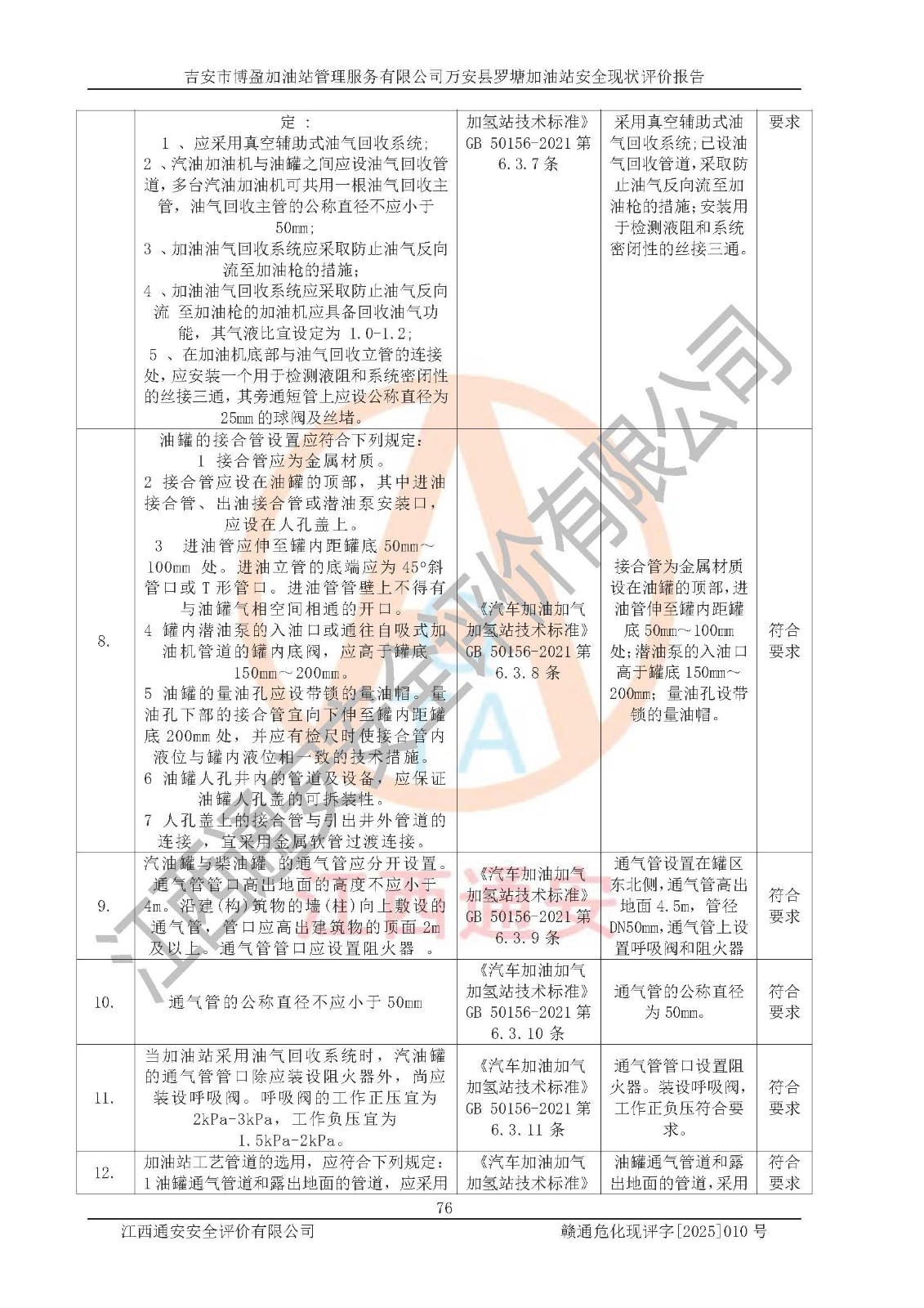 項(xiàng)目名稱 | 吉安市博盈加油站管理服務(wù)有限公司萬安縣羅塘加油站安全現(xiàn)狀評(píng)價(jià)報(bào)告 | ||||