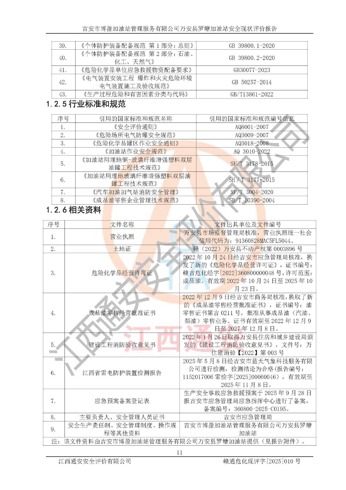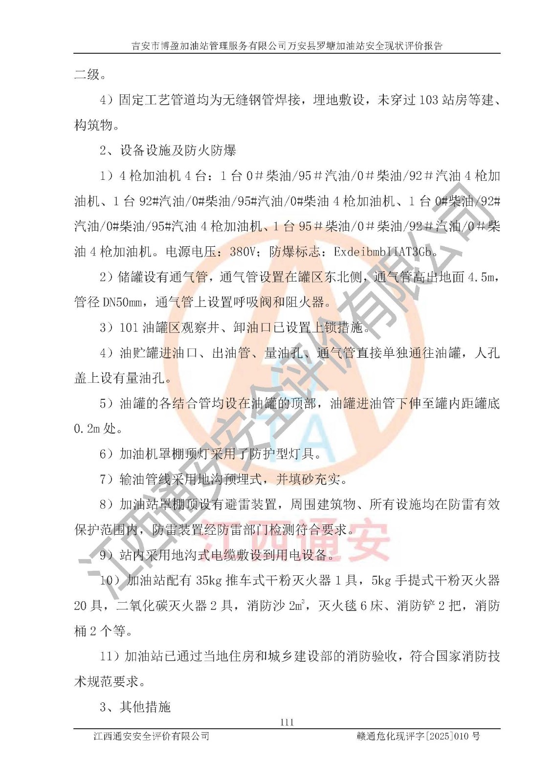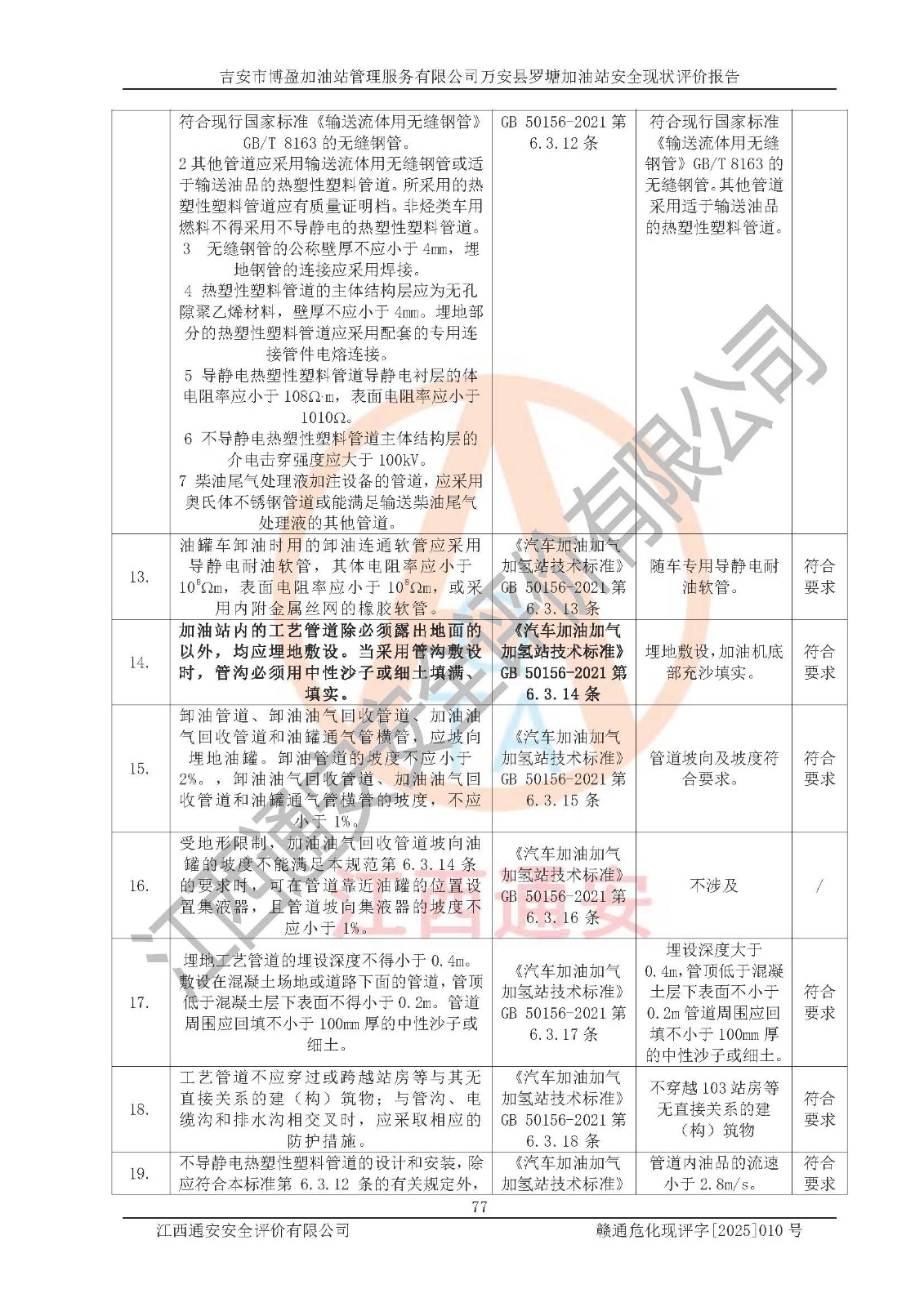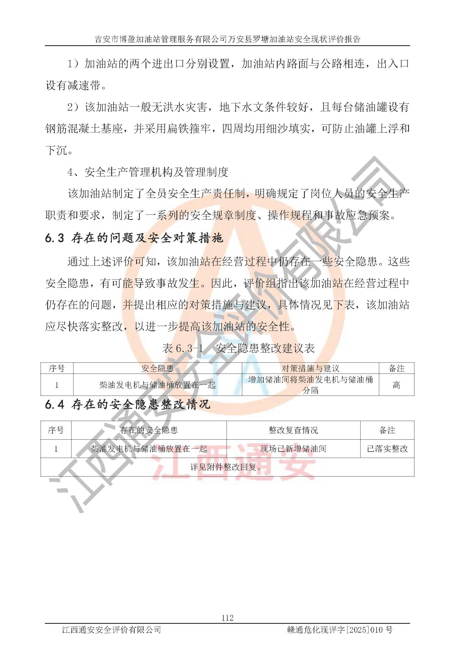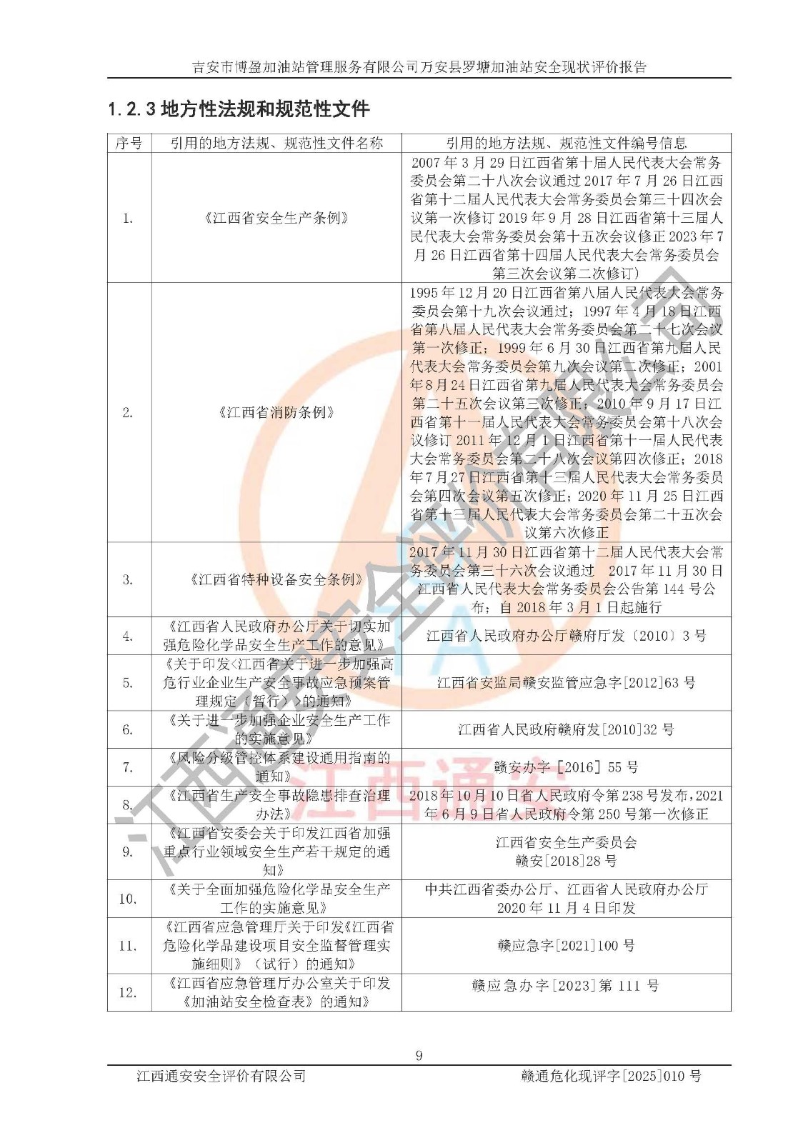 項(xiàng)目名稱 | 吉安市博盈加油站管理服務(wù)有限公司萬安縣羅塘加油站安全現(xiàn)狀評(píng)價(jià)報(bào)告 | ||||