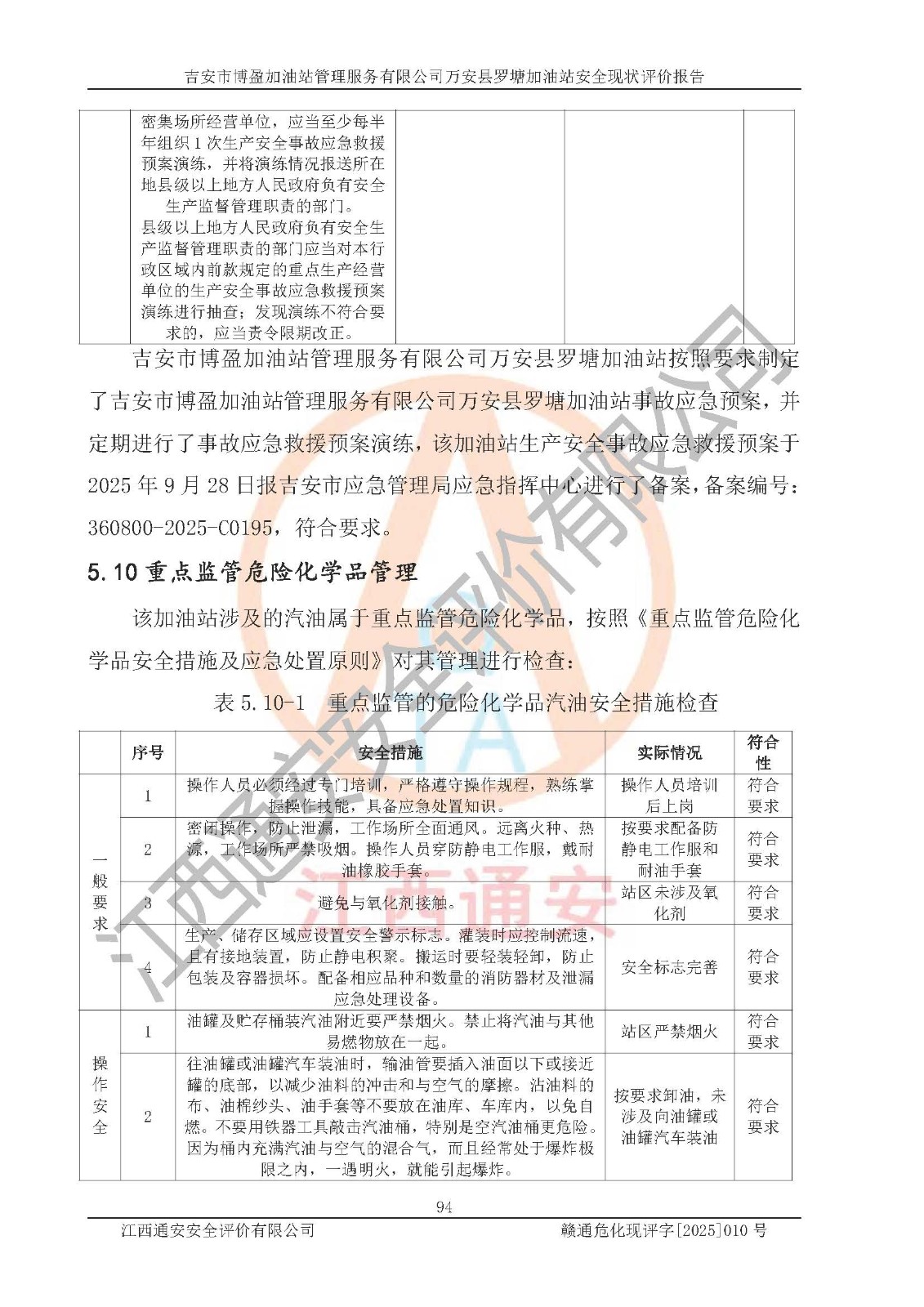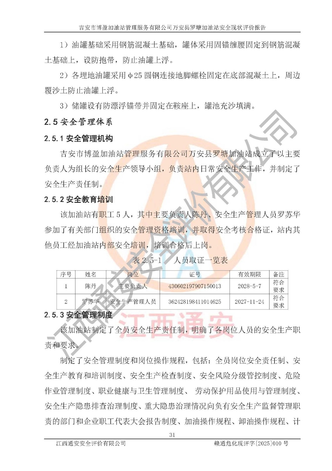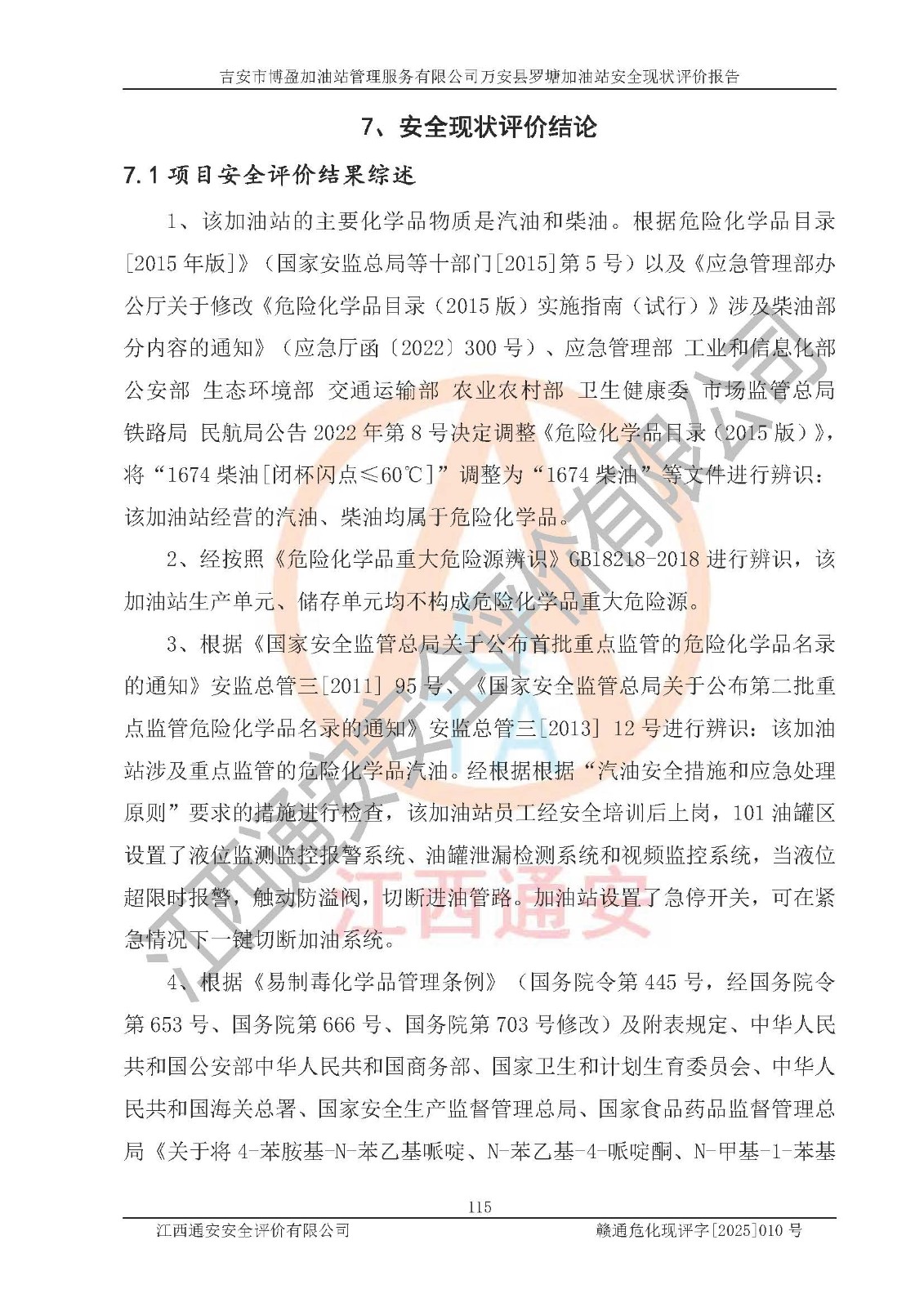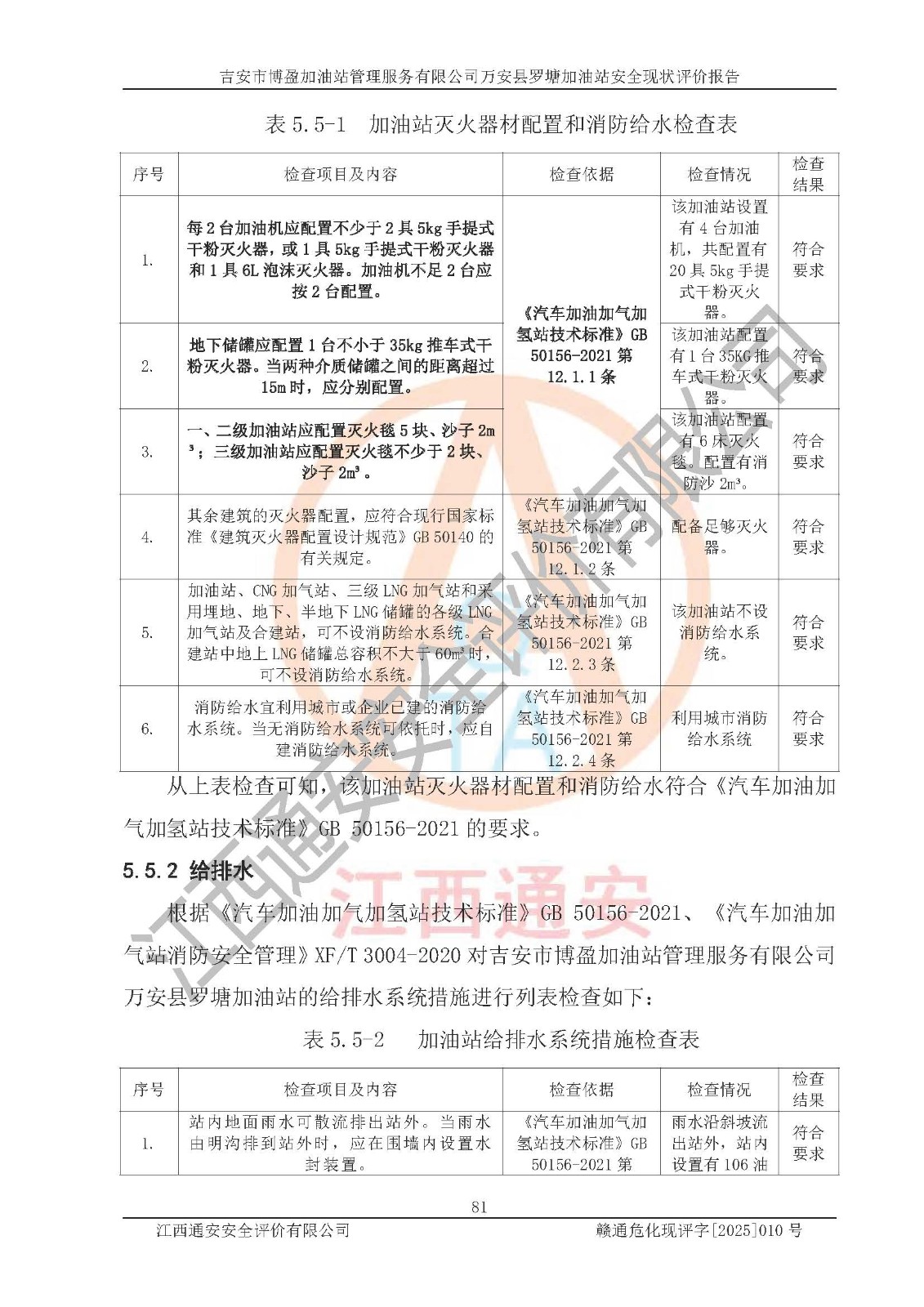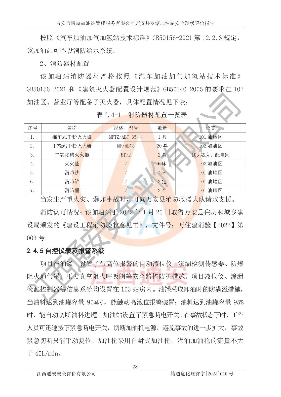 項(xiàng)目名稱 | 吉安市博盈加油站管理服務(wù)有限公司萬安縣羅塘加油站安全現(xiàn)狀評(píng)價(jià)報(bào)告 | ||||