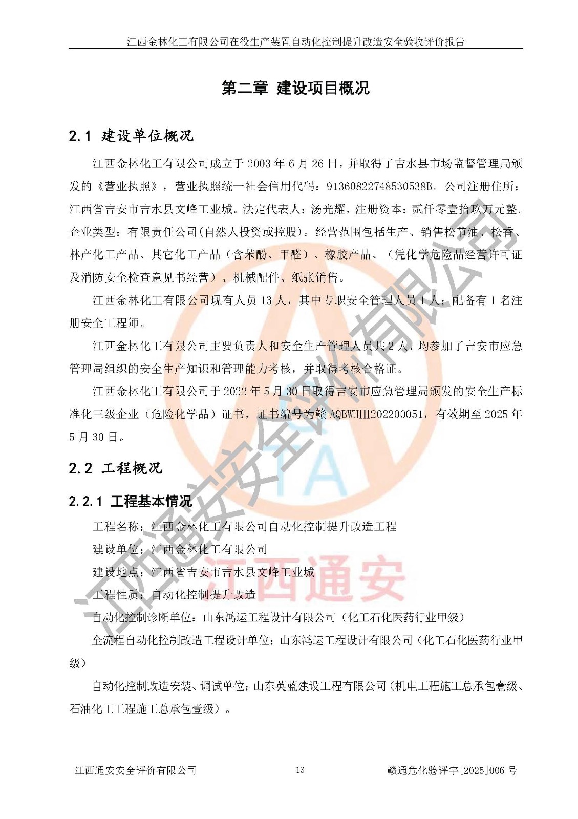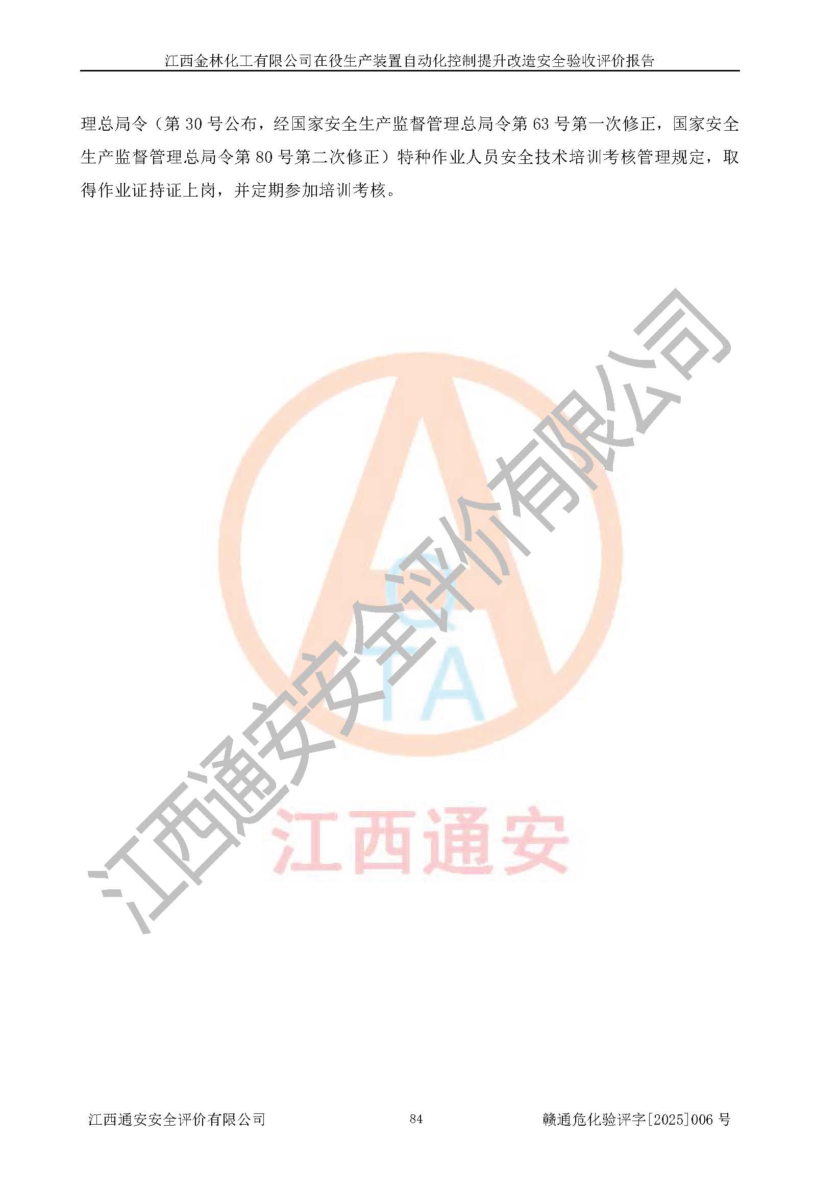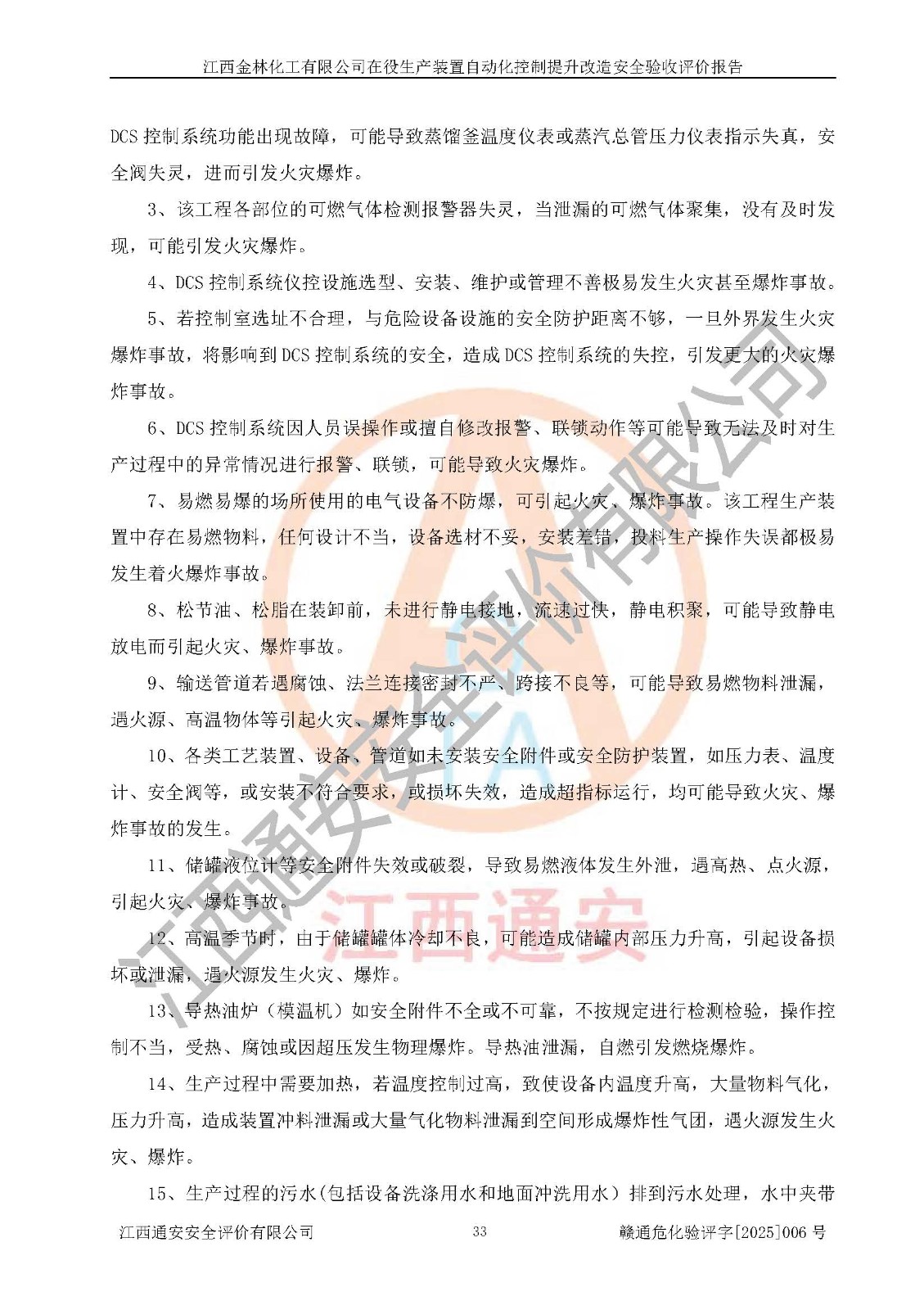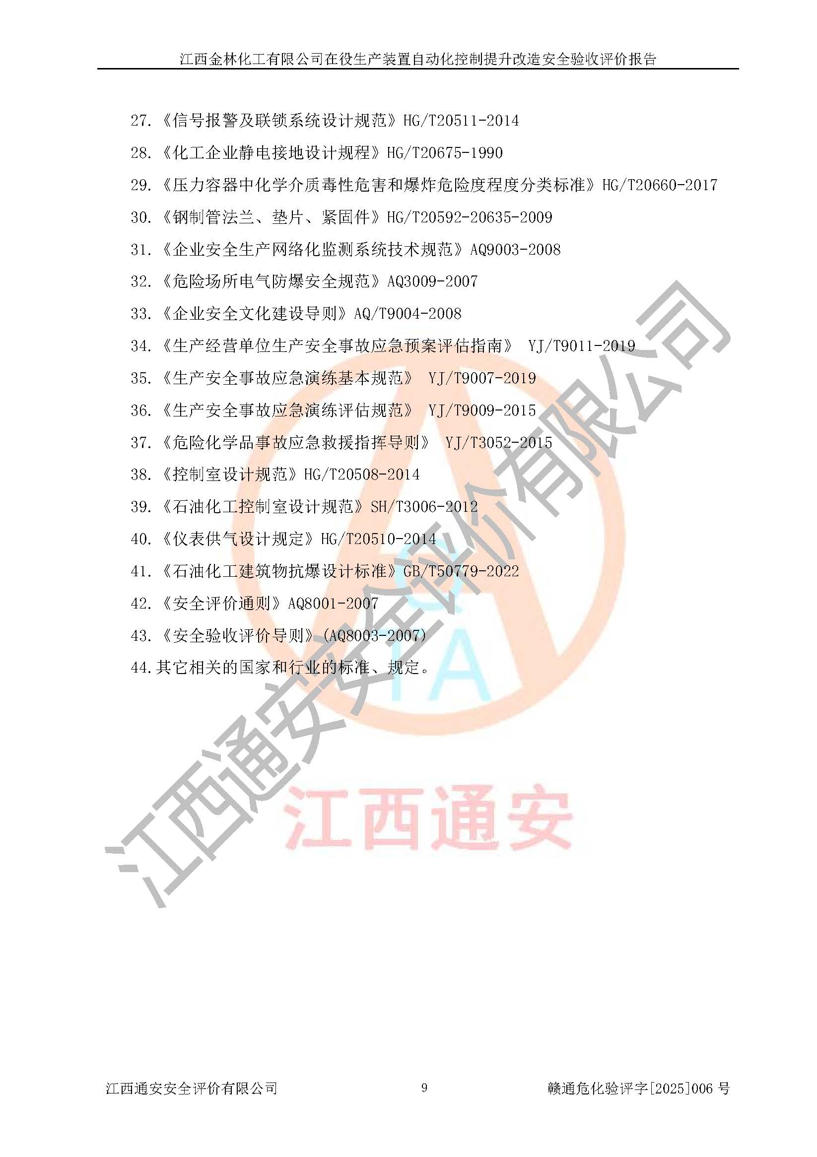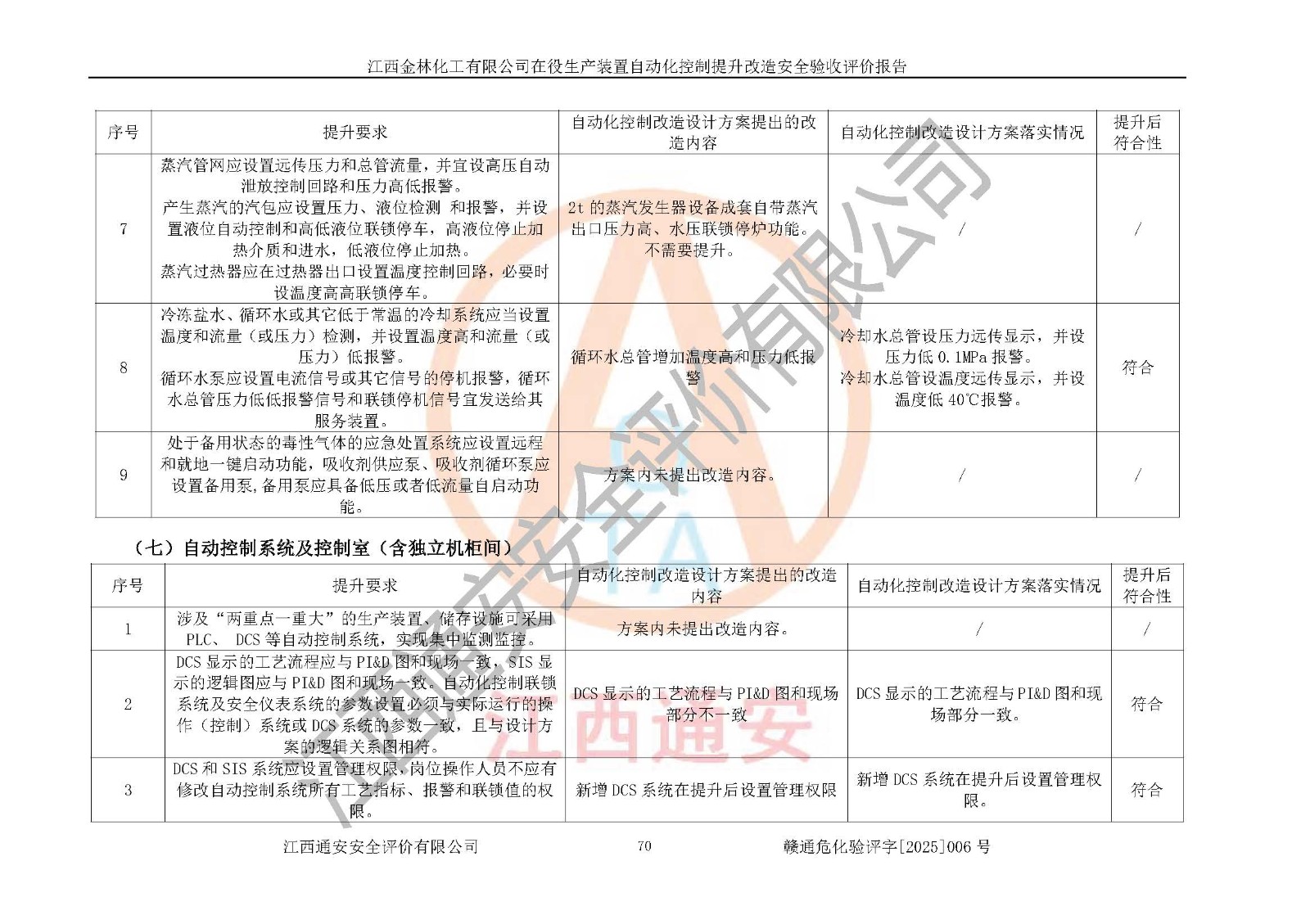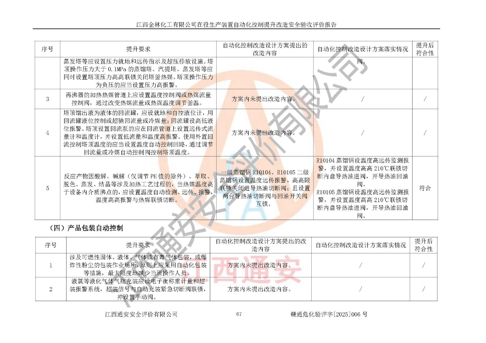 評(píng)價(jià)報(bào)告名稱 | 江西金林化工有限公司在役生產(chǎn)裝置自動(dòng)化控制提升改造安全驗(yàn)收評(píng)價(jià)報(bào)告 | |||