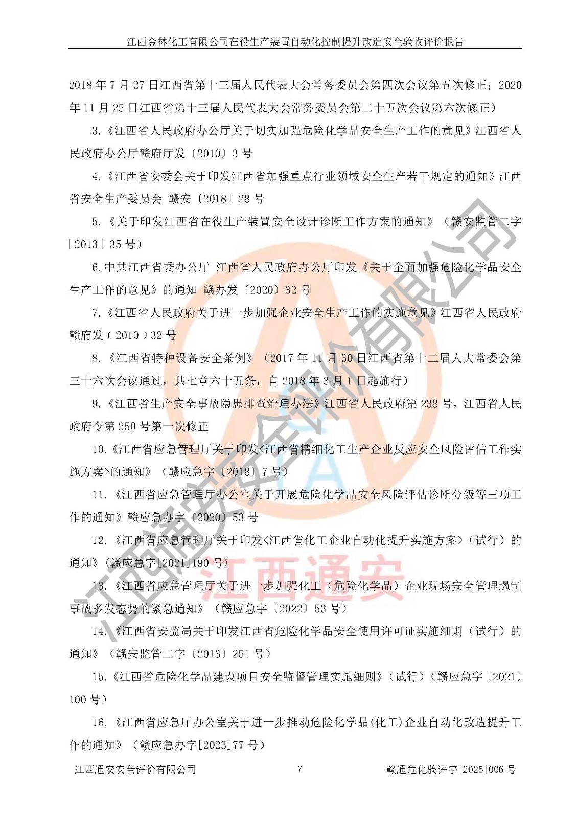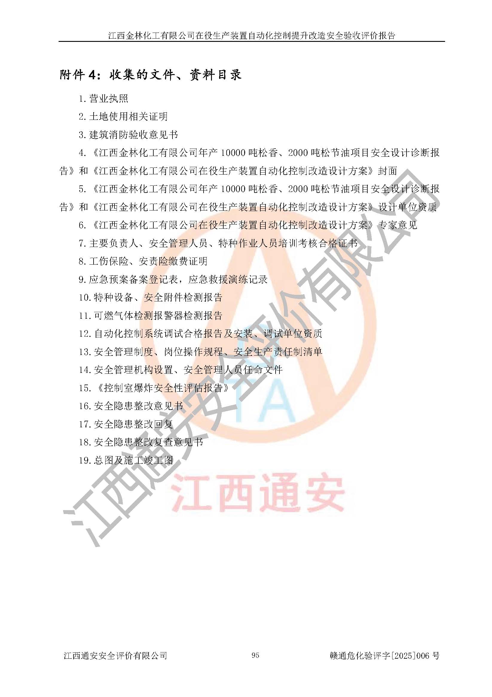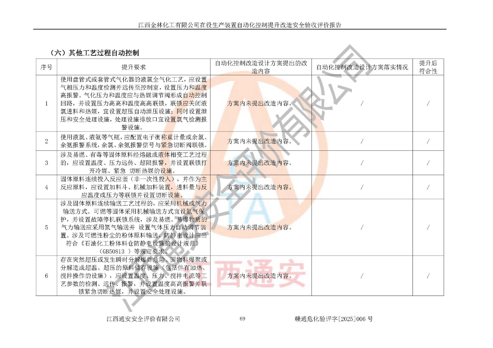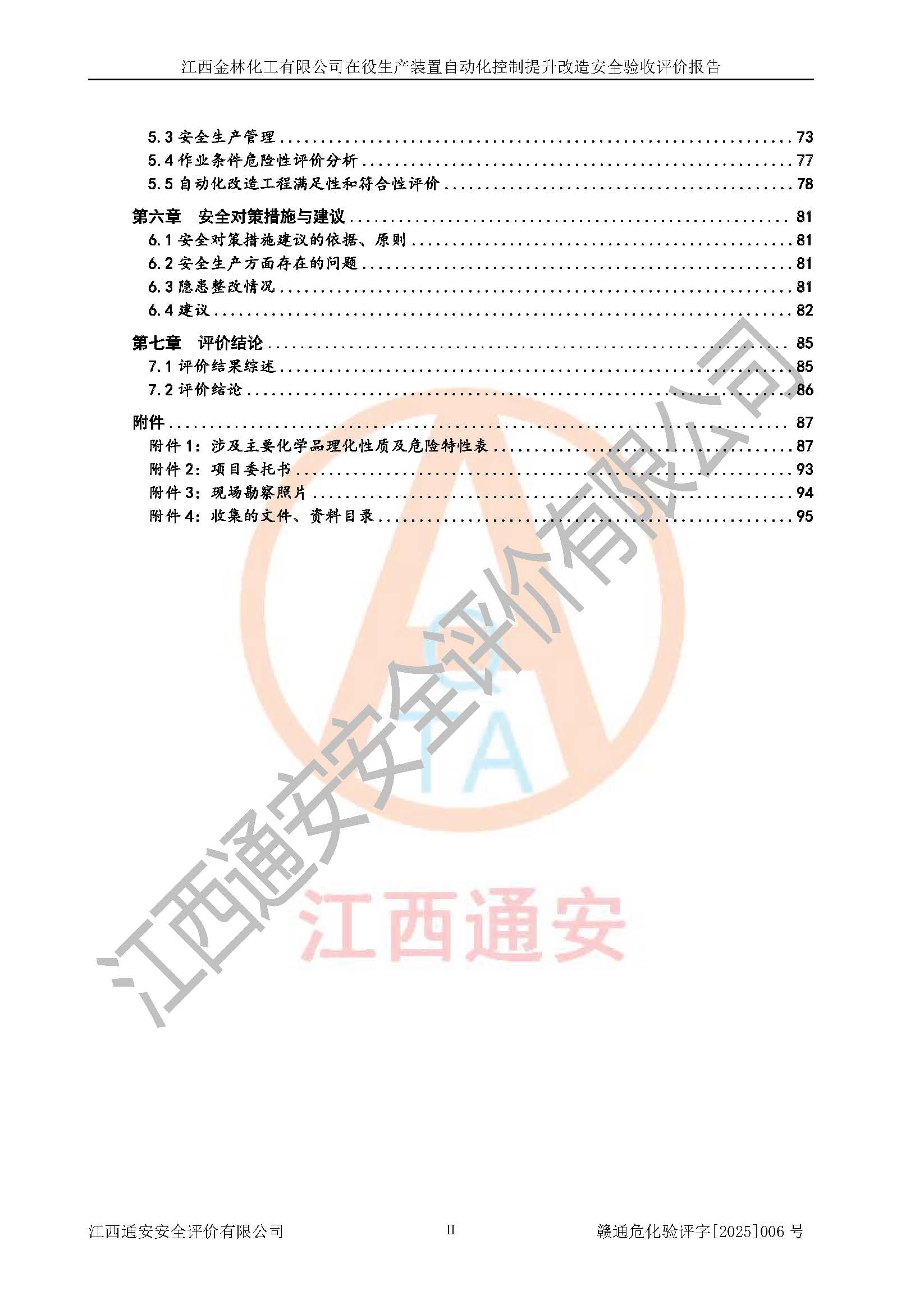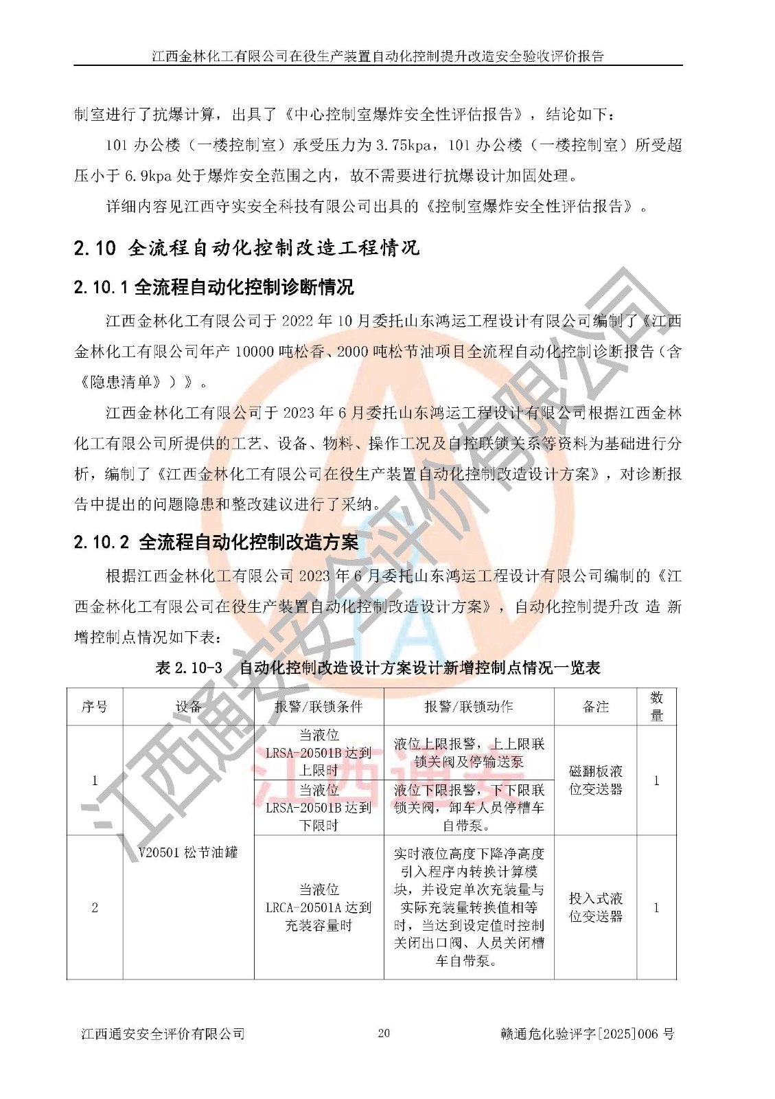 評(píng)價(jià)報(bào)告名稱 | 江西金林化工有限公司在役生產(chǎn)裝置自動(dòng)化控制提升改造安全驗(yàn)收評(píng)價(jià)報(bào)告 | |||