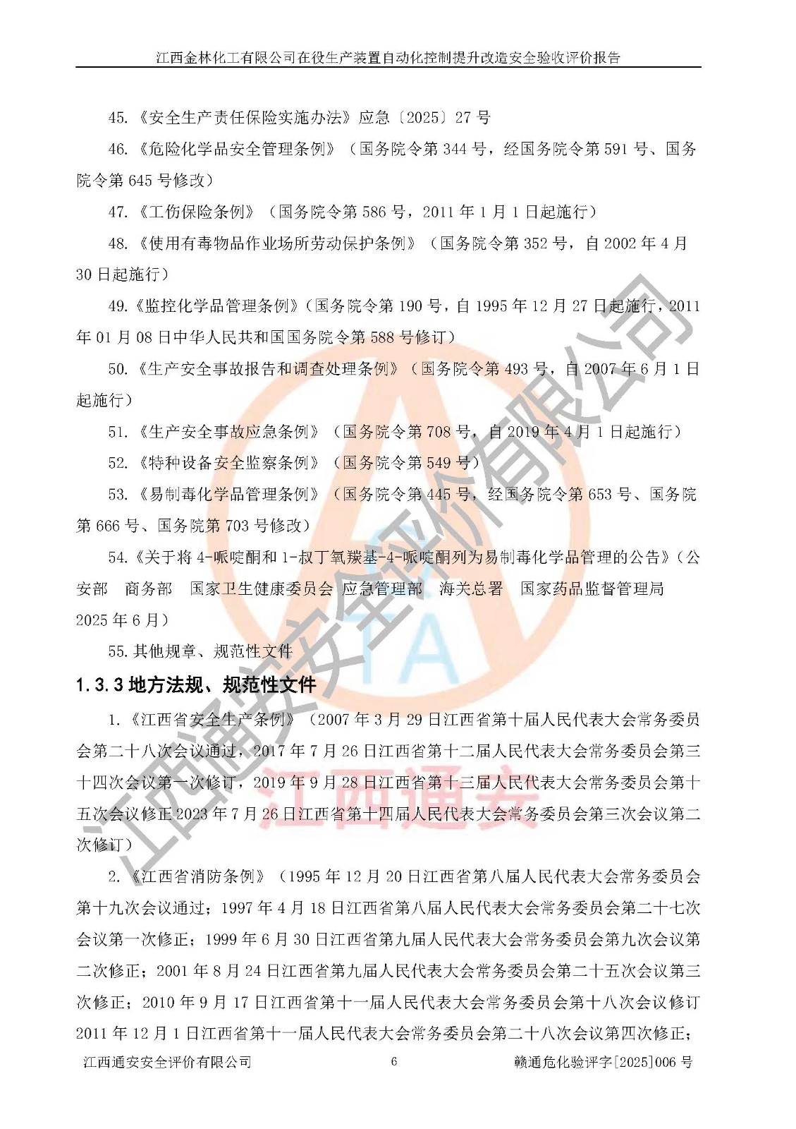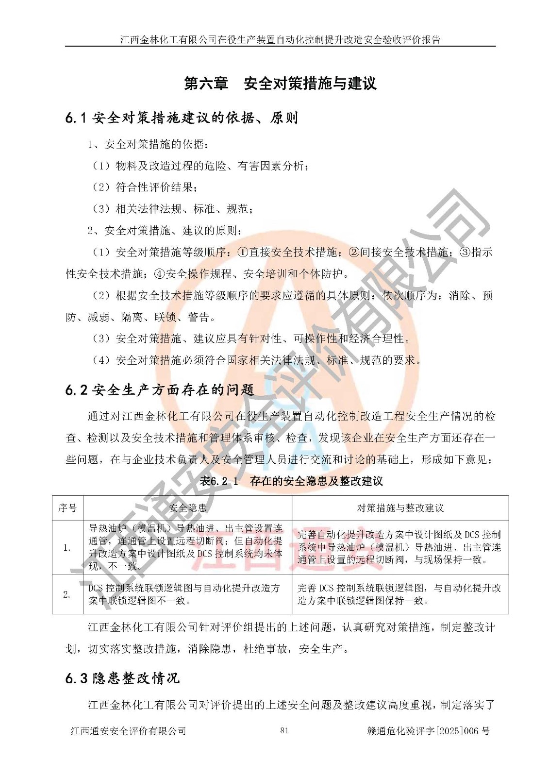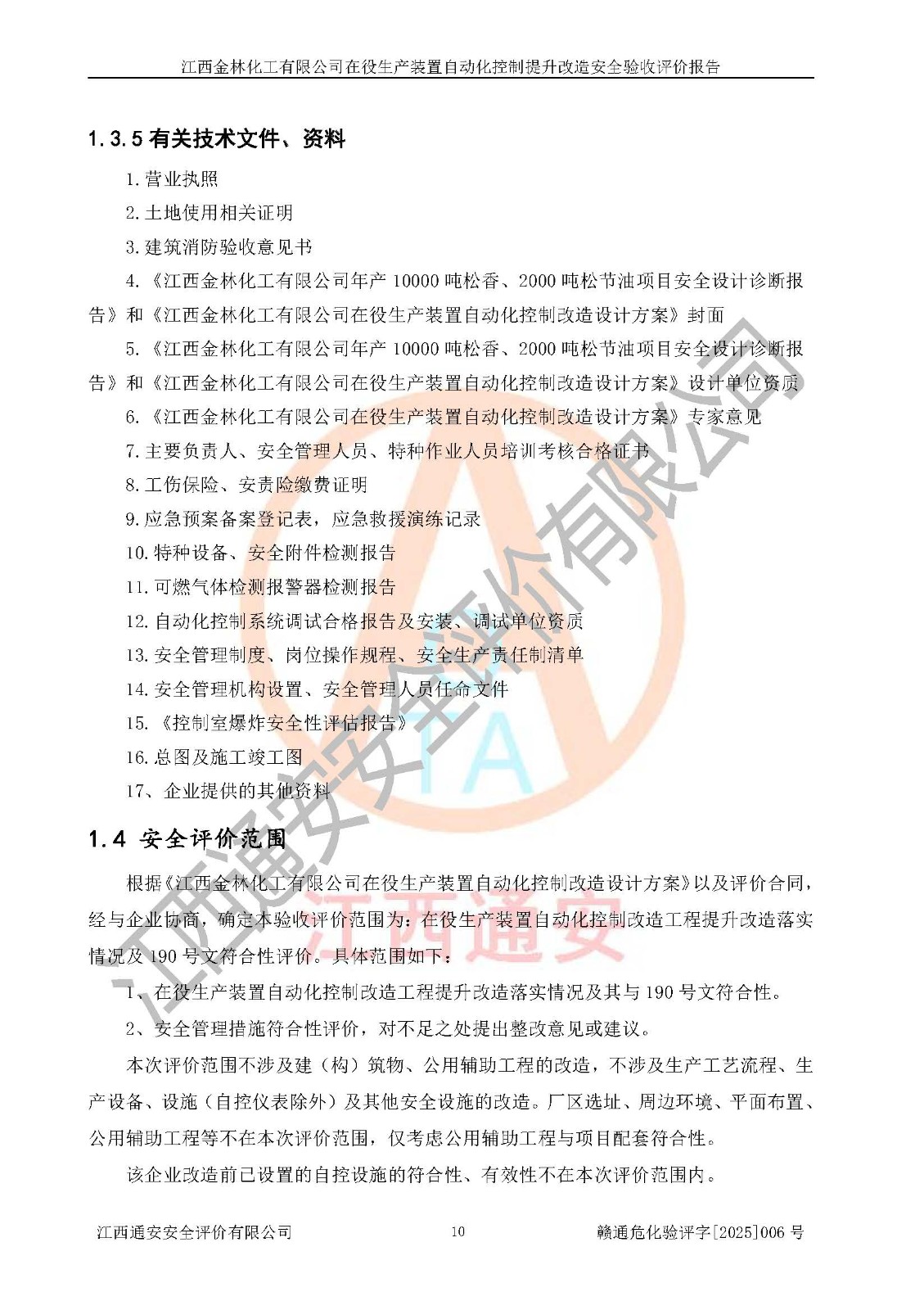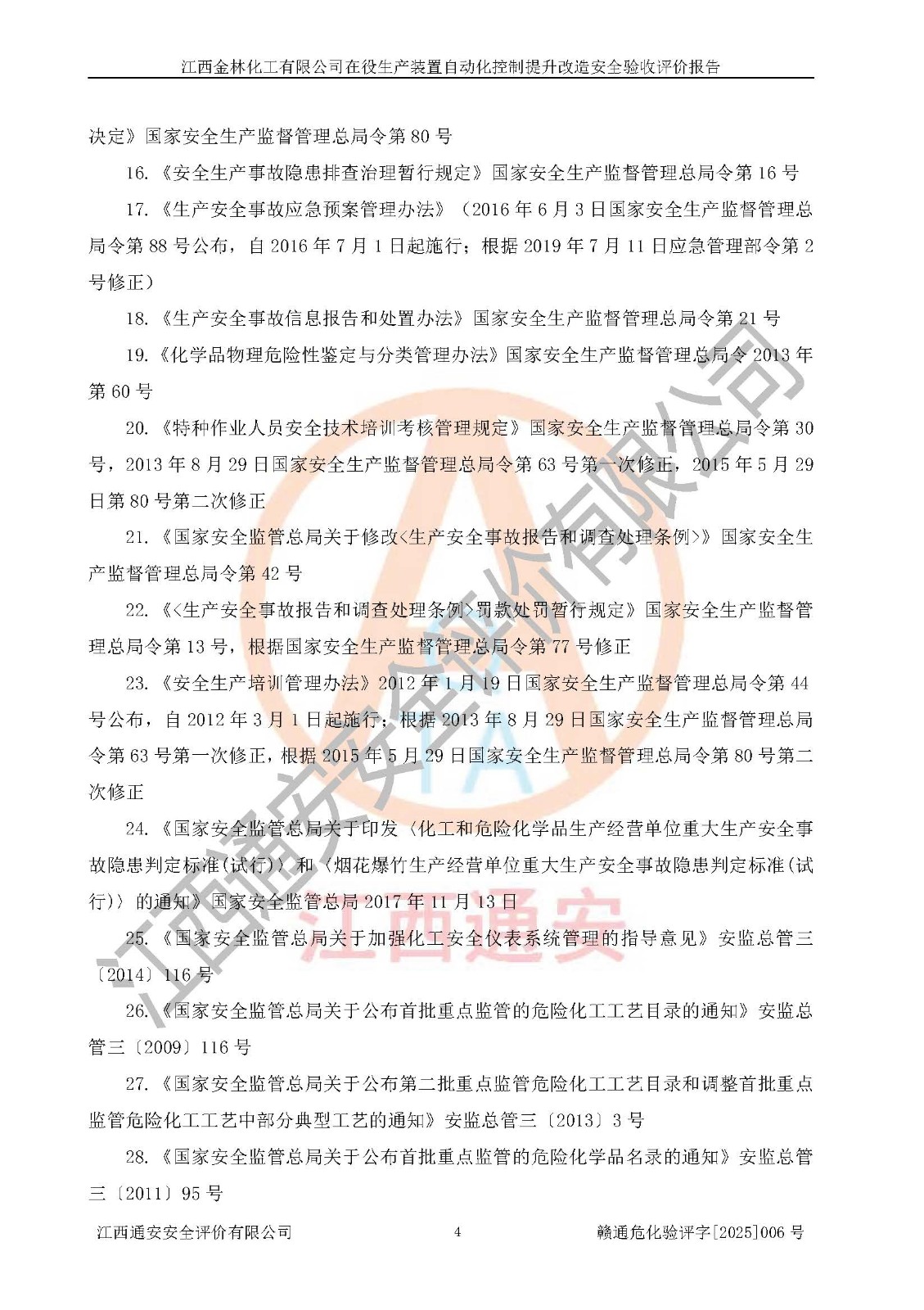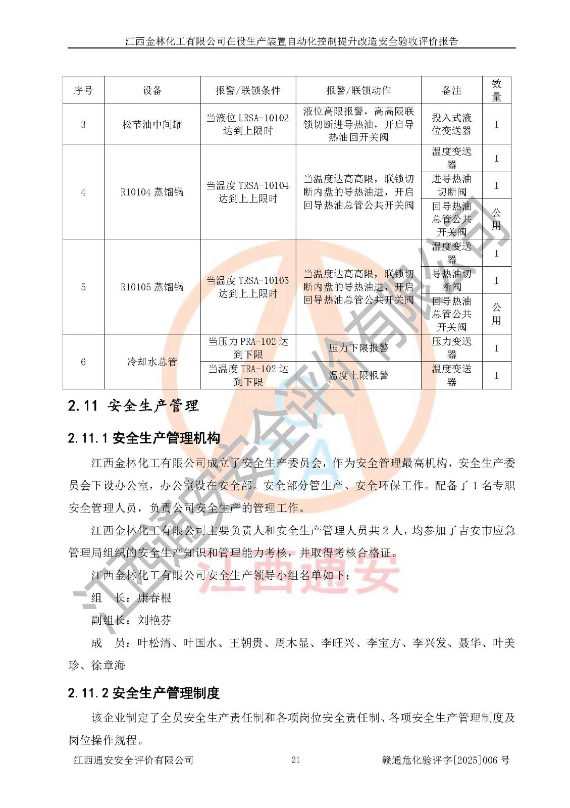 評(píng)價(jià)報(bào)告名稱 | 江西金林化工有限公司在役生產(chǎn)裝置自動(dòng)化控制提升改造安全驗(yàn)收評(píng)價(jià)報(bào)告 | |||
