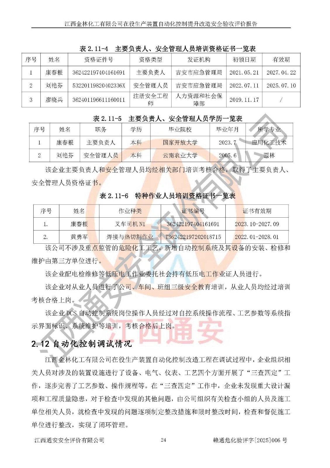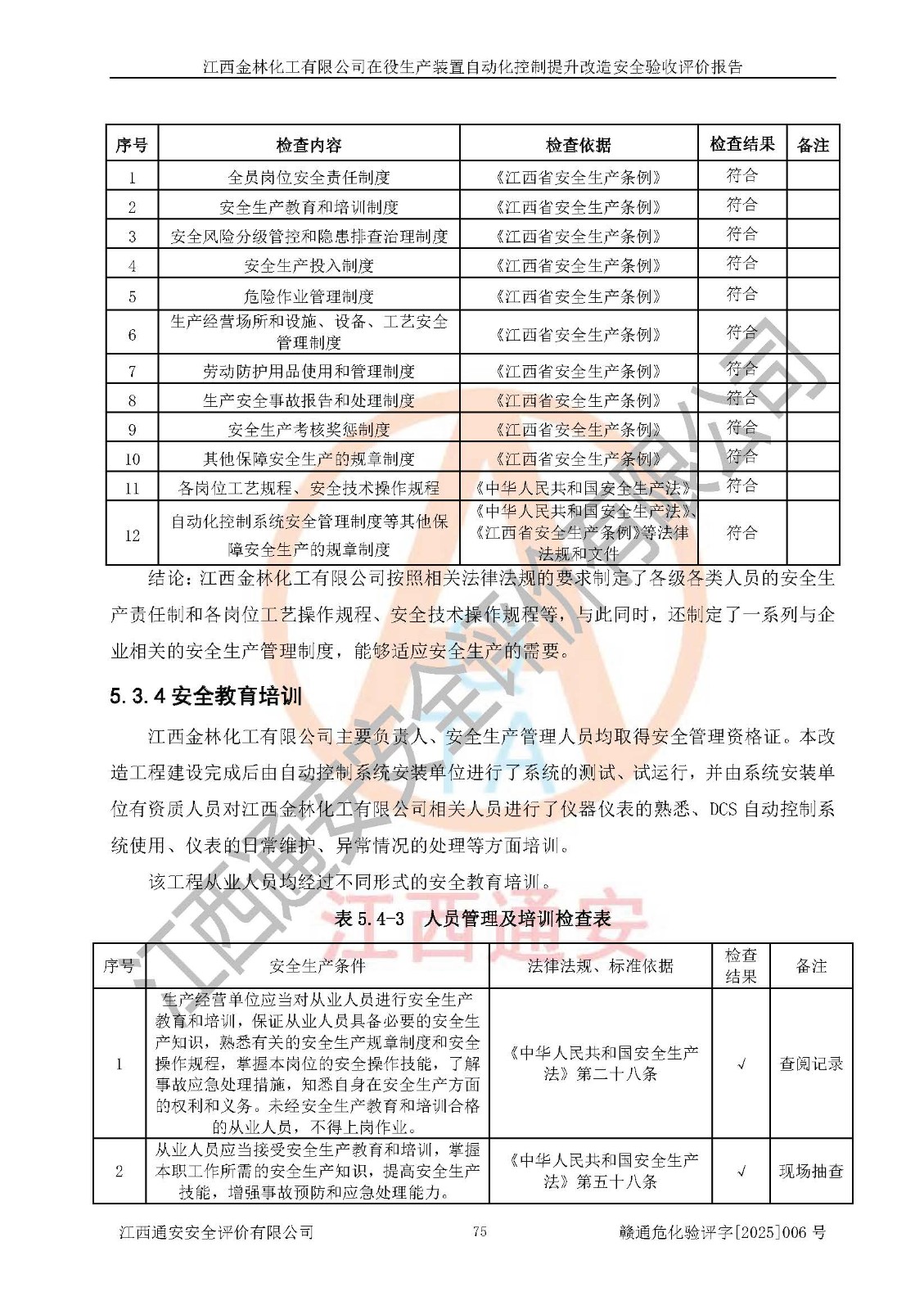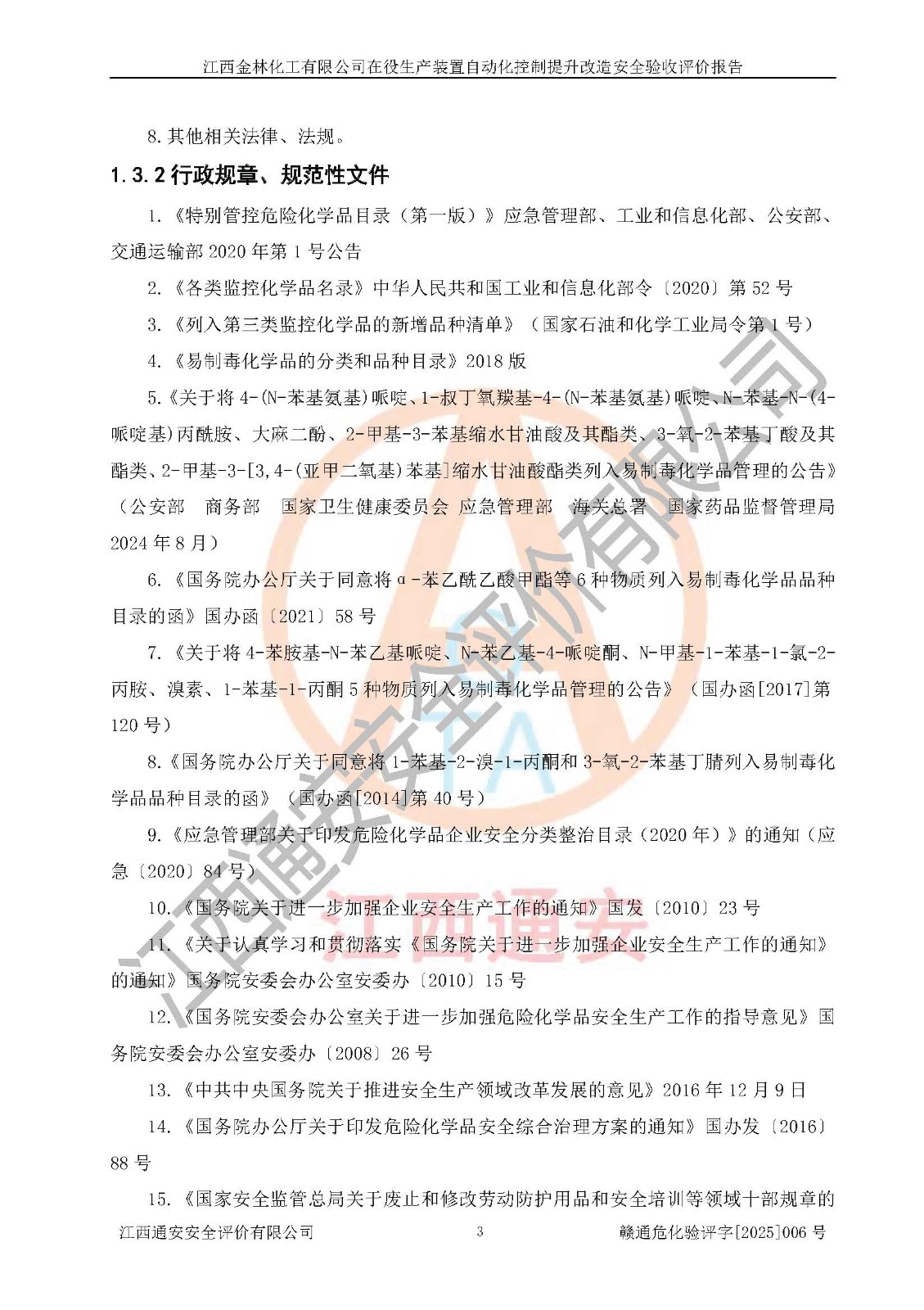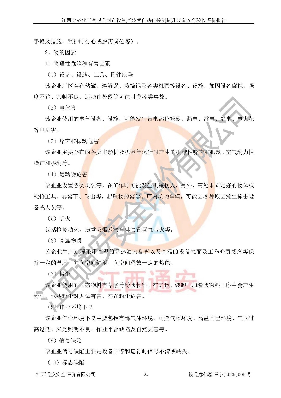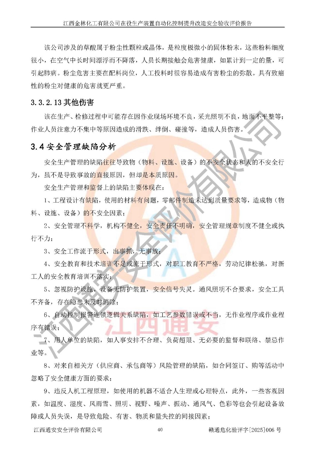 評(píng)價(jià)報(bào)告名稱 | 江西金林化工有限公司在役生產(chǎn)裝置自動(dòng)化控制提升改造安全驗(yàn)收評(píng)價(jià)報(bào)告 | |||