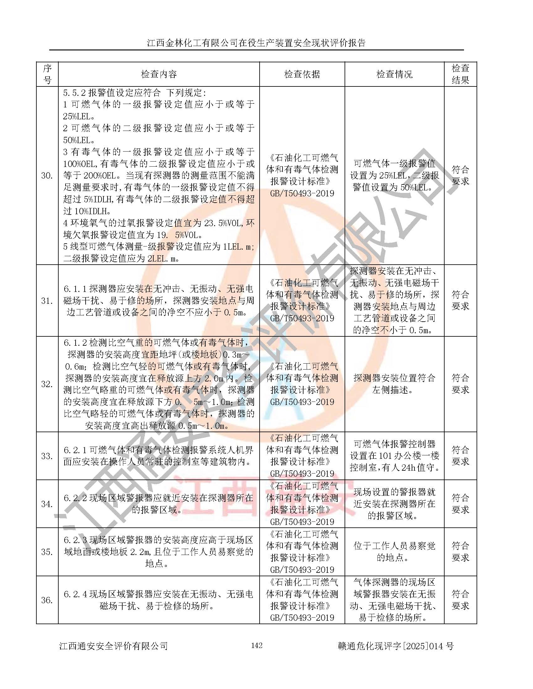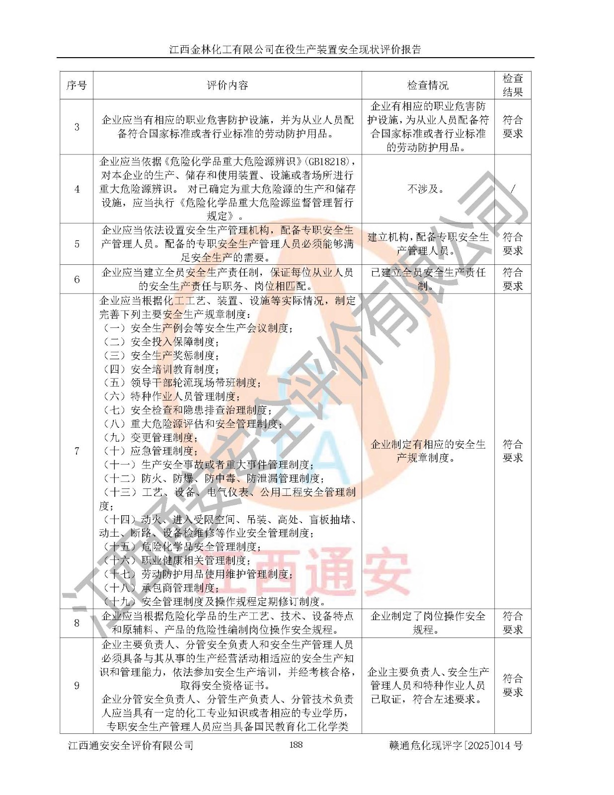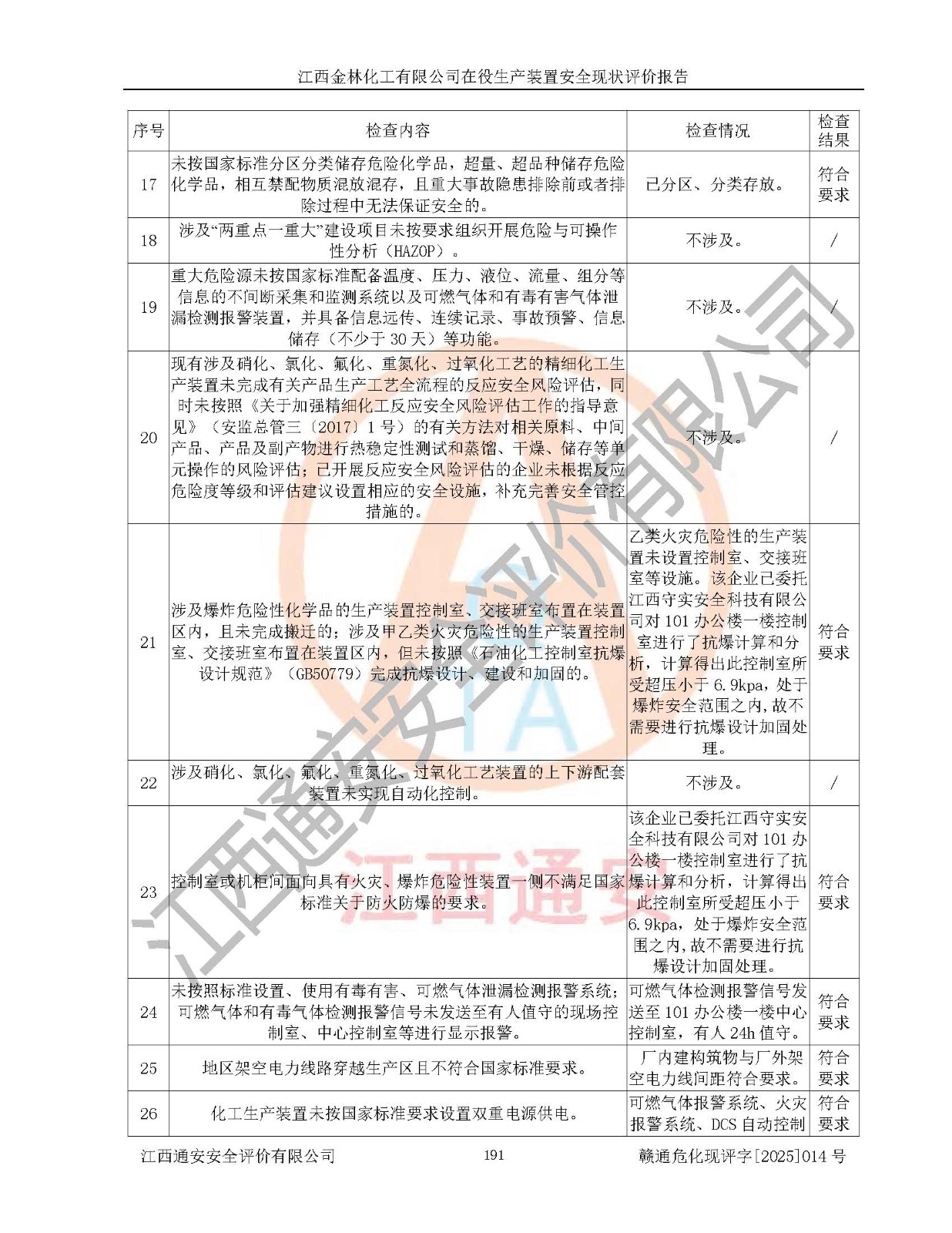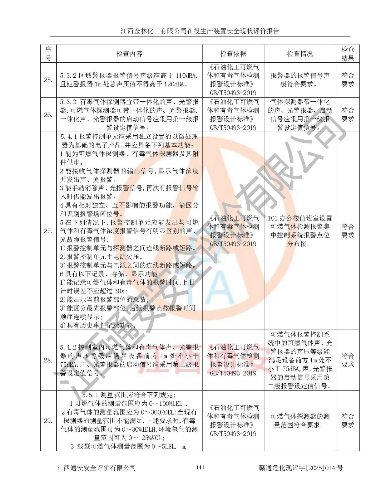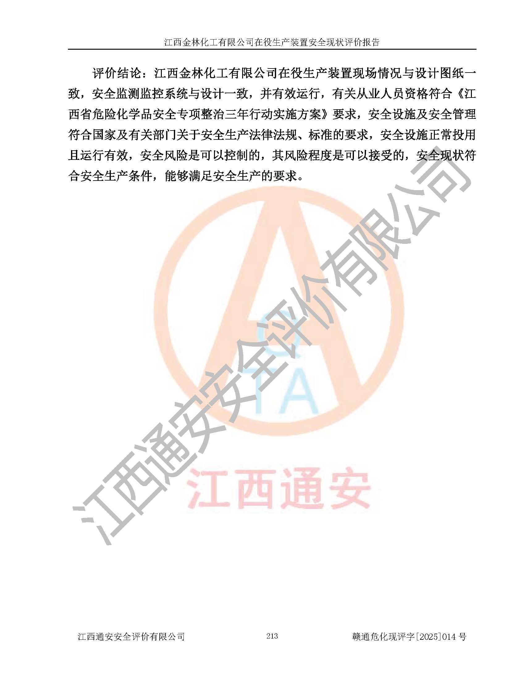 評(píng)價(jià)報(bào)告名稱 | 江西金林化工有限公司在役生產(chǎn)裝置安全現(xiàn)狀評(píng)價(jià)報(bào)告 | |||