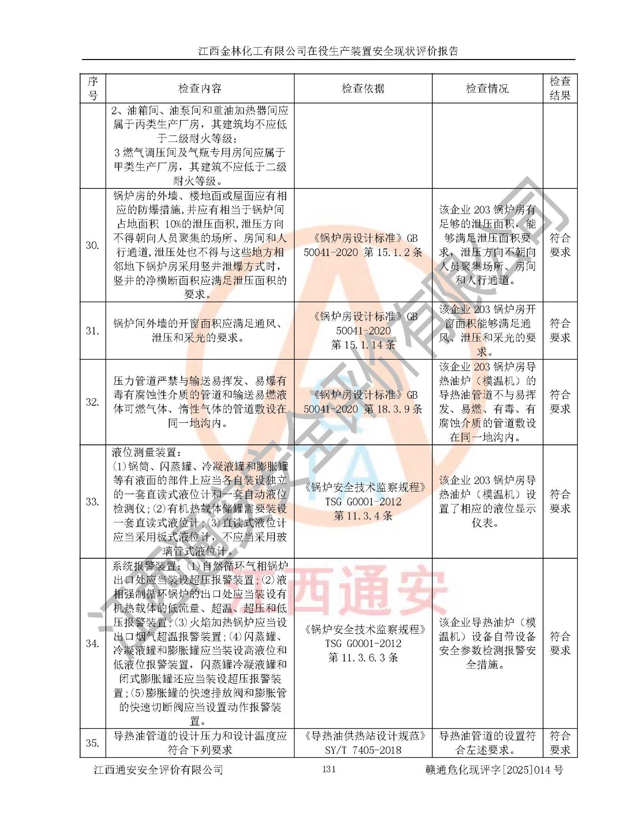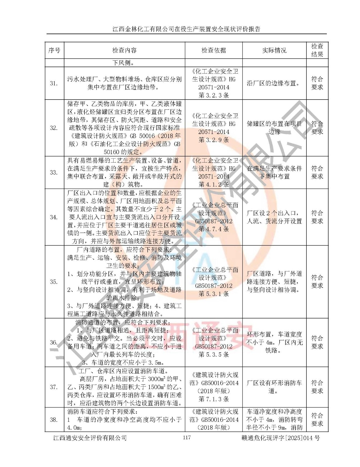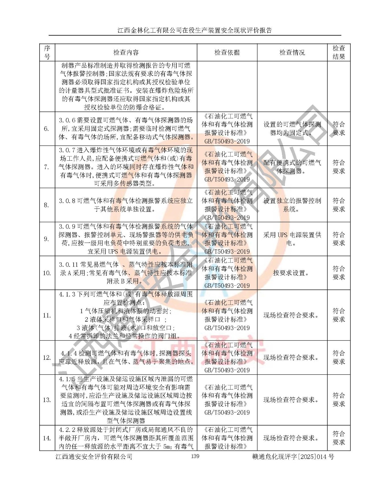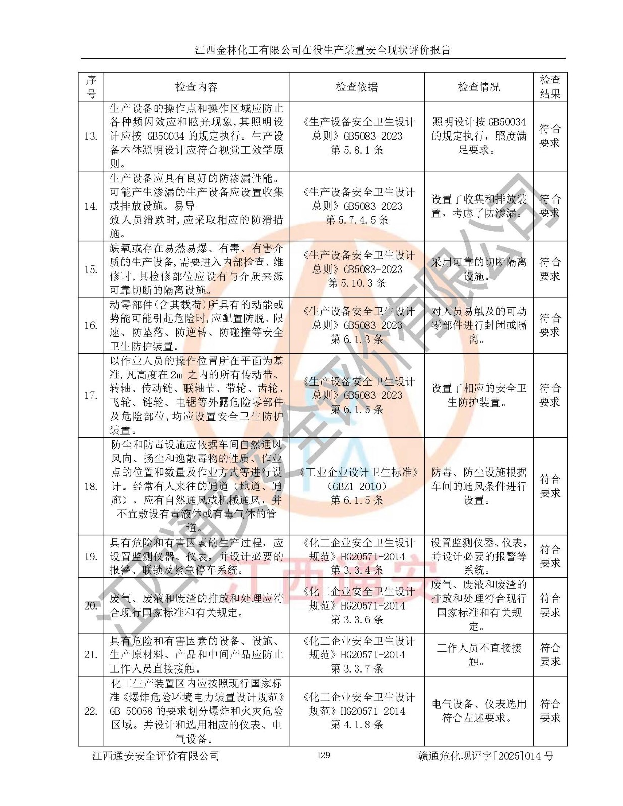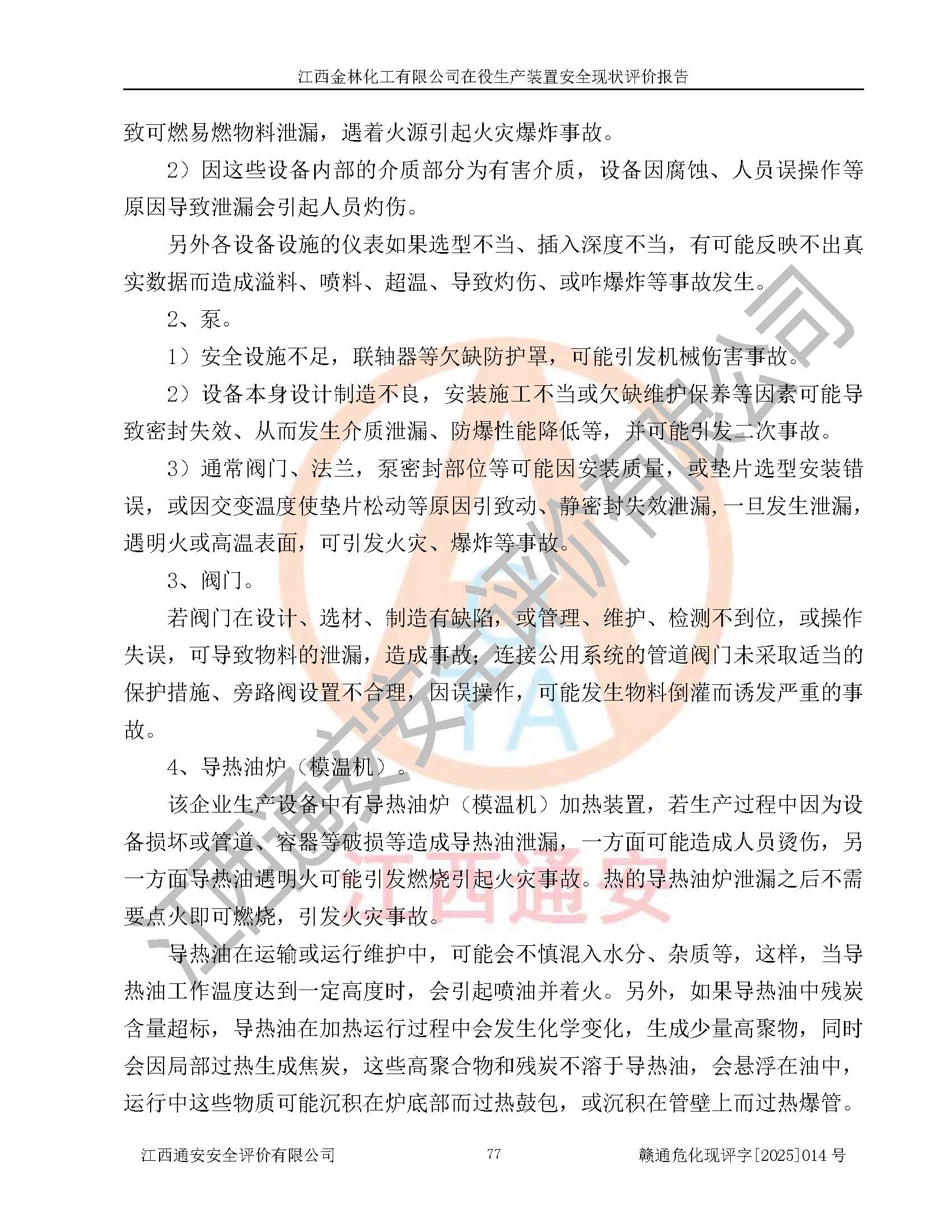 評(píng)價(jià)報(bào)告名稱 | 江西金林化工有限公司在役生產(chǎn)裝置安全現(xiàn)狀評(píng)價(jià)報(bào)告 | |||