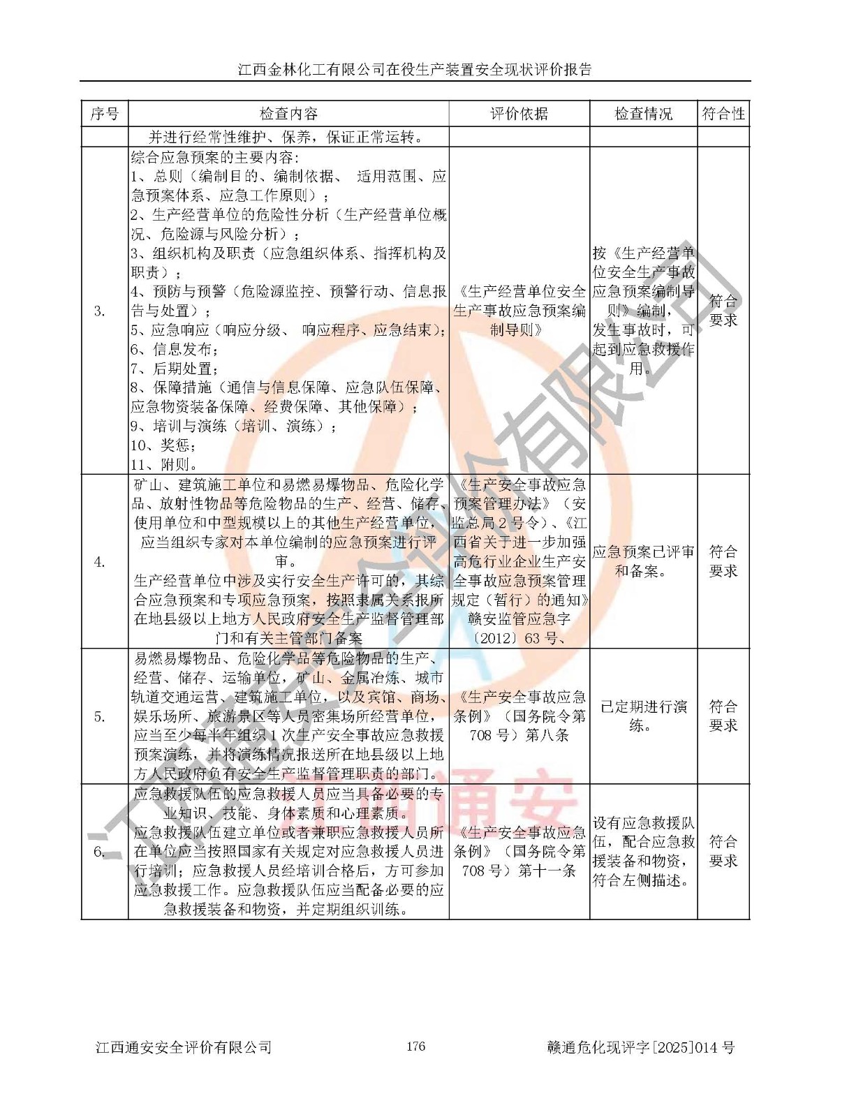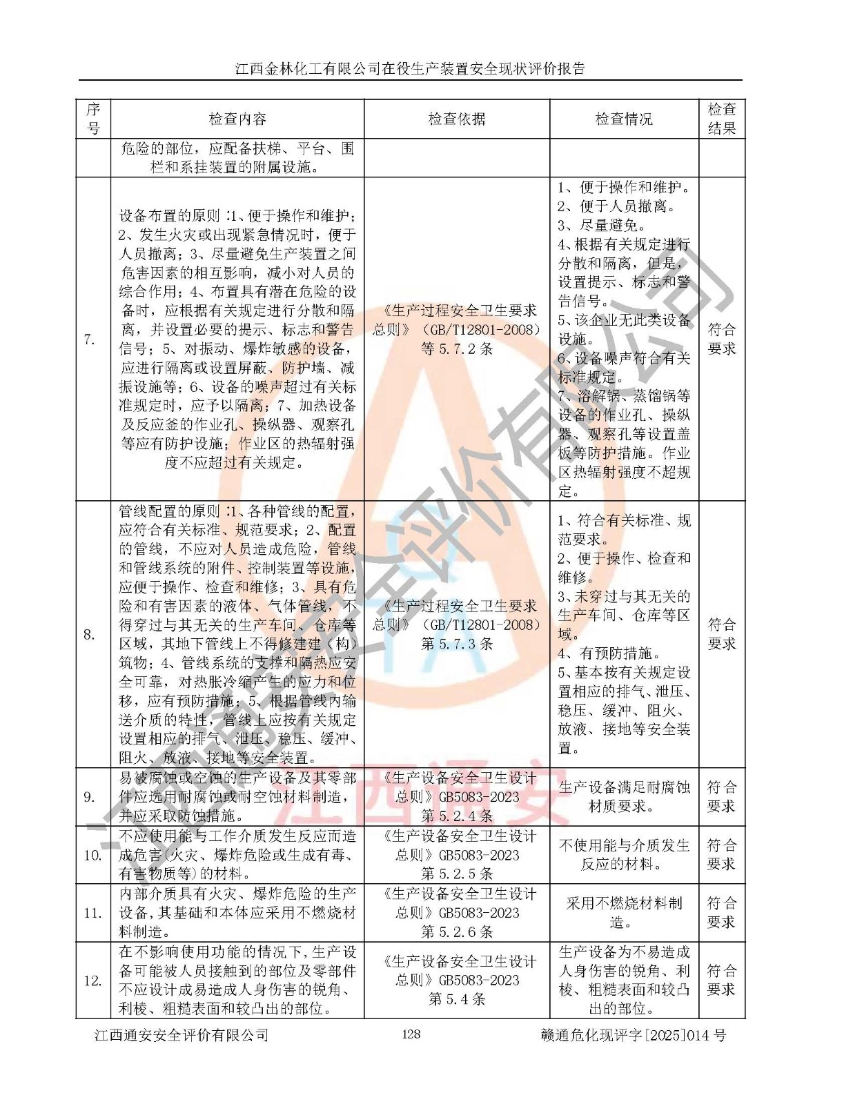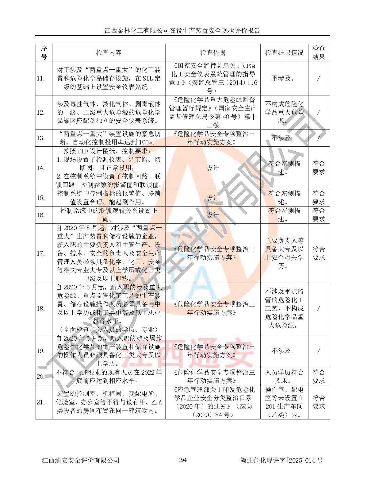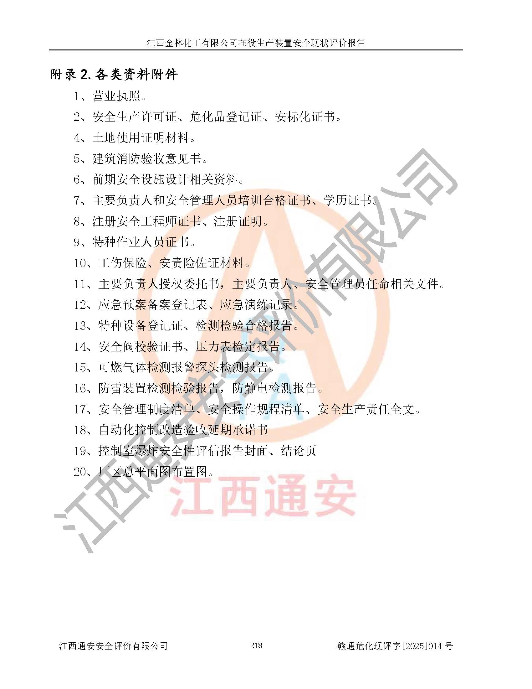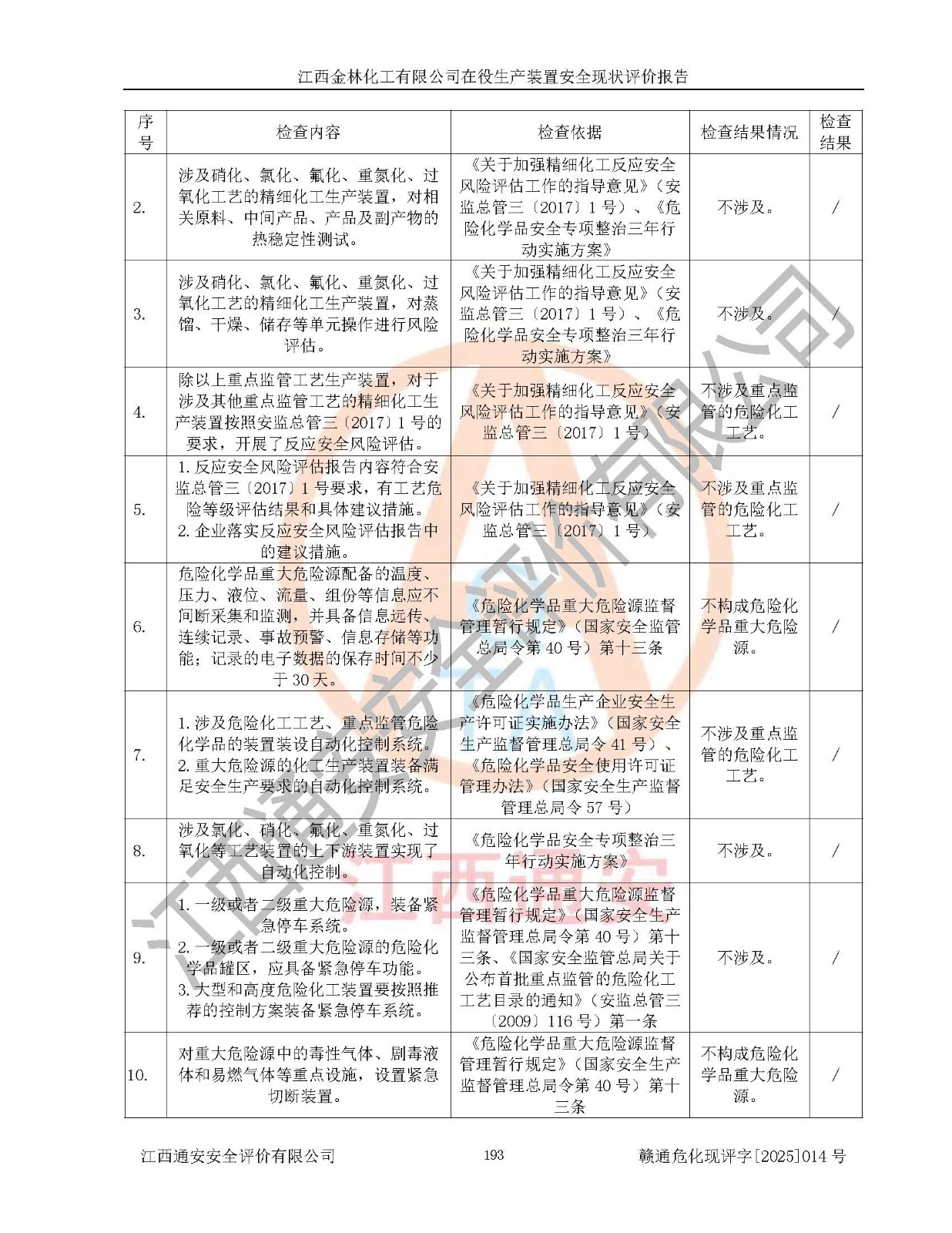 評(píng)價(jià)報(bào)告名稱 | 江西金林化工有限公司在役生產(chǎn)裝置安全現(xiàn)狀評(píng)價(jià)報(bào)告 | |||