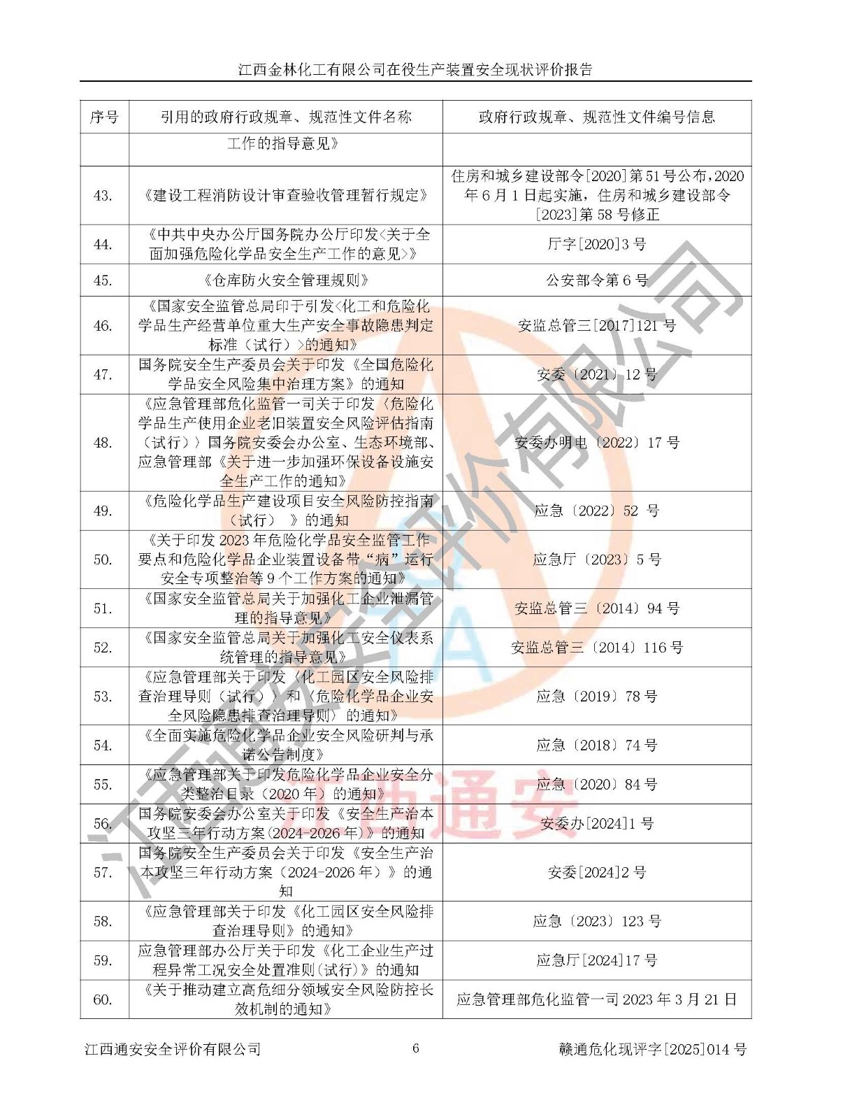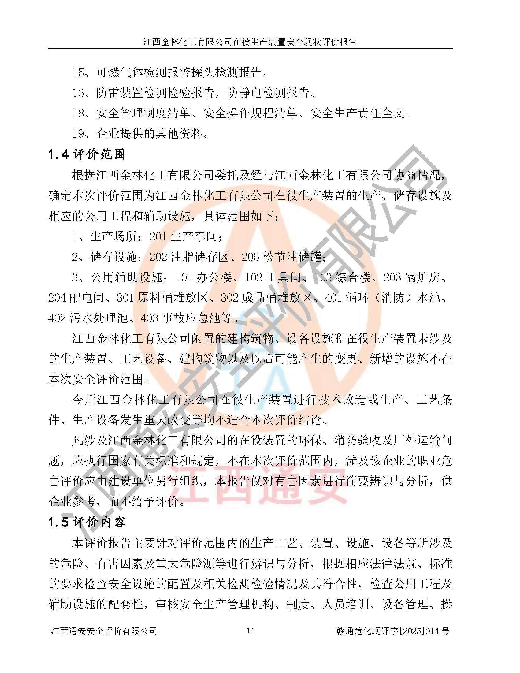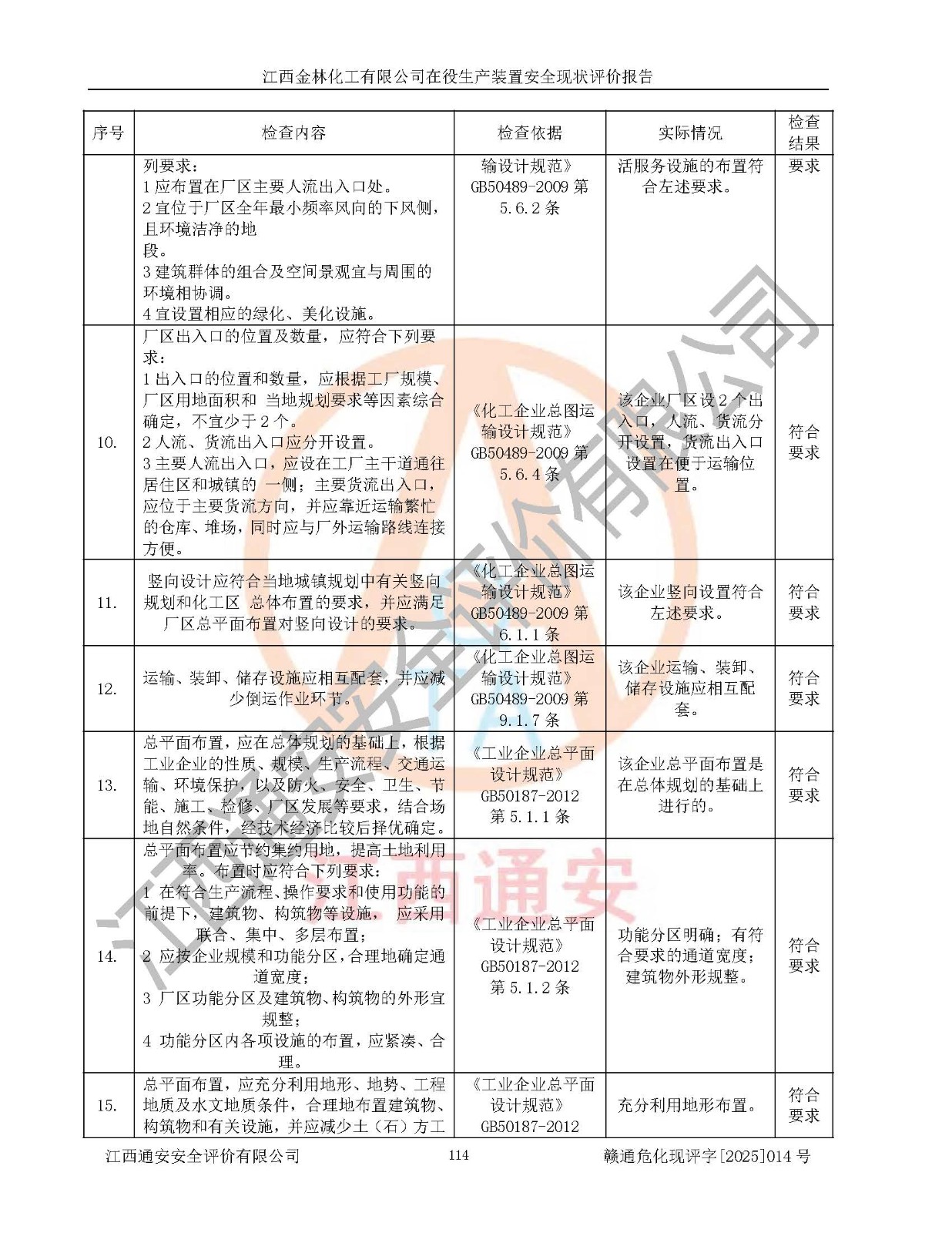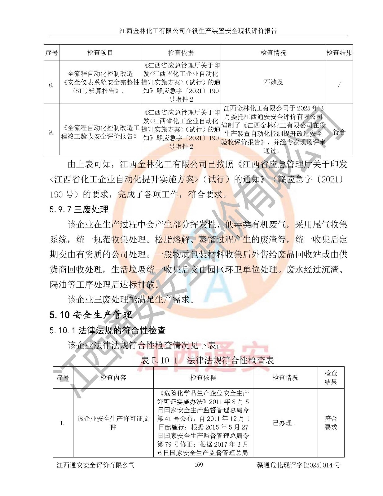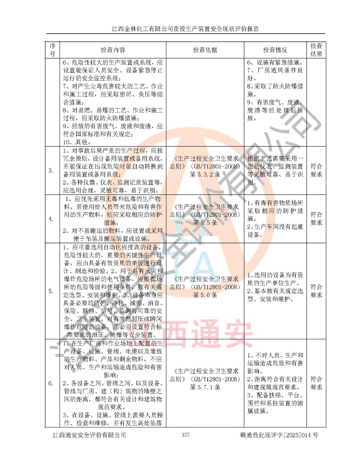 評(píng)價(jià)報(bào)告名稱 | 江西金林化工有限公司在役生產(chǎn)裝置安全現(xiàn)狀評(píng)價(jià)報(bào)告 | |||