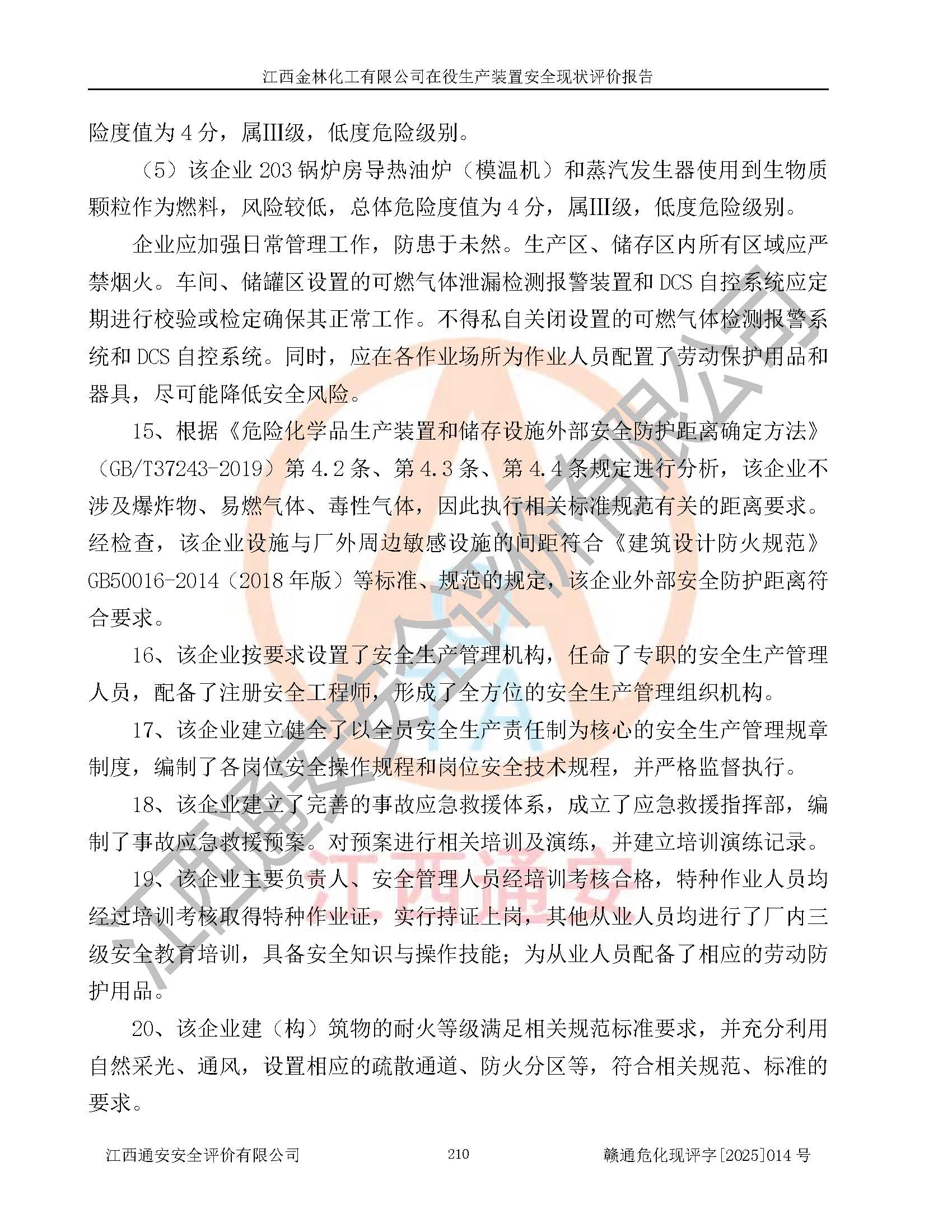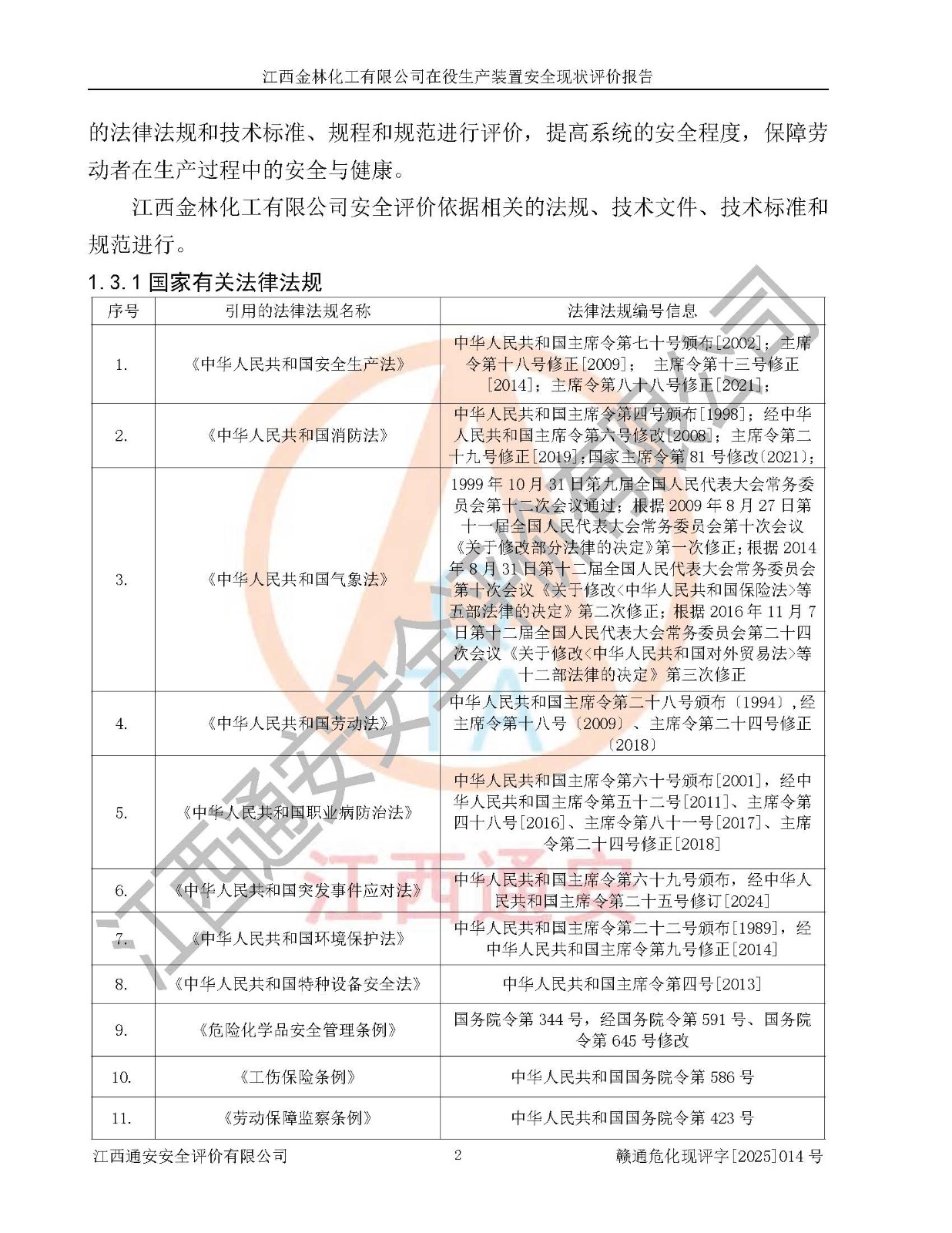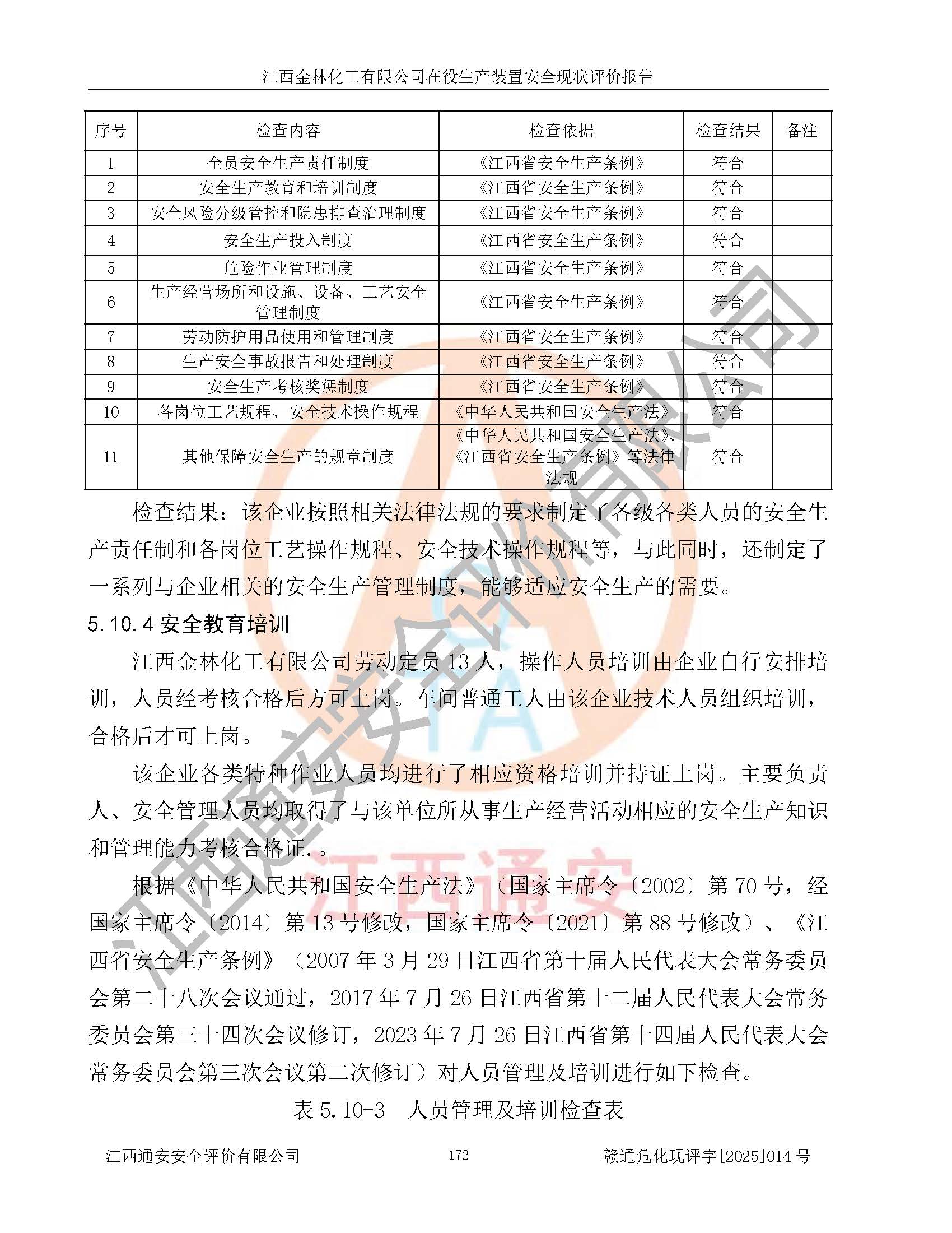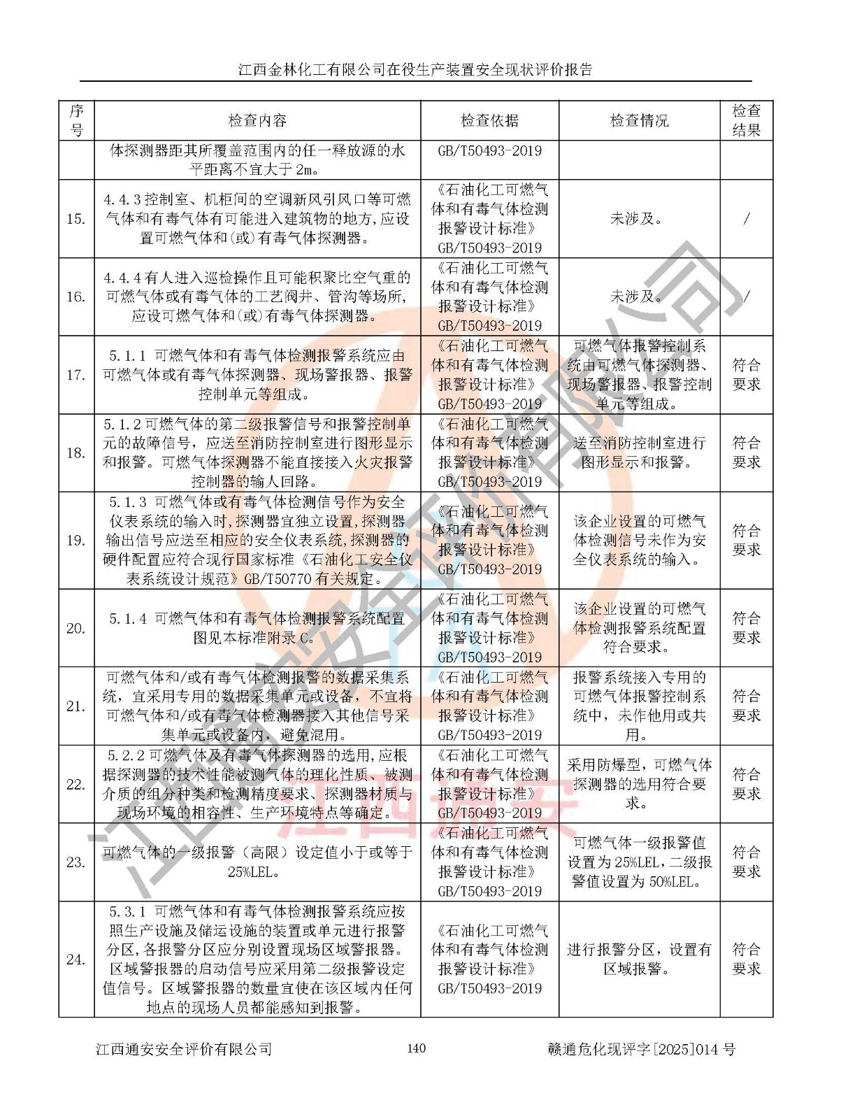 評(píng)價(jià)報(bào)告名稱 | 江西金林化工有限公司在役生產(chǎn)裝置安全現(xiàn)狀評(píng)價(jià)報(bào)告 | |||
