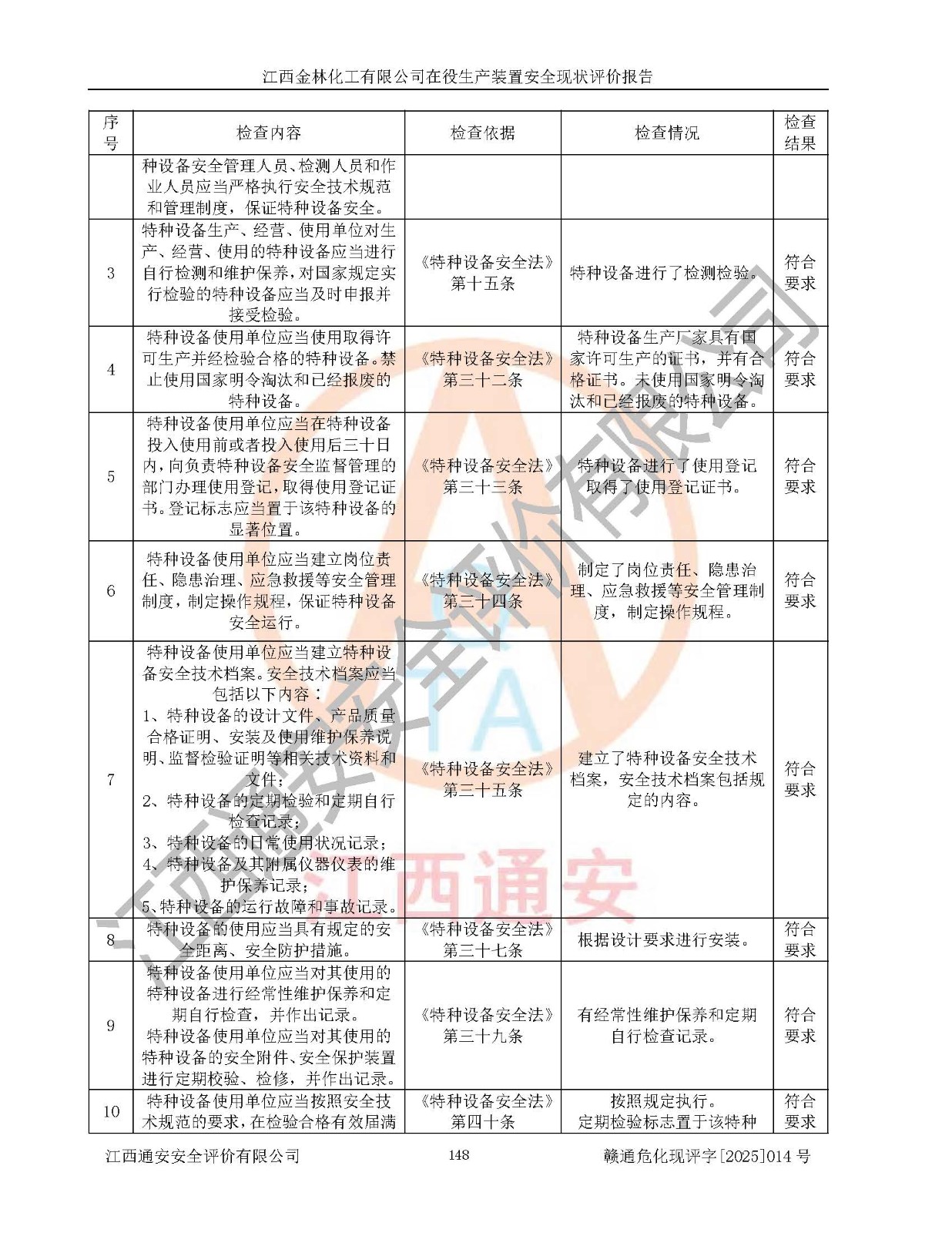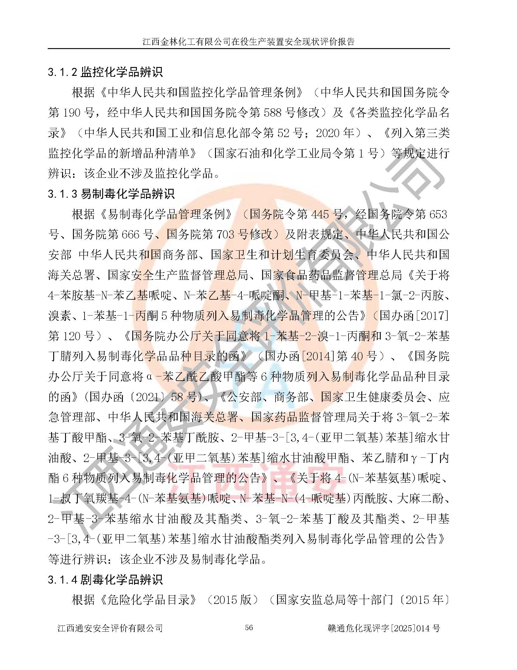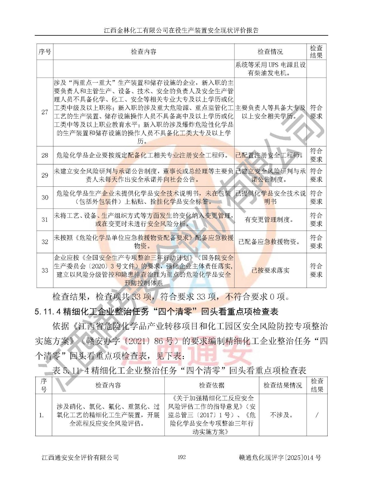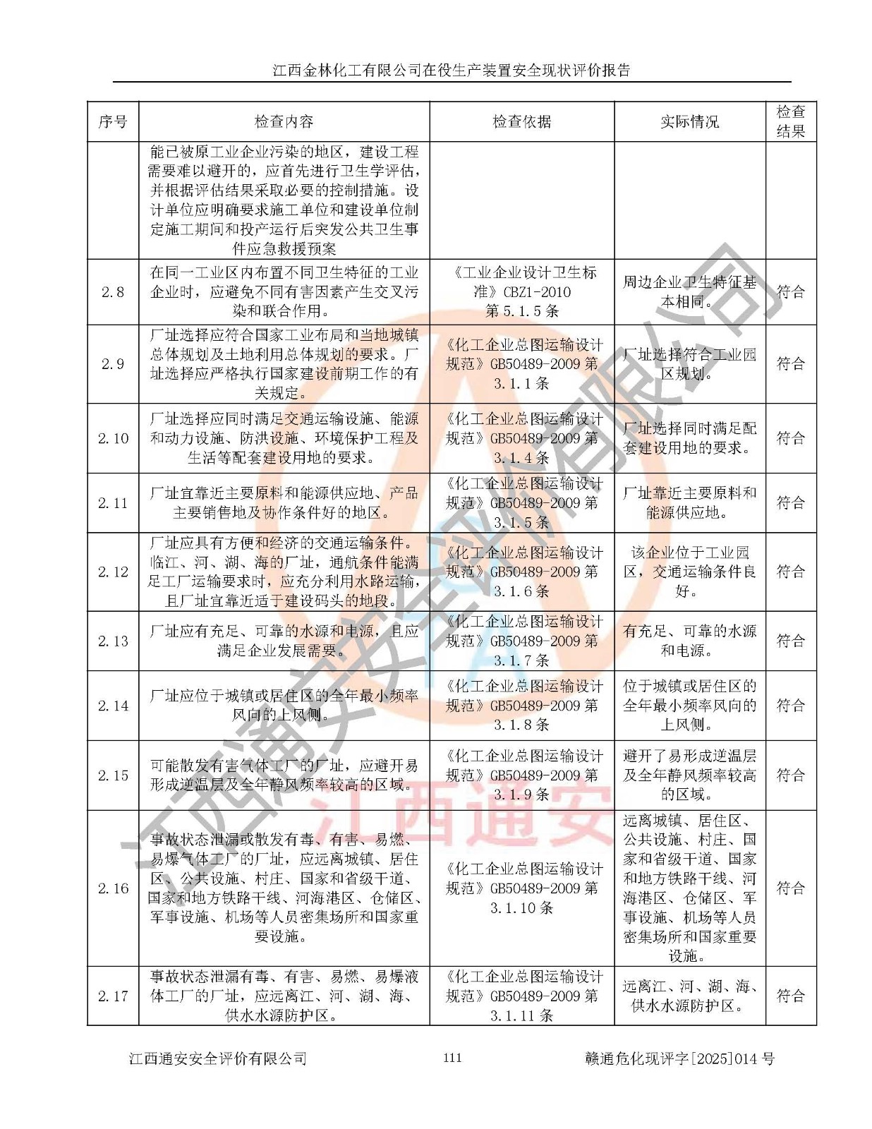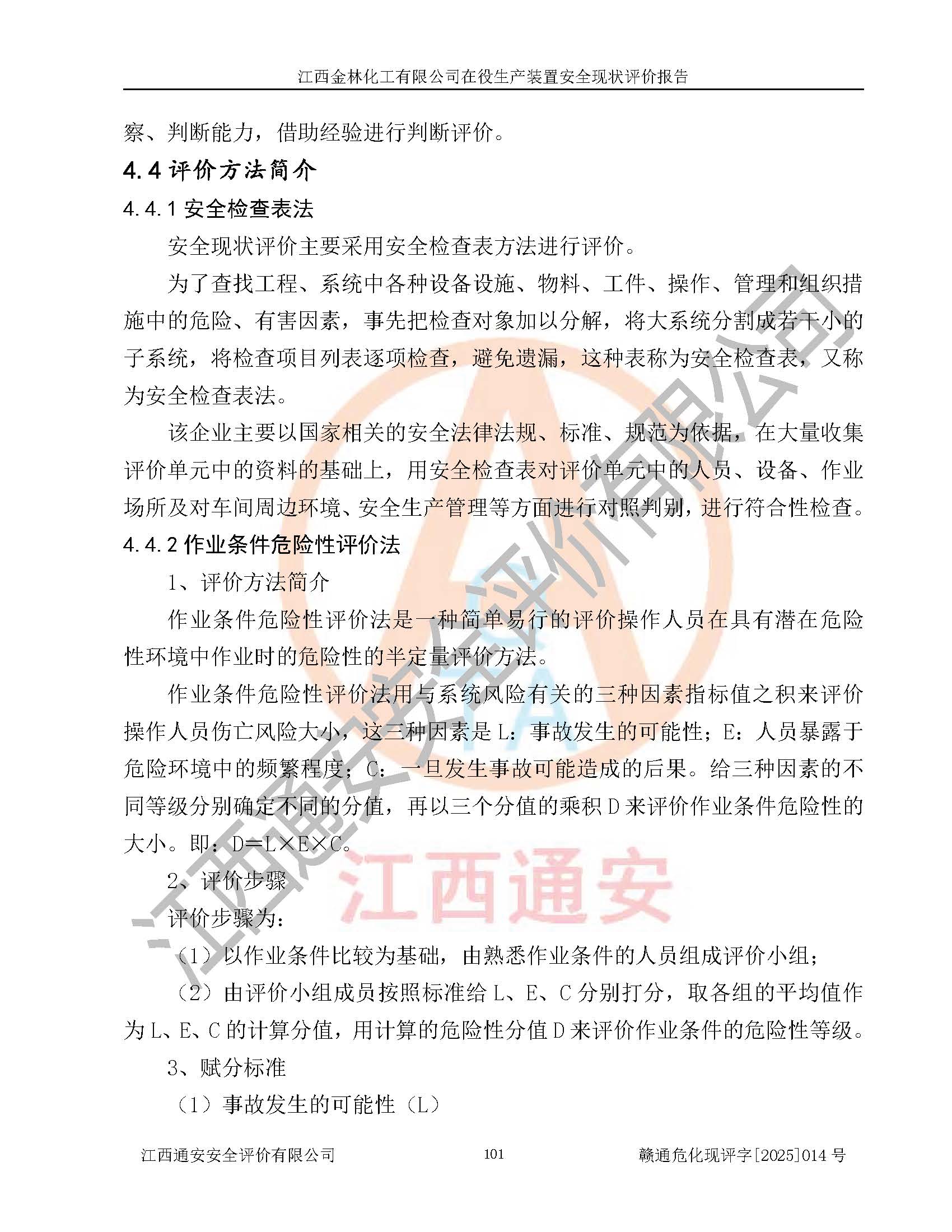 評(píng)價(jià)報(bào)告名稱 | 江西金林化工有限公司在役生產(chǎn)裝置安全現(xiàn)狀評(píng)價(jià)報(bào)告 | |||