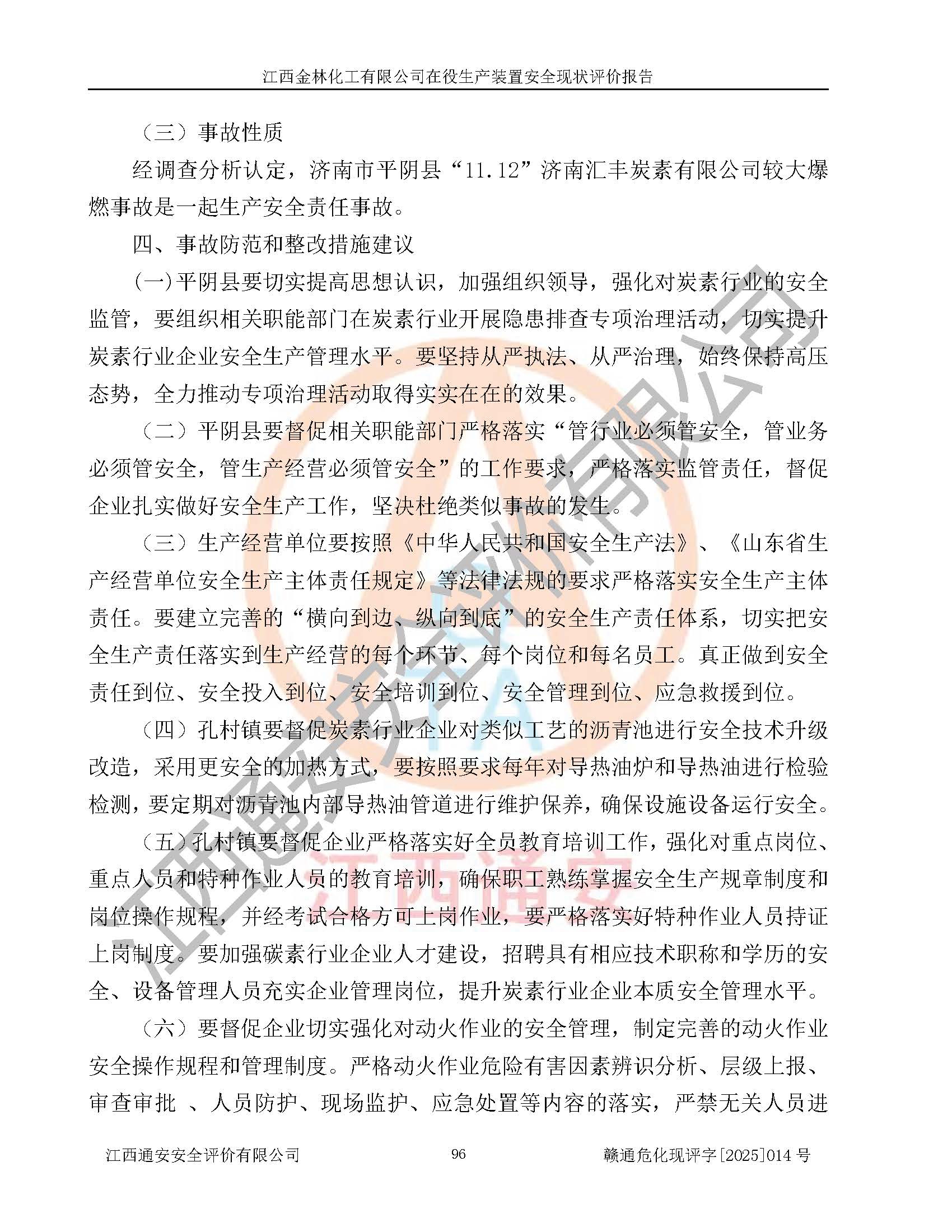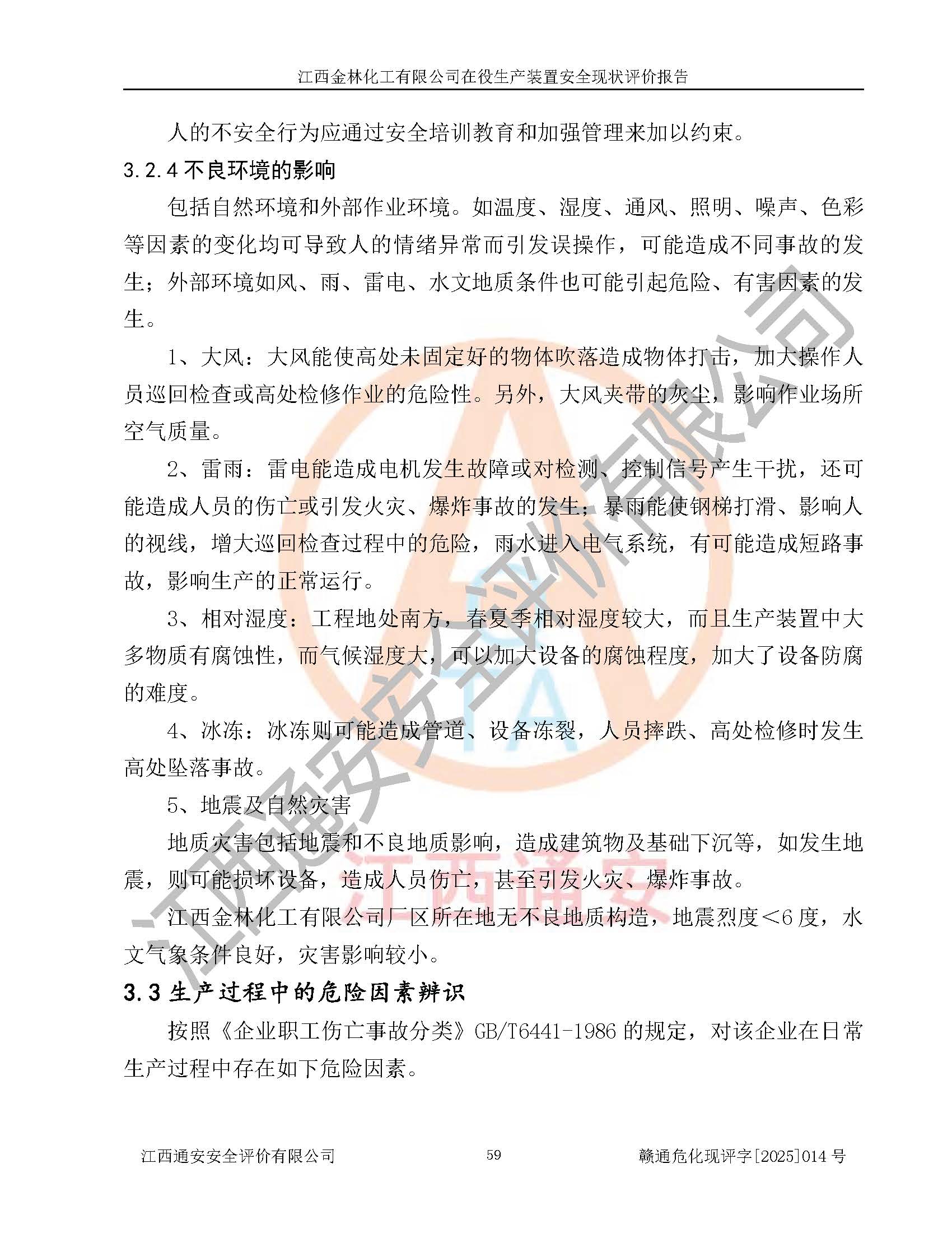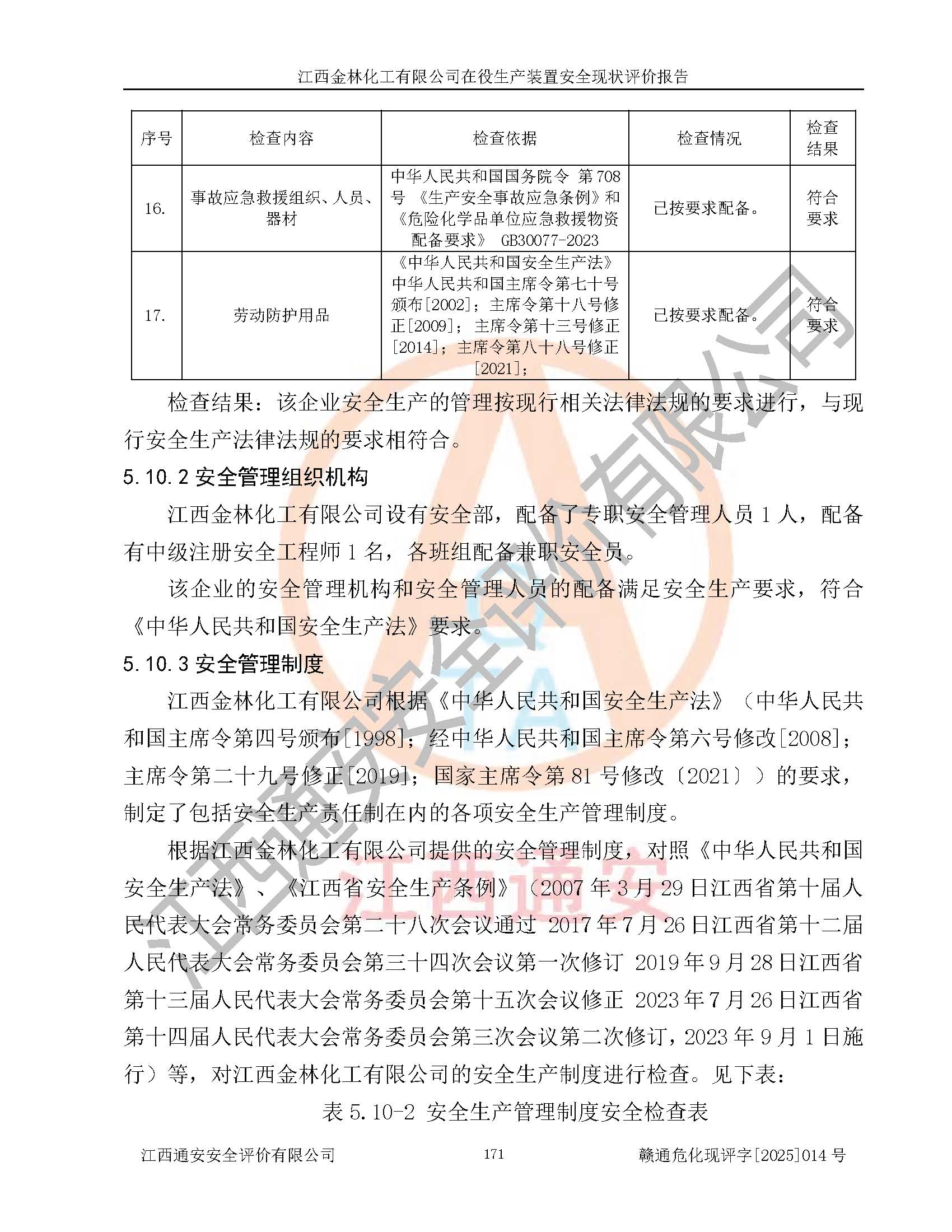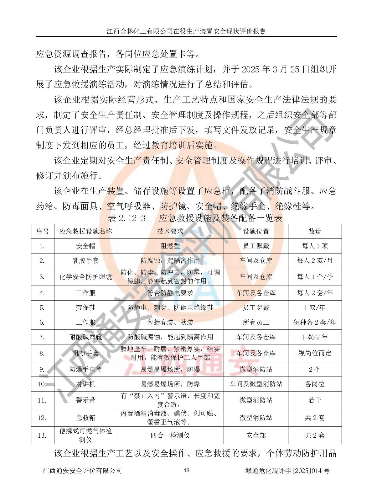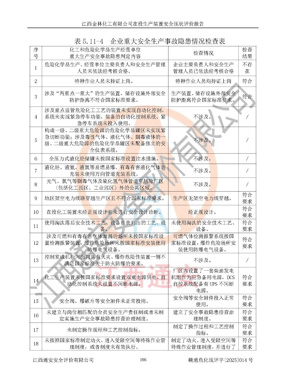 評(píng)價(jià)報(bào)告名稱 | 江西金林化工有限公司在役生產(chǎn)裝置安全現(xiàn)狀評(píng)價(jià)報(bào)告 | |||