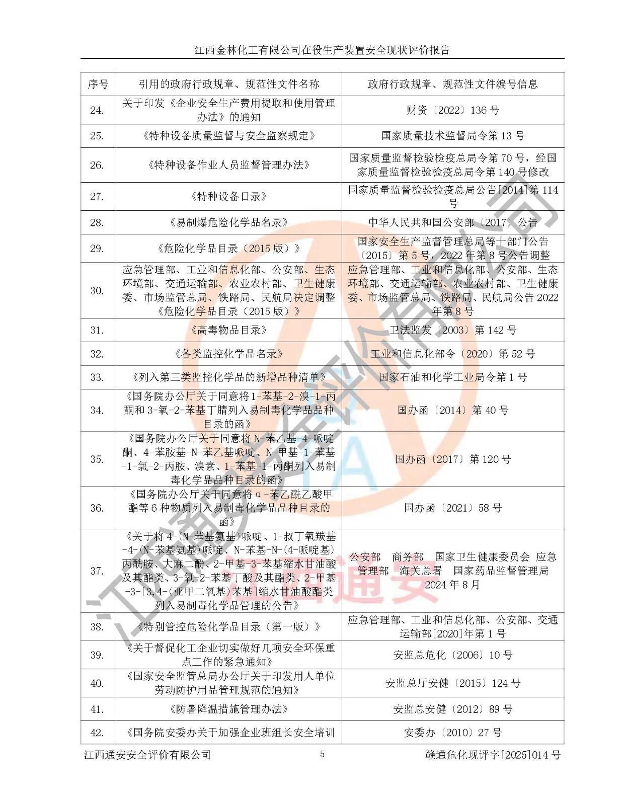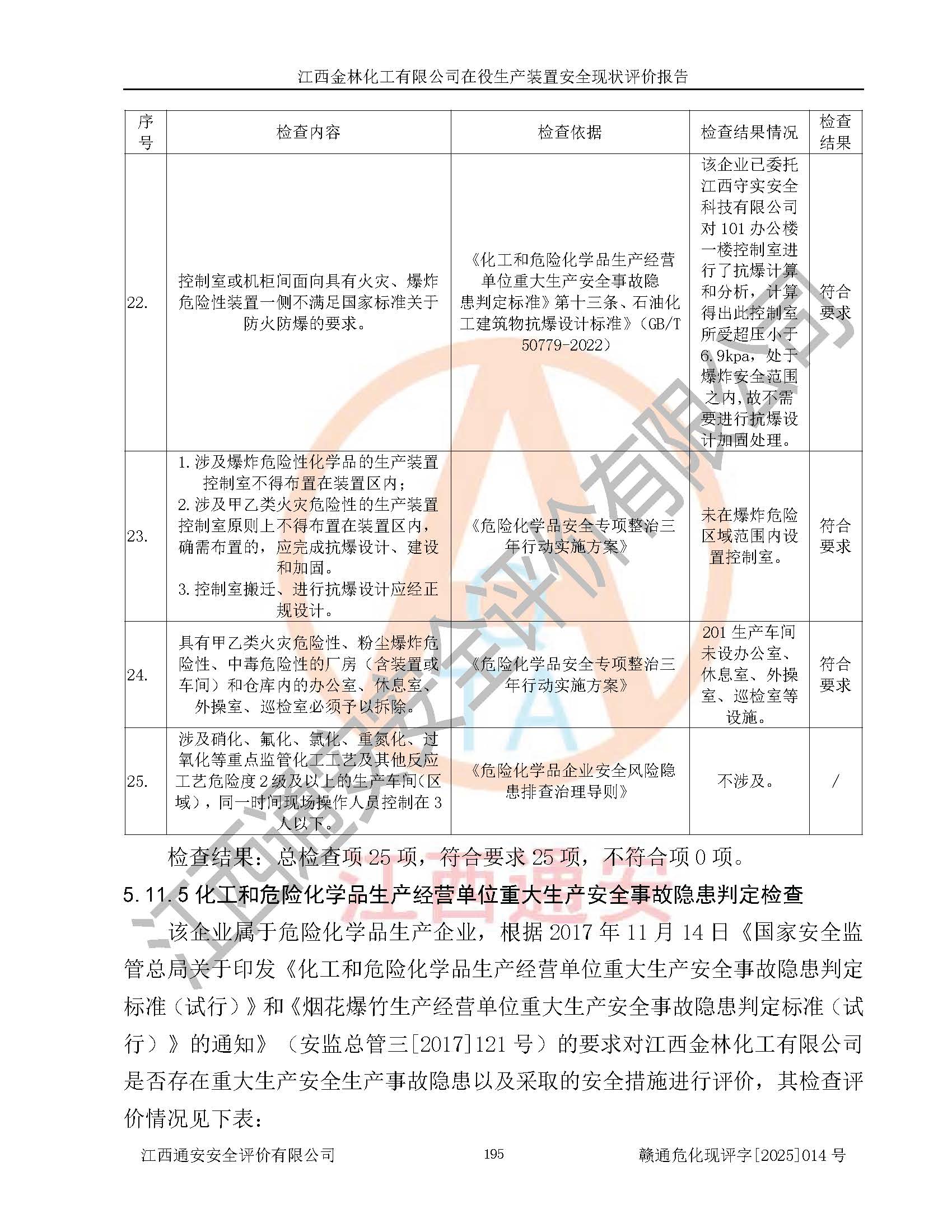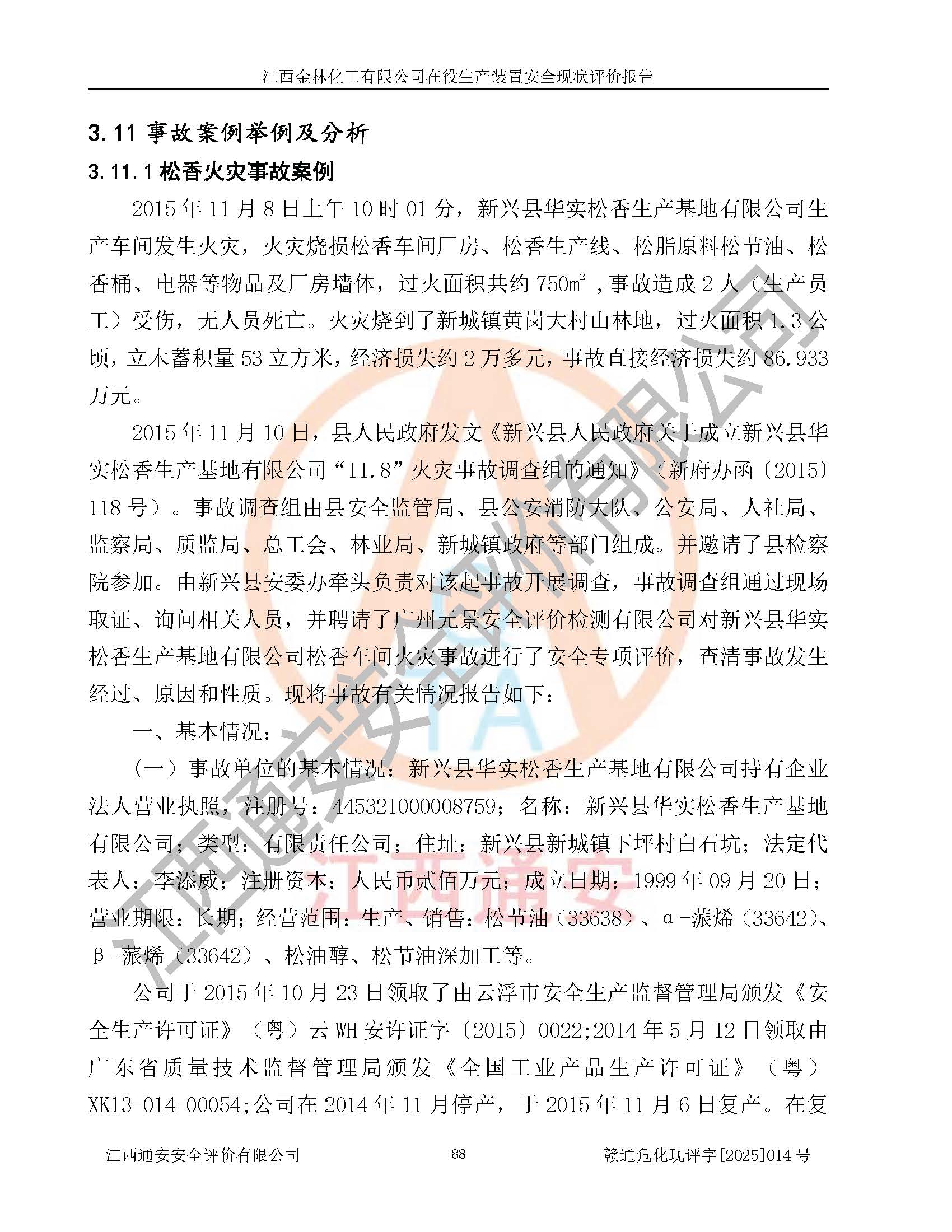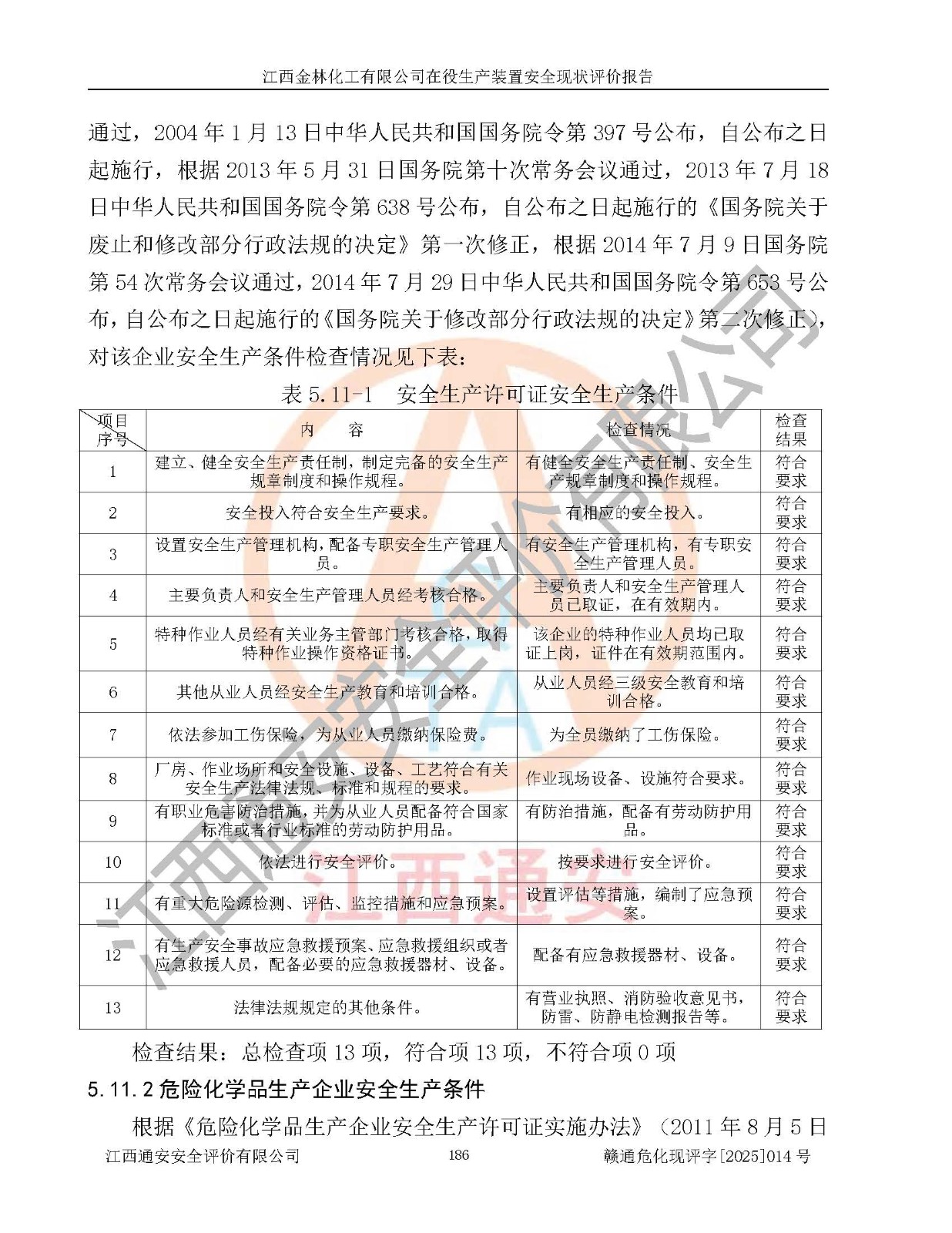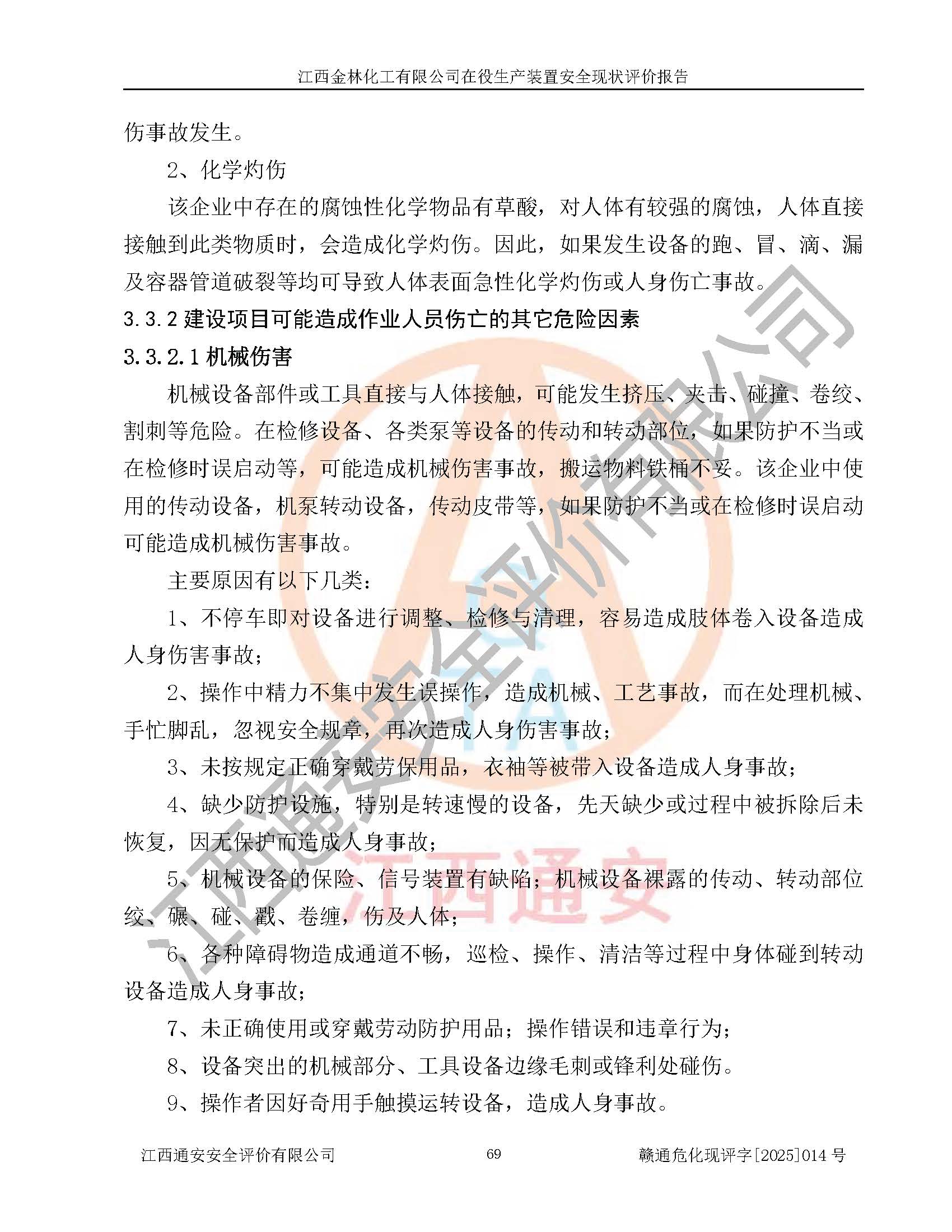 評(píng)價(jià)報(bào)告名稱 | 江西金林化工有限公司在役生產(chǎn)裝置安全現(xiàn)狀評(píng)價(jià)報(bào)告 | |||