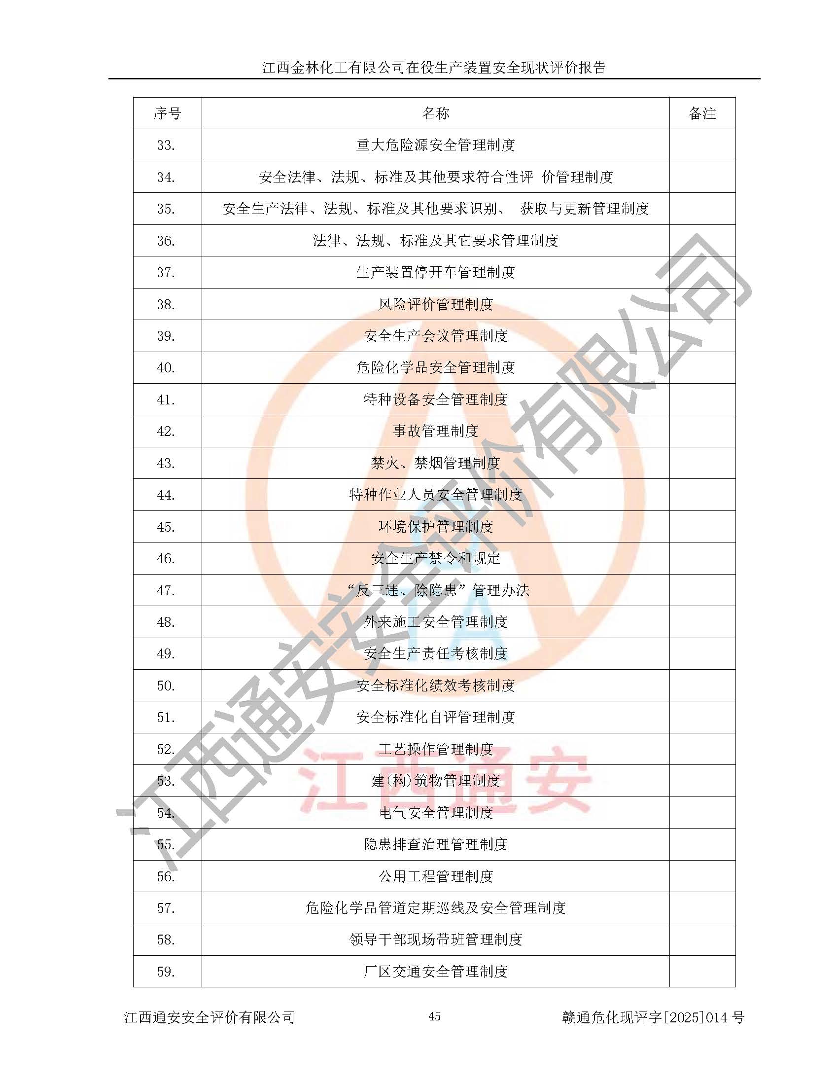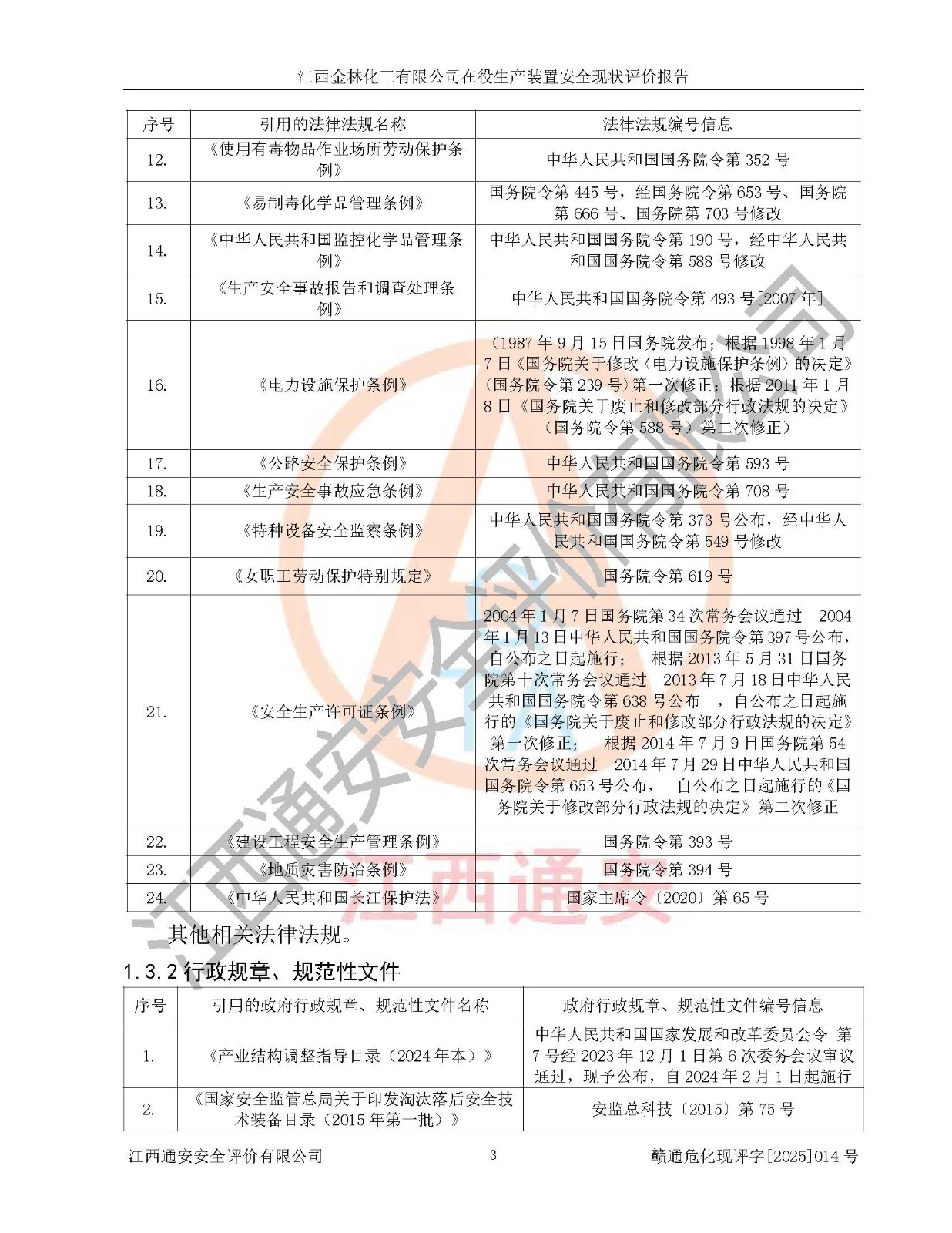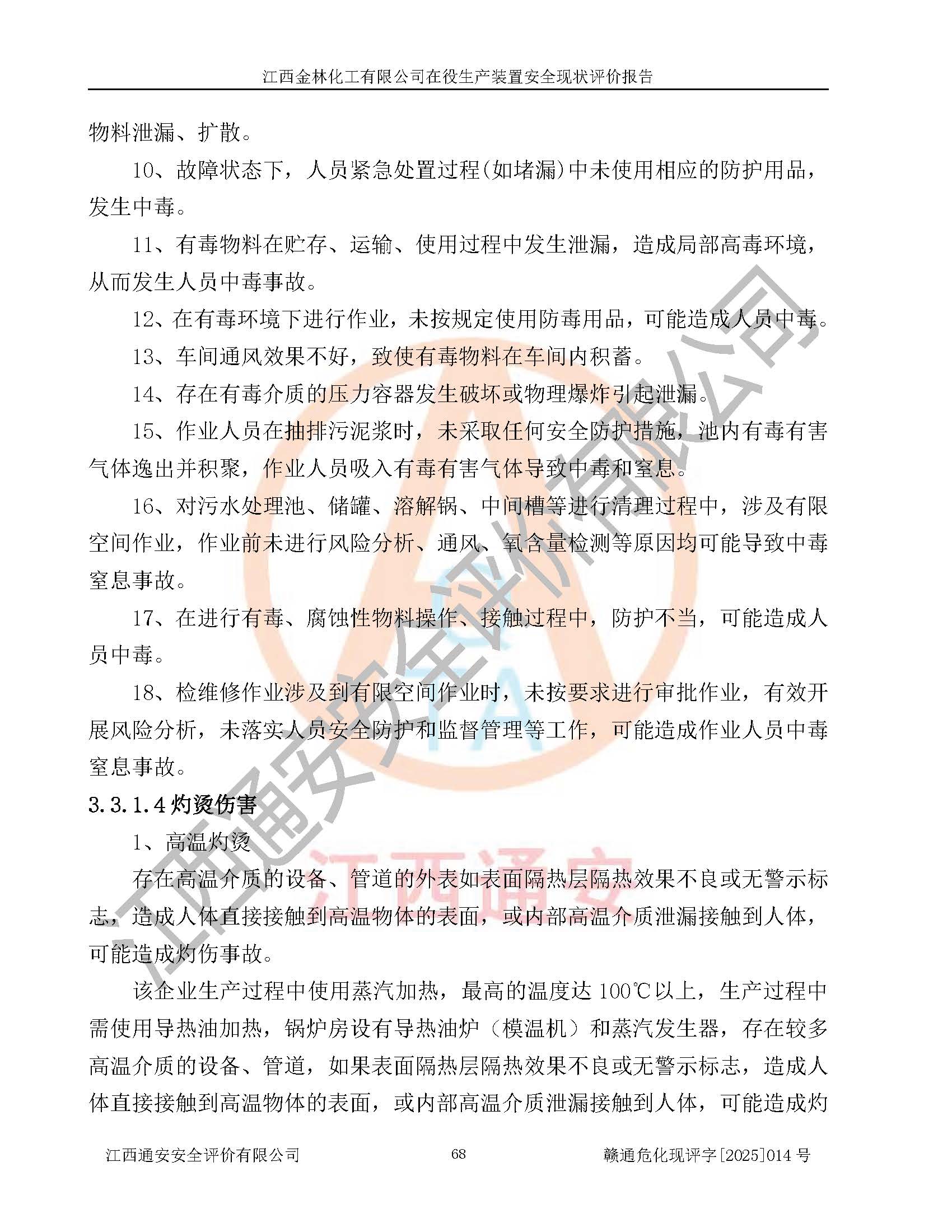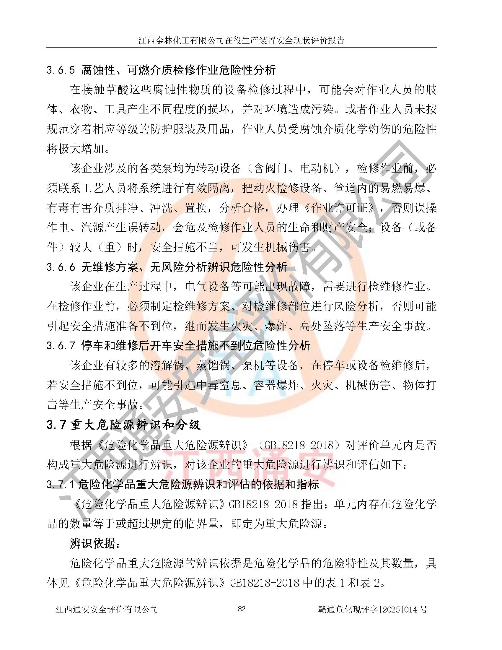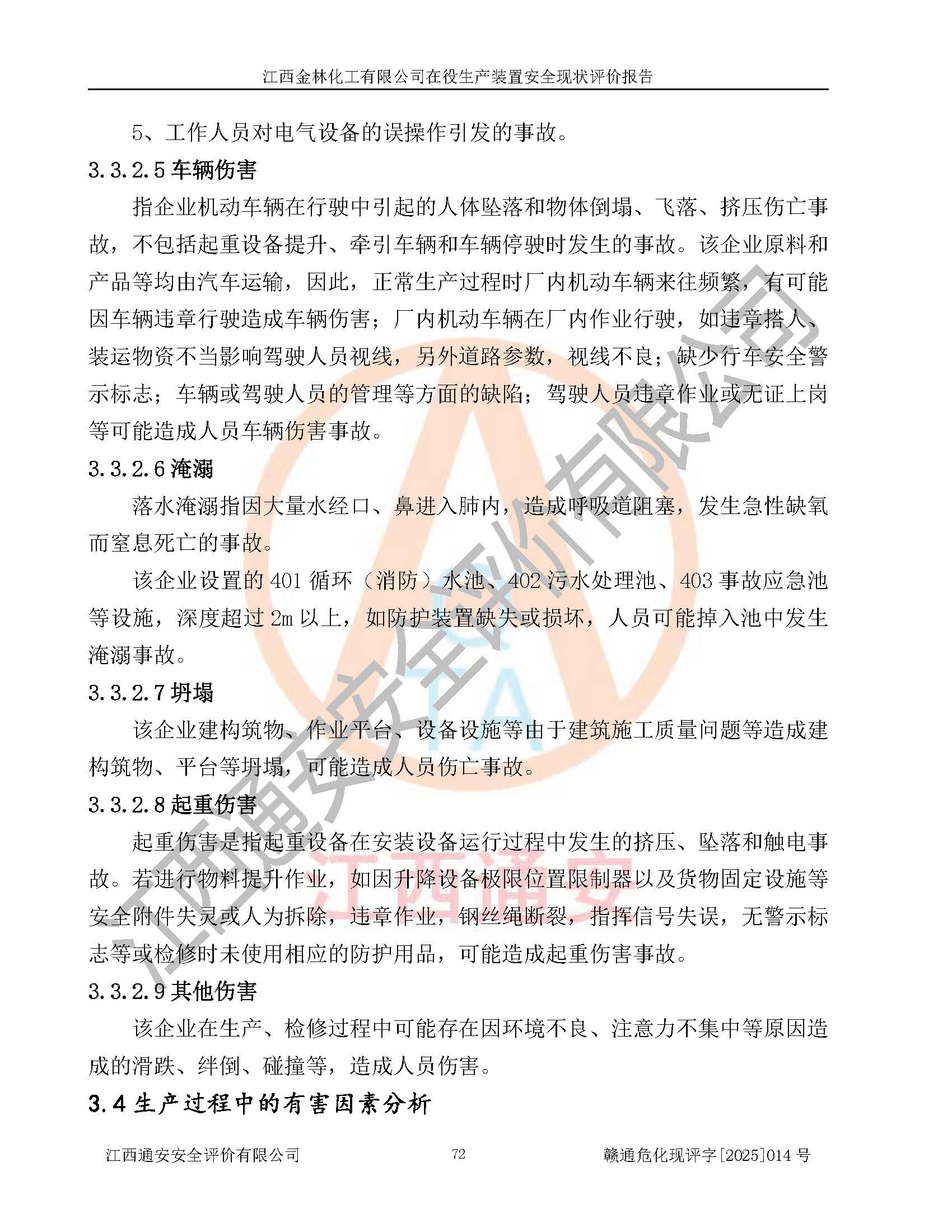 評(píng)價(jià)報(bào)告名稱 | 江西金林化工有限公司在役生產(chǎn)裝置安全現(xiàn)狀評(píng)價(jià)報(bào)告 | |||