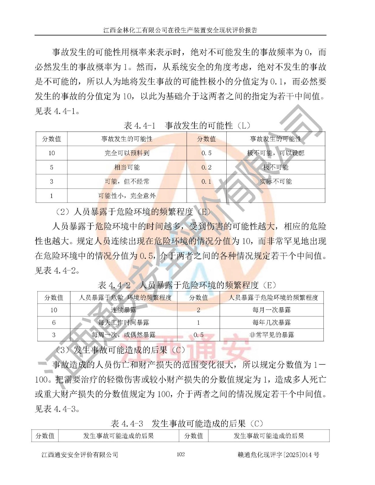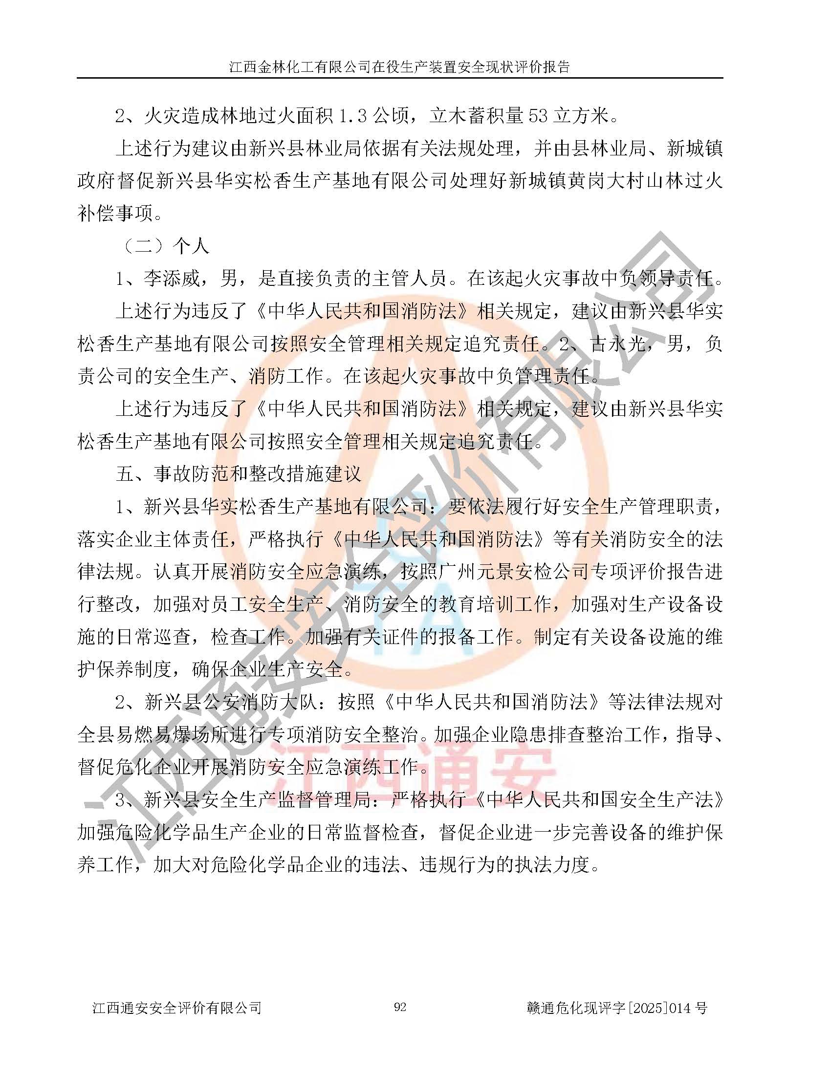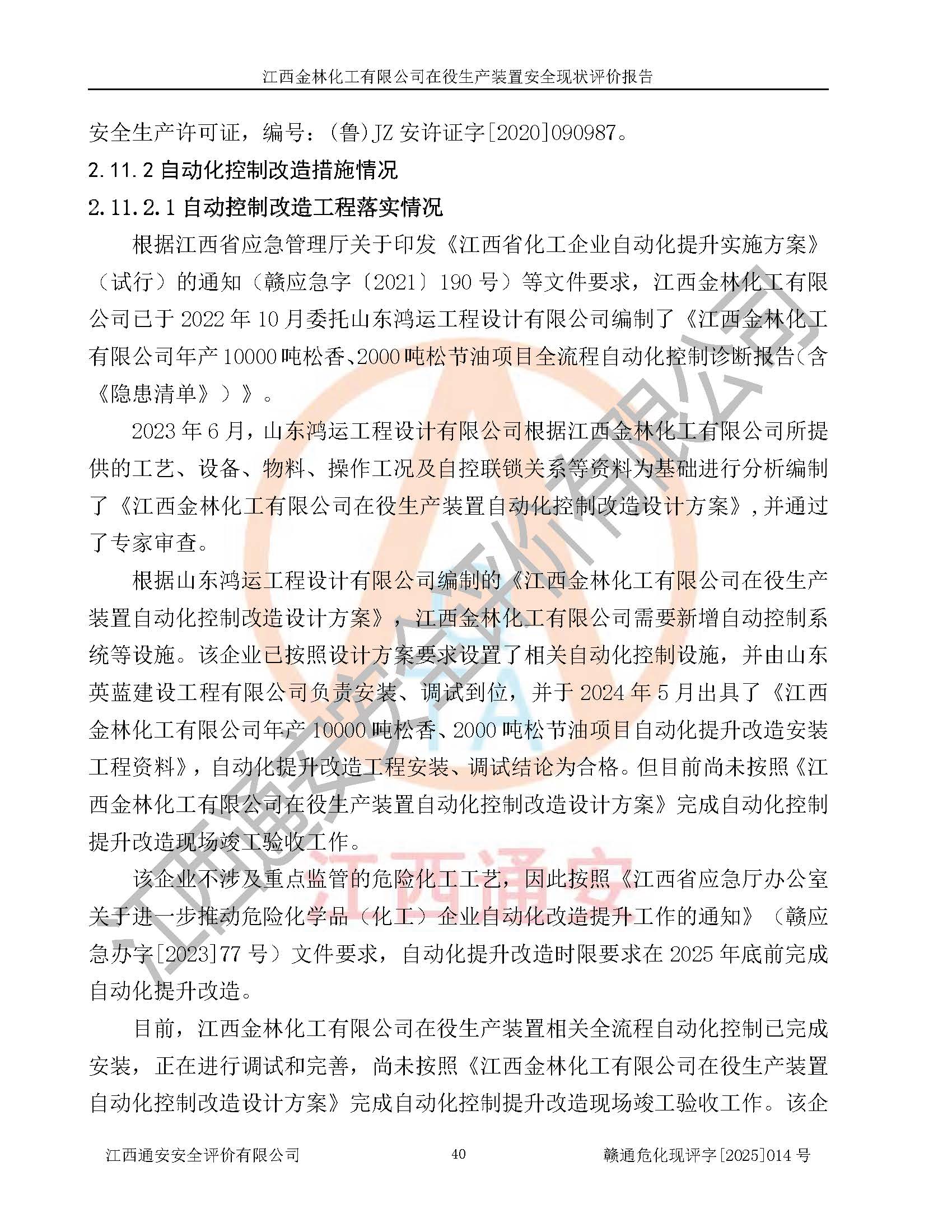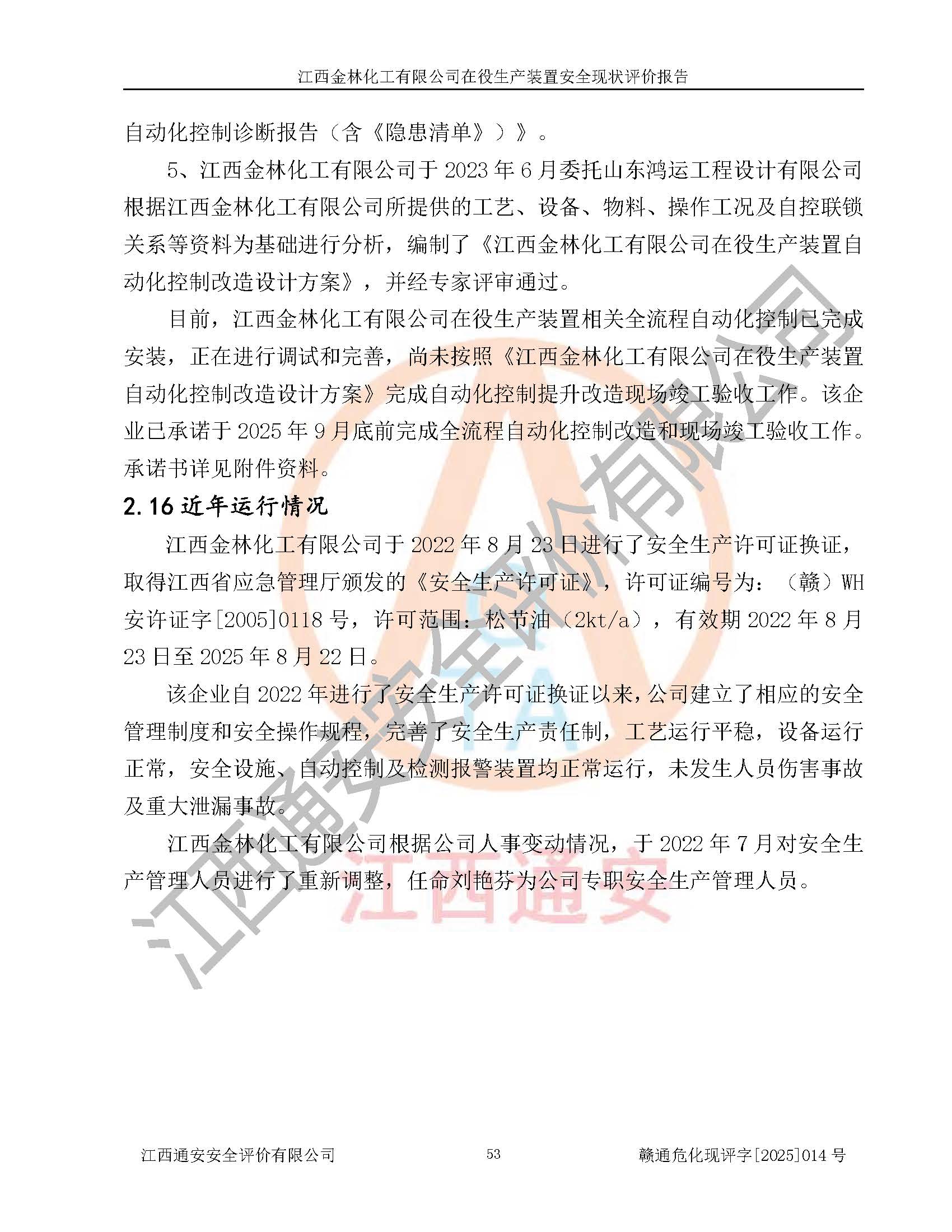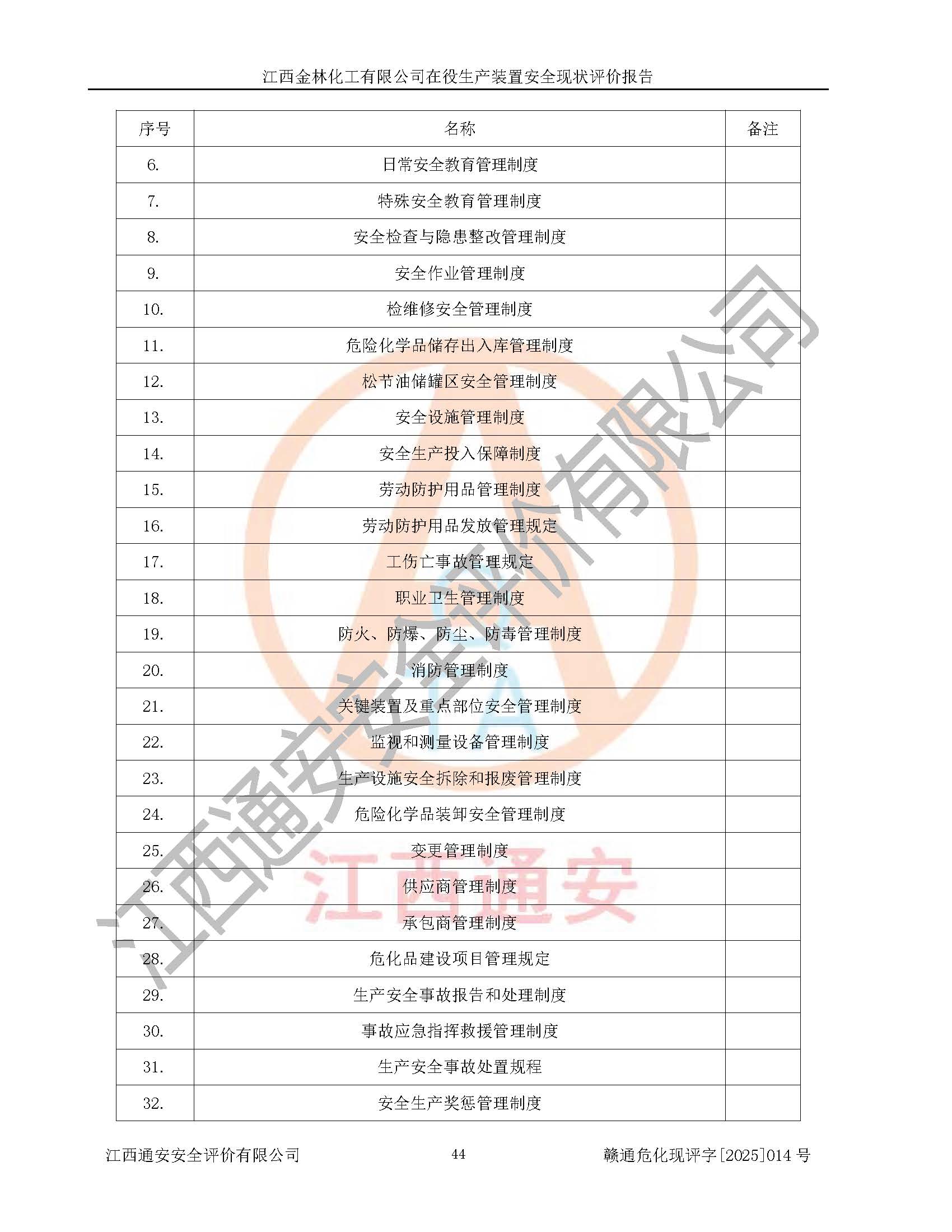 評(píng)價(jià)報(bào)告名稱 | 江西金林化工有限公司在役生產(chǎn)裝置安全現(xiàn)狀評(píng)價(jià)報(bào)告 | |||