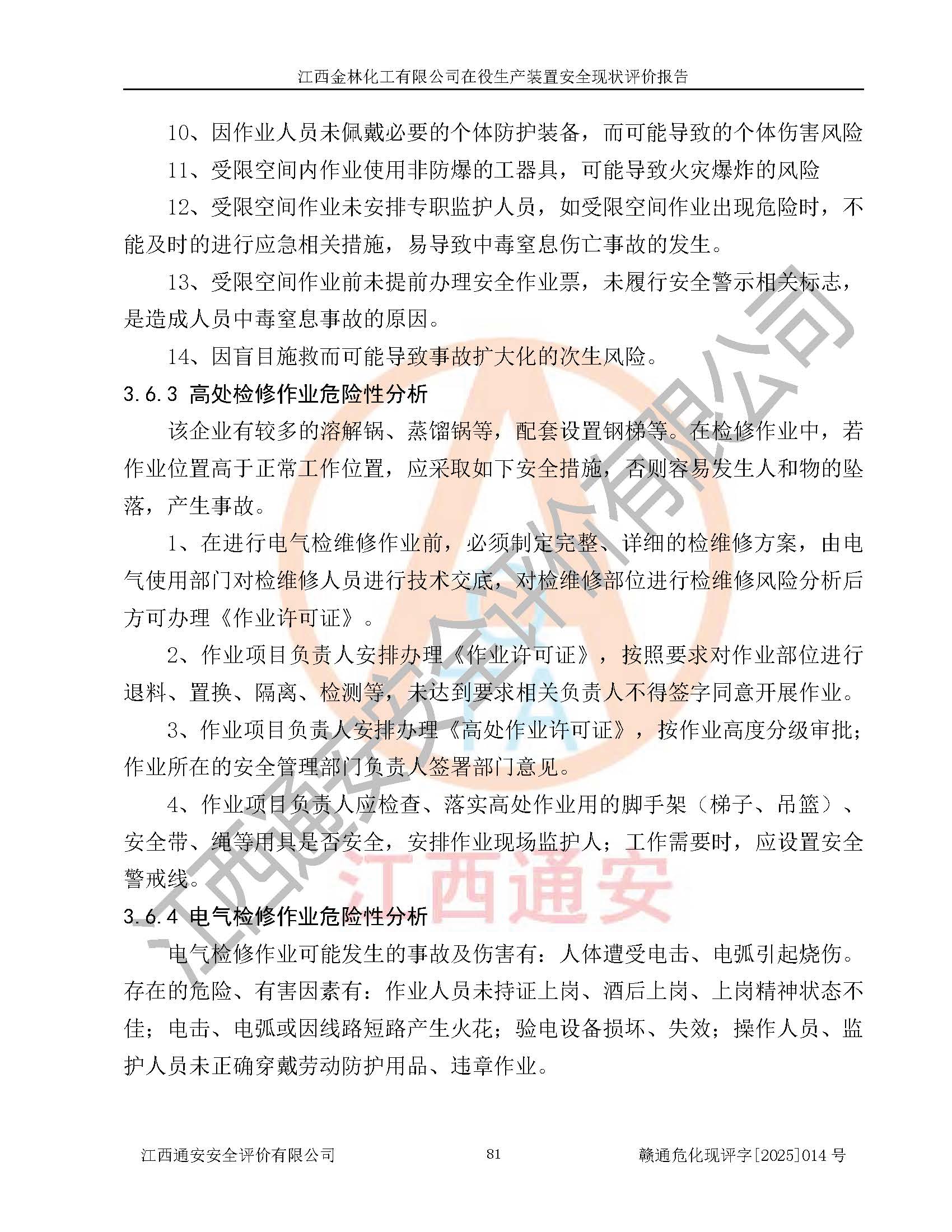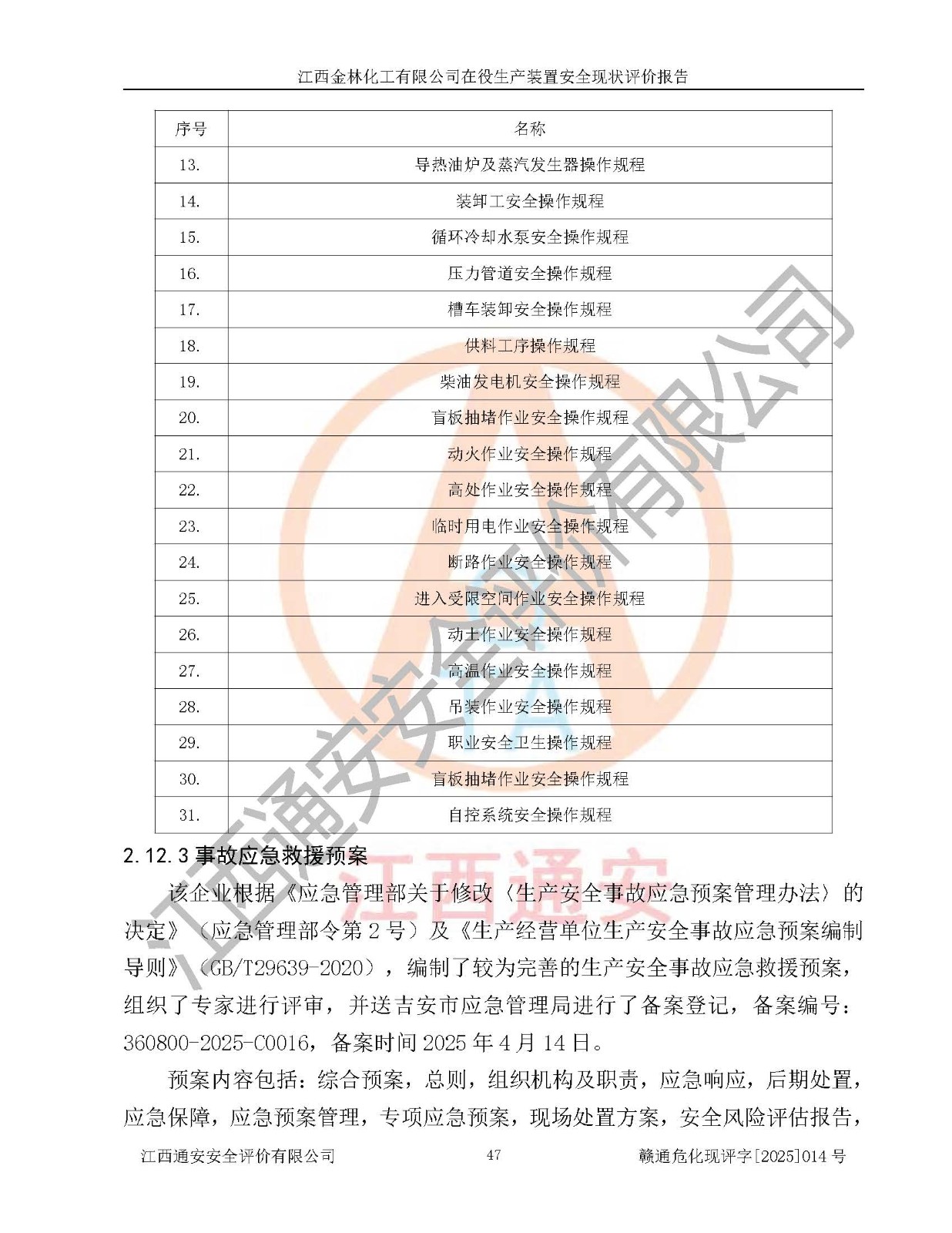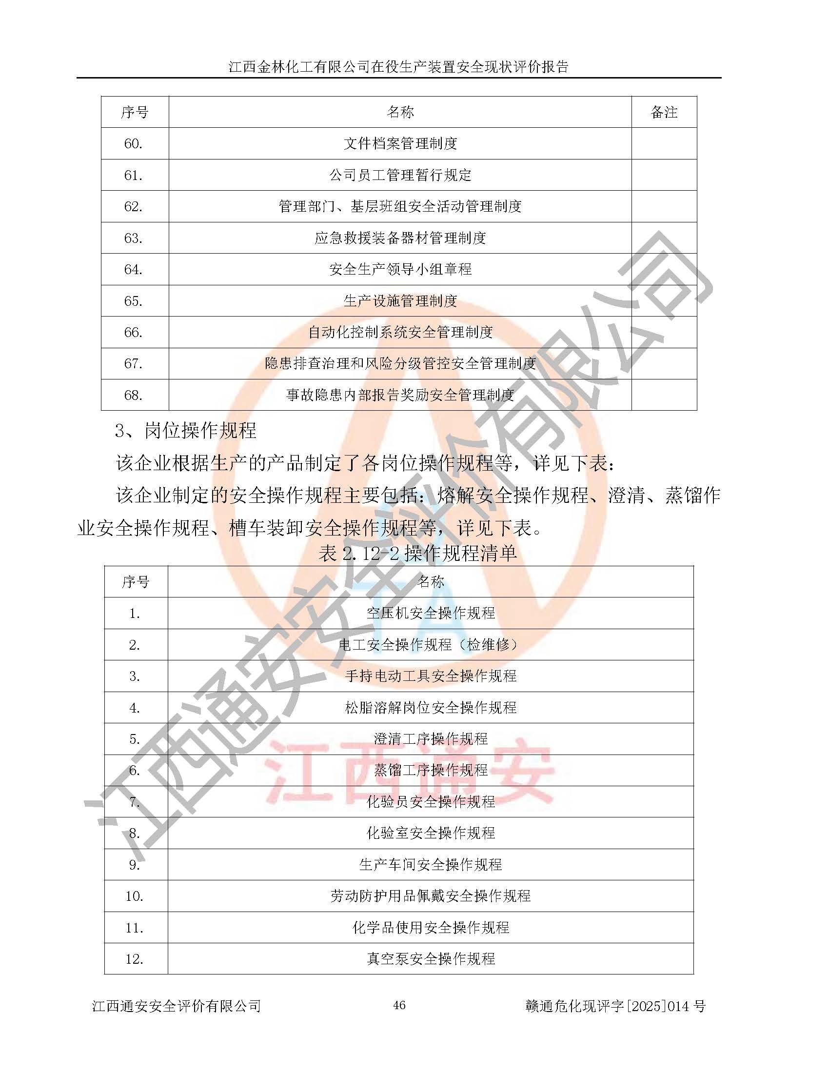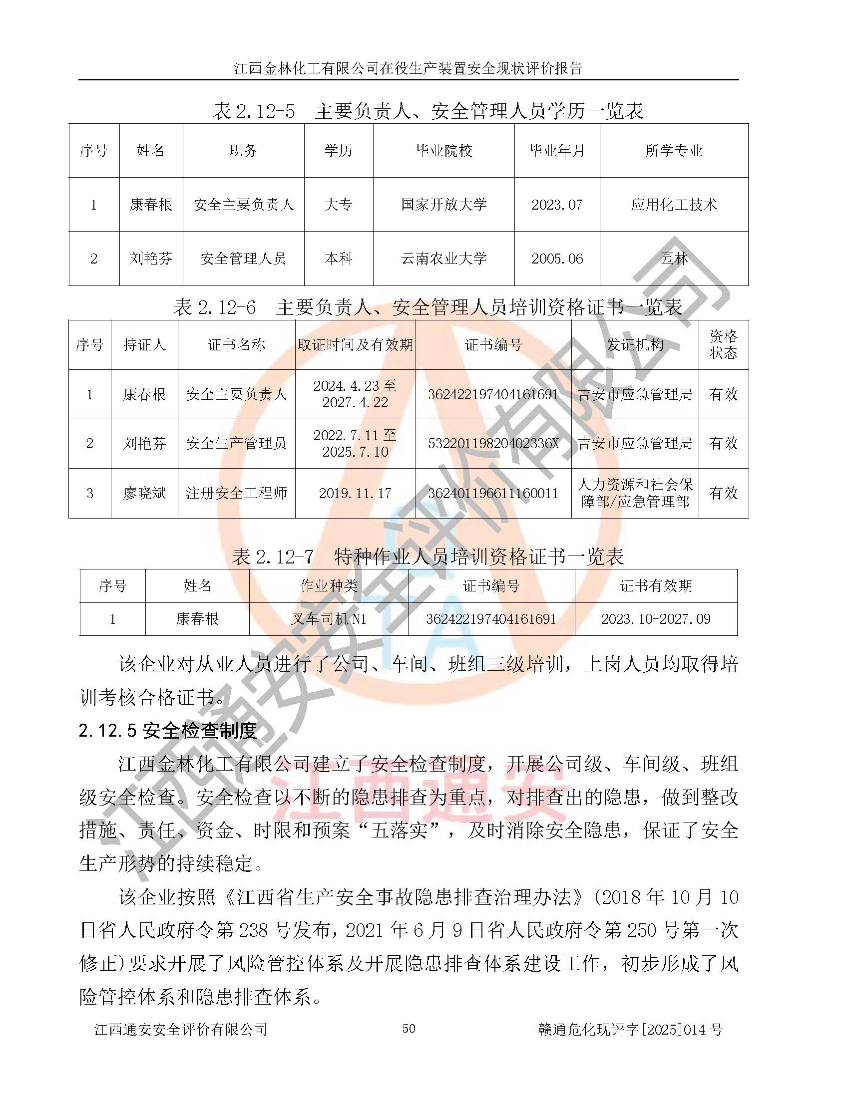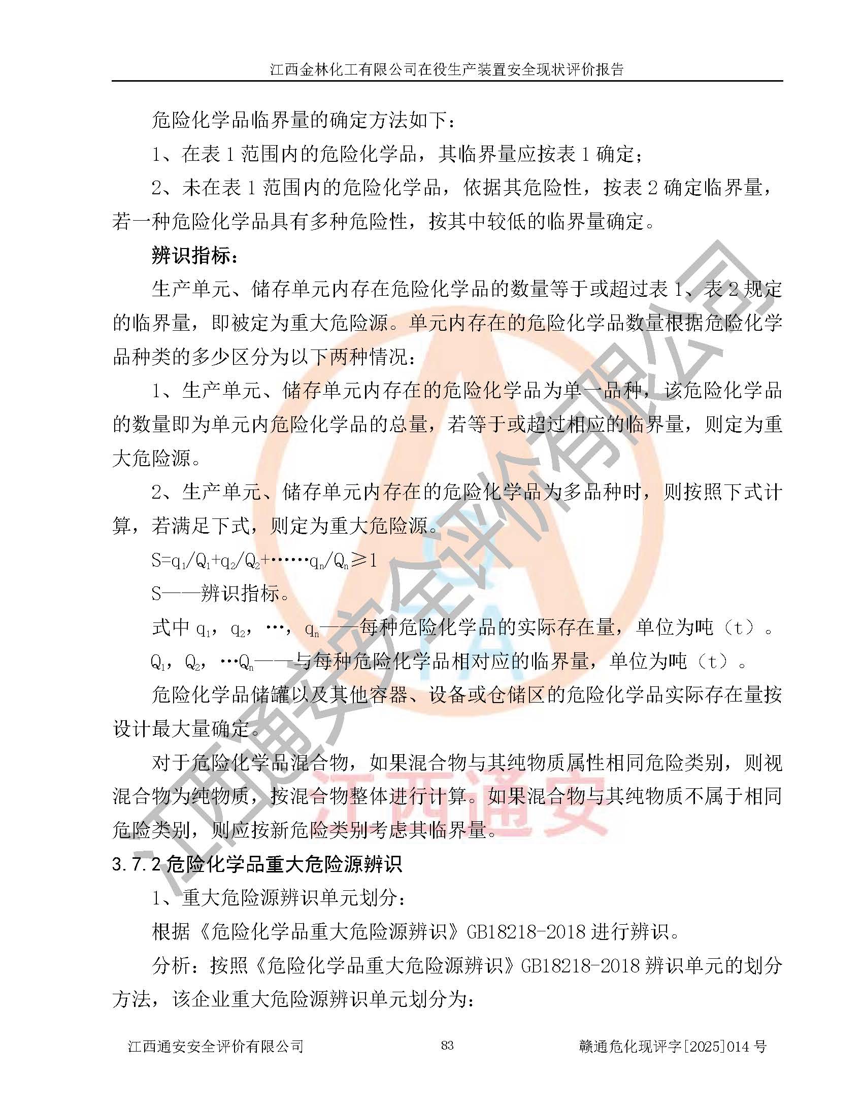 評(píng)價(jià)報(bào)告名稱 | 江西金林化工有限公司在役生產(chǎn)裝置安全現(xiàn)狀評(píng)價(jià)報(bào)告 | |||