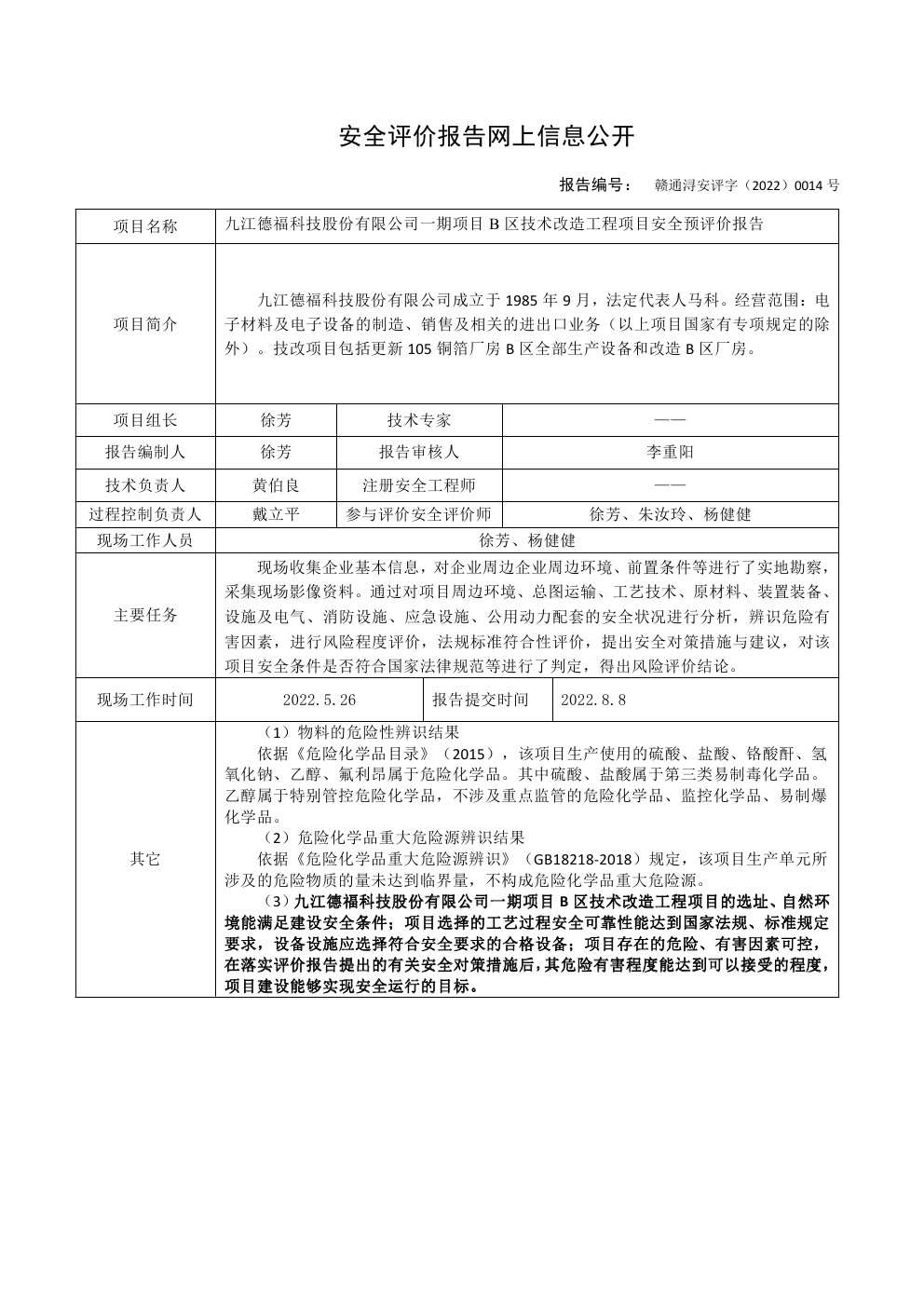 德福預(yù)評(píng)價(jià)報(bào)告~安全評(píng)價(jià)報(bào)告網(wǎng)上信息公開內(nèi)容
