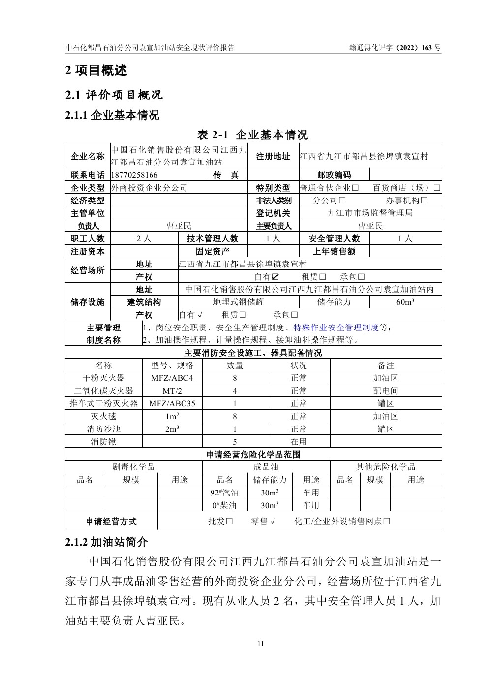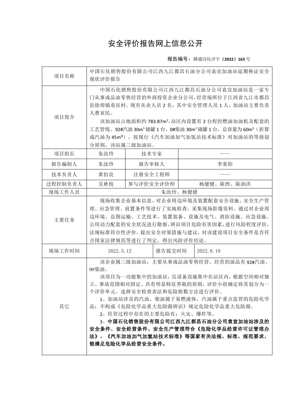 中石化縣城加油站-安全評價(jià)報(bào)告網(wǎng)上信息公開內(nèi)容