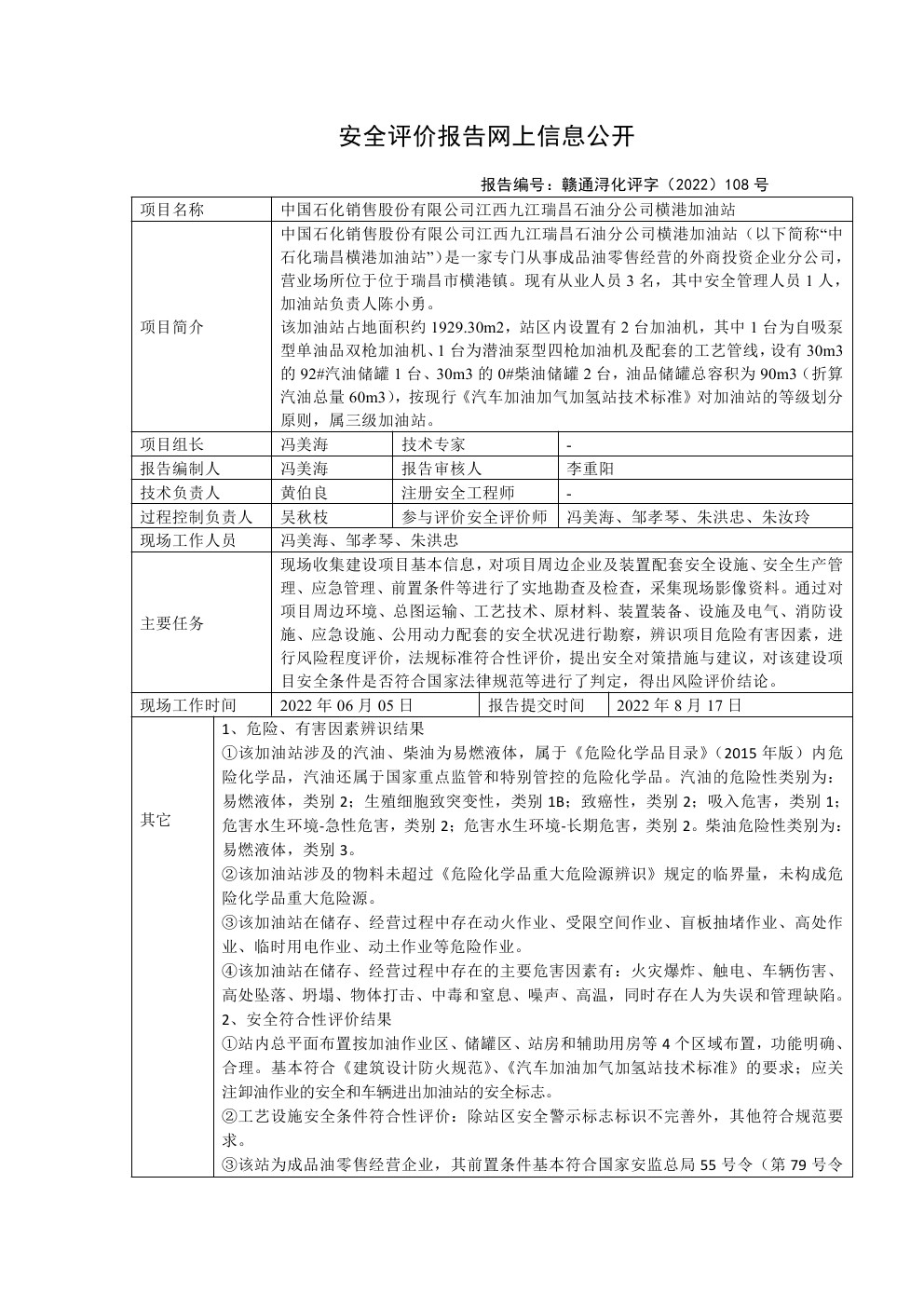 中石化瑞昌橫港加油站網(wǎng)上信息公開內(nèi)容
