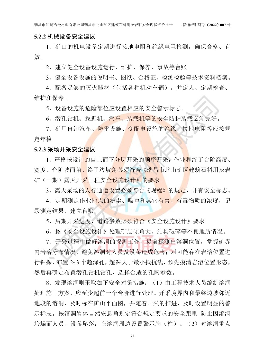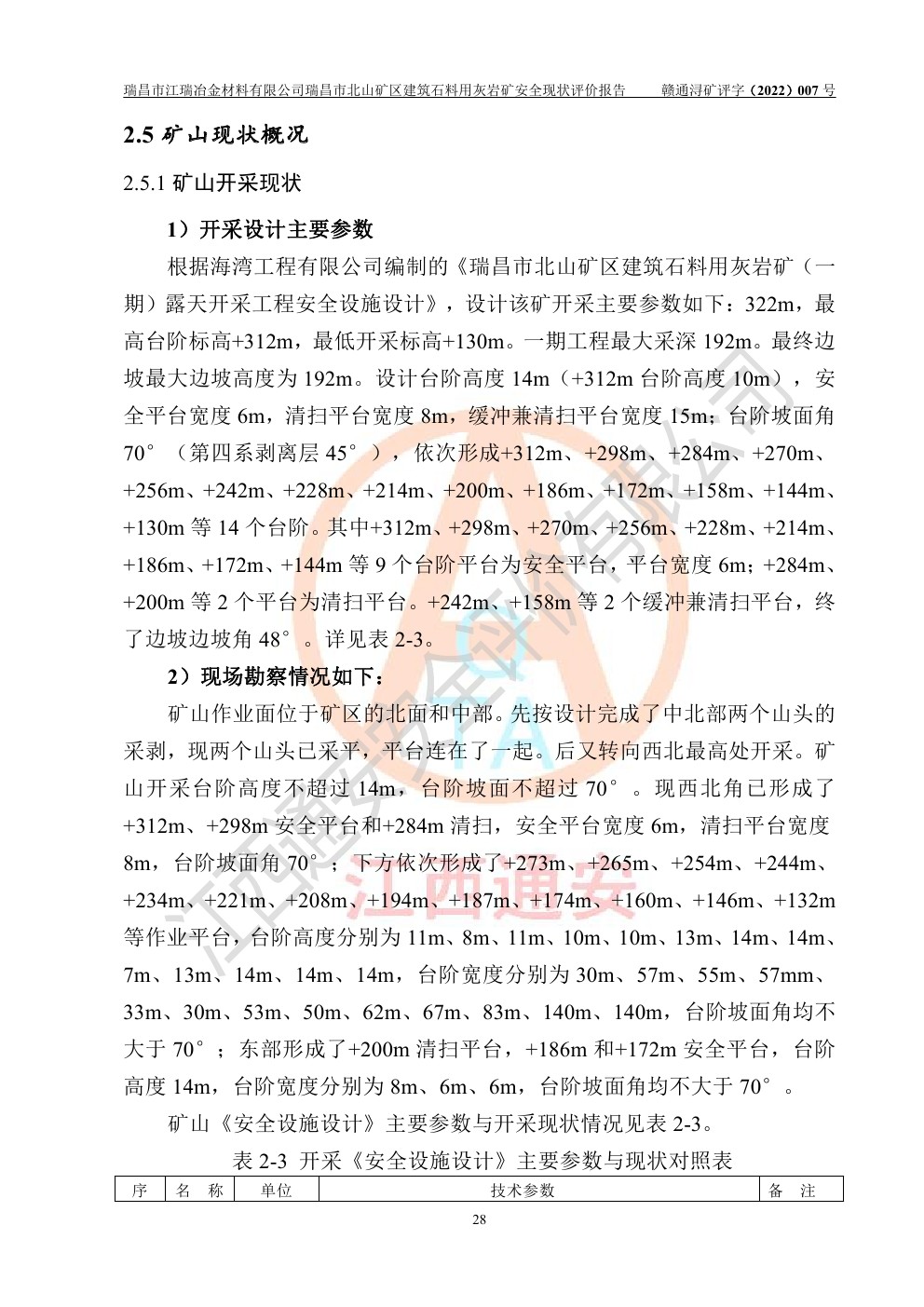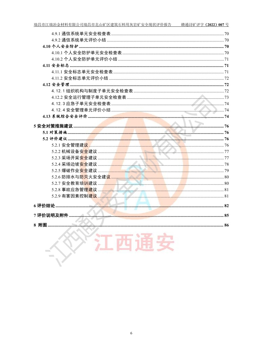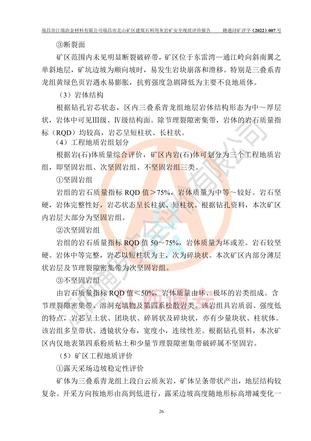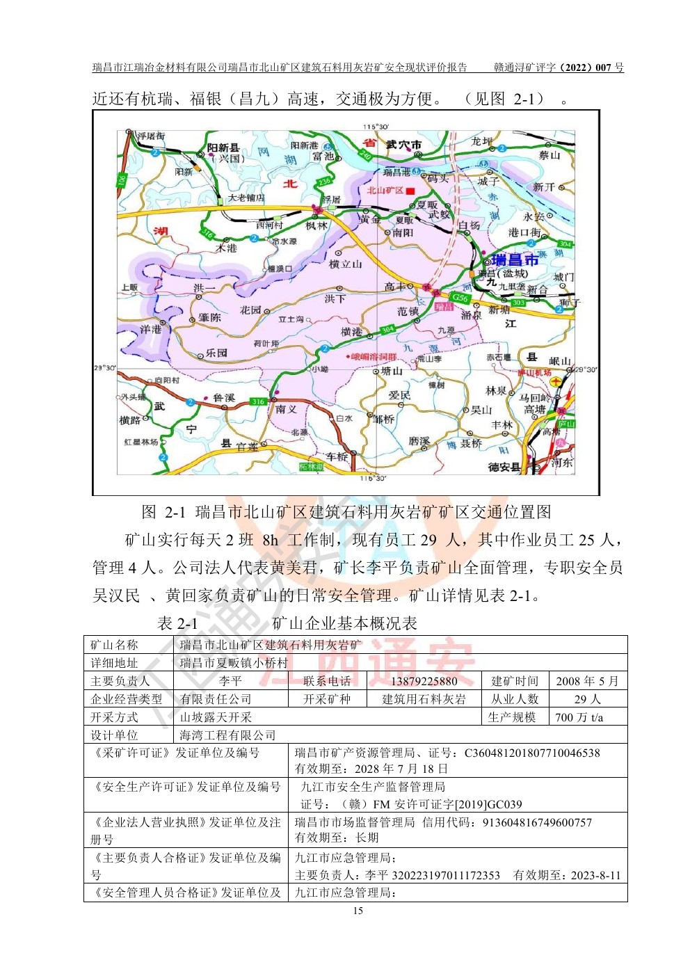 瑞昌市江瑞冶金材料有限公司瑞昌市北山礦區(qū)建筑石料用灰?guī)r礦安全現(xiàn)狀評價