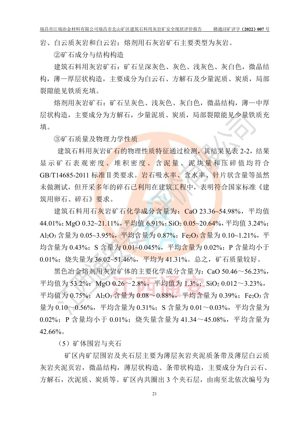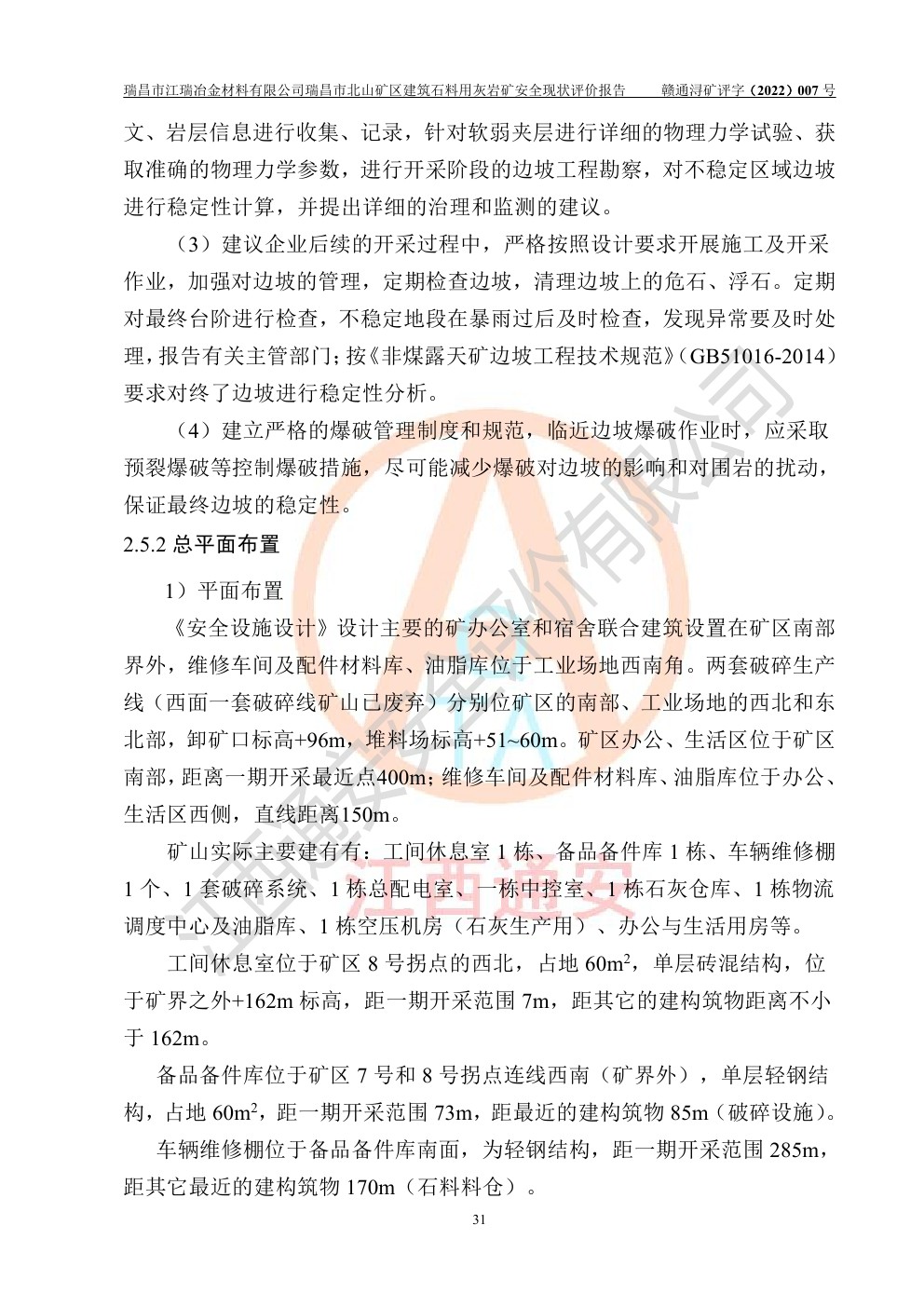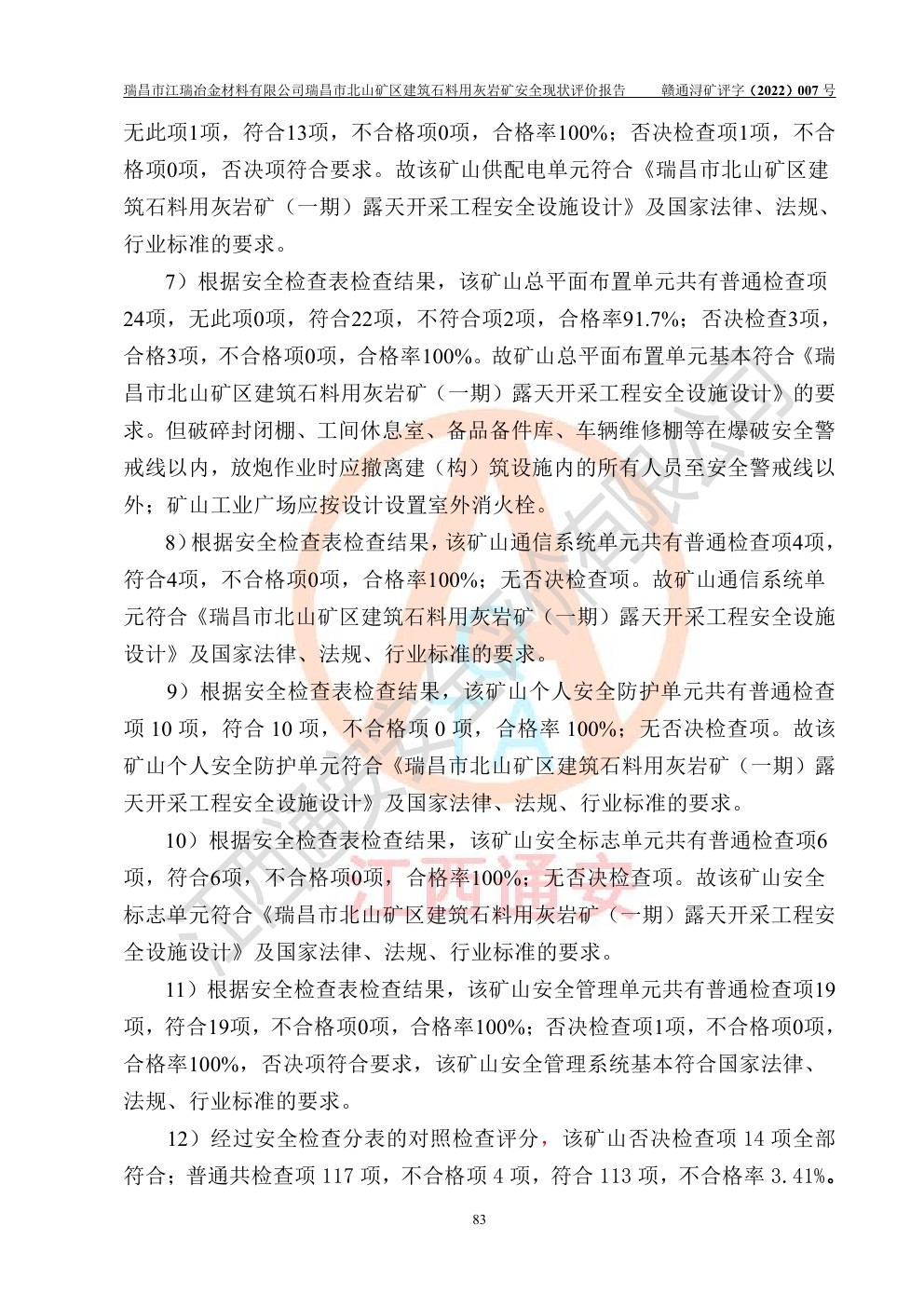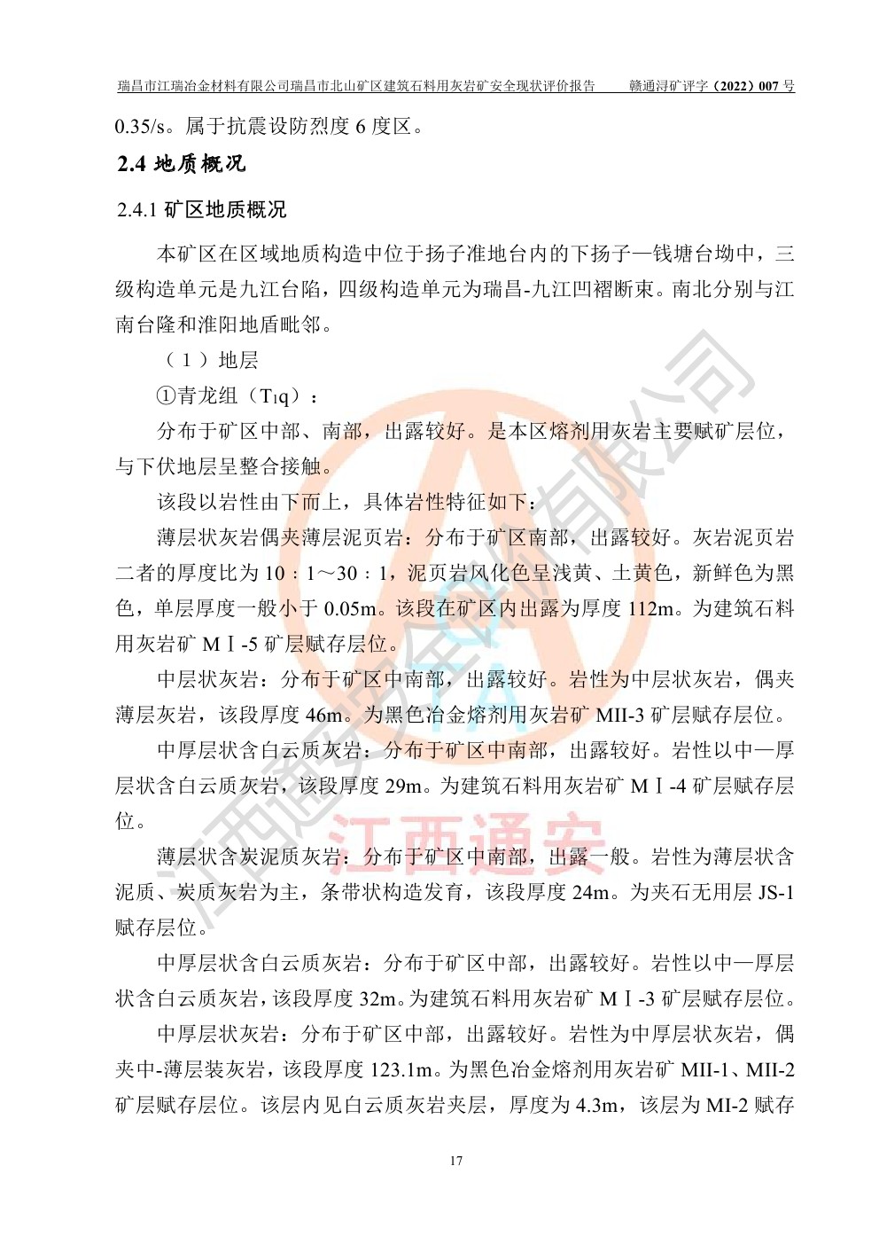 瑞昌市江瑞冶金材料有限公司瑞昌市北山礦區(qū)建筑石料用灰?guī)r礦安全現(xiàn)狀評價