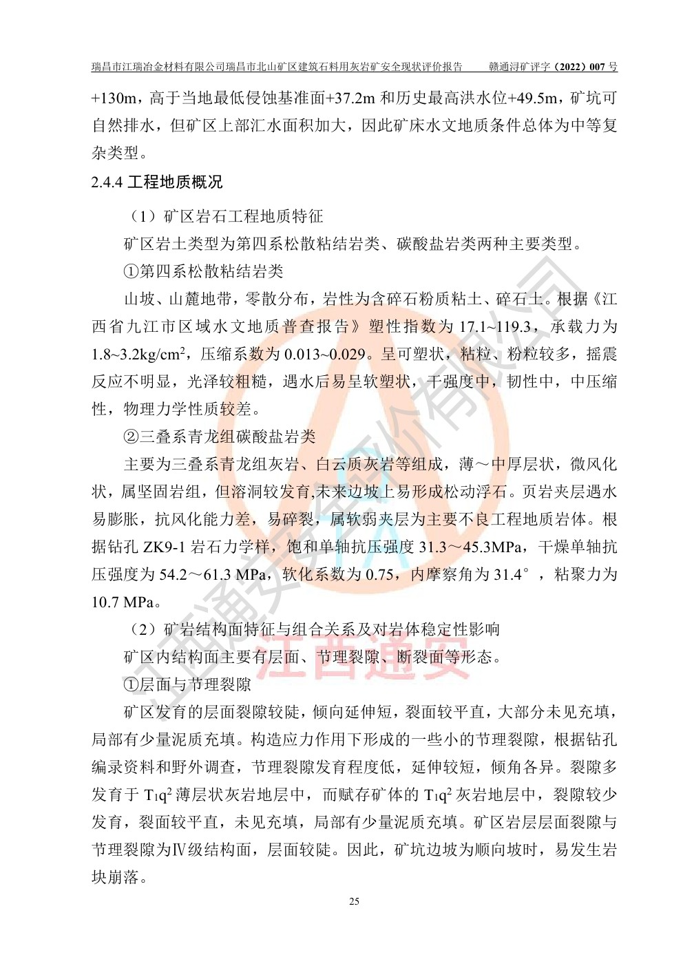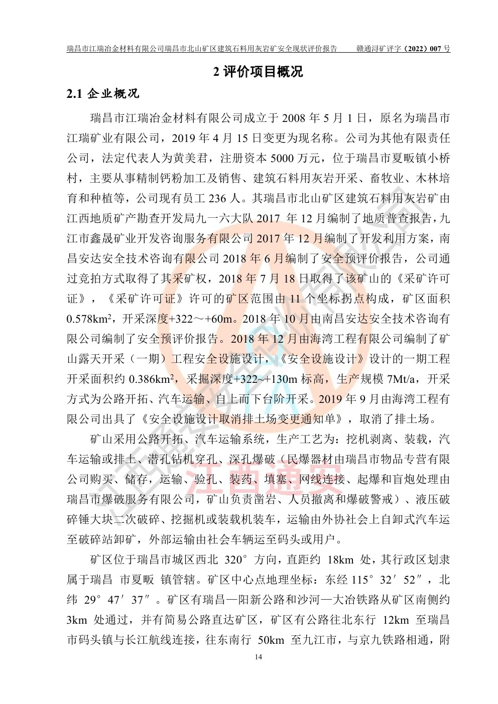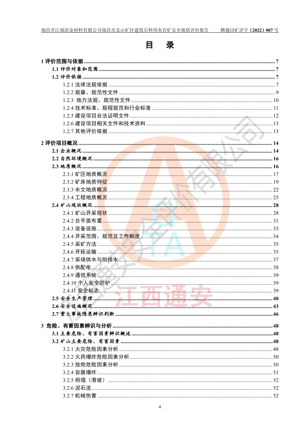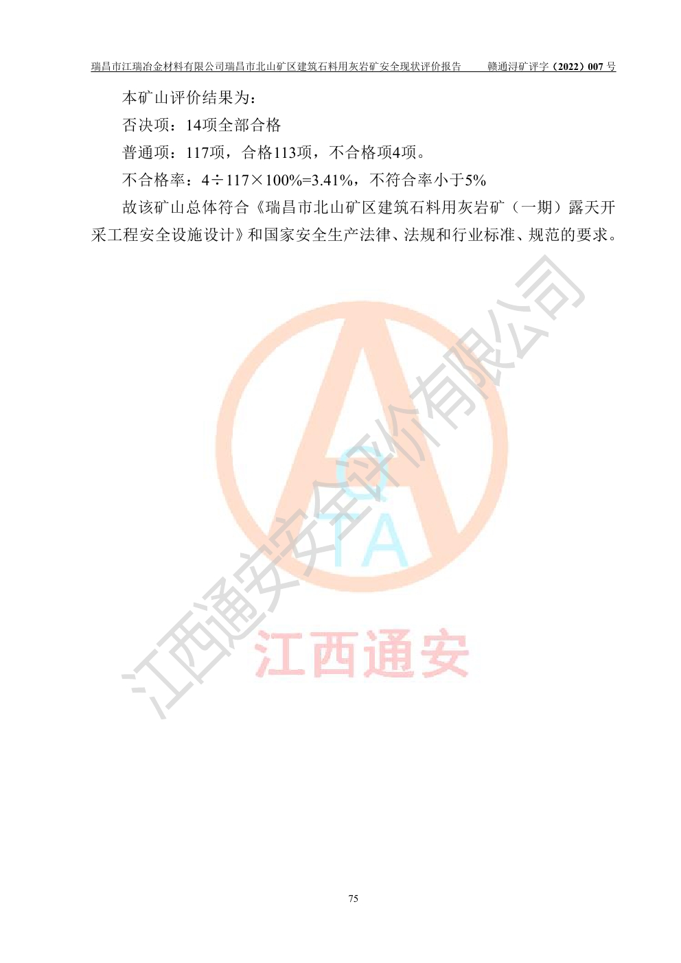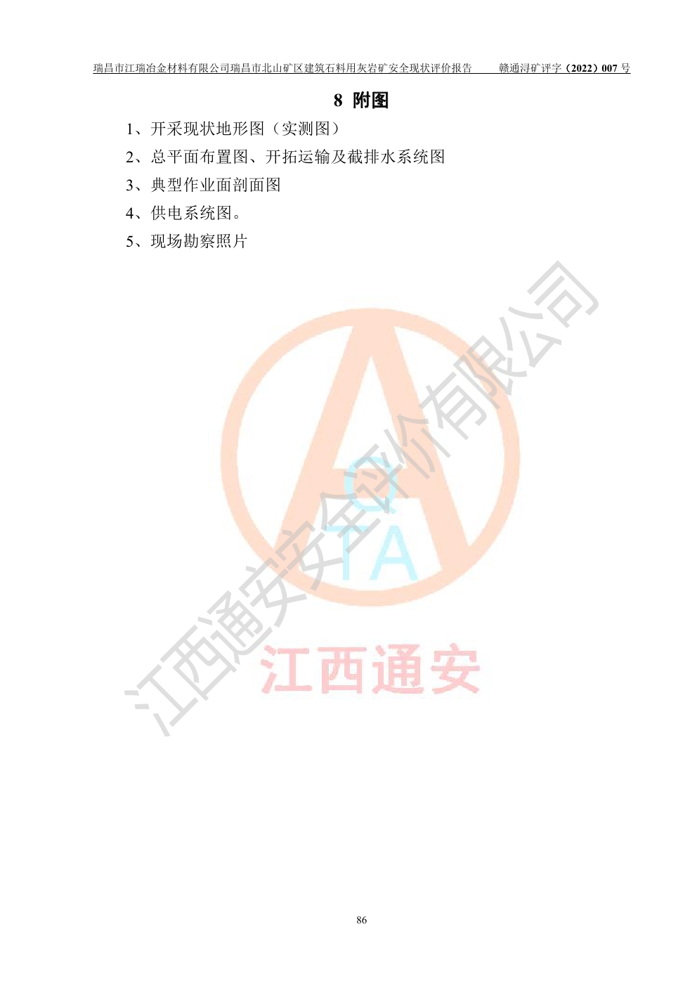 瑞昌市江瑞冶金材料有限公司瑞昌市北山礦區(qū)建筑石料用灰?guī)r礦安全現(xiàn)狀評價