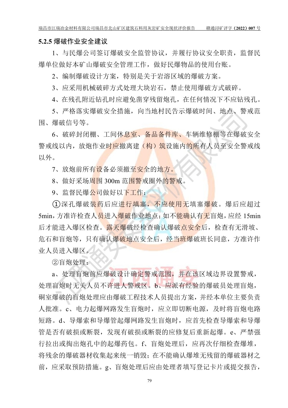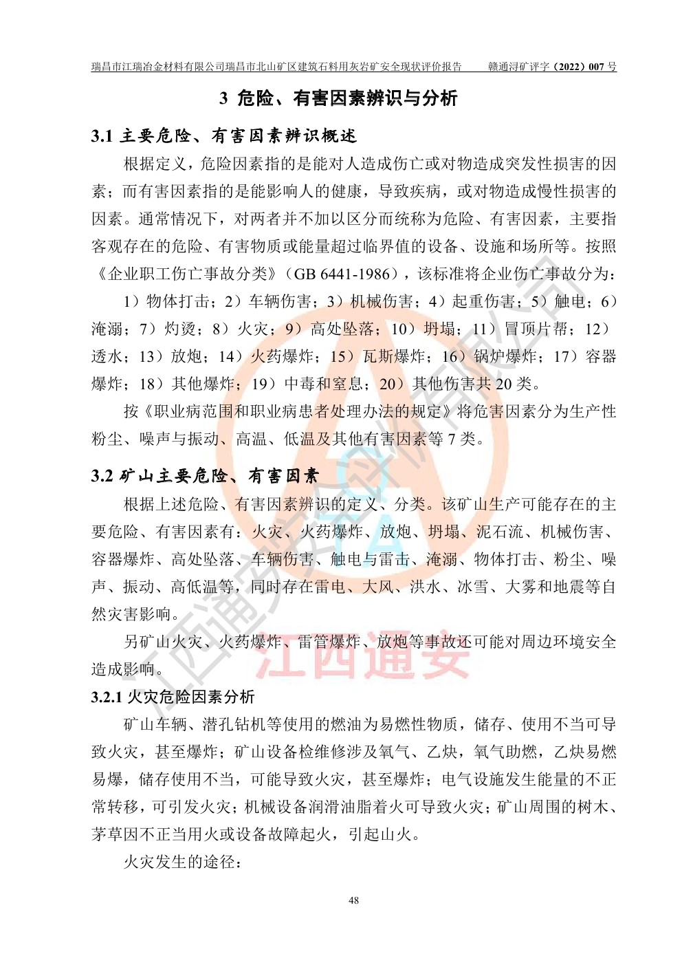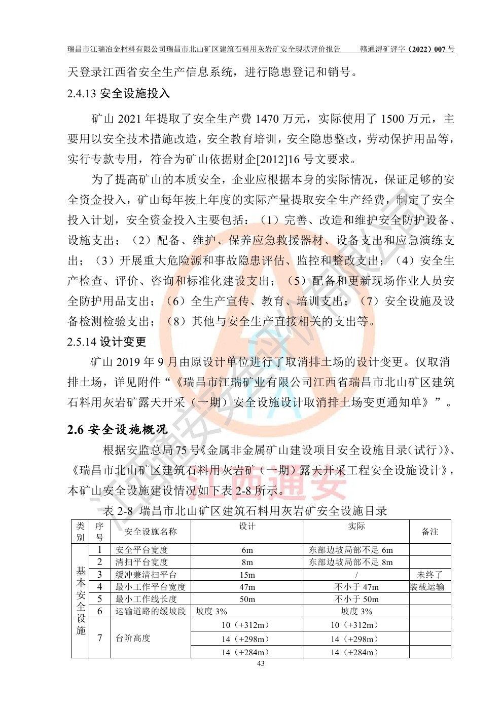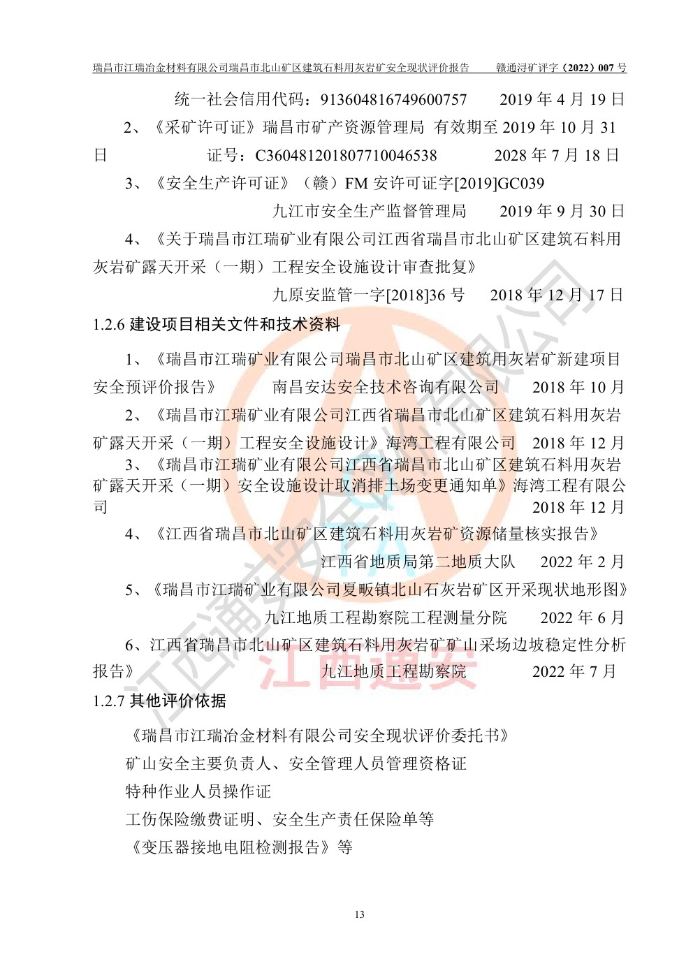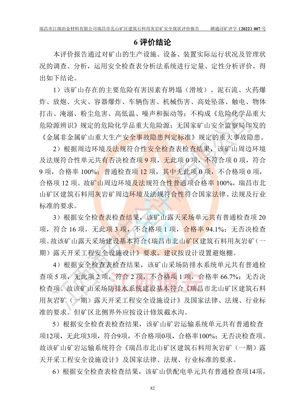 瑞昌市江瑞冶金材料有限公司瑞昌市北山礦區(qū)建筑石料用灰?guī)r礦安全現(xiàn)狀評價