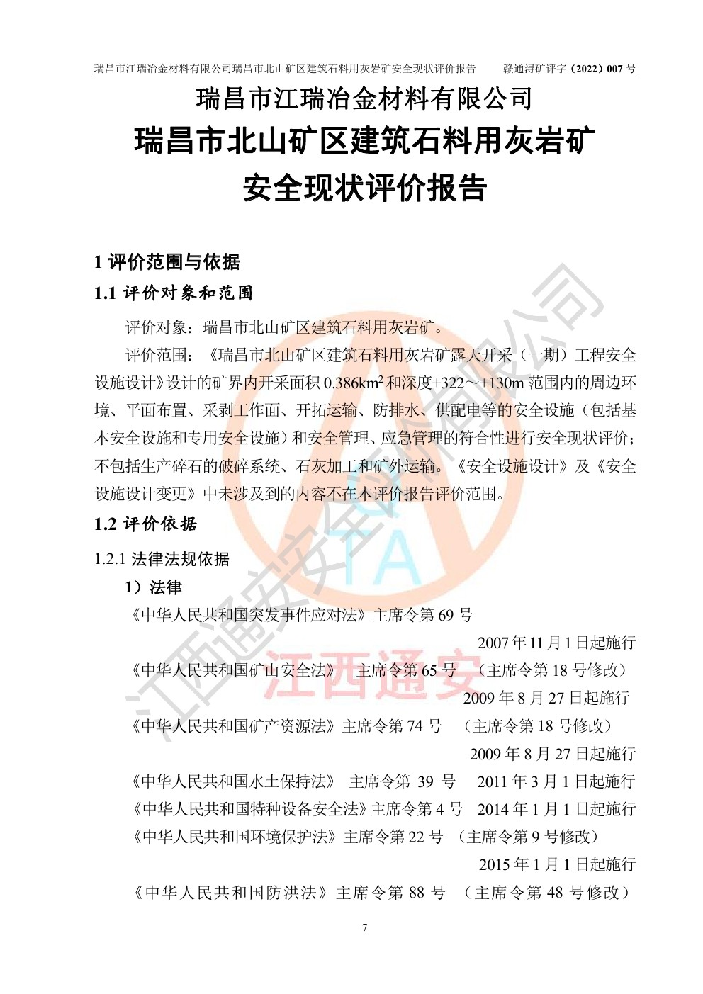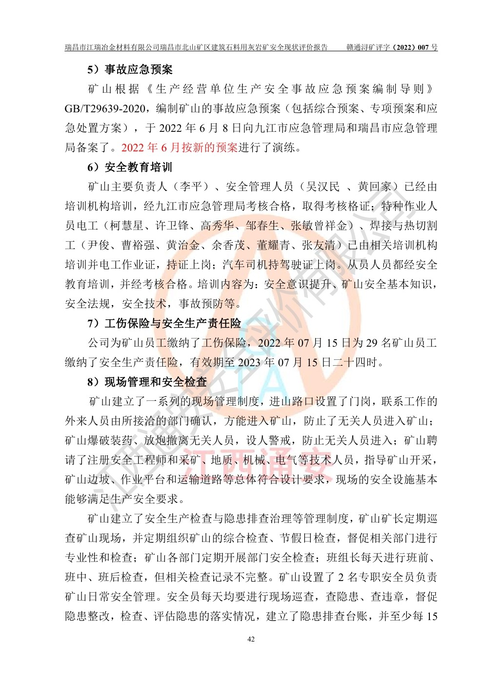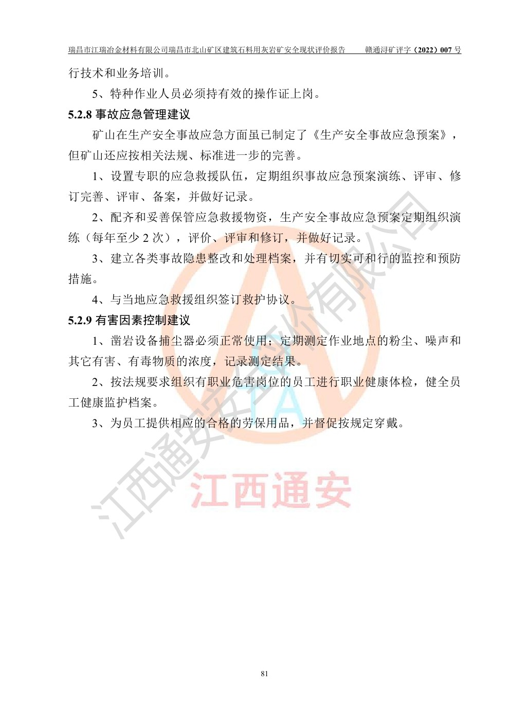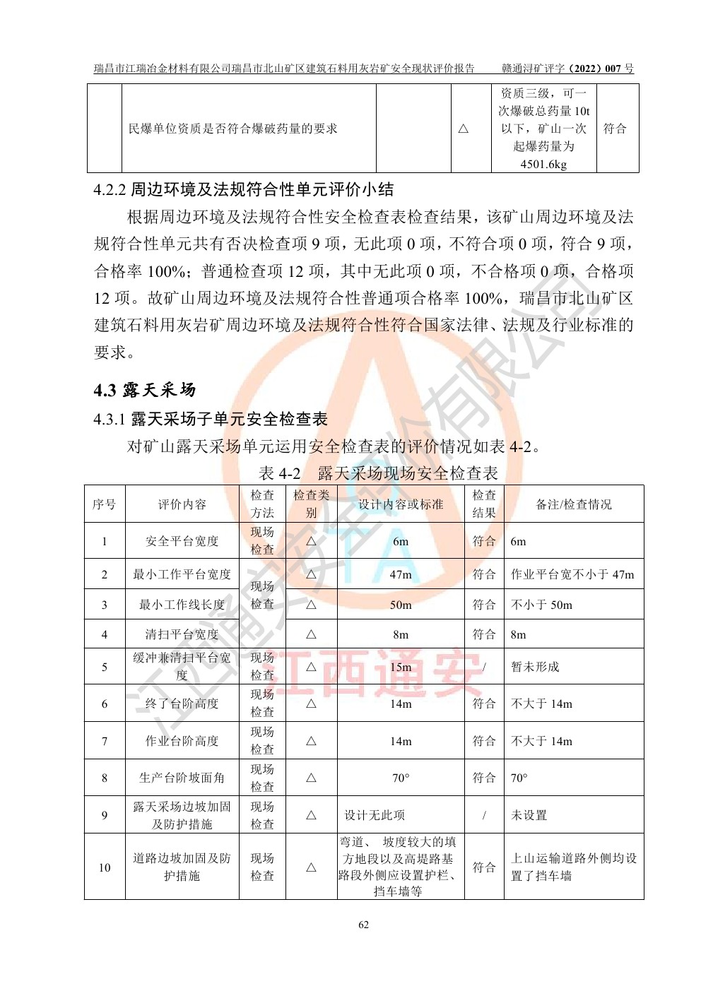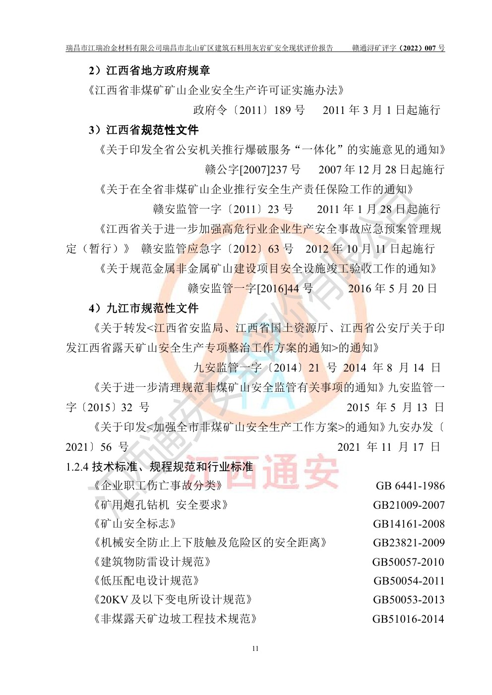 瑞昌市江瑞冶金材料有限公司瑞昌市北山礦區(qū)建筑石料用灰?guī)r礦安全現(xiàn)狀評價